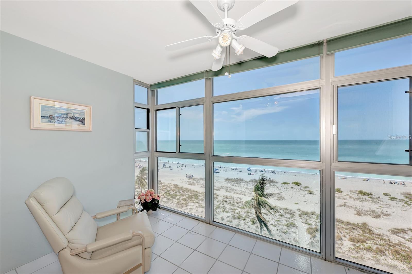 PRICED TO SELL!! Check out this fantastic direct gulf view condo on the sixth floor. Enjoy sunsets and more from your own lania. Or go down to the private pool or the spectacular Venice Beach. Fully furnished and equipped so this unit is move in ready. Over 1300 SQFT in a split floor plan with 2 bedrooms and a bonus room that could be a home office, den or family room. Gulf Shores is a well managed and maintained building. Amenities include one assigned carport space, heated swimming pool overlooking the sparkling Gulf of Mexico, a community clubhouse, TV cable with high-speed fiber internet included in fee. Bike racks and outdoor grill on site. Assigned storage unit located on the 6th floor. The quaint downtown area of Venice offers numerous restaurants, shops, the cultural compass which consists of, the Venice Art Center (the art center cafe) is located on site featuring lovely fountains and dining alfresco, library and community center.