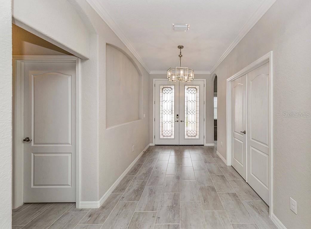 Enjoy living in one of the top communities in South Venice "Gran Paradiso"! Minutes from the new Wellen Park Area featuring the spring training facilities of the Atlanta Braves! New shopping plaza's (Costco) and restaurant's are just minutes away! Private and secured gate entry gives you the peace of mind you want when enjoying everything that this community has to offer! Gran Paradiso offers a lifestyle that everyone dream about from a resort style pool, spa, beach area, fitness center, sauna, steam room, pickleball, and tennis courts. This stunning home features one level ranch living with a pond view! The Summerville II Model was one of the best selling split bedroom floorplans. Gorgeous views! Plenty of yard space to build your own pool if desired! Over 2400 sq. ft of living space! 3 car attached garage! Rare 4 bedroom or 3 bedroom and a den/study! Open floorplan with high tray ceilings from your kitchen overlooking your spacious living area! Chef's Kitchen features stunning white cabinets, gray tile floors and light granite tops. Spacious kitchen island has been added. Primary bedroom is elegant with a en suite bathroom that highlights a walk in shower, dual vanities and a soaking tub. A lanai allows for your to enjoy your outside space with a stunning pond view! This home has a yard, but space enough to add your own private pool if you so desire. The HOA includes exterior maintenance meaning lawn care and irrigation, recreation and community grounds.