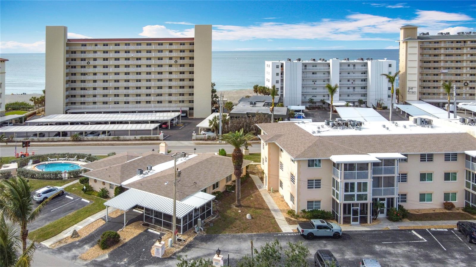 Free 1 year Home Warranty included with this adorable condo. This building did not experience any flooding or damage from storms . Located just steps from the beach at Gulf Point. This 1 bedroom, 1 bath unit is being sold turnkey furnished. There is a great lanai with glass enclosure for enjoying your morning coffee or after dinner cocktail. Your parking spot is conveniently located next to the lanai. There is a community pool and clubhouse. The location is perfect for walks on the beach or only a few blocks from downtown. Venice Island has multiple parks, public beaches, a Theater, a Library, Shopping, Restaurants, A Boat ramp and Marina.