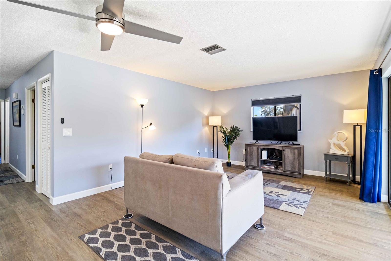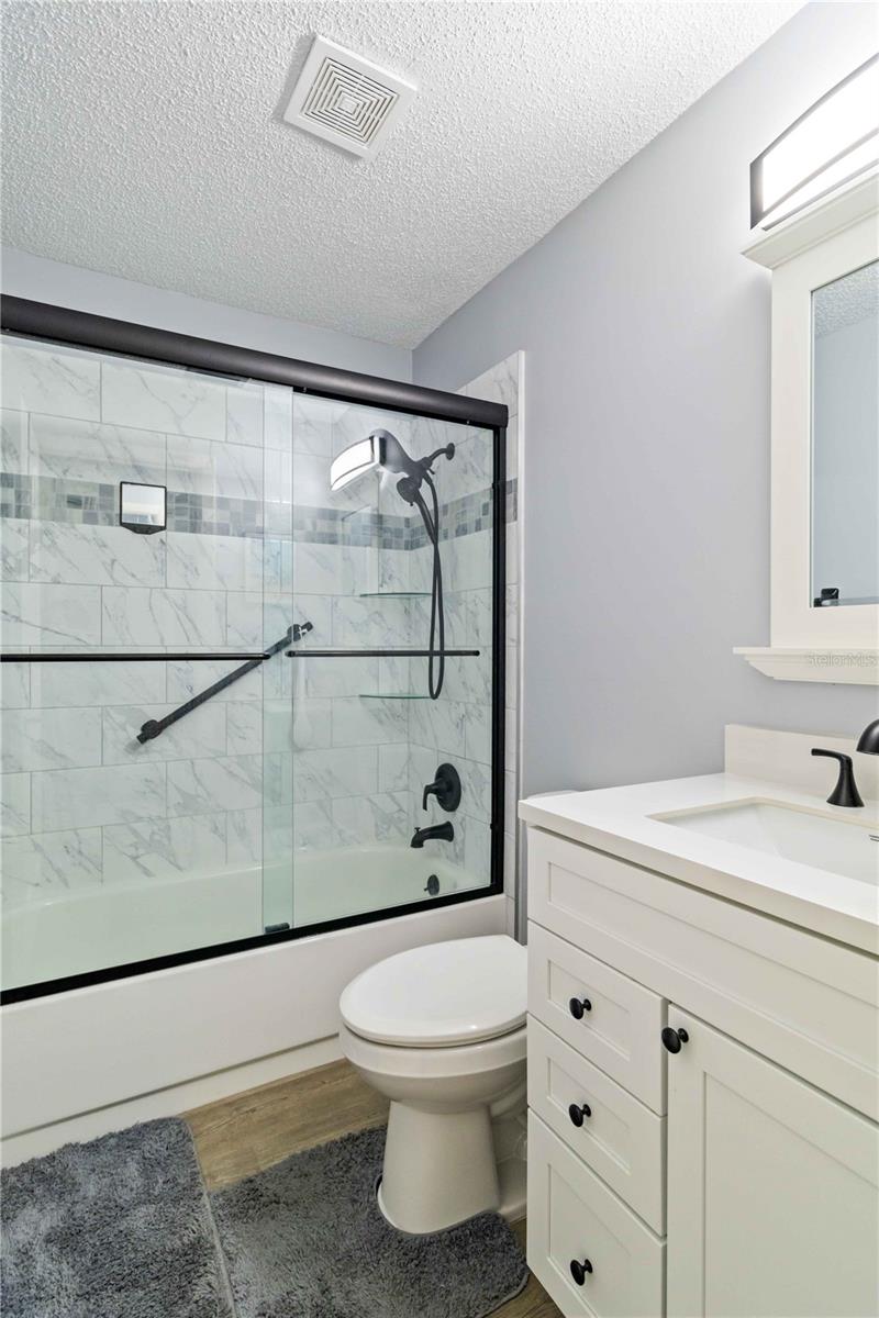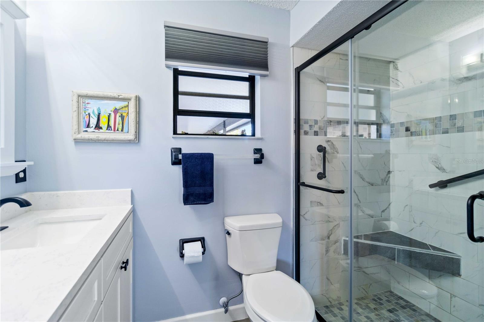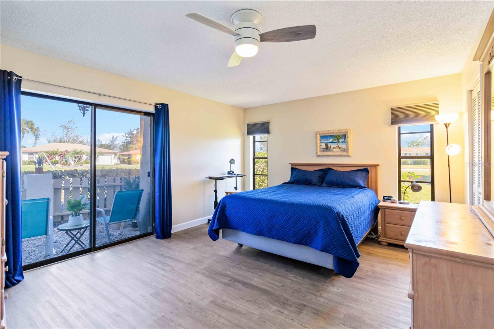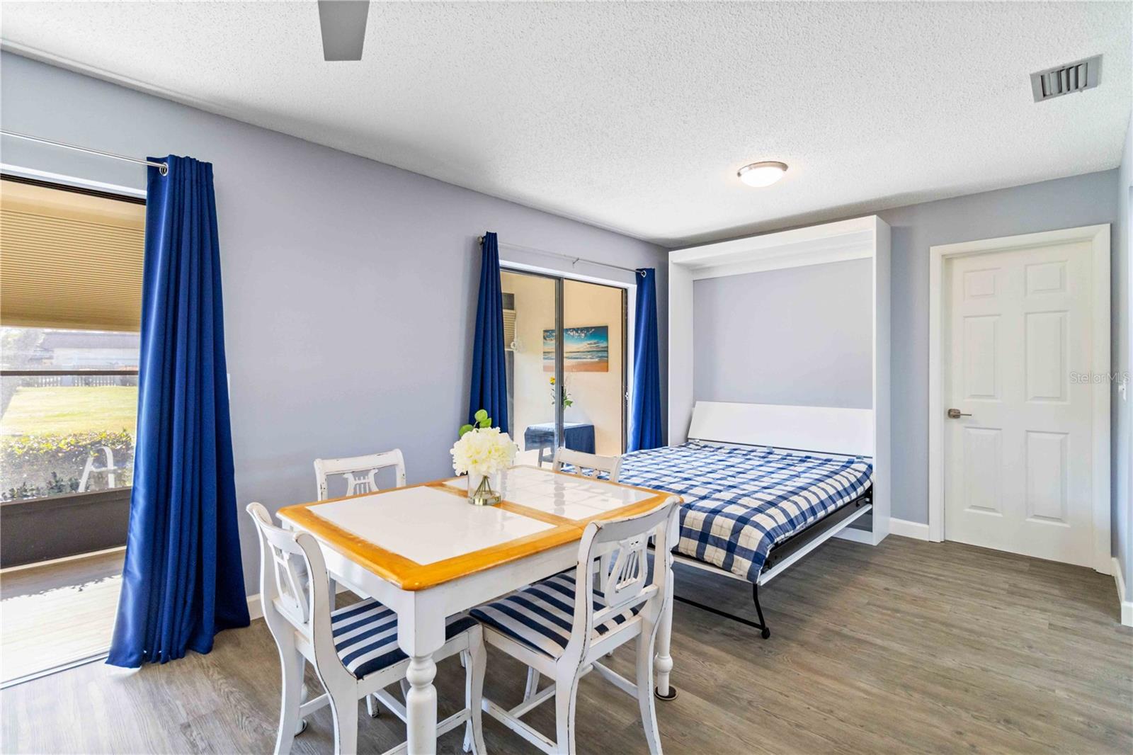 Offering a beautifully renovated turnkey two-bedroom, two-bath condominium in Villa Nova. Just step out the back door to go to the community pool and clubhouse. Pristine kitchen is sure to delight with a new appliance suite, new stove range hood, soft close cabinets, quartz counters, new modern light fixture and sink filter. New luxury vinyl floors throughout the main living space and bedrooms, new fans, new blinds. Primary bedroom is a comfortable size with a walk-in closet and sliding doors leading to outside seating area. The primary bath is updated and features a modern light, new latrine and tiled shower with glass doors. Second bedroom is pleasing for any guest or to be used as an office/den. Second bath is tastefully updated with tile walls and glass door on the tub, the luxurious feel is brought together with a modern light fixture. Queen size Murphy bed in dining area for that drop in guest! Oversized indoor laundry/utility room with a washer, dryer and laundry tub. A grand-sized enclosed lanai offers plenty of room to enjoy extra sitting and dining space and has black out blinds for privacy. New Square D Electric Box in 2022, A/C replaced in 2021, Third Nail done in 2024. The landscape rock and exterior entryway landing offer a neat and tidy welcome. Front sitting area expands your living space. Covered carport, extra parking space as well as plenty of guest parking. Small covered area outside the laundry room back door is perfect to store your bike. Villa Nova is conveniently only minutes from the the Island of Venice with miles of open coastline and treasured beaches. Shopping, restaurants, golf courses, airports, theater and cultural events are all in proximity. Schedule an appointment today and see all this charming property has to offer.