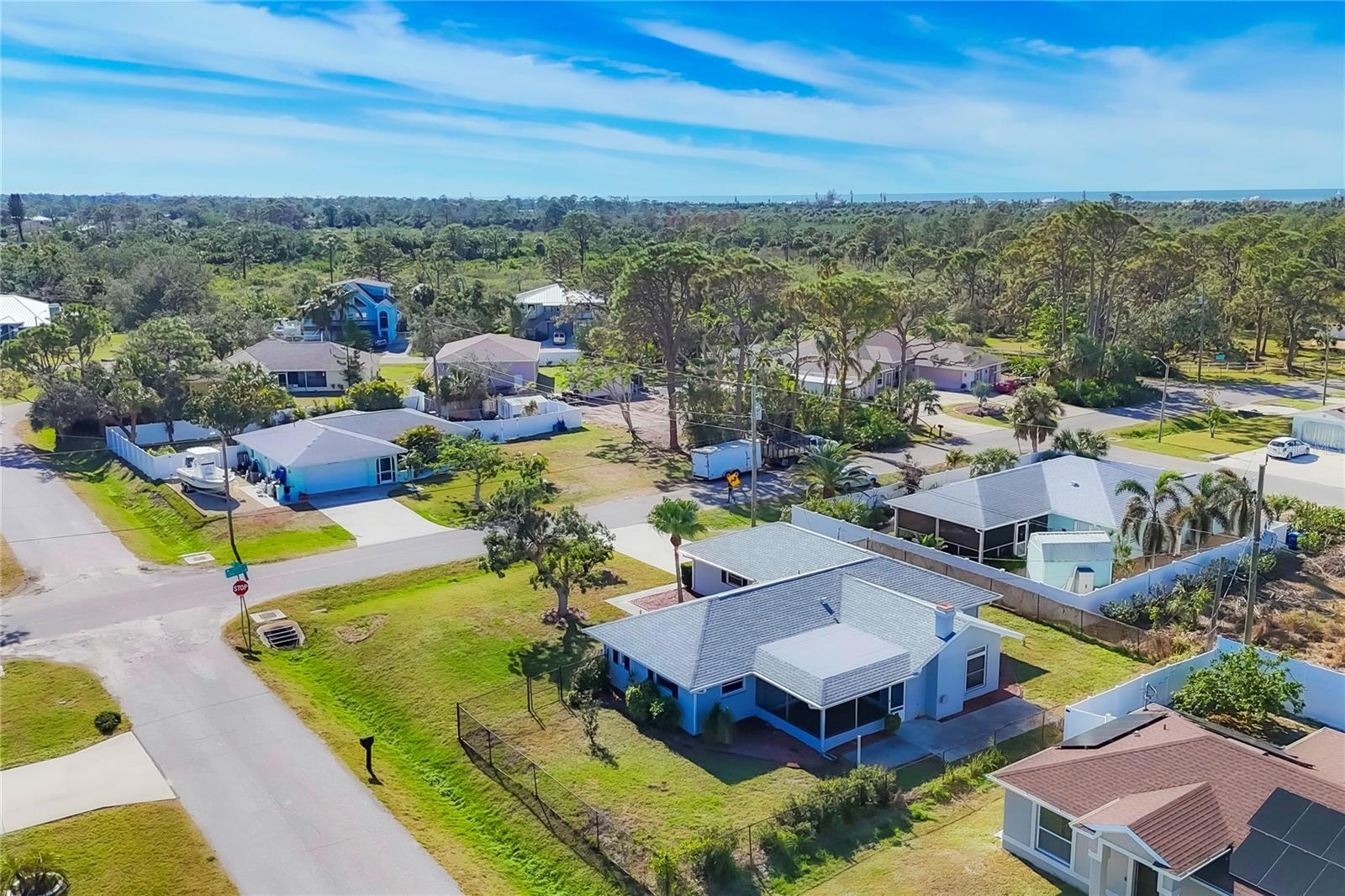 Welcome to this delightful 2-bedroom, 2-bathroom home boasting a thoughtfully designed split floor plan and 1,608 sq. ft. of comfortable living space. The updated kitchen features stunning granite countertops, perfectly blending style and functionality. Both bedrooms include walk-in closets, offering generous storage. The layout includes a cozy family room/kitchen with a fireplace and a separate living and dining area, making it perfect for entertaining or everyday living. Enjoy the convenience of an inside laundry room with a utility sink and the comfort of a screened lanai that opens to a fully fenced backyard, ideal for pets, gardening, or outdoor relaxation. Situated on a spacious 10,000 sq. ft. corner lot, this home offers both privacy and room to roam. The 2-car garage includes a generator hookup and hurricane shutters for added security and peace of mind. Recent upgrades include a new roof (2021) and HVAC system (2024), ensuring the home is move-in ready. With an optional membership available in the South Venice Civic Association, you'll have access to additional community amenities and events. This property is perfect for investors seeking a strong rental history, first-time homebuyers, or those looking to downsize into a charming retirement retreat. Don't miss this exceptional opportunity—schedule your showing today!