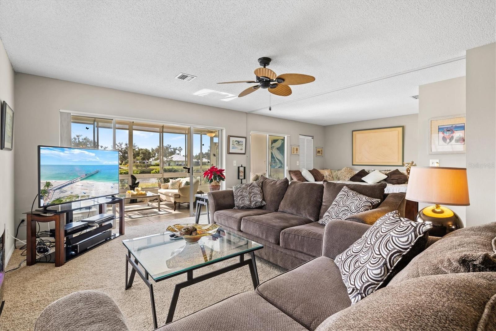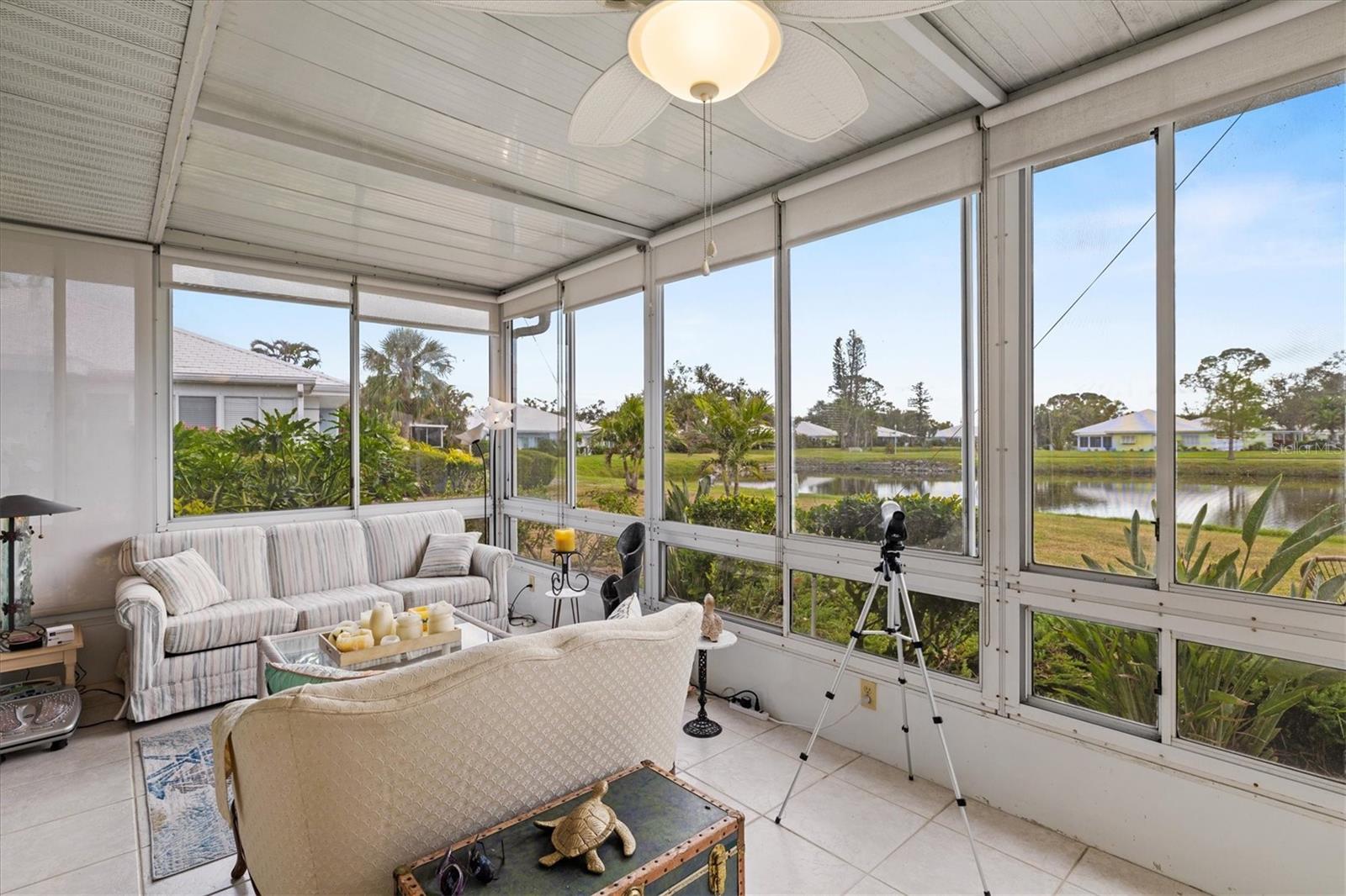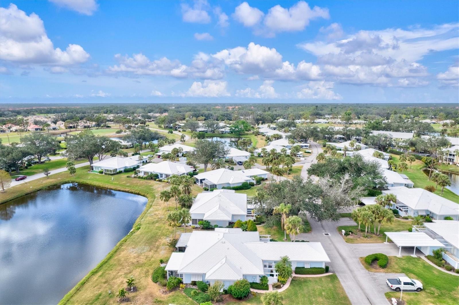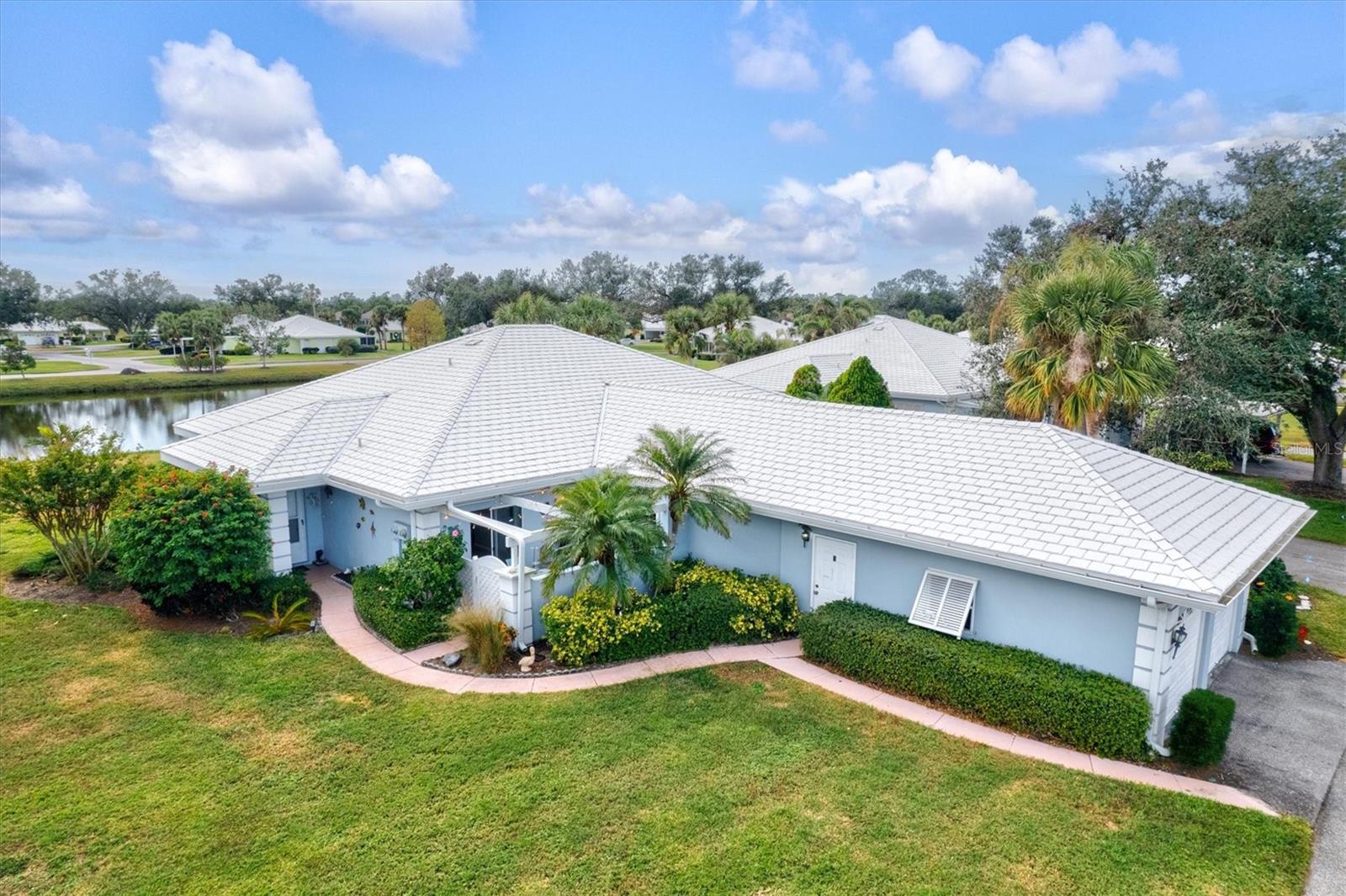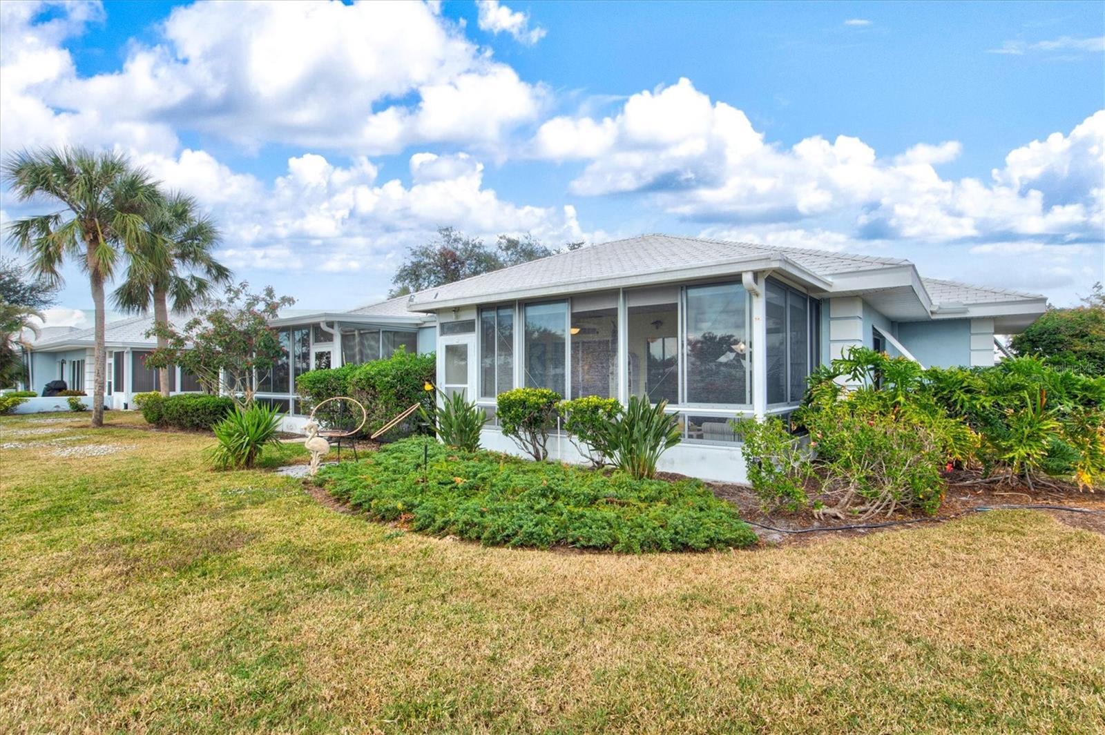 <b>This charming 2-bedroom, 2-bathroom villa is ideally located in the desirable setting at the renowned Plantation Golf & Country Club, a premier golf community.</b> <p> <p> The villa, a perfect blend of comfort with a flexible layout and serene pond views. The charm of this villa is heightened by the inviting enclosed porch, accessible through sliding glass doors that flood the interior with natural light. This peaceful retreat provides the perfect spot for morning coffee or evening relaxation, with views of the pond offering continuous entertainment of nature. <p> <p> The home features an office/den, perfect for working from home or additional living space. The villa features a split floor plan that ensures privacy for both you and your guests. The primary bedroom includes an en-suite bathroom and ample closet space. The second bedroom is conveniently located next to the guest bathroom in a versatile flex area that can be seamlessly opened to the living space or closed off for privacy. <p> <p> Tile flooring in the entry, bathrooms, and kitchen enhances the home's sophistication, while the carpet floors throughout the rest of the living space create a seamless flow. The villa also includes an attached garage for added convenience. Be sure to explore the private outdoor dining space, easily accessible from the kitchen area. <p> <p> With optional club membership, <b>The Plantation Golf & Country Club is a thoughtfully designed master-planned community</b> featuring two 18-hole championship golf courses, 13 Har-Tru tennis courts, 6 pickleball courts, bocce ball, a fitness center, a Jr. Olympic-sized pool, and outstanding dining and activity programs. Conveniently located, the neighborhood is just minutes away from beautiful beaches, diverse dining and shopping options, the vibrant Wellen Park Downtown, the new Atlanta Braves Stadium, and easy access to I-75.