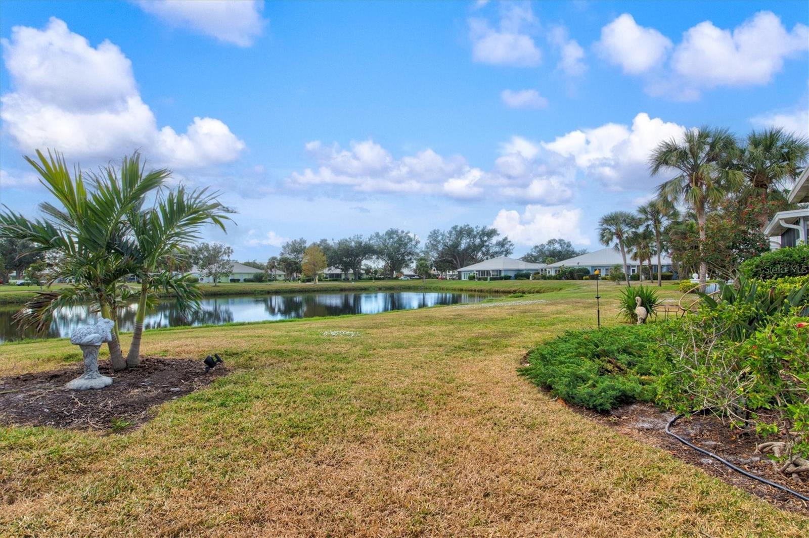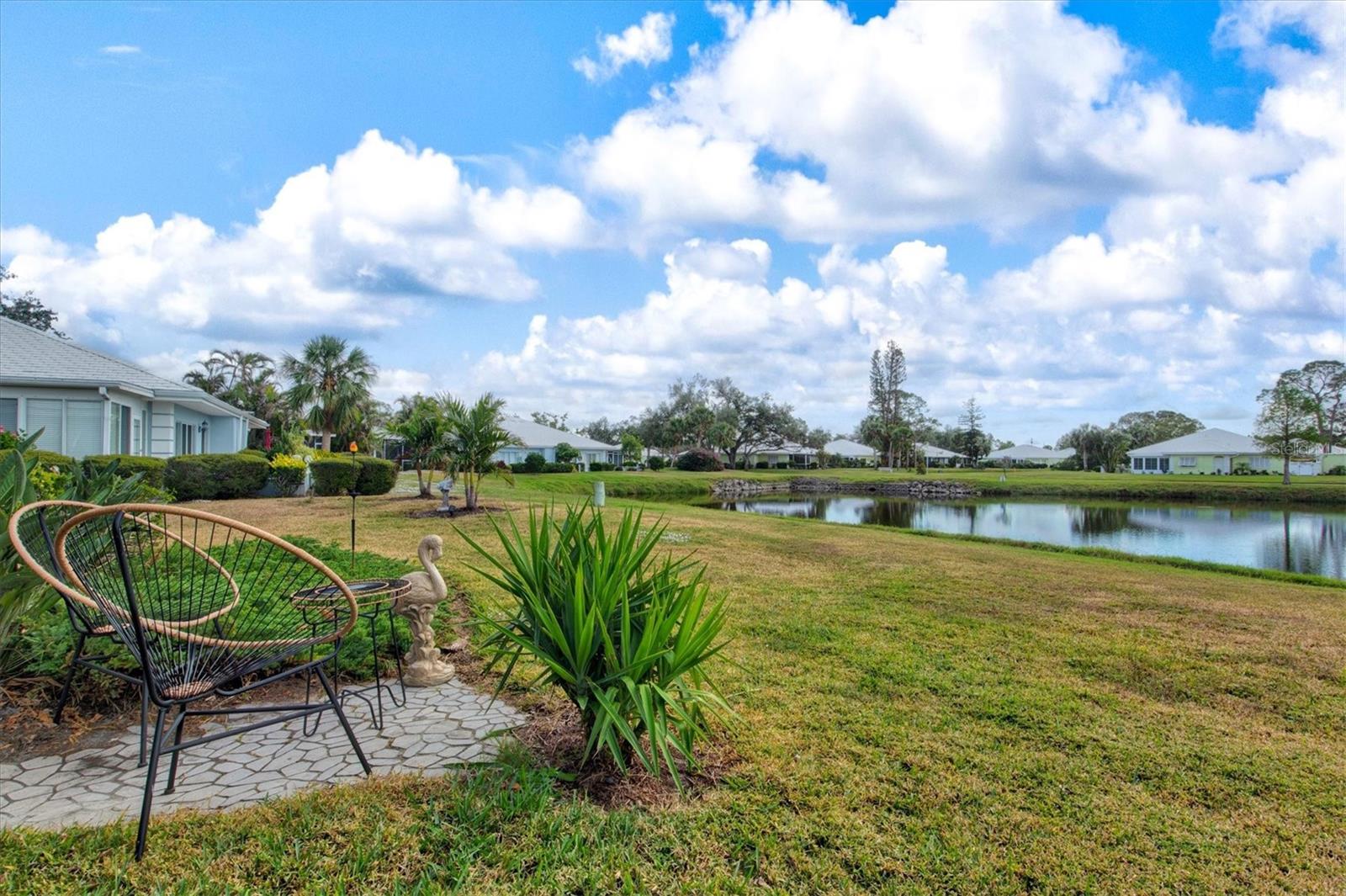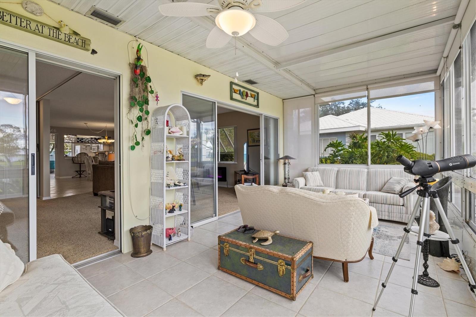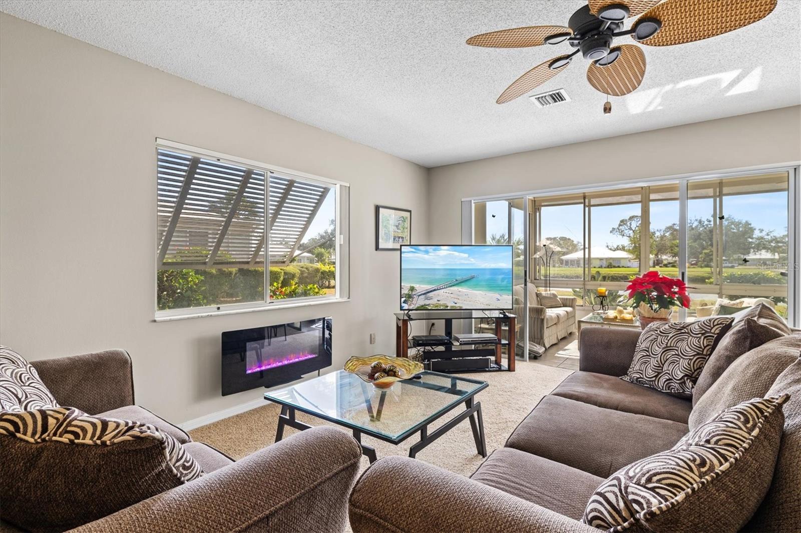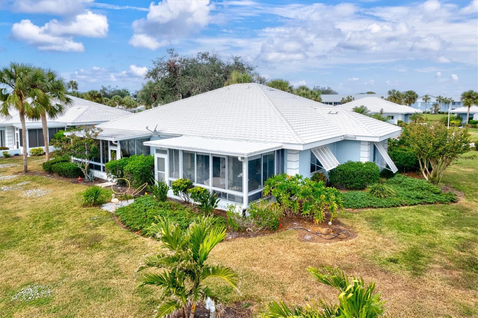 <b>This charming 2-bedroom, 2-bathroom villa is ideally located in the desirable setting at the renowned Plantation Golf & Country Club, a premier golf community.</b> <p> <p> The villa, a perfect blend of comfort with a flexible layout and serene pond views. The charm of this villa is heightened by the inviting enclosed porch, accessible through sliding glass doors that flood the interior with natural light. This peaceful retreat provides the perfect spot for morning coffee or evening relaxation, with views of the pond offering continuous entertainment of nature. <p> <p> The home features an office/den, perfect for working from home or additional living space. The villa features a split floor plan that ensures privacy for both you and your guests. The primary bedroom includes an en-suite bathroom and ample closet space. The second bedroom is conveniently located next to the guest bathroom in a versatile flex area that can be seamlessly opened to the living space or closed off for privacy. <p> <p> Tile flooring in the entry, bathrooms, and kitchen enhances the home's sophistication, while the carpet floors throughout the rest of the living space create a seamless flow. The villa also includes an attached garage for added convenience. Be sure to explore the private outdoor dining space, easily accessible from the kitchen area. <p> <p> With optional club membership, <b>The Plantation Golf & Country Club is a thoughtfully designed master-planned community</b> featuring two 18-hole championship golf courses, 13 Har-Tru tennis courts, 6 pickleball courts, bocce ball, a fitness center, a Jr. Olympic-sized pool, and outstanding dining and activity programs. Conveniently located, the neighborhood is just minutes away from beautiful beaches, diverse dining and shopping options, the vibrant Wellen Park Downtown, the new Atlanta Braves Stadium, and easy access to I-75.