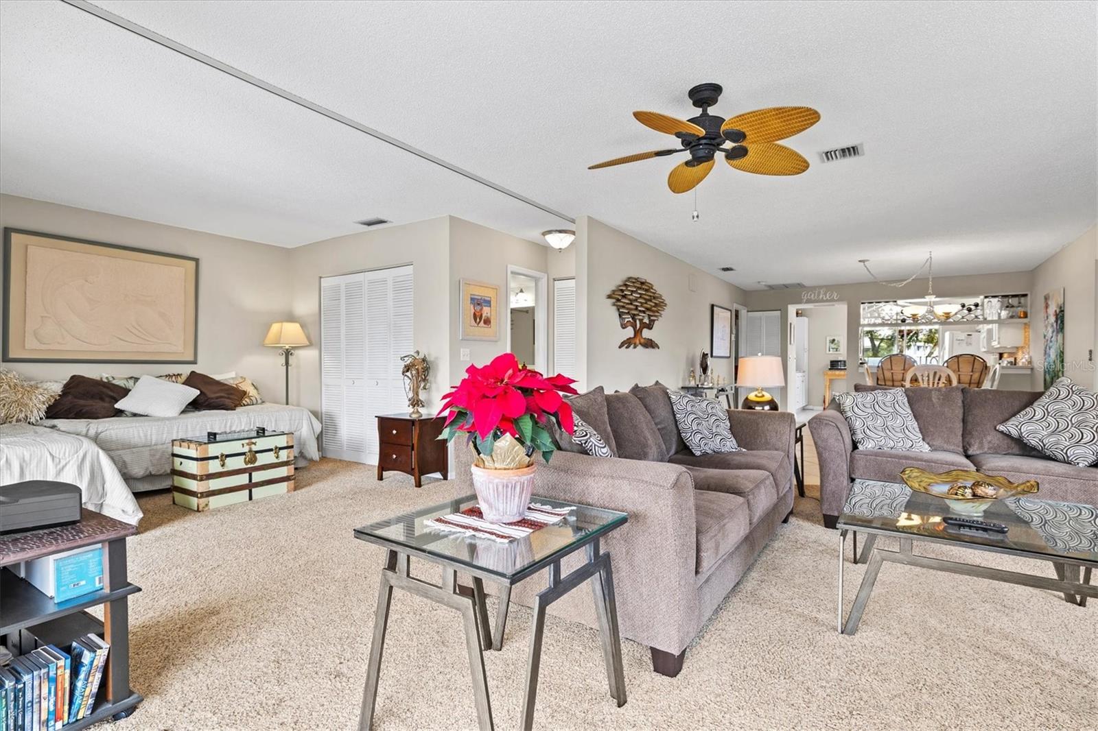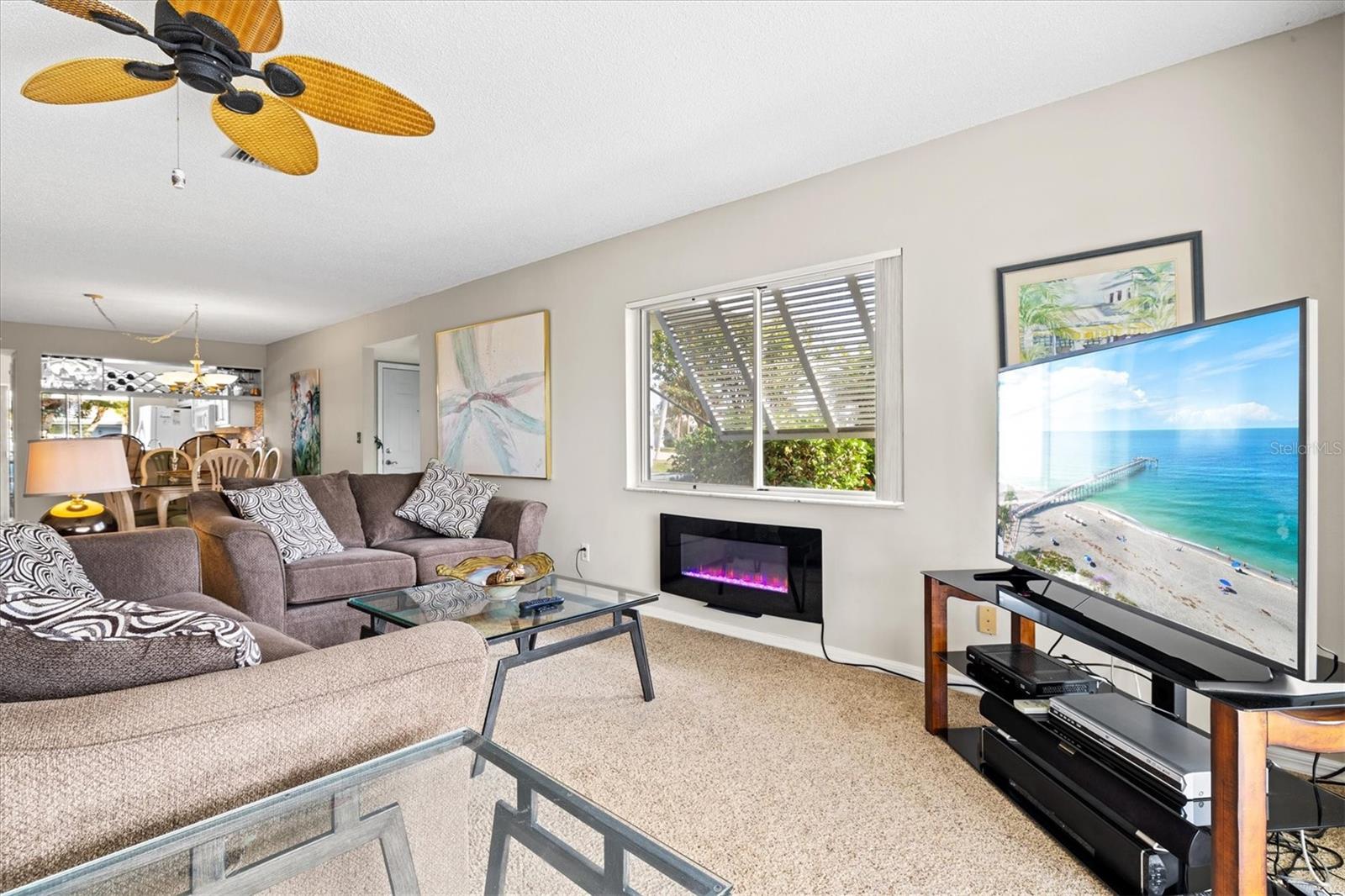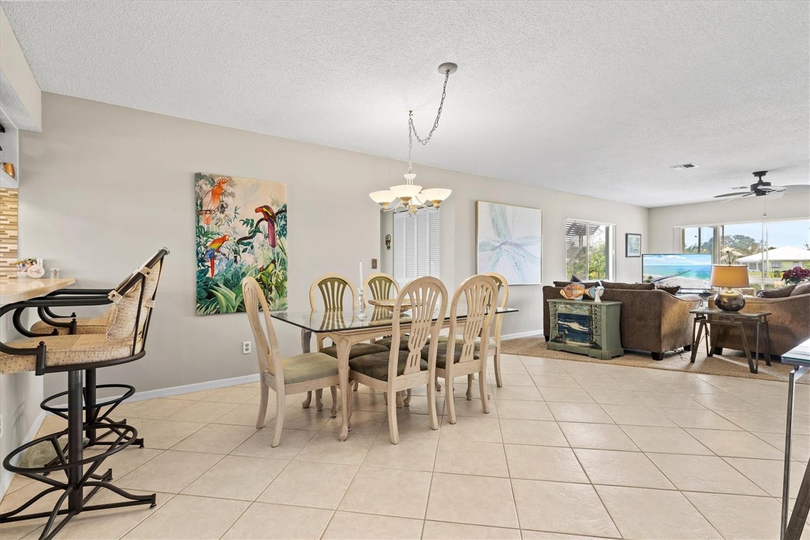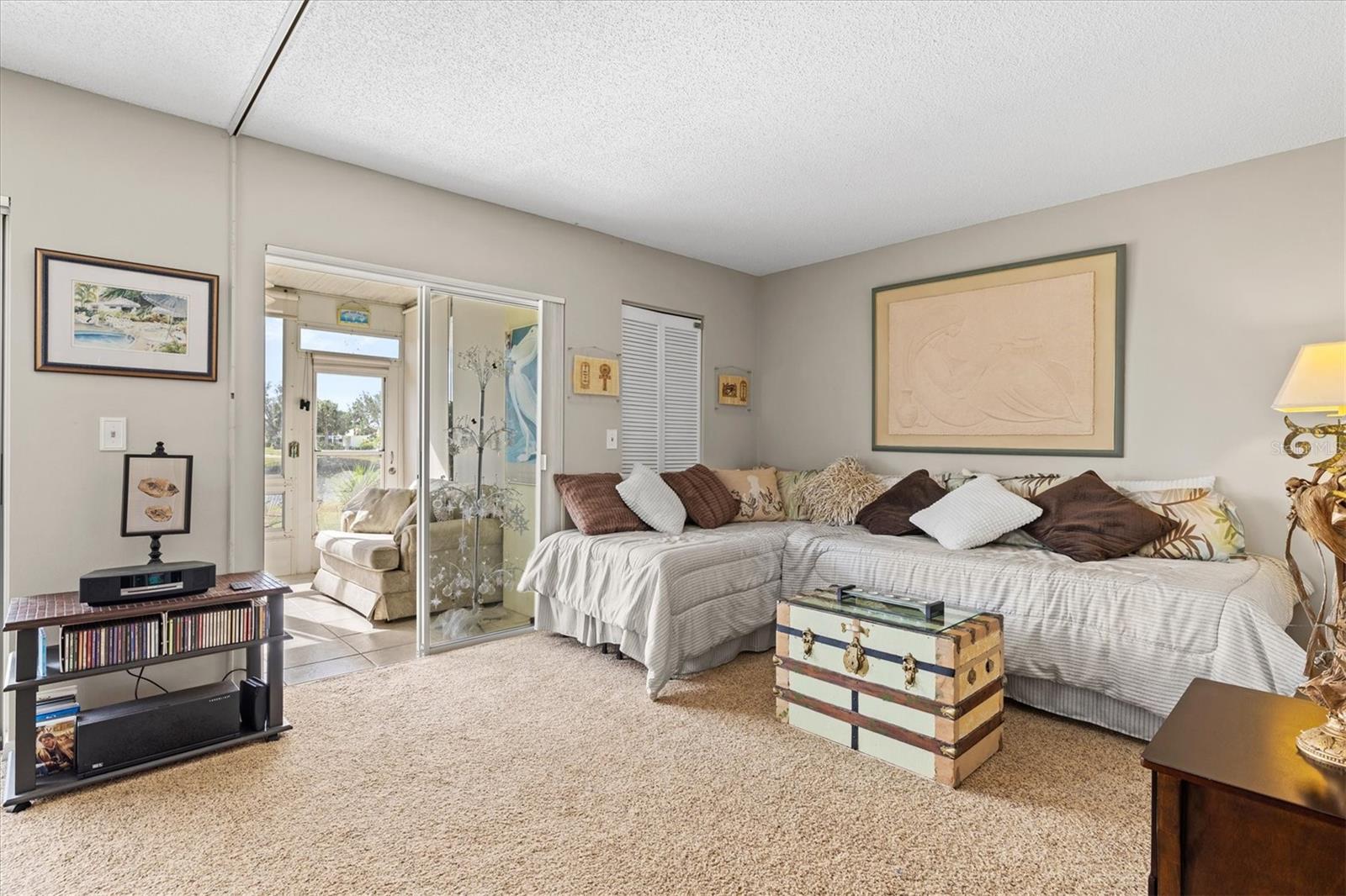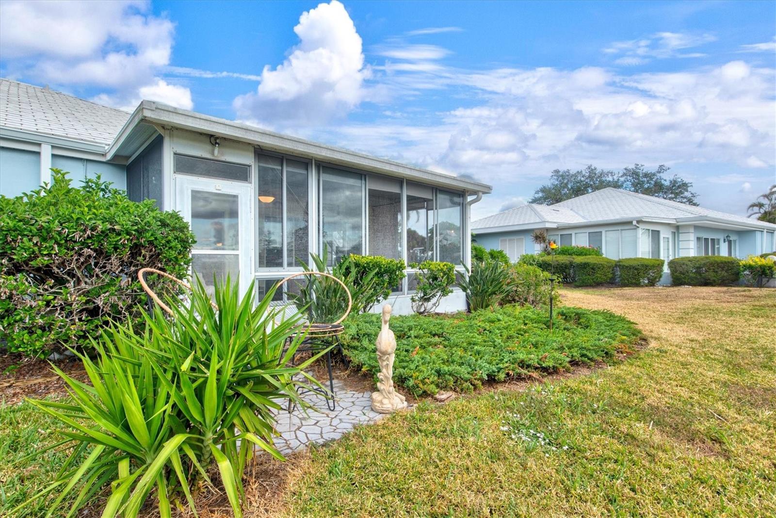 <b>This charming 2-bedroom, 2-bathroom villa is ideally located in the desirable setting at the renowned Plantation Golf & Country Club, a premier golf community.</b> <p> <p> The villa, a perfect blend of comfort with a flexible layout and serene pond views. The charm of this villa is heightened by the inviting enclosed porch, accessible through sliding glass doors that flood the interior with natural light. This peaceful retreat provides the perfect spot for morning coffee or evening relaxation, with views of the pond offering continuous entertainment of nature. <p> <p> The home features an office/den, perfect for working from home or additional living space. The villa features a split floor plan that ensures privacy for both you and your guests. The primary bedroom includes an en-suite bathroom and ample closet space. The second bedroom is conveniently located next to the guest bathroom in a versatile flex area that can be seamlessly opened to the living space or closed off for privacy. <p> <p> Tile flooring in the entry, bathrooms, and kitchen enhances the home's sophistication, while the carpet floors throughout the rest of the living space create a seamless flow. The villa also includes an attached garage for added convenience. Be sure to explore the private outdoor dining space, easily accessible from the kitchen area. <p> <p> With optional club membership, <b>The Plantation Golf & Country Club is a thoughtfully designed master-planned community</b> featuring two 18-hole championship golf courses, 13 Har-Tru tennis courts, 6 pickleball courts, bocce ball, a fitness center, a Jr. Olympic-sized pool, and outstanding dining and activity programs. Conveniently located, the neighborhood is just minutes away from beautiful beaches, diverse dining and shopping options, the vibrant Wellen Park Downtown, the new Atlanta Braves Stadium, and easy access to I-75.