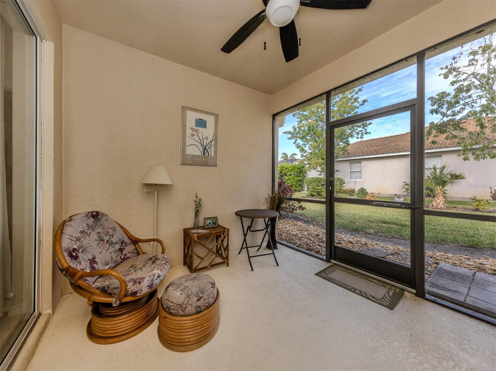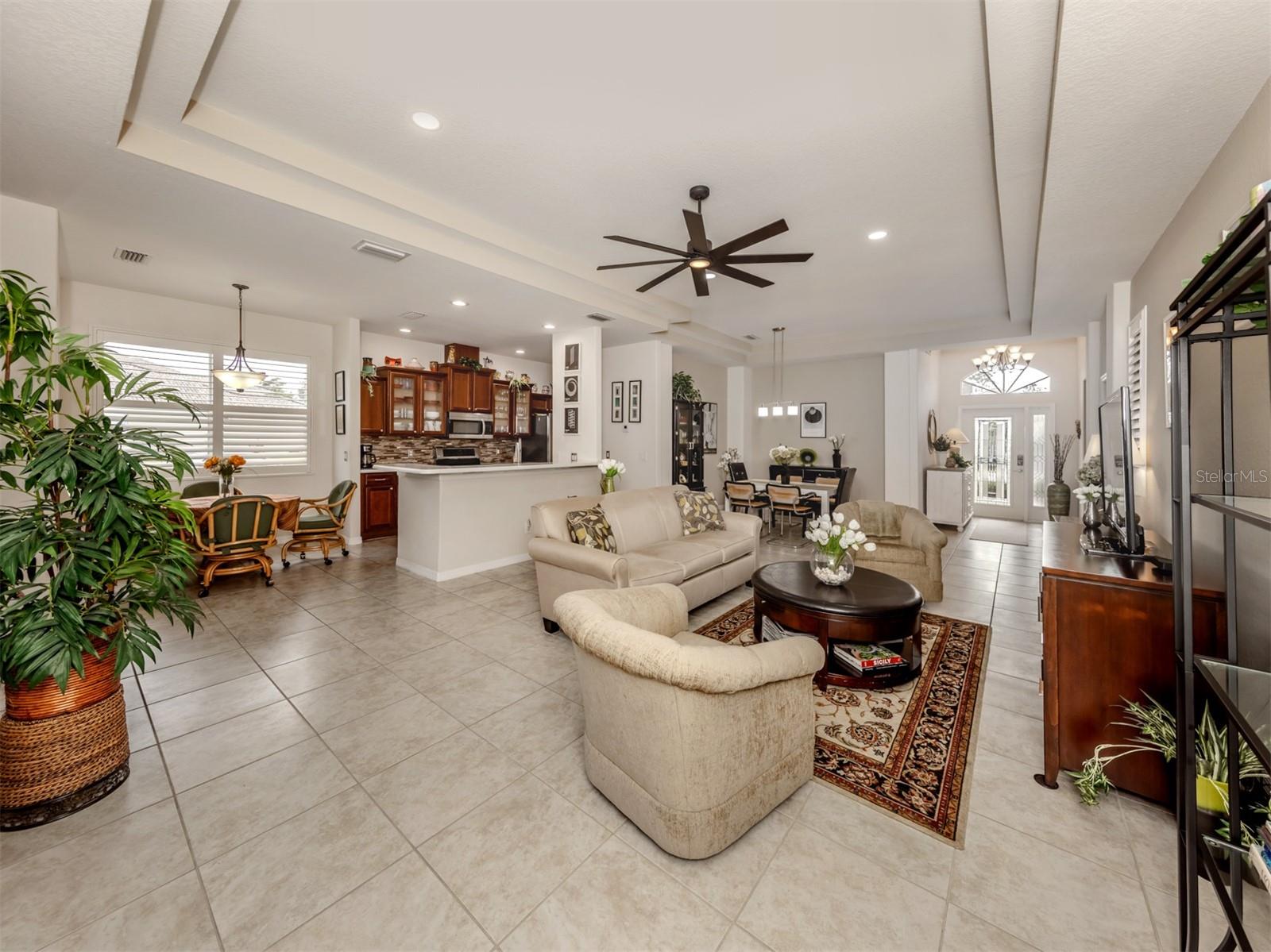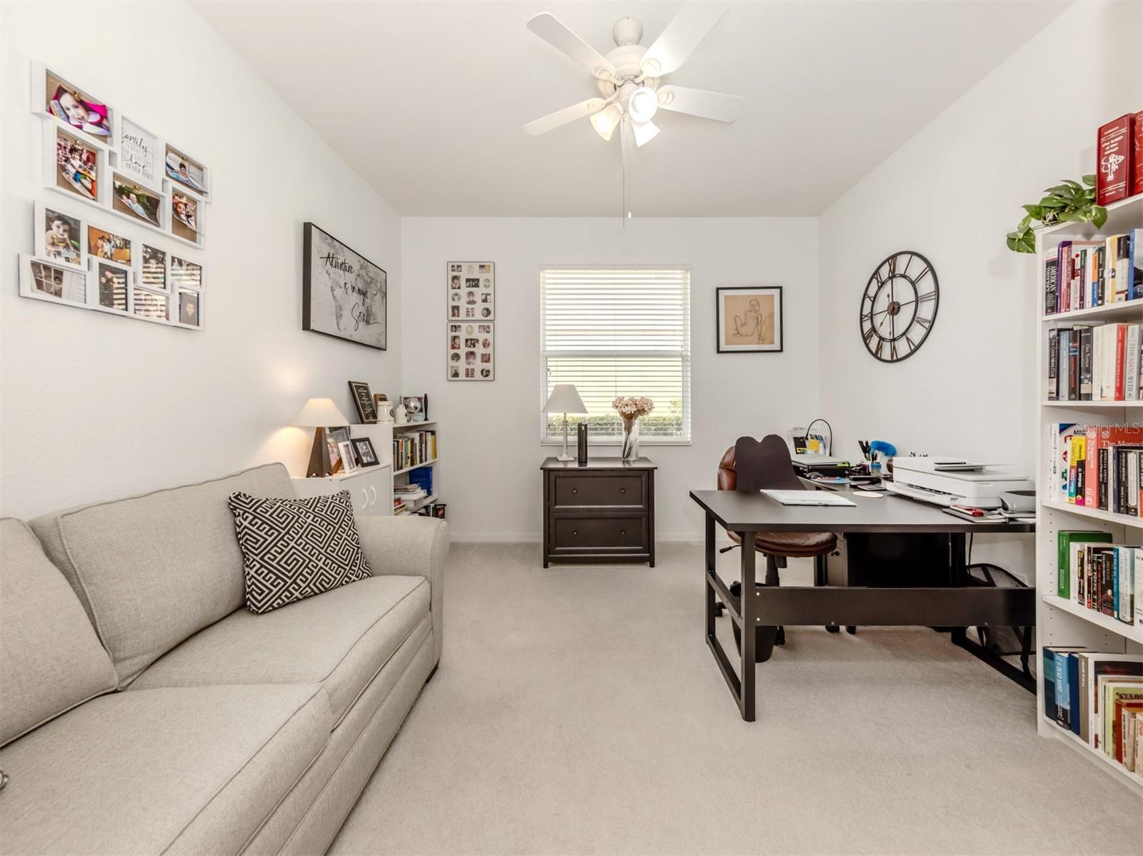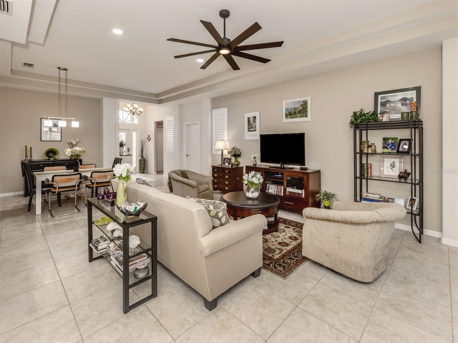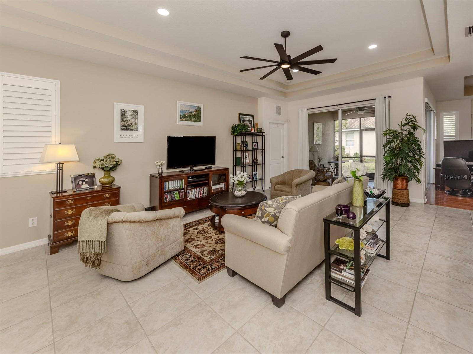 This well maintained eloquently appointed home is MOVE in ready and has FULL HURRICANE PROTECTION with NO Flood Zone! This beautifully maintained, 1,942-square-foot home that offers a blend of comfort and elegance is ideal for those who cherish indoor and outdoor living and PLENTY OF ROOM for a pool to be added or the lanai extended. The home boasts two bedrooms, a den, two baths, great room design, cafe, dining room, family room, laundry room and a two-car garage in a no-flood zone! Upgrades include 2024 irrigation distribution box, 2023 transfer switch for generator, generator, 2021 front door storm shutter, 2021 hot water heater, 2019 AC, new fans in the great room and family room, new lighting, custom plantation shutters, updated landscaping and more. As you enter, you are greeted by a charming, open and spacious floor plan filled with an abundance of natural light. The well-designed layout seamlessly connects the dining, kitchen and great room areas, creating an ideal space for entertaining family and friends. The great room is bright and includes sliding glass door access to the lanai, allowing you to extend your living space. The kitchen features solid wood cabinetry, custom bubble glass cabinetry, solid surface countertops, breakfast bar, stainless steel appliances, pantry and cafe space, making this kitchen a chef's dream. The formal dining room is just off the kitchen, making this a nice, cozy space when entertaining and serving those special meals. At the back of the home, you will find a private primary suite with a large walk-in closet, additional closet and private en-suite with solid wood cabinetry, solid surface countertops, dual sinks, walk-in shower, large garden tub and private water closet. The second additional bedroom is located on the front of the home and near the second full bath, creating a tropical oasis for guests. The den is off the great room and features a private door, allowing this space to be utilized as an office, craft room or used for overflow guests. At the rear of the home, you will find the sun-filled family room, which extends your living space and opens directly to the lanai. The ideal place to watch a movie or play a game after a day at the beach. Stoneybrook of Venice is a family-friendly community with many amenities such as a guarded gate, community center, fitness center, gathering room with kitchen, movie room, resort-style pool, hot tub, splash pool, sand volleyball, playground, ball fields, splash park and pickleball courts coming soon as monies have been allocated. Close to Interstate 75 and downtown Venice, the newly built Sarasota Memorial Hospital, shopping, dining, pristine Gulf beaches, Sarasota County's A-rated schools and Atlanta Braves spring training ballpark. ****The current Wind Mitigation is attached in MLS and shows the roof is in EXCELLENT condition!****