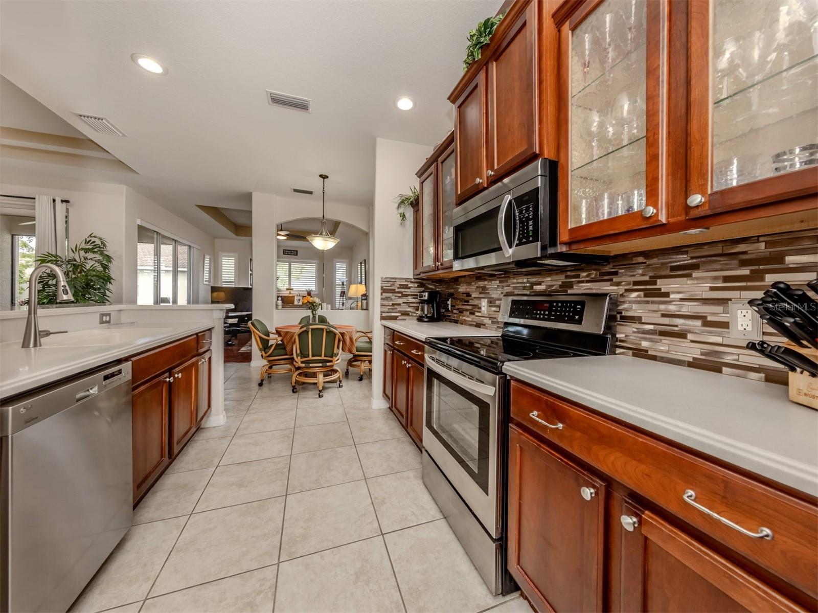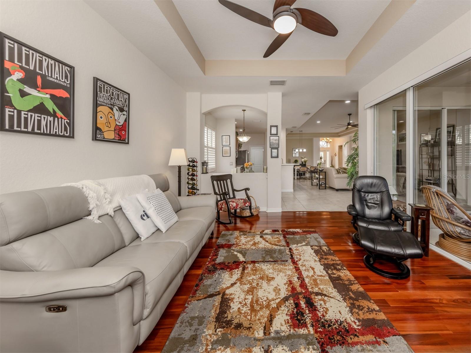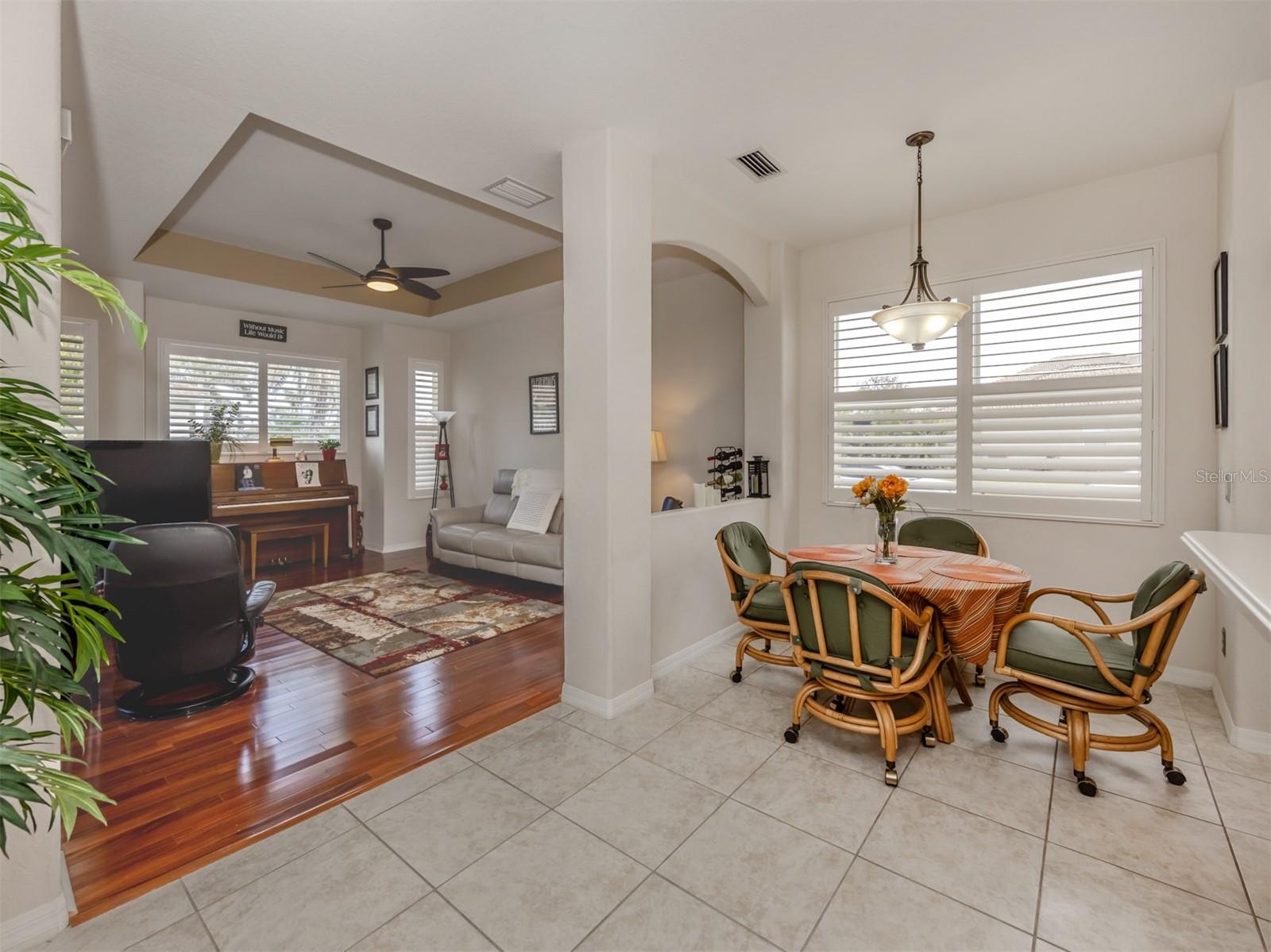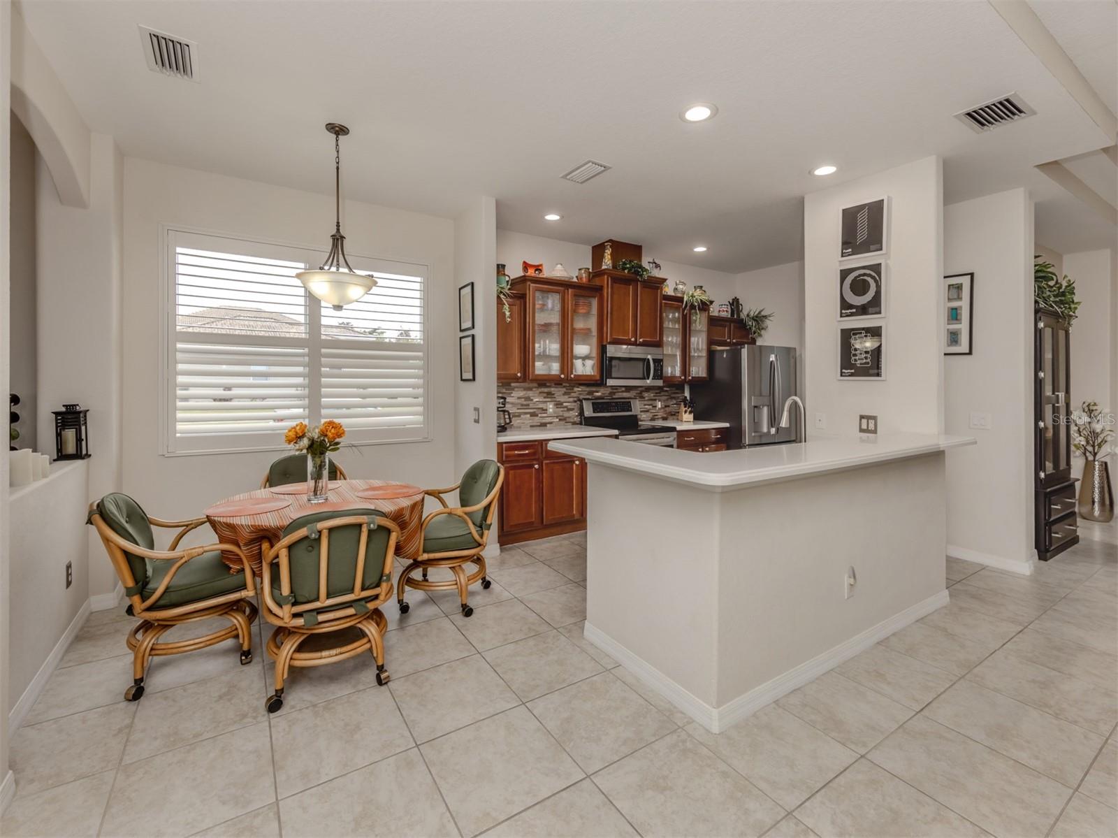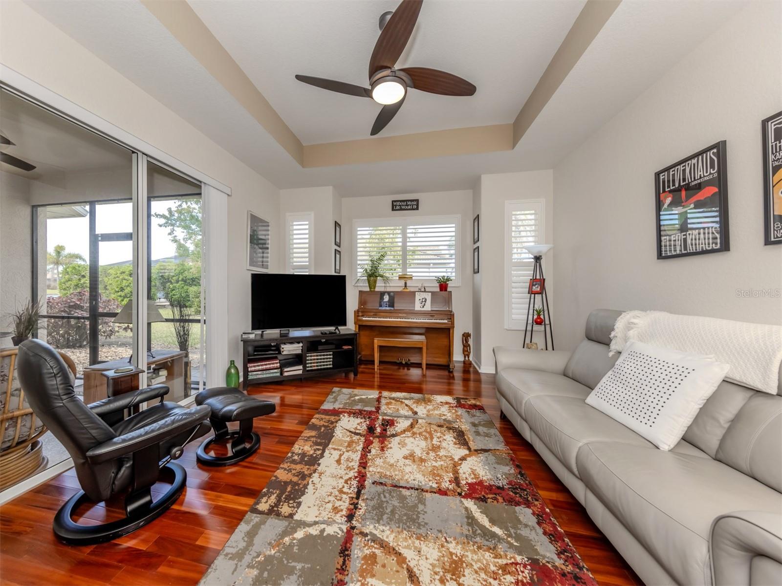 This well maintained eloquently appointed home is MOVE in ready and has FULL HURRICANE PROTECTION with NO Flood Zone! This beautifully maintained, 1,942-square-foot home that offers a blend of comfort and elegance is ideal for those who cherish indoor and outdoor living and PLENTY OF ROOM for a pool to be added or the lanai extended. The home boasts two bedrooms, a den, two baths, great room design, cafe, dining room, family room, laundry room and a two-car garage in a no-flood zone! Upgrades include 2024 irrigation distribution box, 2023 transfer switch for generator, generator, 2021 front door storm shutter, 2021 hot water heater, 2019 AC, new fans in the great room and family room, new lighting, custom plantation shutters, updated landscaping and more. As you enter, you are greeted by a charming, open and spacious floor plan filled with an abundance of natural light. The well-designed layout seamlessly connects the dining, kitchen and great room areas, creating an ideal space for entertaining family and friends. The great room is bright and includes sliding glass door access to the lanai, allowing you to extend your living space. The kitchen features solid wood cabinetry, custom bubble glass cabinetry, solid surface countertops, breakfast bar, stainless steel appliances, pantry and cafe space, making this kitchen a chef's dream. The formal dining room is just off the kitchen, making this a nice, cozy space when entertaining and serving those special meals. At the back of the home, you will find a private primary suite with a large walk-in closet, additional closet and private en-suite with solid wood cabinetry, solid surface countertops, dual sinks, walk-in shower, large garden tub and private water closet. The second additional bedroom is located on the front of the home and near the second full bath, creating a tropical oasis for guests. The den is off the great room and features a private door, allowing this space to be utilized as an office, craft room or used for overflow guests. At the rear of the home, you will find the sun-filled family room, which extends your living space and opens directly to the lanai. The ideal place to watch a movie or play a game after a day at the beach. Stoneybrook of Venice is a family-friendly community with many amenities such as a guarded gate, community center, fitness center, gathering room with kitchen, movie room, resort-style pool, hot tub, splash pool, sand volleyball, playground, ball fields, splash park and pickleball courts coming soon as monies have been allocated. Close to Interstate 75 and downtown Venice, the newly built Sarasota Memorial Hospital, shopping, dining, pristine Gulf beaches, Sarasota County's A-rated schools and Atlanta Braves spring training ballpark. ****The current Wind Mitigation is attached in MLS and shows the roof is in EXCELLENT condition!****