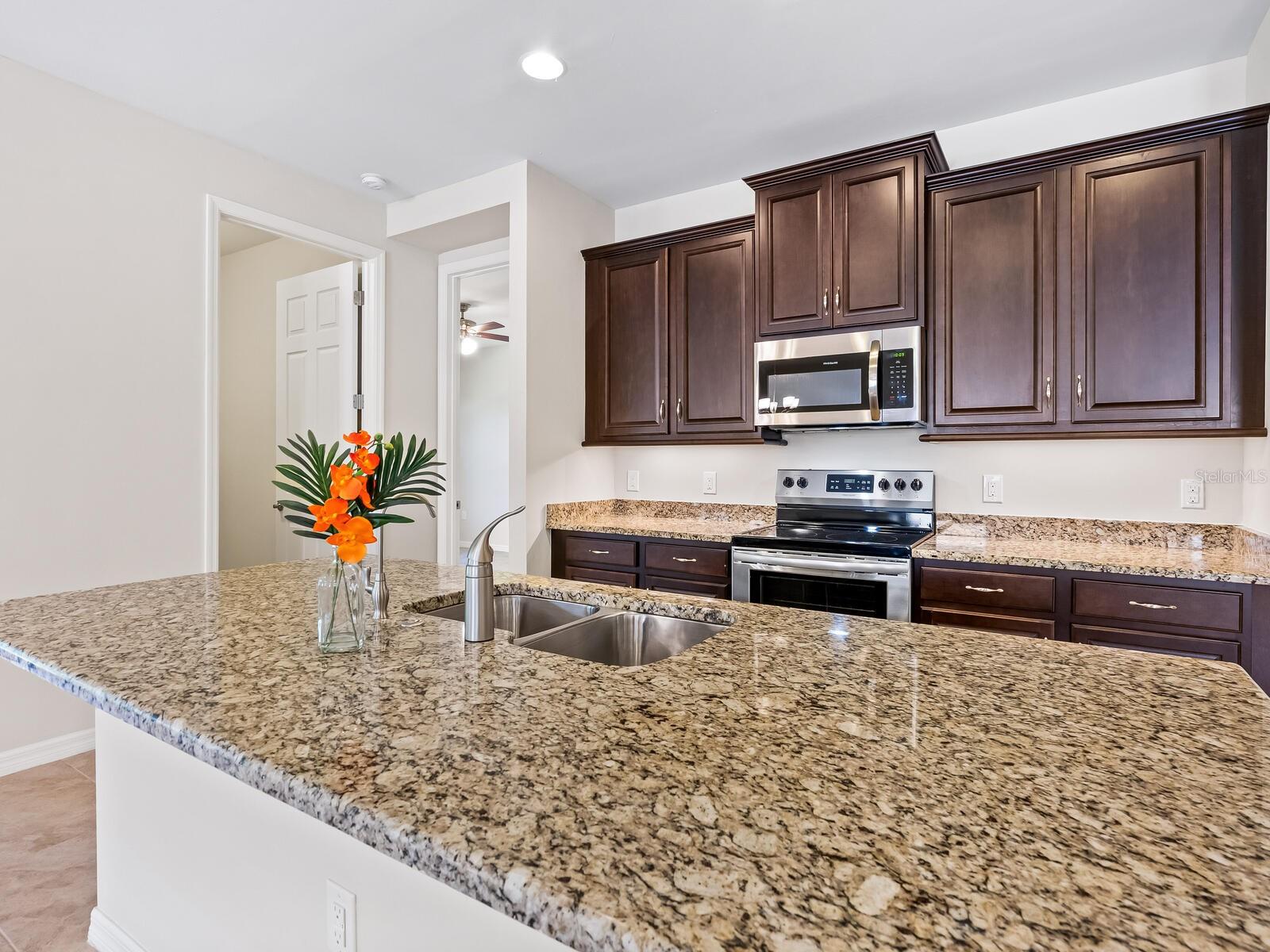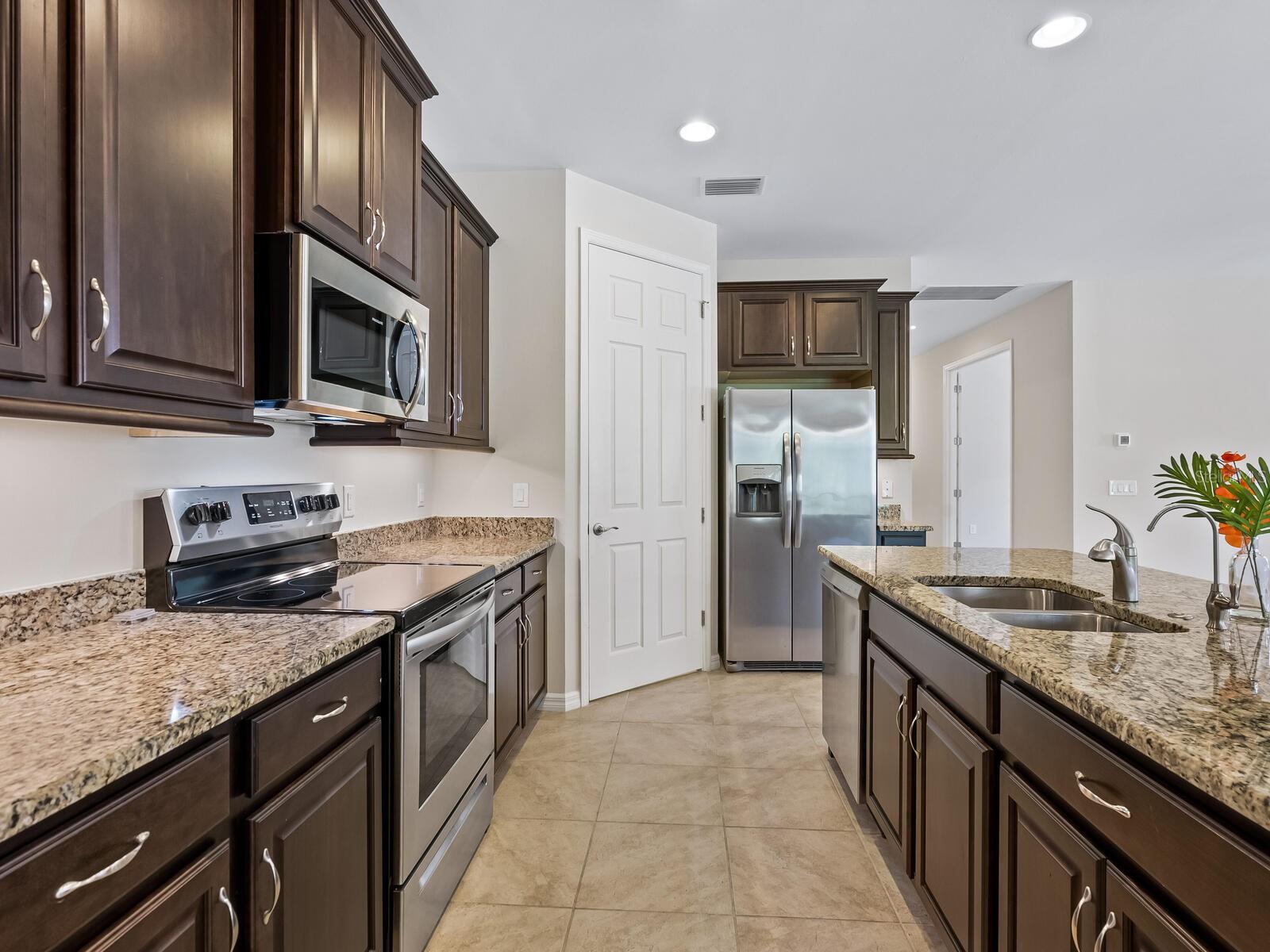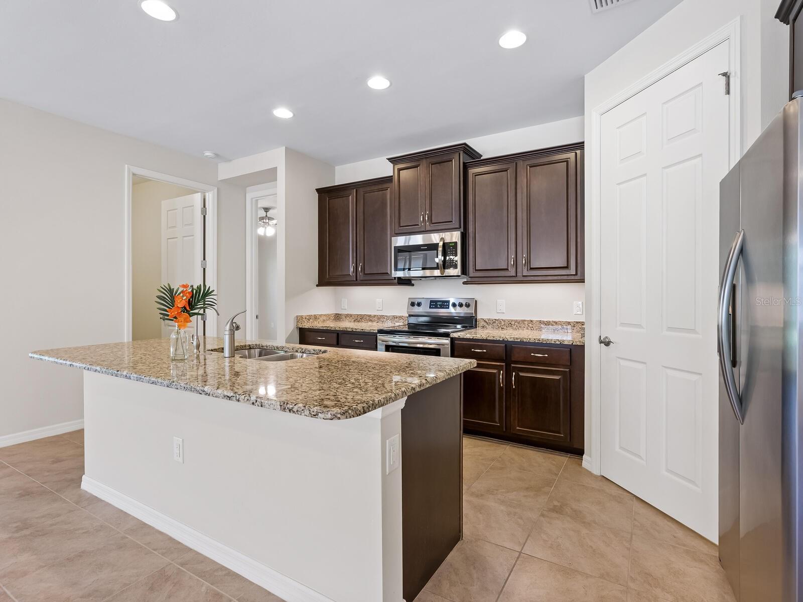 Move-in-ready home in the Preserve at West Villages! This 2-bedroom, plus den, 2-bath residence offers 1,824 square feet of living space with the desirable Clifton open floor plan. Located in a gated community with just 244 homes, you'll enjoy excellent amenities and proximity to Wellen Park's new shops and restaurants. The open kitchen features granite countertops, stainless steel appliances, wood cabinets with trim, undermount lights, walk-in pantry, and a reverse osmosis water system. Tile floors span the entire home, complemented by a whole-house water softener system that benefits both your pipes and skin. The open, split floor plan ensures privacy between the primary suite, guest bedroom, and den/office. The primary suite, positioned at the rear of the home, includes two walk-in closets and a spacious bathroom with granite countertops, a large shower, and a private WC. The guest bedroom and bathroom are located at the front, while the den/office, with French door entry, is conveniently situated near the kitchen and Great Room. Pavers accentuate the driveway, walkway, and screened lanai, with decorative stone accents enhancing the home's exterior charm. The community offers a clubhouse, fitness center, resort-style pool, bocce courts, and pickleball courts, all with very reasonable HOA fees. You're just a short drive from sunny beaches and the Atlanta Braves training stadium. With easy access to I-75 and US 41, this home is perfectly situated to enjoy the best of Wellen Park, Venice, Northport, and Sarasota!
