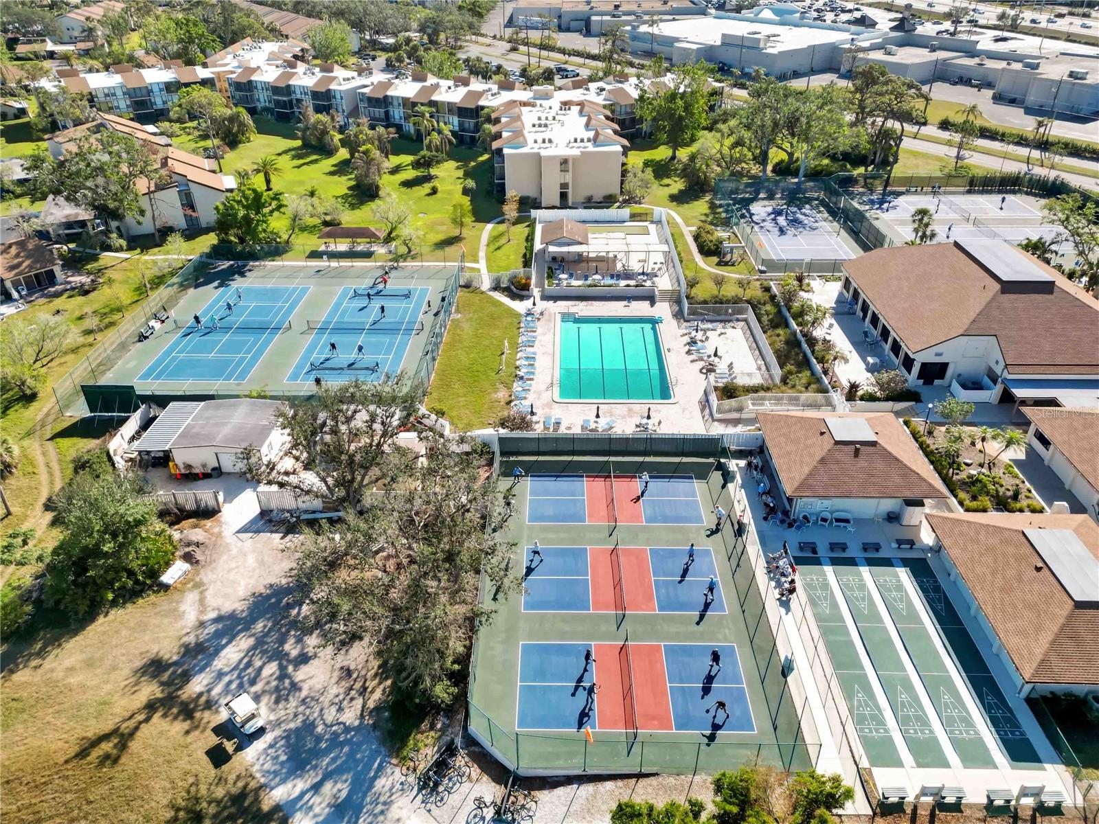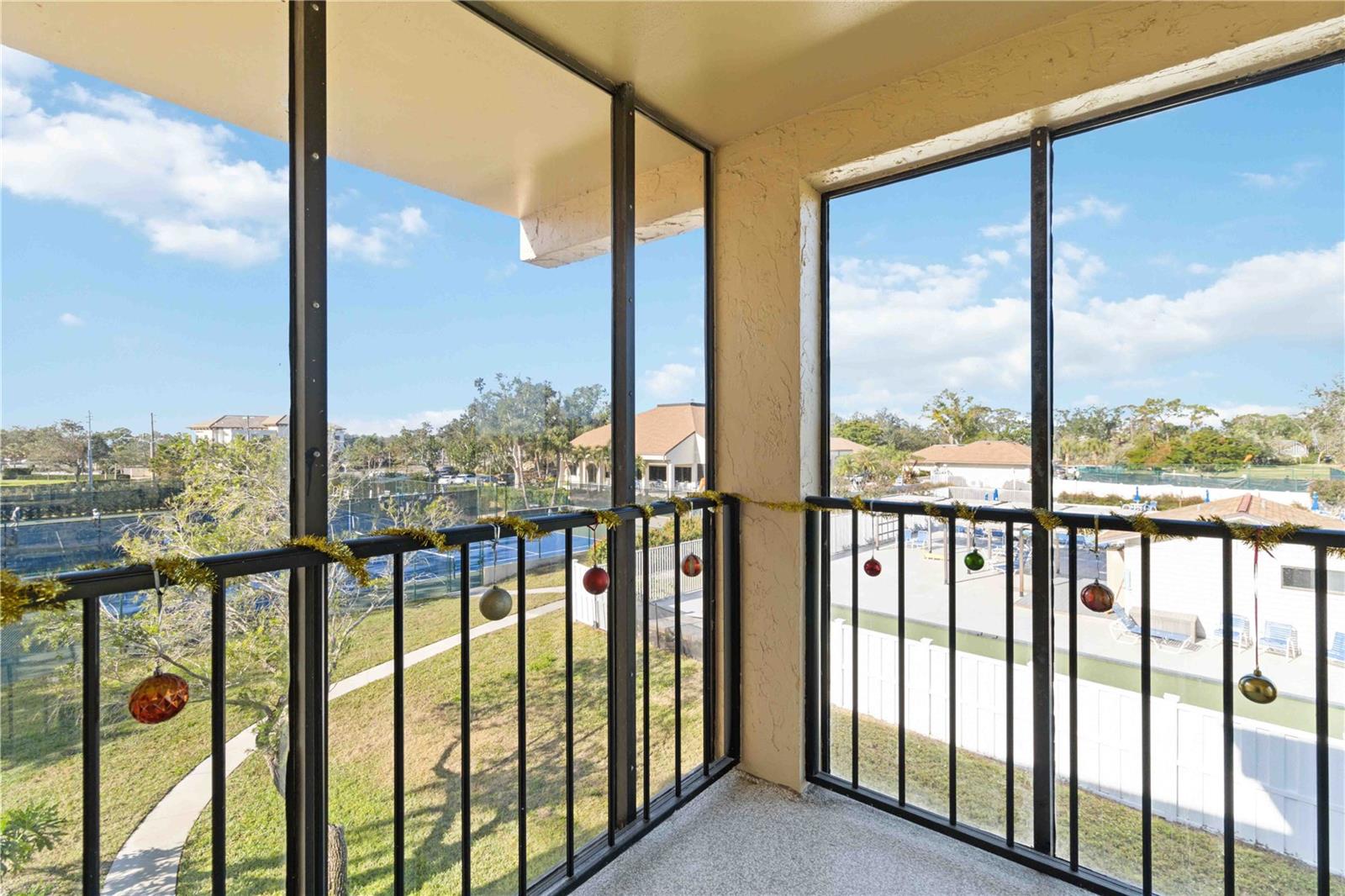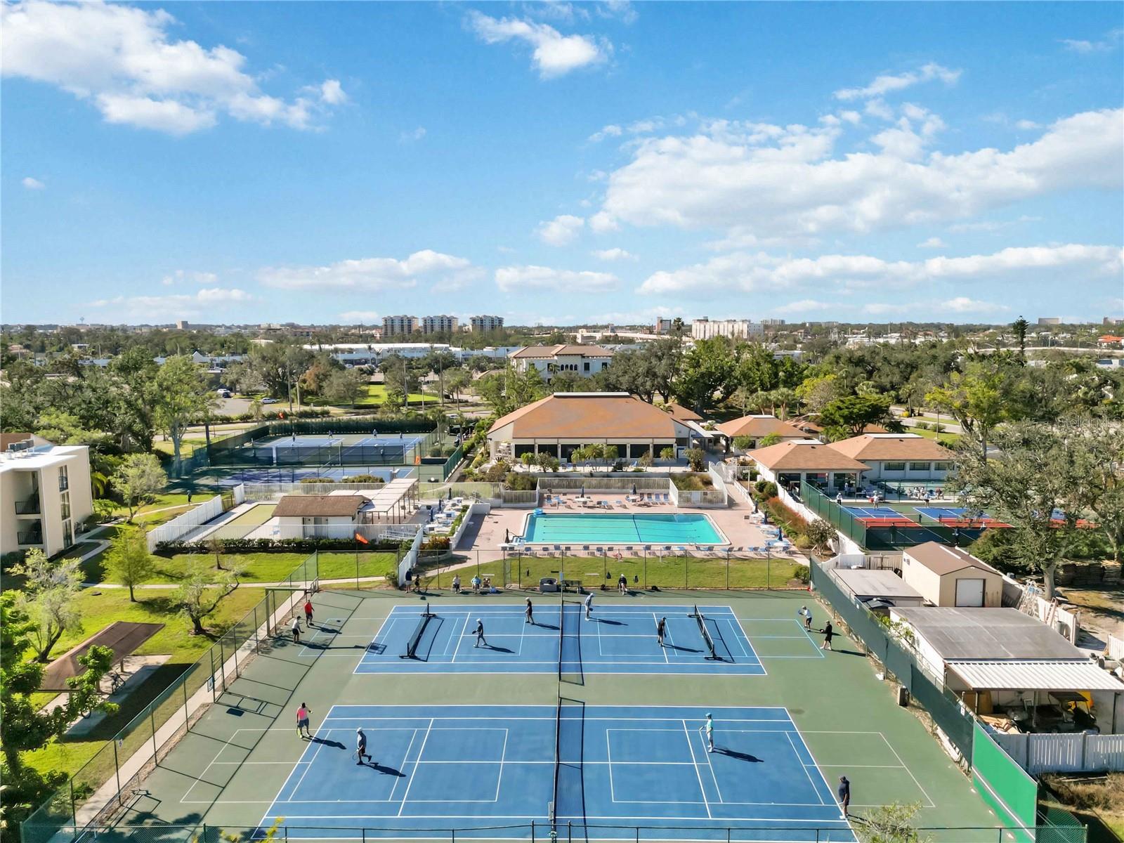 What a view from this 3rd floor end unit overlooking the tennis courts and pool! Full length windows in both bedrooms as well as the living room lets the light pour in. Sit out on the porch and watch the tennis players. Elevator makes it super easy to access! Laundry room is on the same floor. Selling turnkey so all you need to bring is your suitcases. Extra storage unit down the hall. 2 year old roof and resurfaced community pool. Only 2 miles to Venice Beach! Come check it out, Bird Bay has so much to do: clubhouse, pool, gym, library, yoga studio, tennis courts, pickleball courts, basketball hoop, shuffleboard courts, bocce turf court, and ping-pong! **Seller is offering a $9,000 credit to cover new A/C & Hot Water Heater!** (Current ones are working fine but are older models) Required Structural Inspections have been completed on the building and no issues were found.