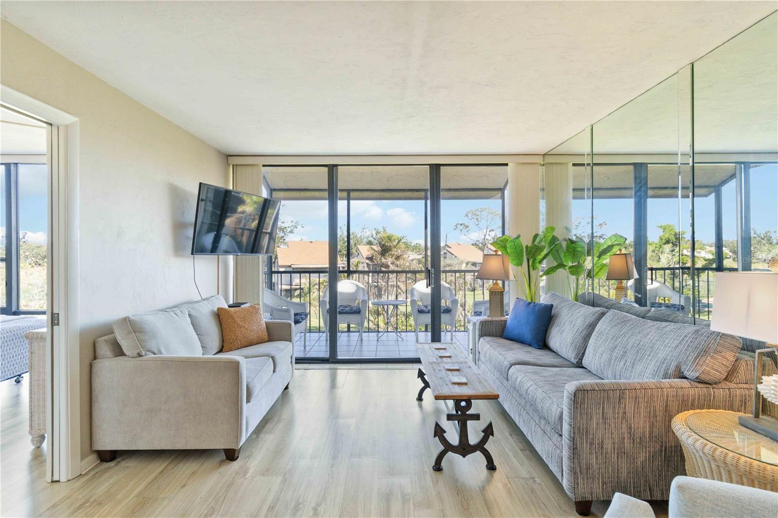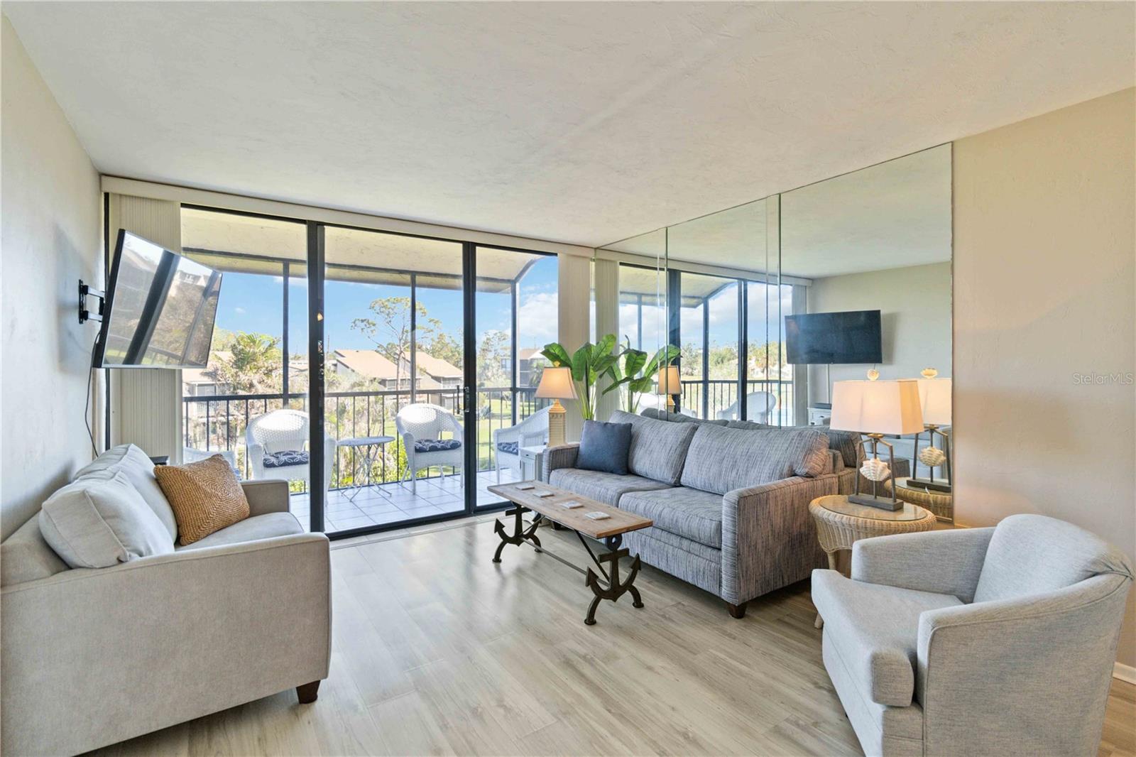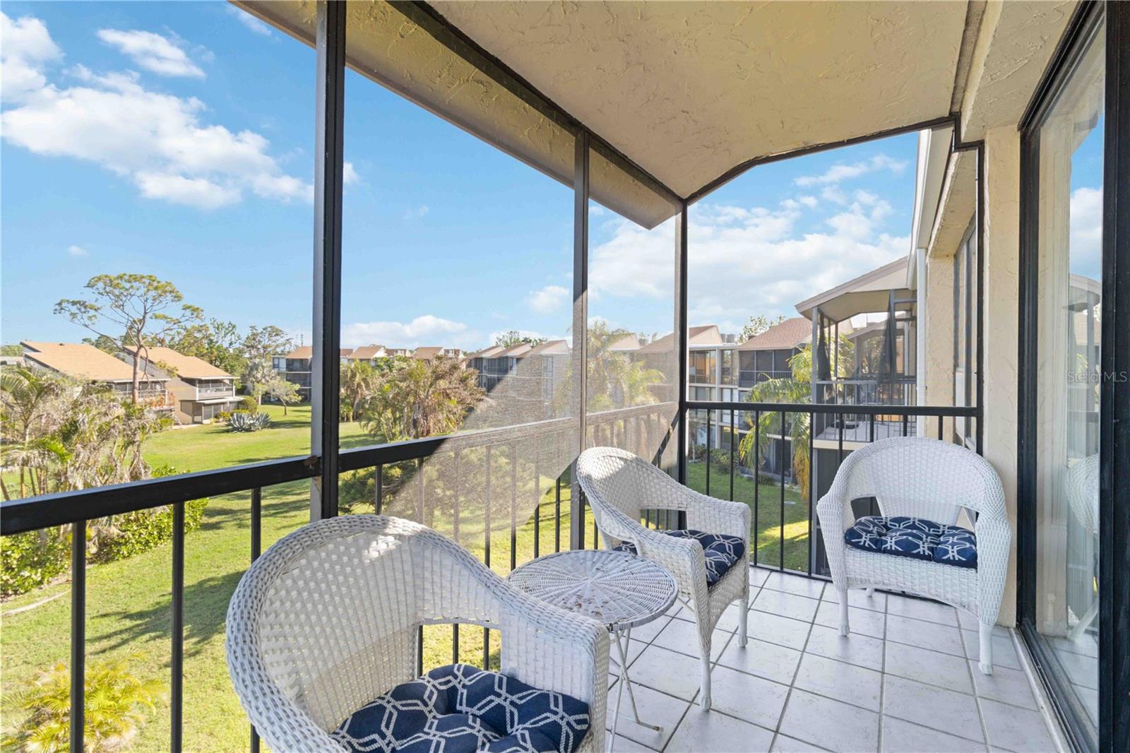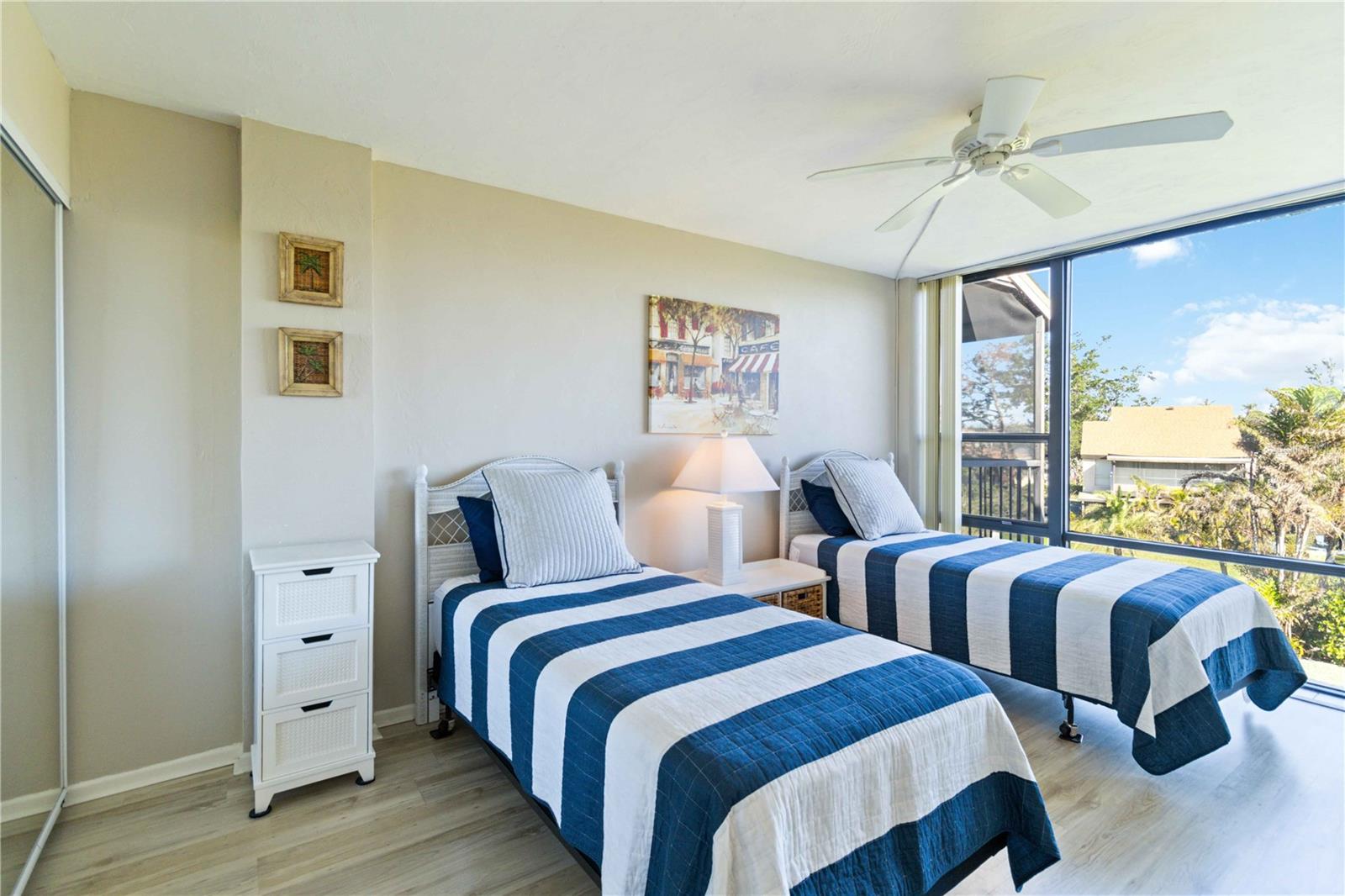 What a view from this 3rd floor end unit overlooking the tennis courts and pool! Full length windows in both bedrooms as well as the living room lets the light pour in. Sit out on the porch and watch the tennis players. Elevator makes it super easy to access! Laundry room is on the same floor. Selling turnkey so all you need to bring is your suitcases. Extra storage unit down the hall. 2 year old roof and resurfaced community pool. Only 2 miles to Venice Beach! Come check it out, Bird Bay has so much to do: clubhouse, pool, gym, library, yoga studio, tennis courts, pickleball courts, basketball hoop, shuffleboard courts, bocce turf court, and ping-pong! **Seller is offering a $9,000 credit to cover new A/C & Hot Water Heater!** (Current ones are working fine but are older models) Required Structural Inspections have been completed on the building and no issues were found.