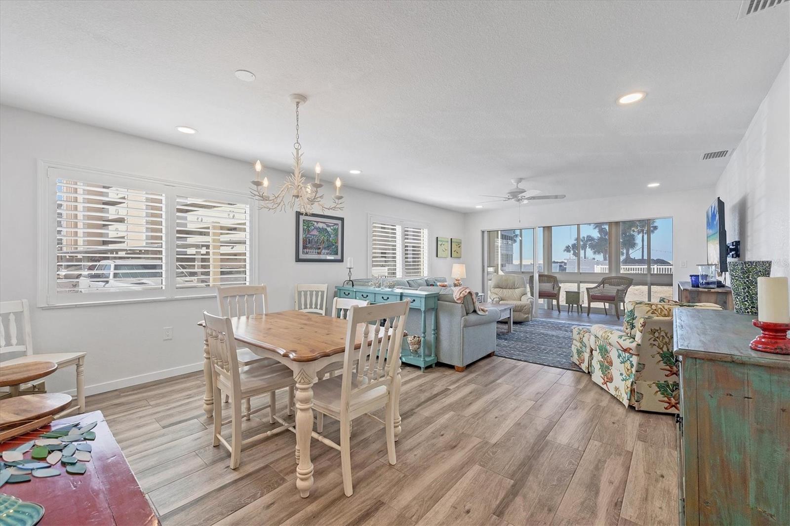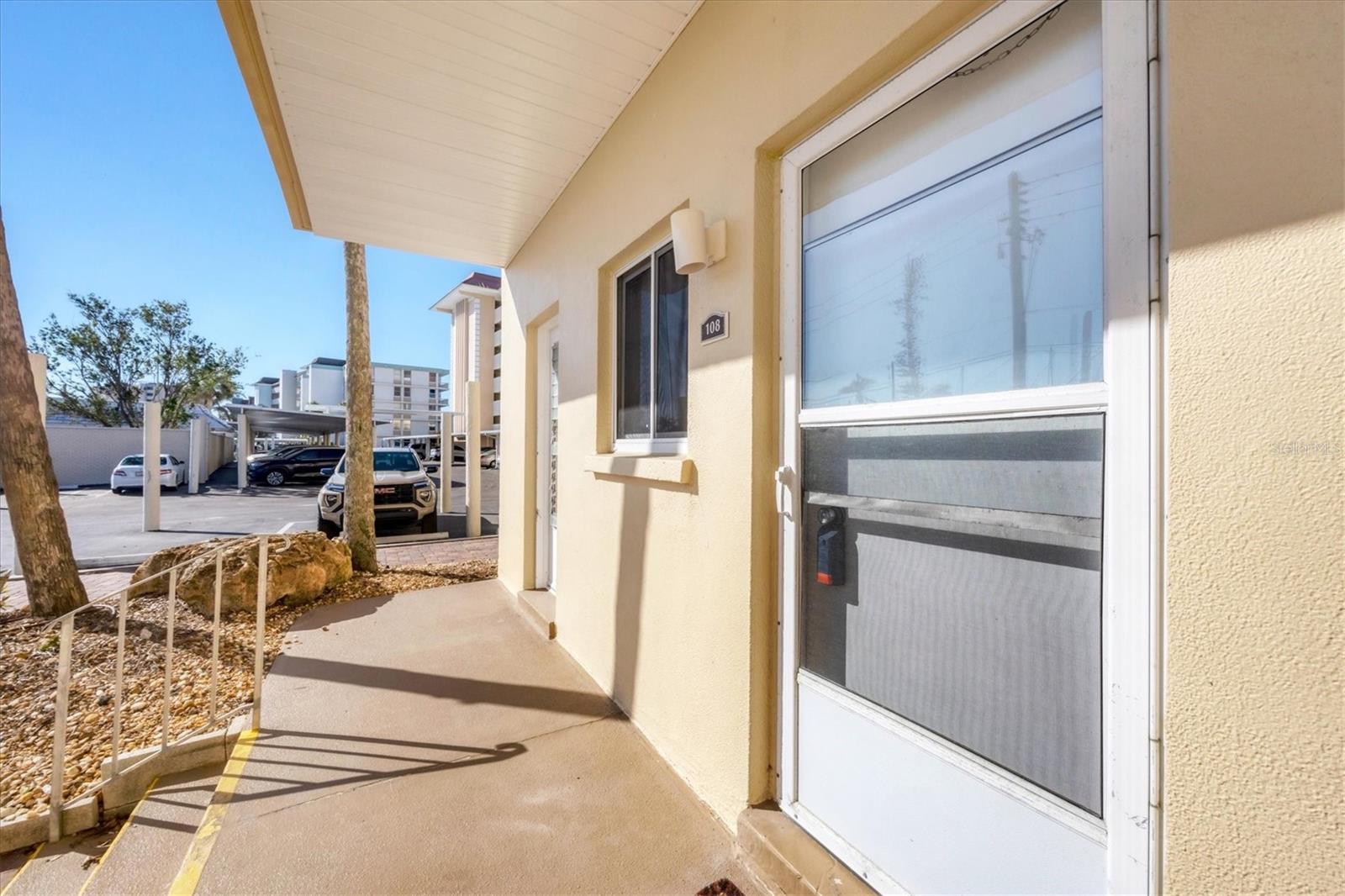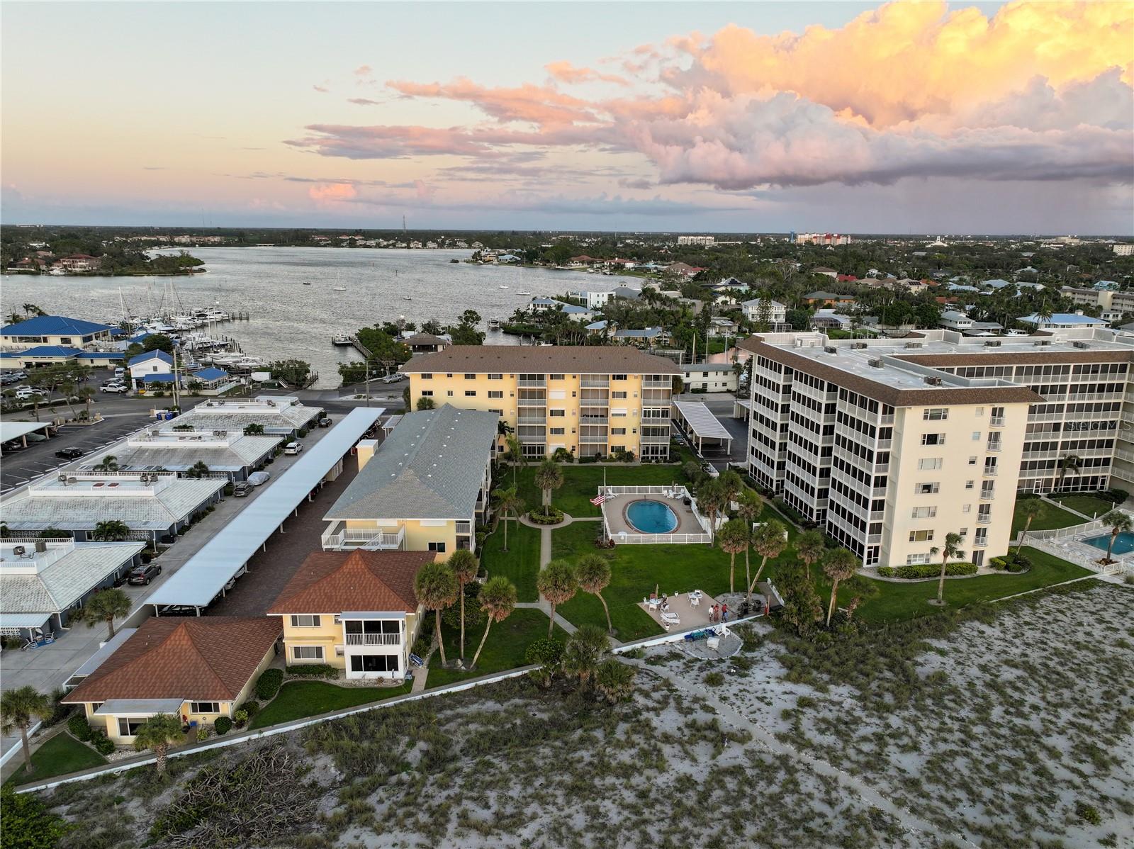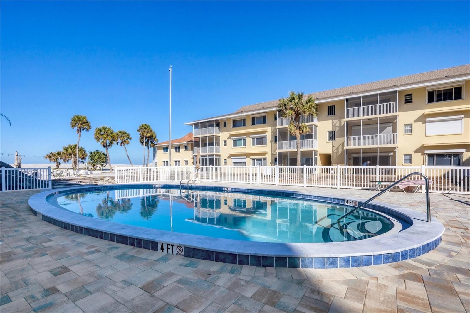 THE ONLY ground floor unit in Chateaugay that did not receive any damages from at least the last 3 major hurricanes! Looking for location and no maintenance? This is it! This beauty was renovated in 2021 and boosts of wood-like tile floors, Plantation shutters and blinds on all windows, new lighting, fans, new custom pantry, and a large pass-through opening to the breakfast bar. The kitchen is renovated with granite countertops and white cabinets. The new bathrooms feature tile showers in both as well as new vanities, faucets, and granite countertops. Ceilings were raised throughout the condo and all walls were textured and painted in the makeover. The hurricane windows and door on the lanai have new roll blinds for turtle season and new wood-like tile flooring. The walk-in closet in the primary bedroom features a barn door and built-ins. There is a storage closet inside the condo as well as a dedicated storage closet for this unit in the three-story building. The electrical has been updated, as well as all new plumbing supply lines and drains and the HVAC duct work has been replaced. Laundry is right down the walk, where you have 3 industrial sized washers and dryers at your disposal, at no charge. The pool and enlarged patio were completely redone in 2025, pool equipment is brand-new and pool is heated in the winter. On the patio are grills and tables for alfresco dining. There is even a firepit when the air is slightly chilly! Brand new front door in May 2025! The exterior of the complex will be painted white with a blue trim in 2025 and new landscaping is going in this fall. As you look out the condo, through the lanai, the yard, pool, patio and beach are your own “backyard”, like being in a house but with no maintenance to take care of. This is the place memories can be made, days with friends spent and evenings on the beach watching the sun set with friends. With only 34 units, it is easy to get to know other owners. During the winter months there are always activities: food trucks, games, parties, book clubs, pot-lucks, firepit nights and celebrations. And the beach is right out your “back door”, no elevator to deal with! Easy to get to downtown, Freedom Boat Club, Venice Yacht Club, Higel Marine Park, Crow’s Nest and the South Jetty! Bring your bicycles and walking shoes as it is close to everything!