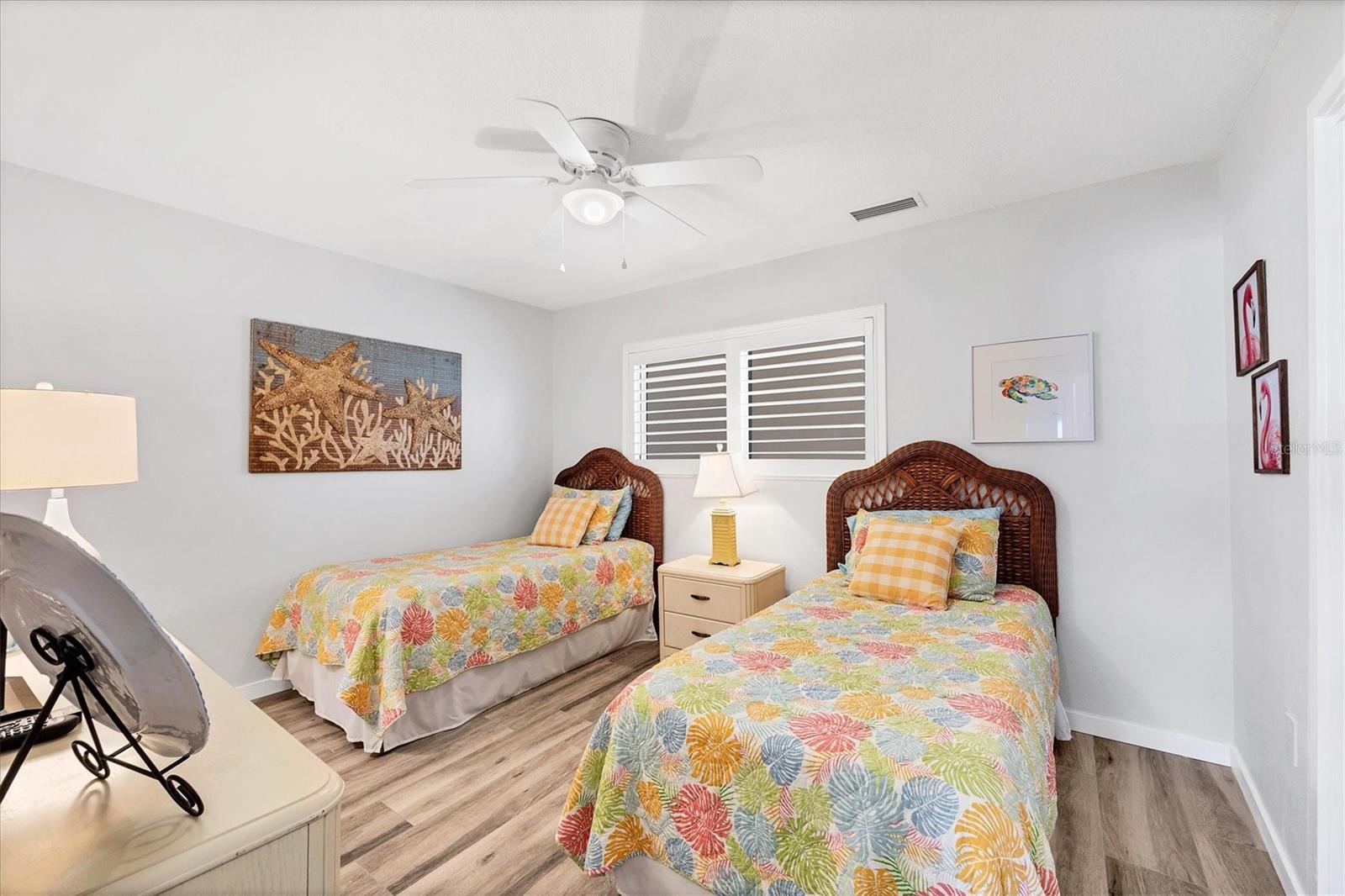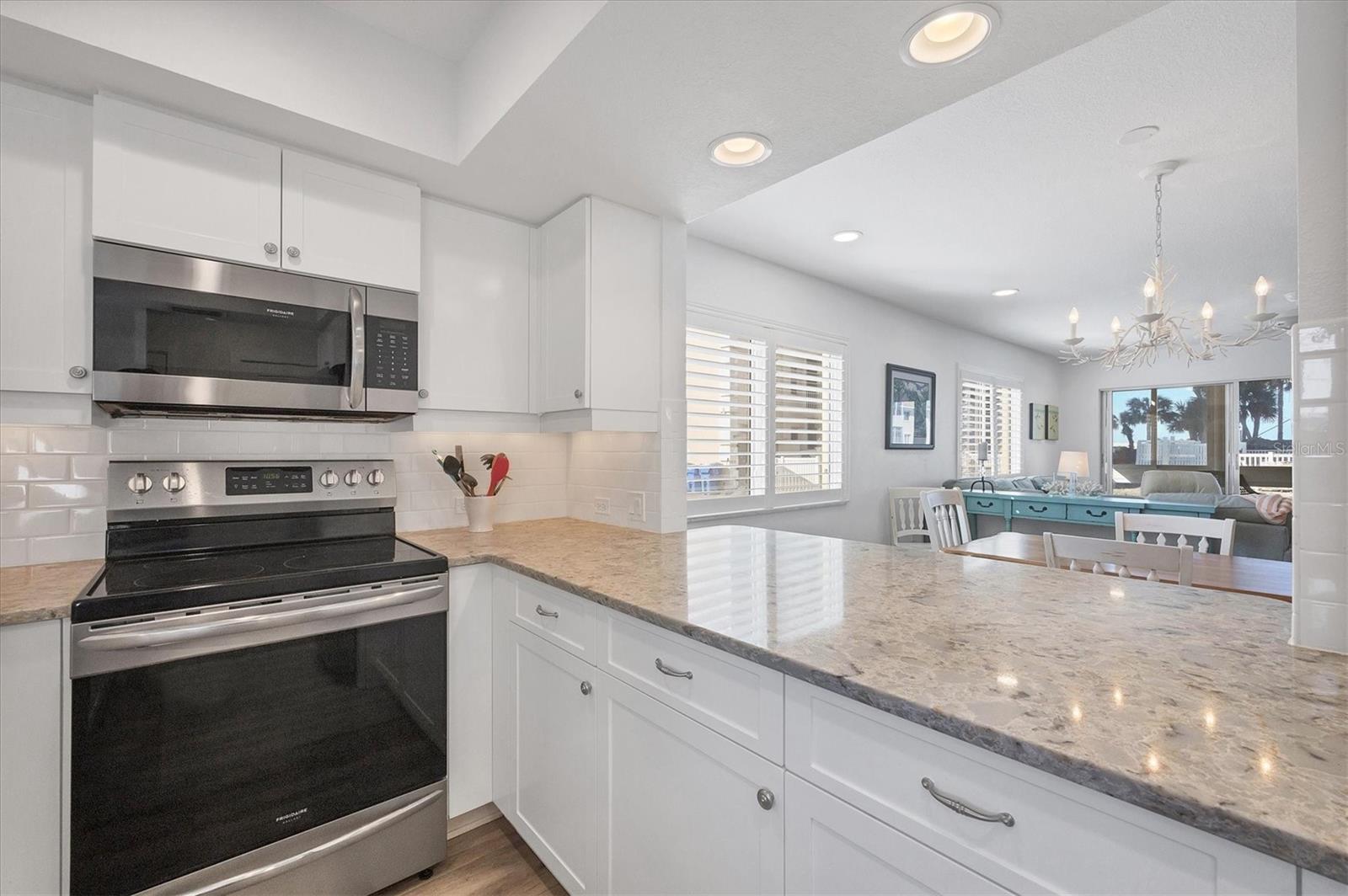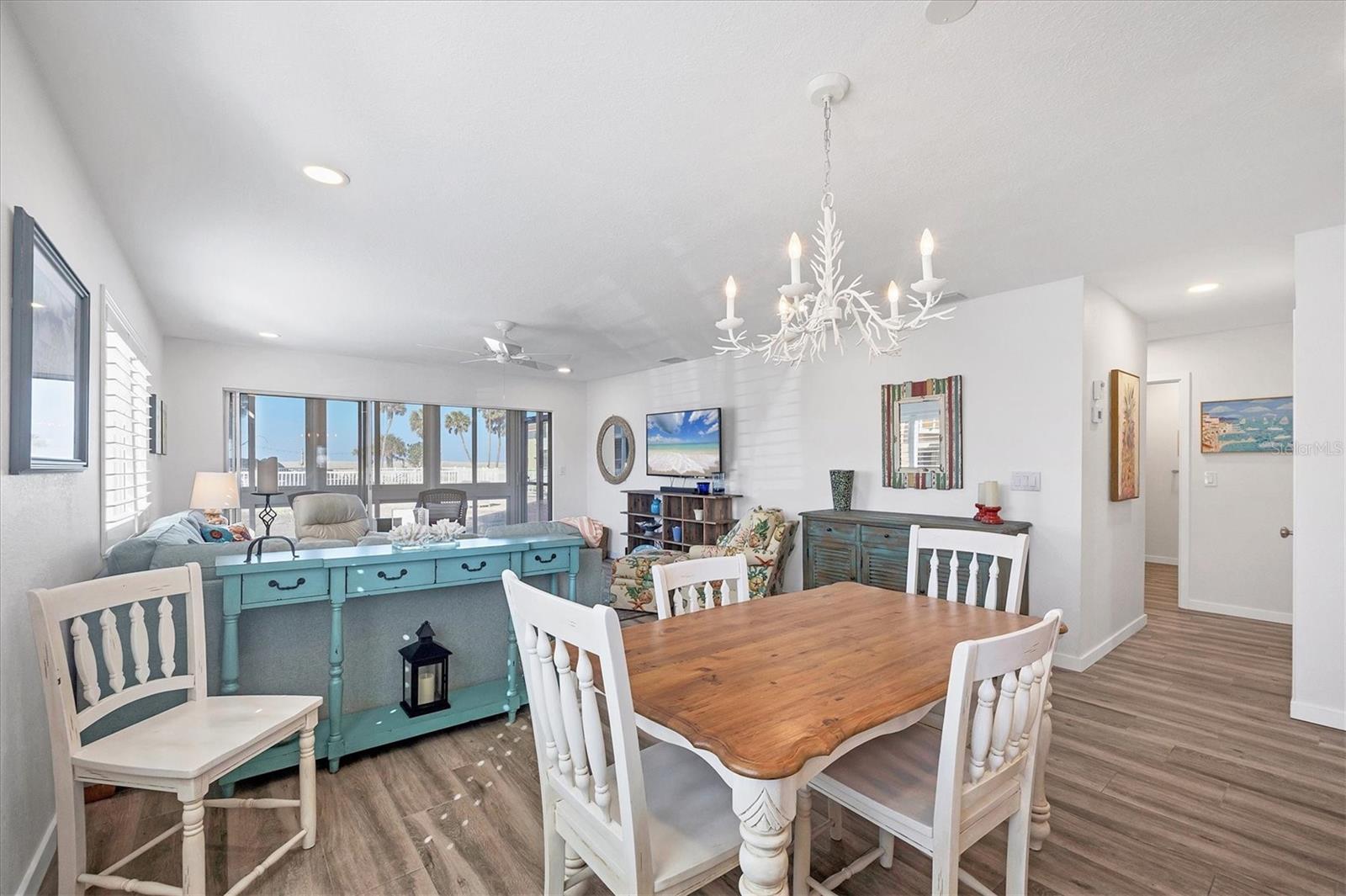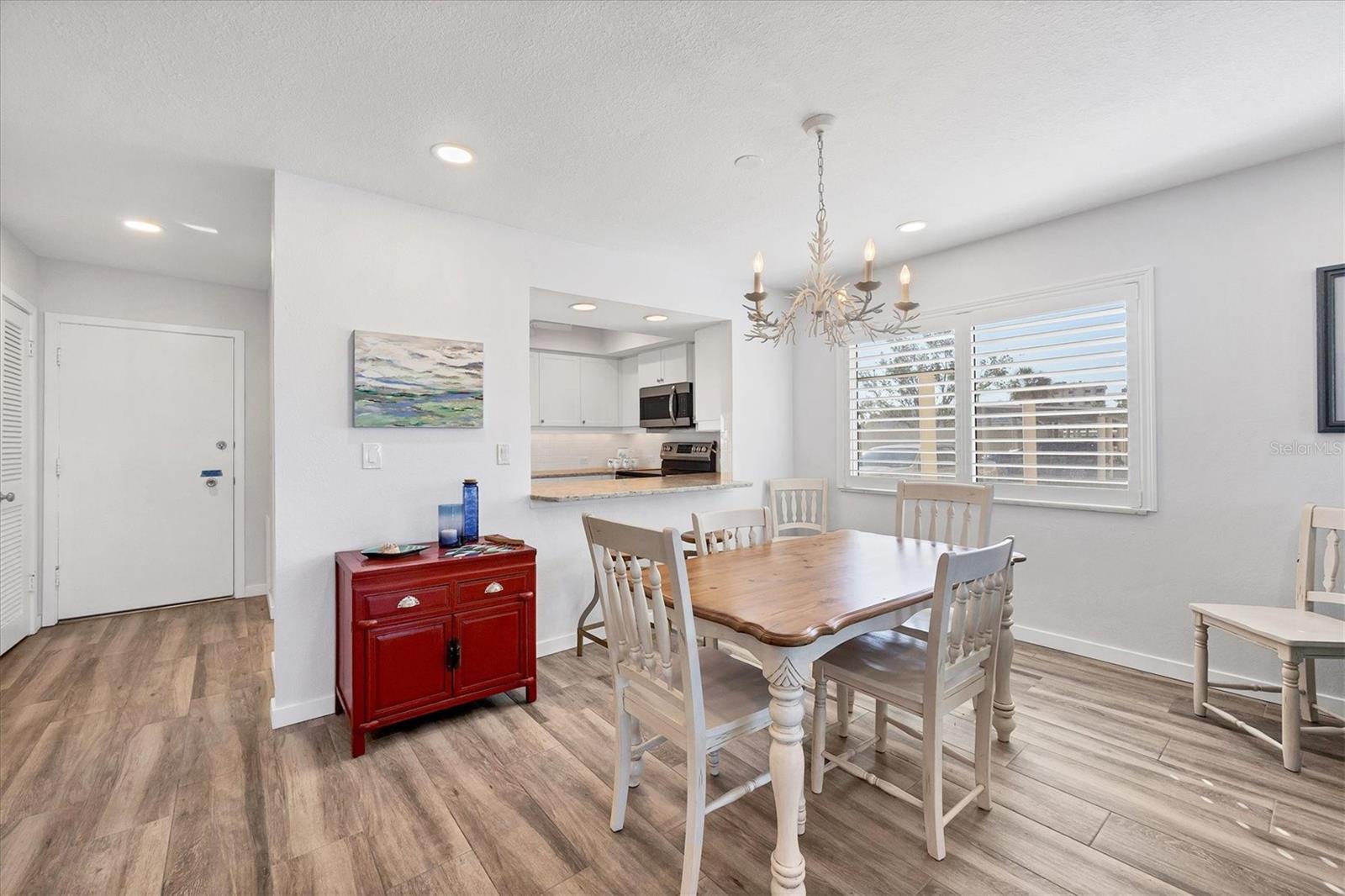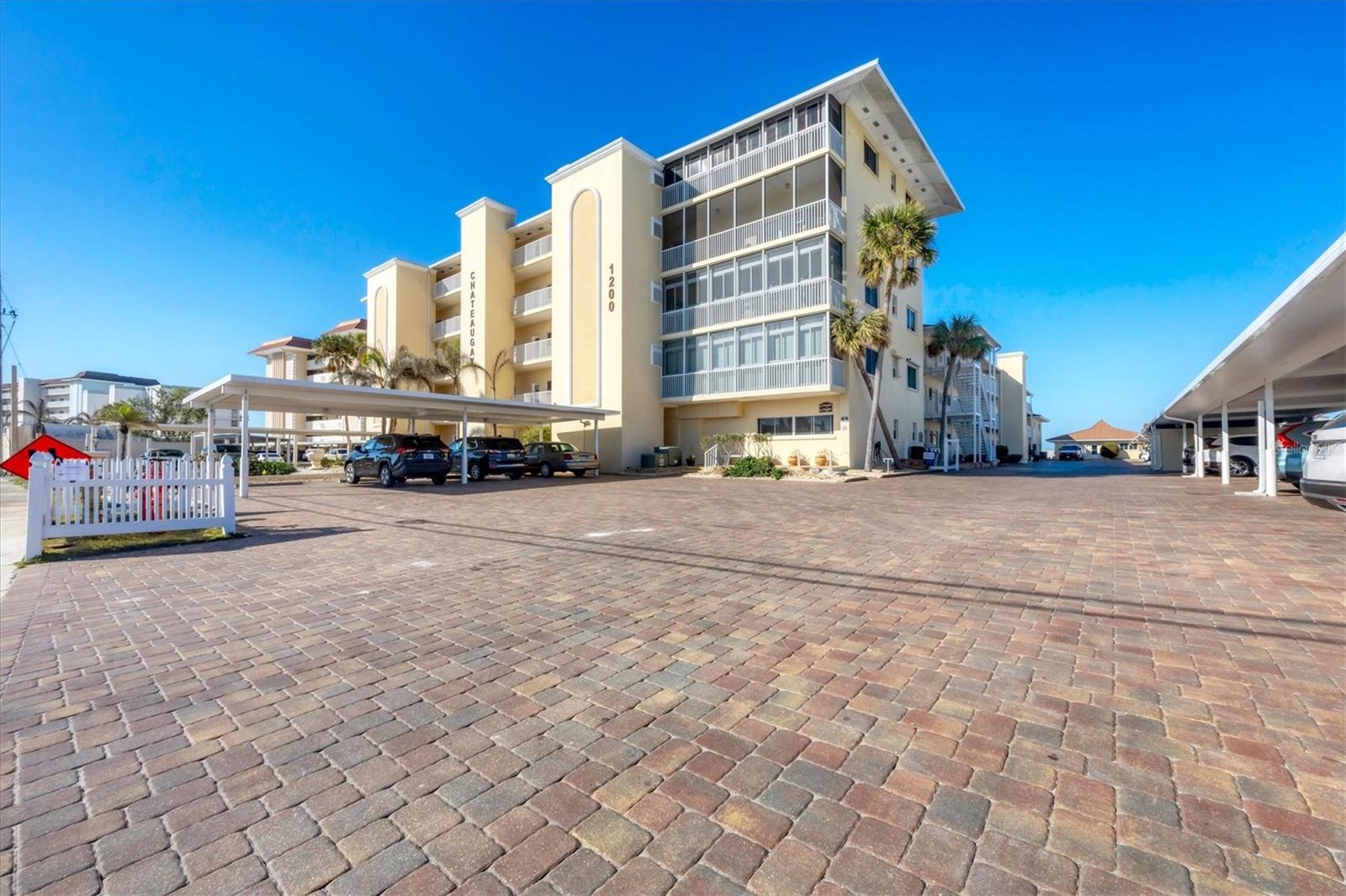 THE ONLY ground floor unit in Chateaugay that did not receive any damages from at least the last 3 major hurricanes! Looking for location and no maintenance? This is it! This beauty was renovated in 2021 and boosts of wood-like tile floors, Plantation shutters and blinds on all windows, new lighting, fans, new custom pantry, and a large pass-through opening to the breakfast bar. The kitchen is renovated with granite countertops and white cabinets. The new bathrooms feature tile showers in both as well as new vanities, faucets, and granite countertops. Ceilings were raised throughout the condo and all walls were textured and painted in the makeover. The hurricane windows and door on the lanai have new roll blinds for turtle season and new wood-like tile flooring. The walk-in closet in the primary bedroom features a barn door and built-ins. There is a storage closet inside the condo as well as a dedicated storage closet for this unit in the three-story building. The electrical has been updated, as well as all new plumbing supply lines and drains and the HVAC duct work has been replaced. Laundry is right down the walk, where you have 3 industrial sized washers and dryers at your disposal, at no charge. The pool and enlarged patio were completely redone in 2025, pool equipment is brand-new and pool is heated in the winter. On the patio are grills and tables for alfresco dining. There is even a firepit when the air is slightly chilly! Brand new front door in May 2025! The exterior of the complex will be painted white with a blue trim in 2025 and new landscaping is going in this fall. As you look out the condo, through the lanai, the yard, pool, patio and beach are your own “backyard”, like being in a house but with no maintenance to take care of. This is the place memories can be made, days with friends spent and evenings on the beach watching the sun set with friends. With only 34 units, it is easy to get to know other owners. During the winter months there are always activities: food trucks, games, parties, book clubs, pot-lucks, firepit nights and celebrations. And the beach is right out your “back door”, no elevator to deal with! Easy to get to downtown, Freedom Boat Club, Venice Yacht Club, Higel Marine Park, Crow’s Nest and the South Jetty! Bring your bicycles and walking shoes as it is close to everything!