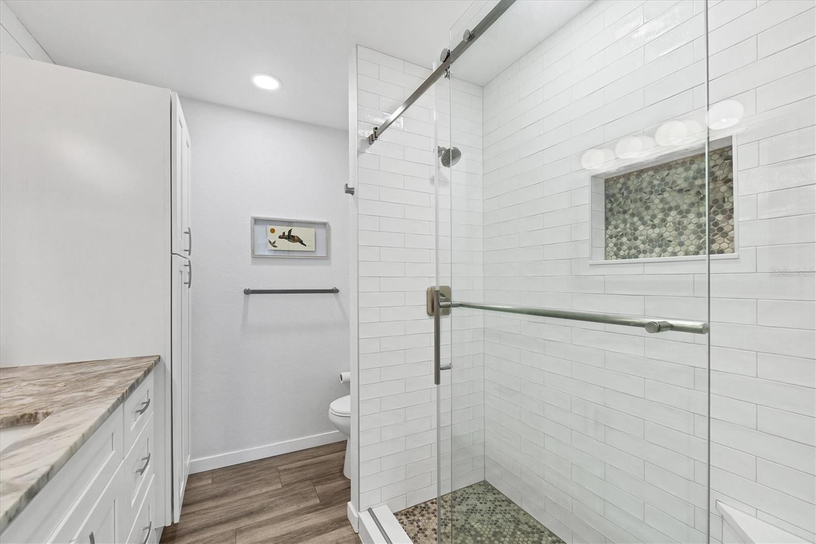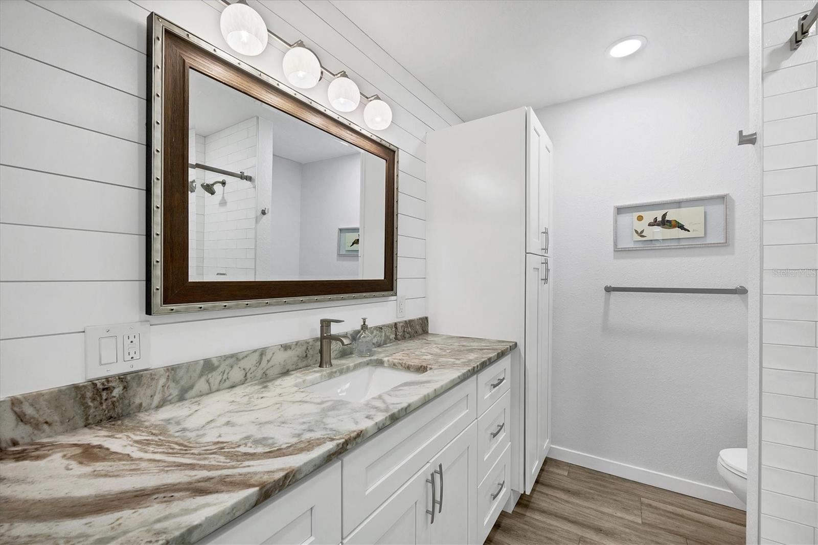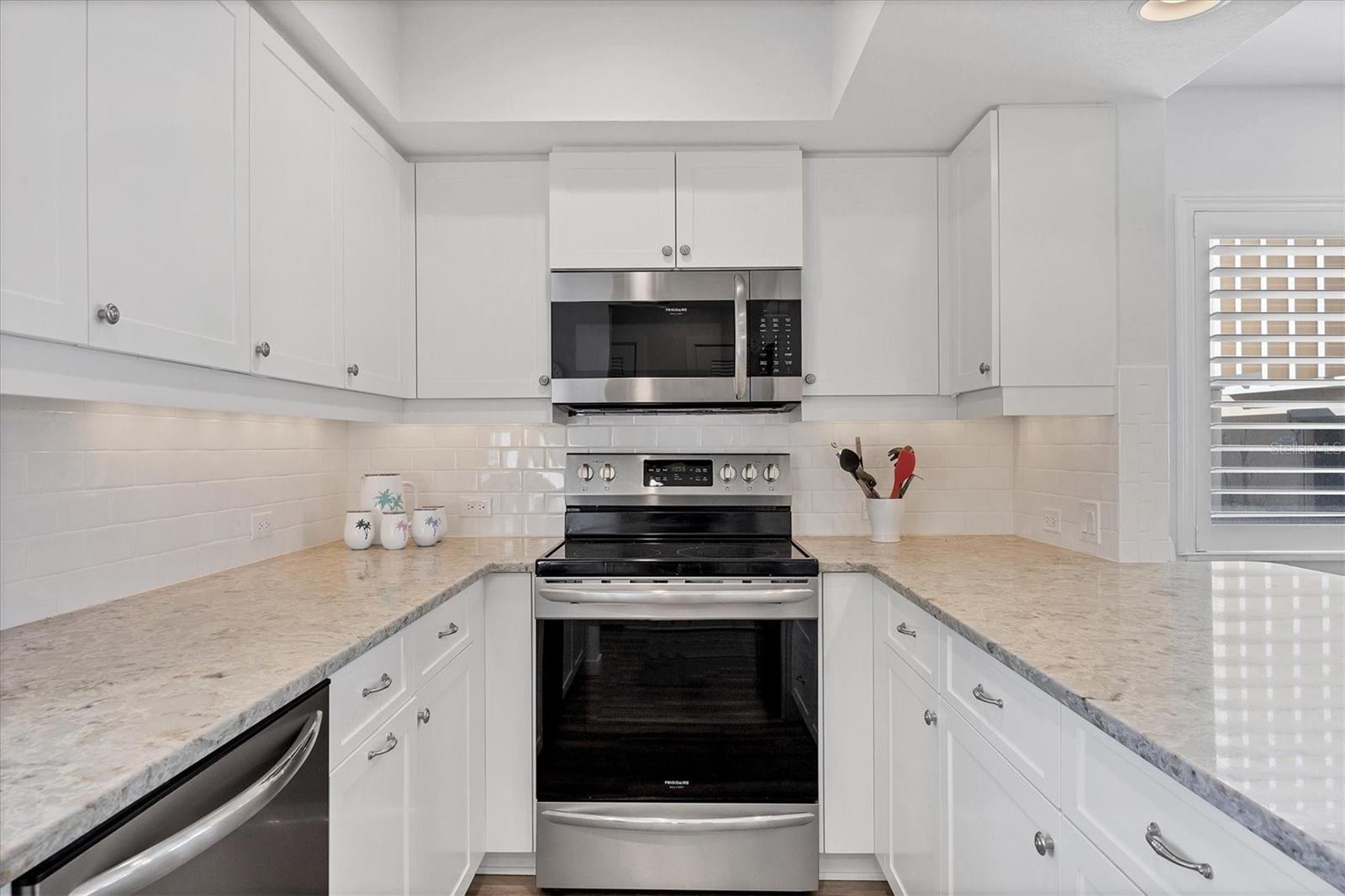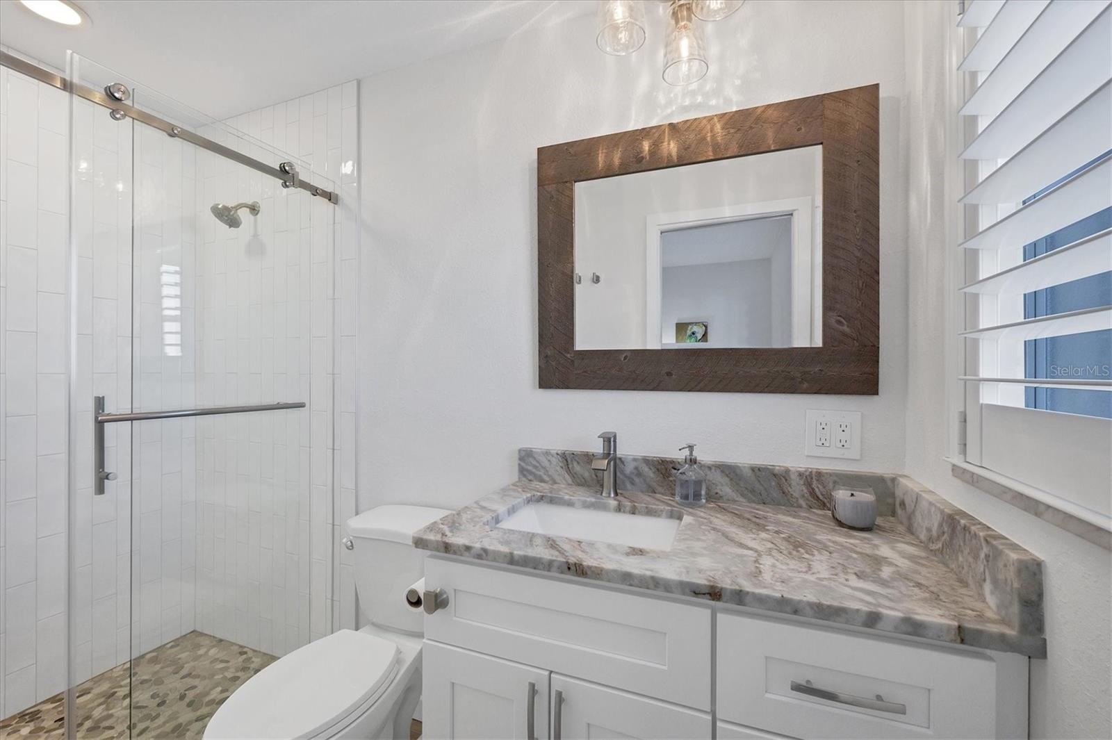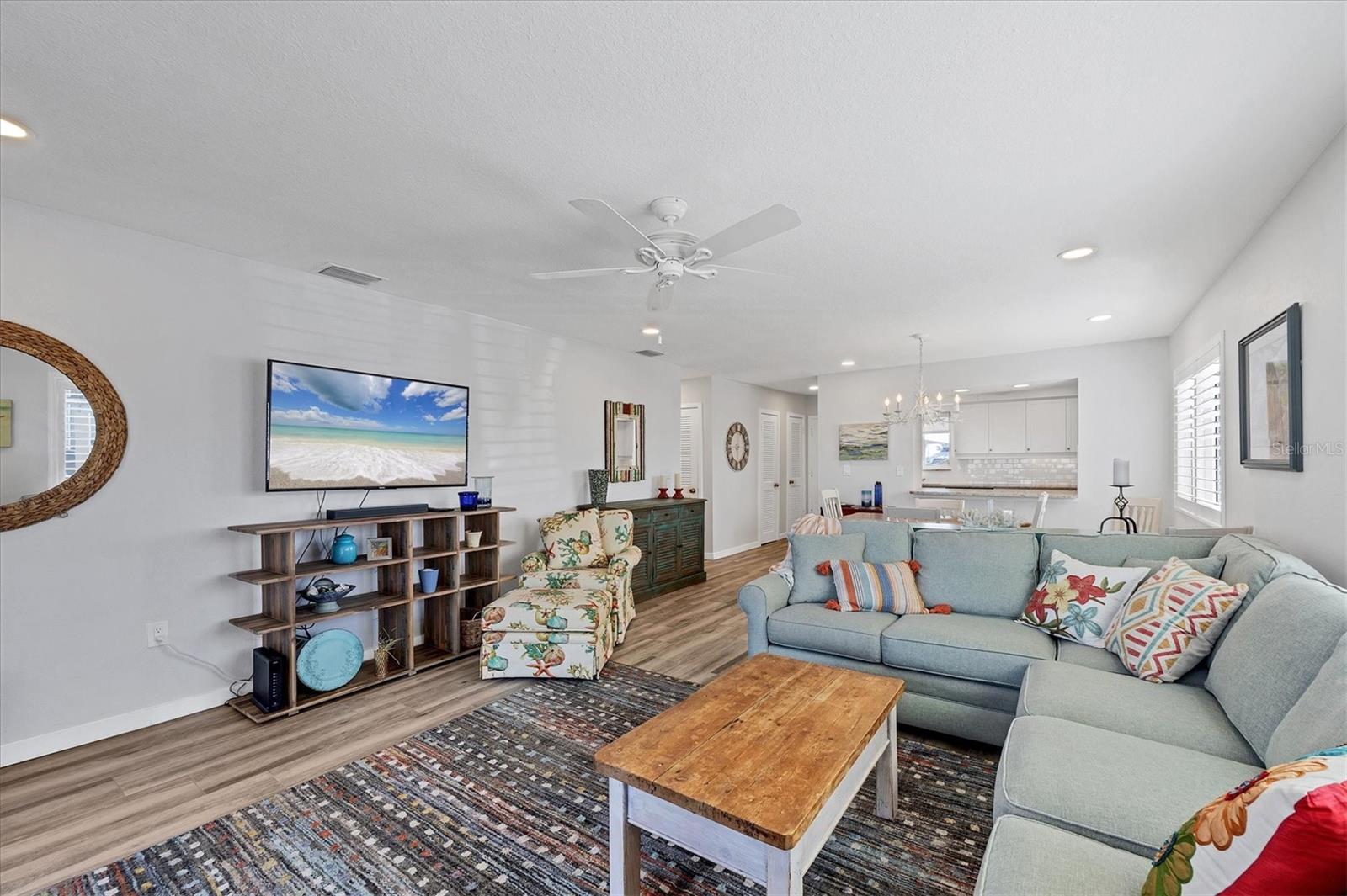 THE ONLY ground floor unit in Chateaugay that did not receive any damages from at least the last 3 major hurricanes! Looking for location and no maintenance? This is it! This beauty was renovated in 2021 and boosts of wood-like tile floors, Plantation shutters and blinds on all windows, new lighting, fans, new custom pantry, and a large pass-through opening to the breakfast bar. The kitchen is renovated with granite countertops and white cabinets. The new bathrooms feature tile showers in both as well as new vanities, faucets, and granite countertops. Ceilings were raised throughout the condo and all walls were textured and painted in the makeover. The hurricane windows and door on the lanai have new roll blinds for turtle season and new wood-like tile flooring. The walk-in closet in the primary bedroom features a barn door and built-ins. There is a storage closet inside the condo as well as a dedicated storage closet for this unit in the three-story building. The electrical has been updated, as well as all new plumbing supply lines and drains and the HVAC duct work has been replaced. Laundry is right down the walk, where you have 3 industrial sized washers and dryers at your disposal, at no charge. The pool and enlarged patio were completely redone in 2025, pool equipment is brand-new and pool is heated in the winter. On the patio are grills and tables for alfresco dining. There is even a firepit when the air is slightly chilly! Brand new front door in May 2025! The exterior of the complex will be painted white with a blue trim in 2025 and new landscaping is going in this fall. As you look out the condo, through the lanai, the yard, pool, patio and beach are your own “backyard”, like being in a house but with no maintenance to take care of. This is the place memories can be made, days with friends spent and evenings on the beach watching the sun set with friends. With only 34 units, it is easy to get to know other owners. During the winter months there are always activities: food trucks, games, parties, book clubs, pot-lucks, firepit nights and celebrations. And the beach is right out your “back door”, no elevator to deal with! Easy to get to downtown, Freedom Boat Club, Venice Yacht Club, Higel Marine Park, Crow’s Nest and the South Jetty! Bring your bicycles and walking shoes as it is close to everything!