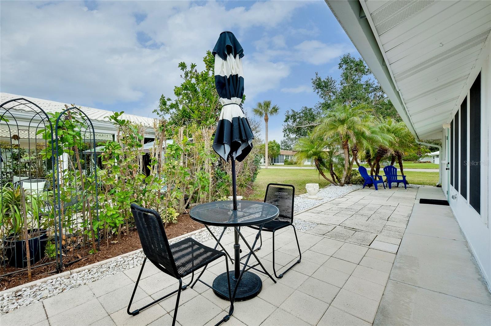 One or more photo(s) has been virtually staged. ~~ BRAND NEW ROOF ~~ Welcome to SNOWBIRD COTTAGE in the Circle Woods Community, an enchanting and highly sought-after destination near Venice. Discover a haven of warmth and camaraderie as you step into this inviting community. Perfectly suited for both snowbirds and year-round residents, Circle Woods Community provides a true sense of belonging. Prepare to be captivated by this Bermuda Model, a magnificent two-bedroom villa that epitomizes spacious living. This standalone gem boasts a comfortable floor plan, offering ample room to unwind and create lasting memories while you relax on the patio watching nature and beautiful sunsets. The enclosed lanai creates an open and airy ambiance with the laundry room thoughtfully positioned within the villa, adding ease to your daily routines. This villa boasts many upgrades and tasteful touches. A NEW Roof is scheduled to be replaced by the owners in the Spring (2025), Washer/Dryer, Disposal, Refrigerator (2020), Interior paint (2020), Replaced guest bathroom vanity and kitchen sink (2020), sewer lines relined with Perma Liner storm door (2019), Aluminum removed/upgraded from circuit to air handler (2019), HVAC replaced (2020), HVAC Ducts replaced (2021), Sub-floor plumbing replaced Primary bath (2021), Replaced Electrical Panel and added Electrical Surge Protector (2019) and replaced Electric outlet switches (2020). Circle Woods is a maintenance-free, no age restrictions community offering two pools, a fitness room, shuffleboard, horseshoes, and boccie. Circle Woods is located close to Manasota Key and Venice Beaches, shopping, the Atlanta Braves training facility, and many wonderful outdoor activities the Venice area offers. This villa is move-in ready. Must own for two years before leasing, only 1 pet (medium). Monthly condo fee $420. The Community Offers: Free Lawn Maintenance, Clubhouse, Game Room, Gym, Library, 2 Heated Pools, Spa, Sauna, Bocce Ball, Horseshoes, Shuffleboard, and much more. Circlewood is close to Venice Main Street, restaurants, shopping, and the Bike Legacy Trail, and it is just minutes by car from the fabulous Manasota Beaches.