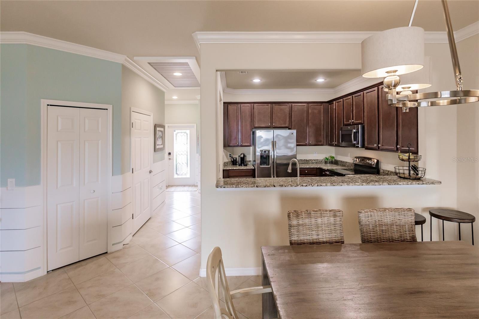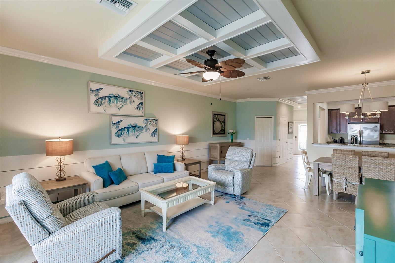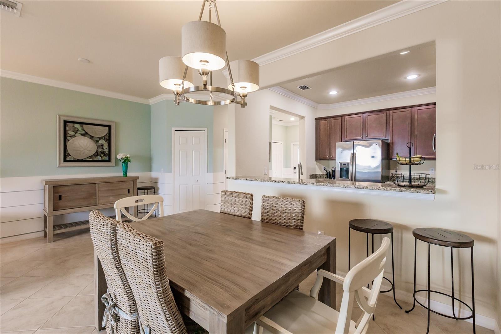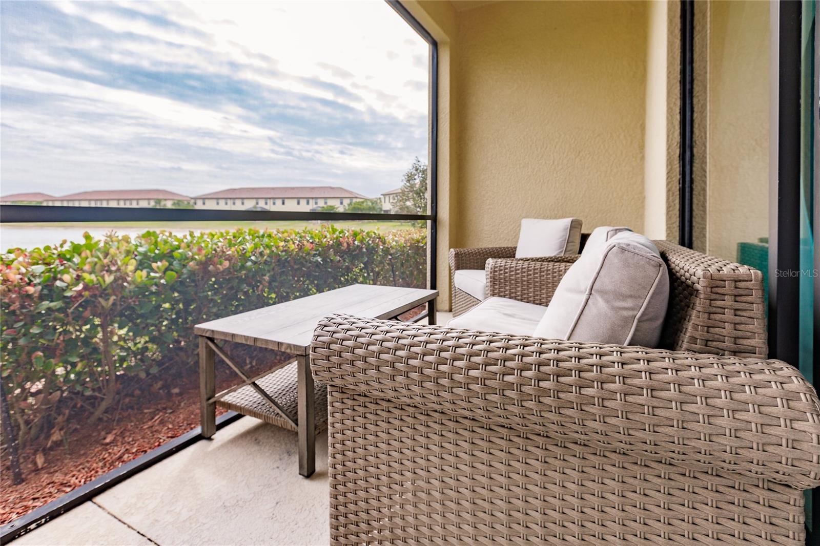 Welcome to the resort community Gran Paradiso. This perfectly maintained three bedroom two and half bath townhouse comes fully furnished and is ready to be enjoyed. This former model home has all the designer touches and details you have been looking for. Open concept living downstairs with a well-appointed kitchen that features granite counter tops, large pantry, recessed lighting, tile backsplash and breakfast bar. Enjoy the Florida lifestyle on the lanai overlooking a lovely lake. This home will include all the new furniture and tasteful decor you see. The primary bath features an ensuite with double vanity and double walk in closets providing plenty of storage. Live like you are on vacation all year in this luxury community offering maintenance free living, a free-form swimming pool, cabanas , spa, tennis courts hiking trails, fitness center, on site fitness classes, saunas and much more. Just beyond the relaxation and activities Gran Paradiso has to offer you are still close to beaches, shopping, restaurants, Atlanta Braves Spring Training and everything the up and coming Wellen Park as to offer.