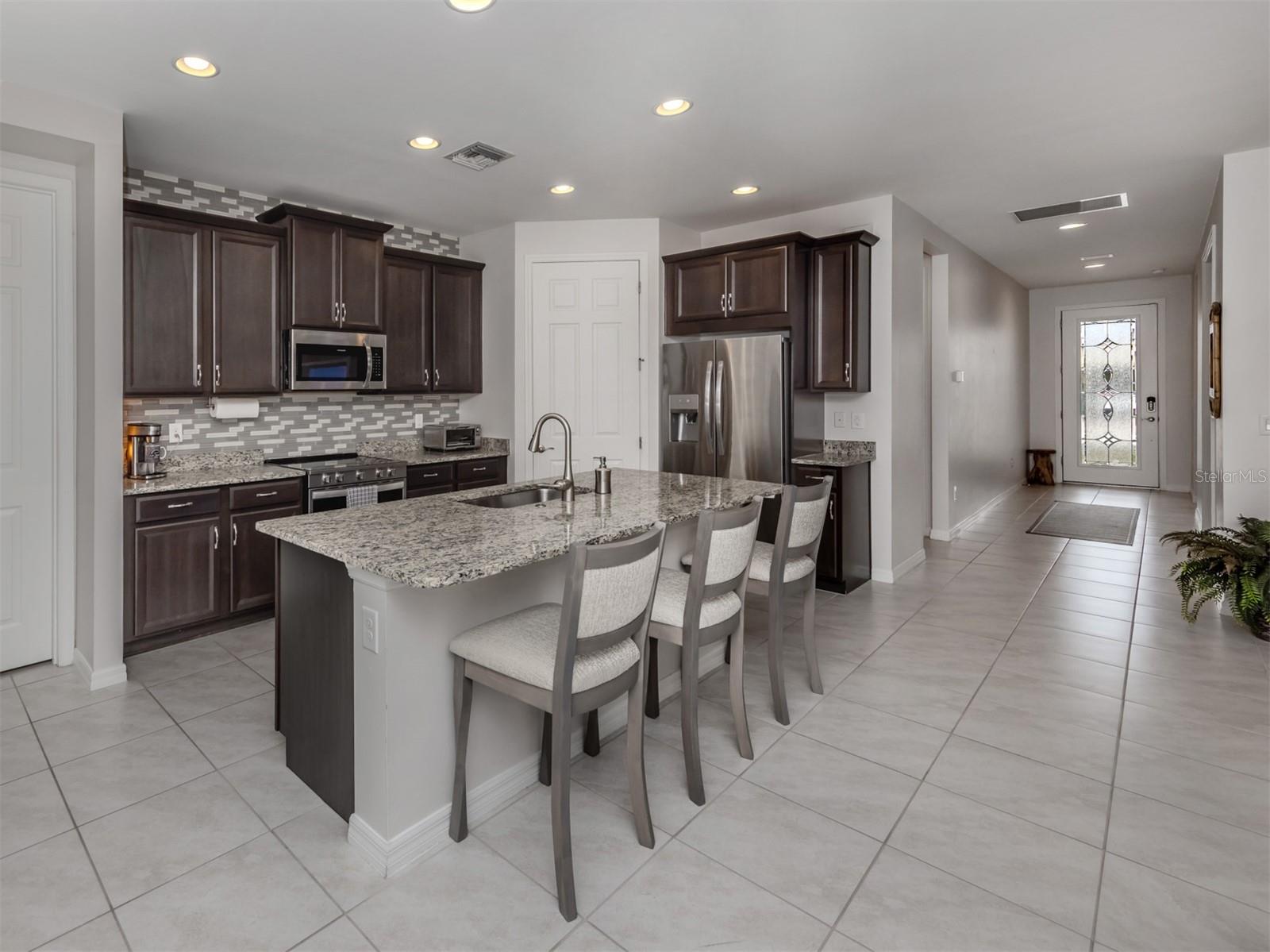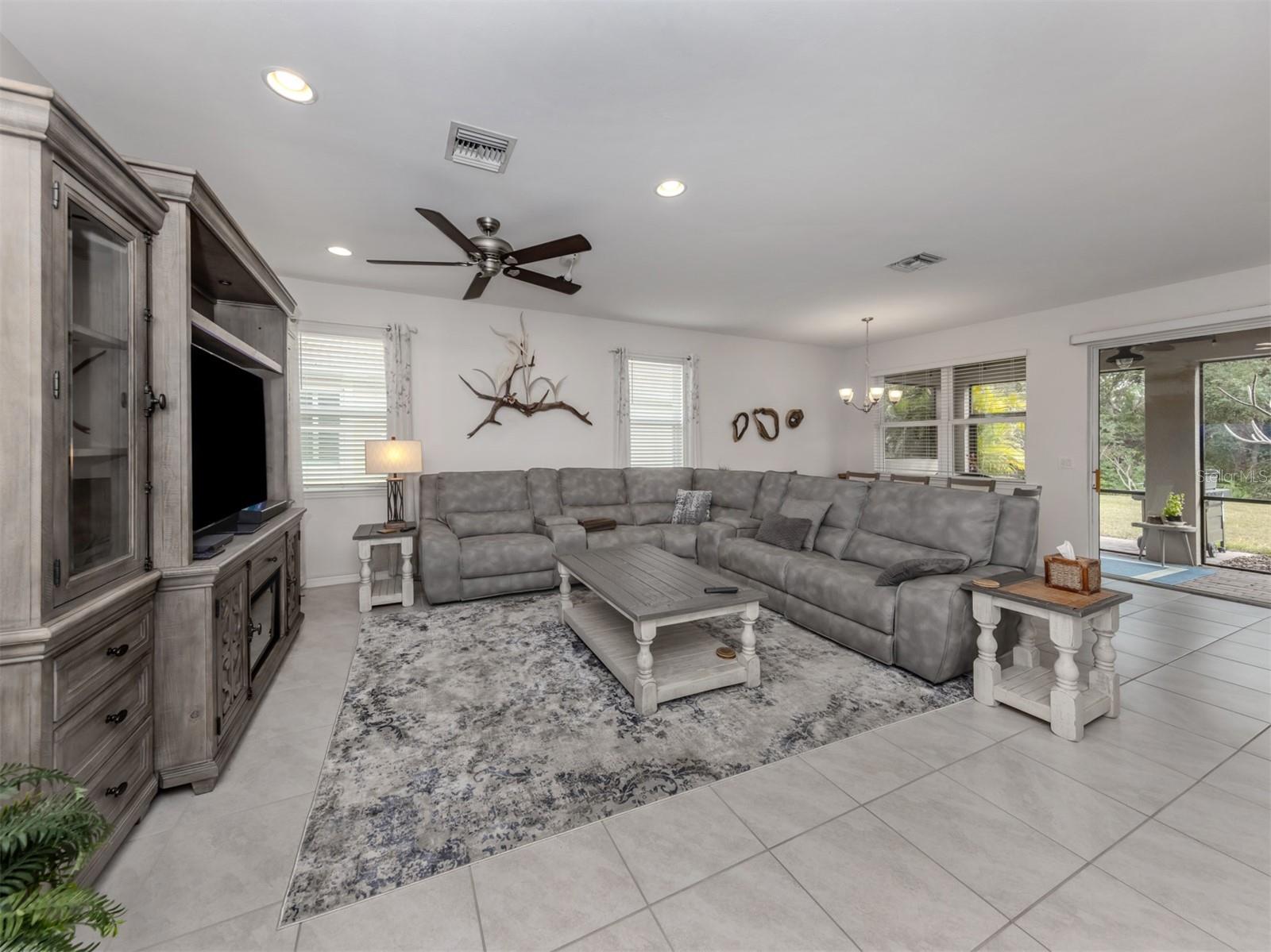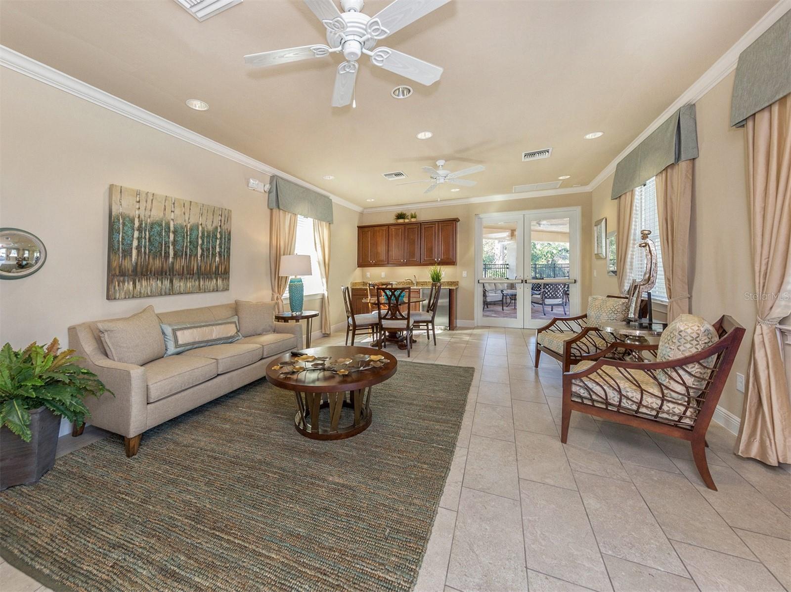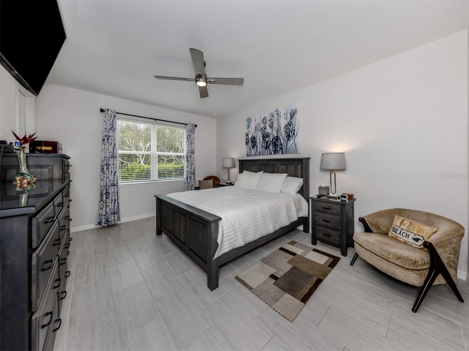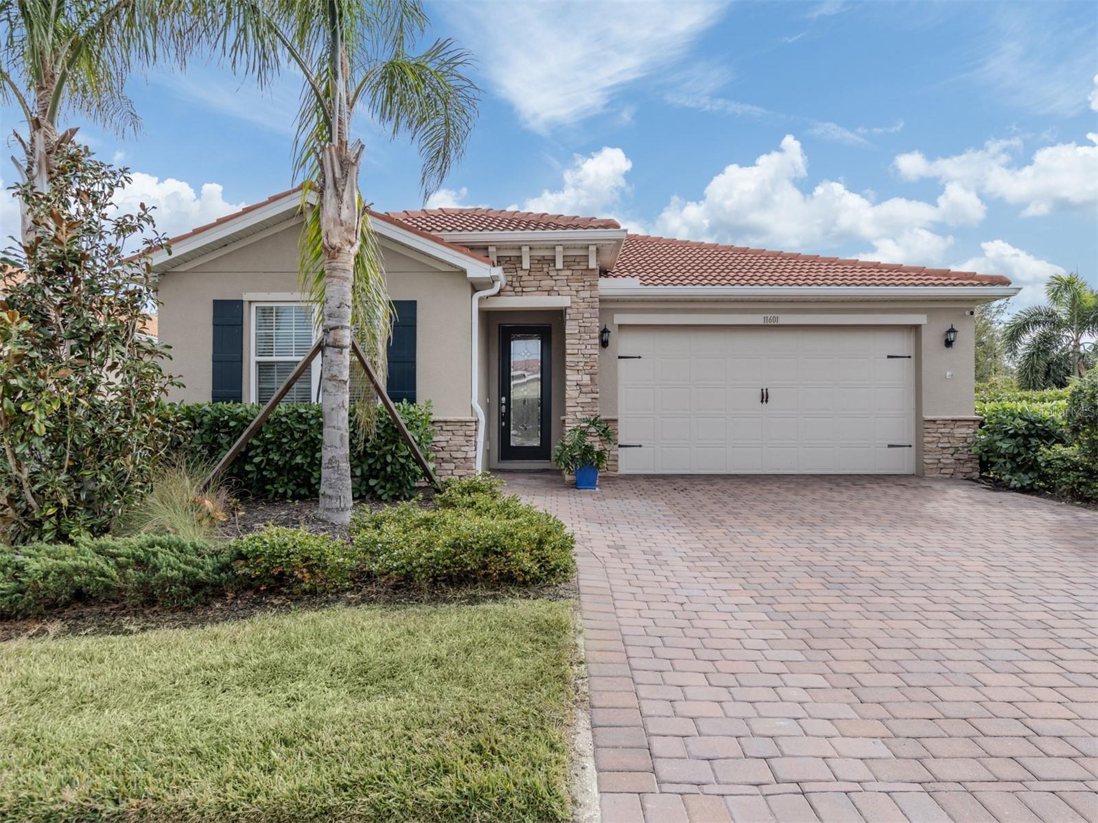 This meticulously cared-for 2 bedroom (with potential 3rd bedroom/den option) D.R. Horton home is an exceptional blend of modern luxury and thoughtful functionality. Built in 2018, this Clifton model sits on a corner lot behind the gates of quiet Caribbean Village. Natural light pours into the entire residence through both the glass front door and glass sliders with southwestern exposure that adorn the back. Ceramic tile flooring is present throughout, including all bedrooms. The split-bedroom layout is ideal for utmost privacy, everyday living and grand entertaining, with an open flow between the great room and chef-inspired kitchen. The kitchen features granite countertops, an expansive kitchen island, under-cabinet lighting, custom backsplash and a walk-in pantry with custom built-in shelves. In addition, the owner has installed custom shelves in every closet throughout the home, including both primary bedroom walk-in closets, second bedroom closet and hallway linen closet. The bonus room offers an added level of versatility, equipped with French doors and enough space to convert into an office, third bedroom, or "man/she" cave. The screened-in lanai exhibits an outdoor sanctuary, with views of the lush Florida landscape, unobstructed by other homes in the community. The new owner of this home will enjoy a large two-car garage with refrigerator, and an extended brick driveway. Caribbean Village is a maintenance-free and gated community with no CDD fee and located in an X Flood zone. Enjoy the community's beautiful heated pool, fitness center, bocce ball courts, and miles of walking trails that border gorgeous lakes. Located just off River Road and Venice Avenue, Caribbean Village offers proximity to both downtown Venice and beaches, as well as I-75. Don't wait for the market to "change", be the change, make an offer today!