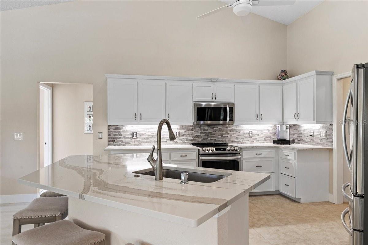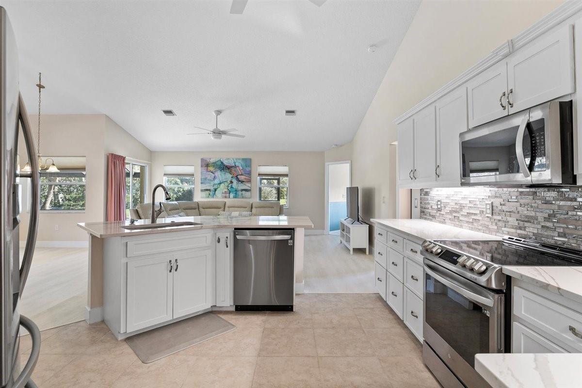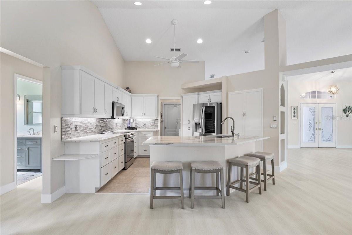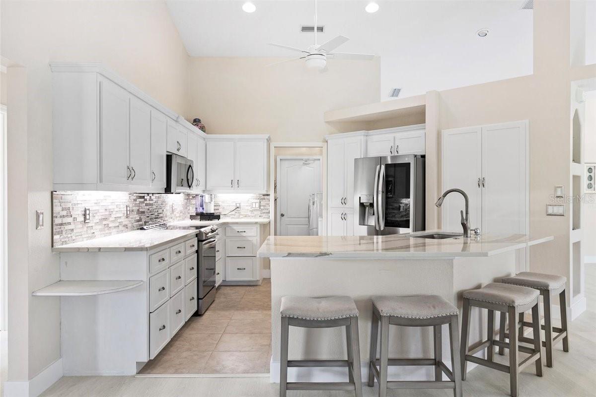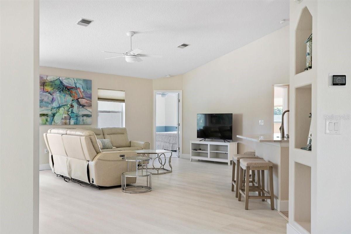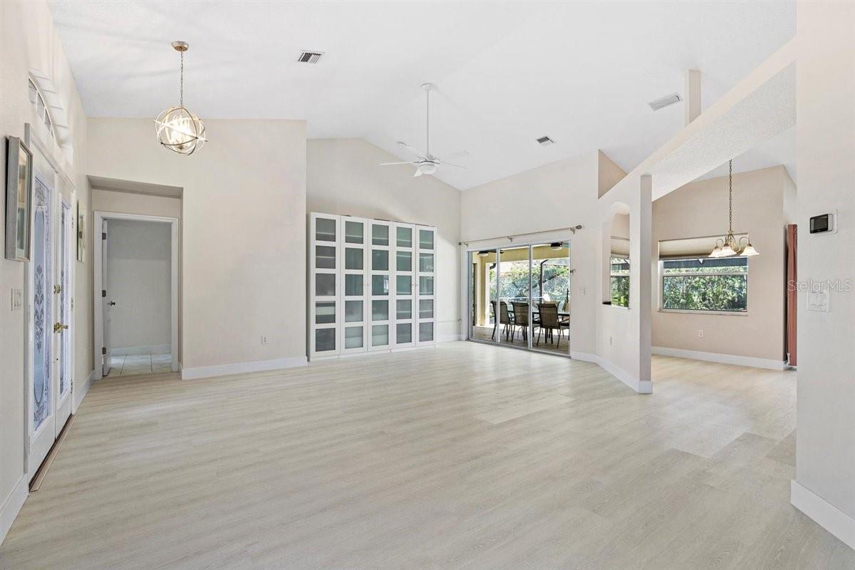 Motivated Seller, Huge price reduction! Welcome to your dream home in The Lakes of Jacaranda, where Florida living meets modern elegance! This stunning 4-bedroom, 2.5-bathroom pool home boasts a brand-new roof installed in 2024 and an open floor plan designed for comfort and style. With high ceilings and abundant natural light, the space feels luminous and inviting from the moment you step inside. The main living areas feature new luxury vinyl flooring, perfectly complementing the home’s contemporary charm. The open-concept kitchen is a chef’s delight, offering quartz countertops, newer stainless steel appliances, a large island, and under-cabinet lighting. With ample cabinet storage, it’s both beautiful and functional, making it the heart of the home. Two main living areas—a formal living room and a spacious family room—provide versatility and space to suit your lifestyle. Sliding glass doors lead to an outdoor oasis where a recently refinished pool and clear-view screen lanai await. This serene space is ideal for relaxing or entertaining while enjoying Florida’s sunshine and breezes. The master suite is a true retreat, featuring an ensuite bathroom with dual vanities, a walk-in shower, a garden tub, and a walk-in closet. A private door leads directly to the pool area, adding a touch of luxury to your daily routine. Three additional bedrooms provide plenty of space for family and guests. Oversized 2.5 garage The Lakes of Jacaranda community offers a vibrant lifestyle with a clubhouse, tennis courts, walking trails, and a community pool. Conveniently located near Wellen Park and downtown Venice, you’ll have access to fantastic shopping, dining, and entertainment options. Don’t miss this opportunity to own a piece of paradise—schedule your showing today!