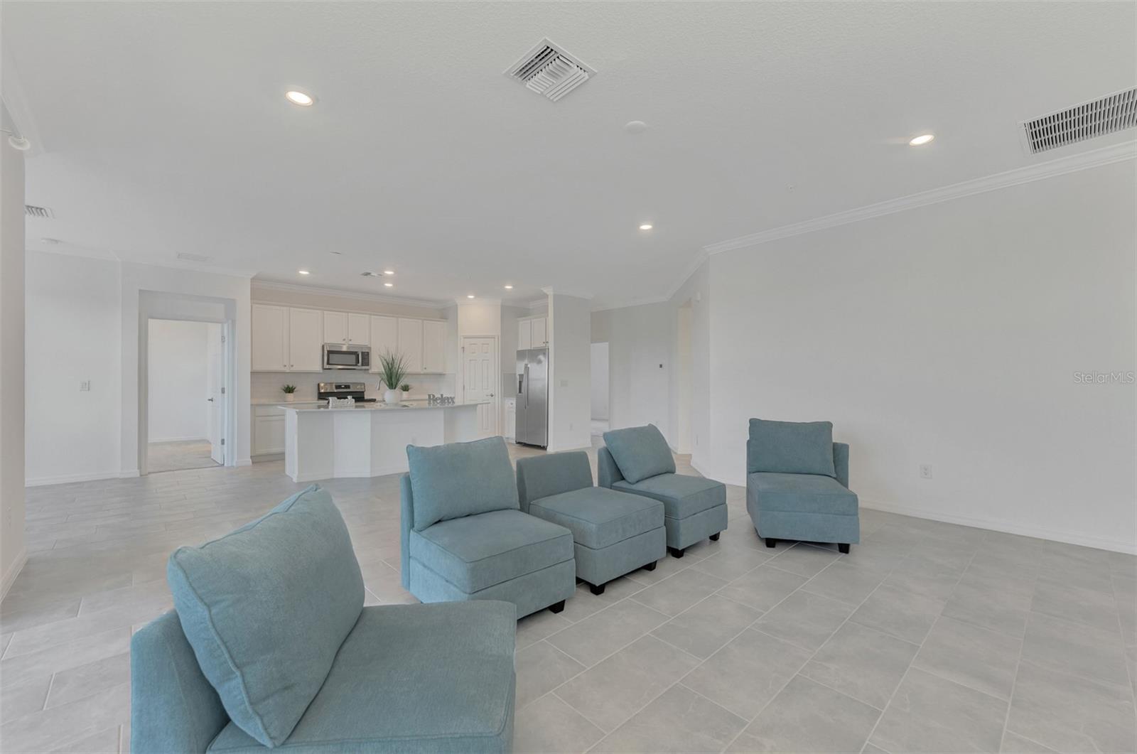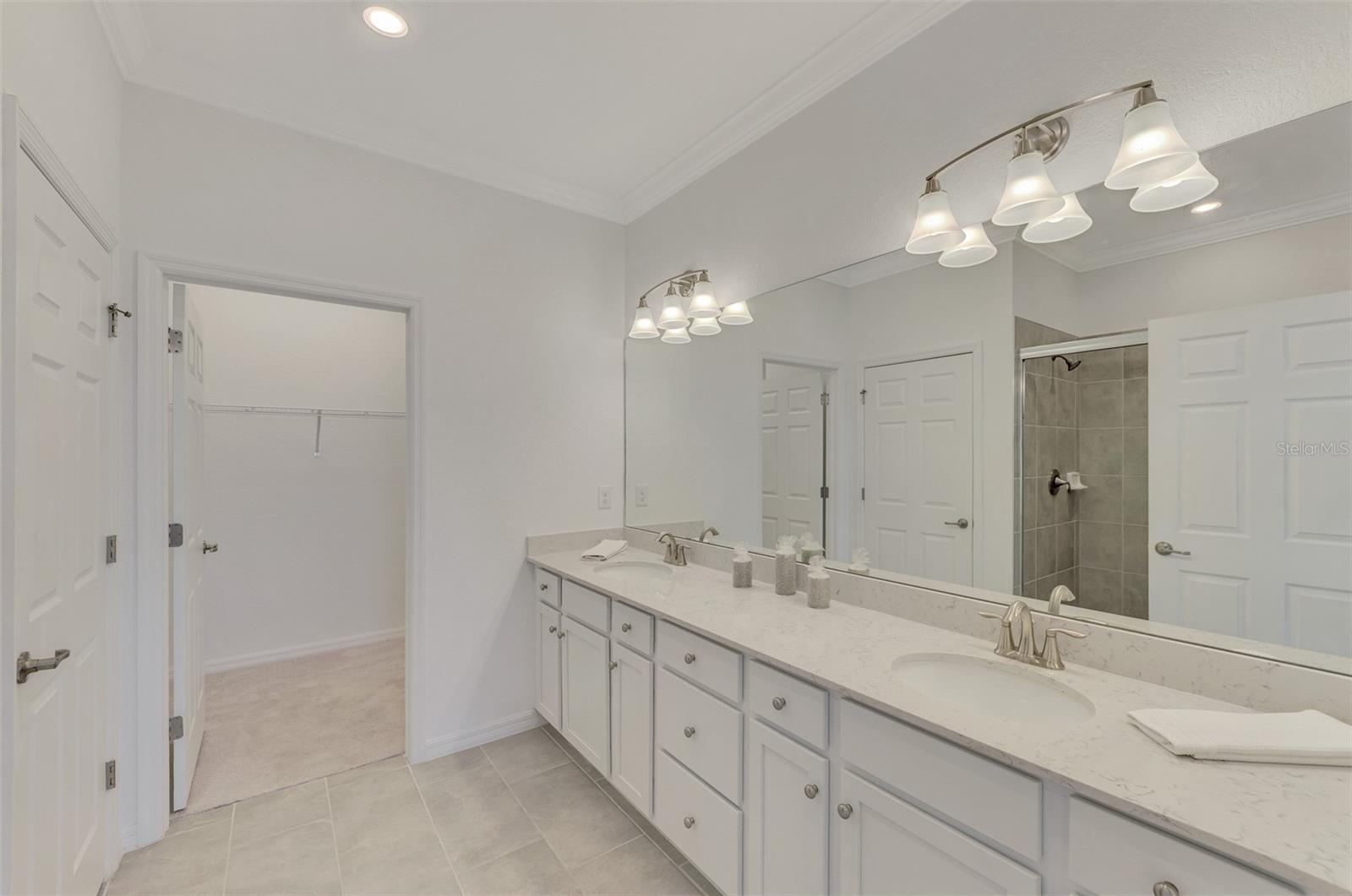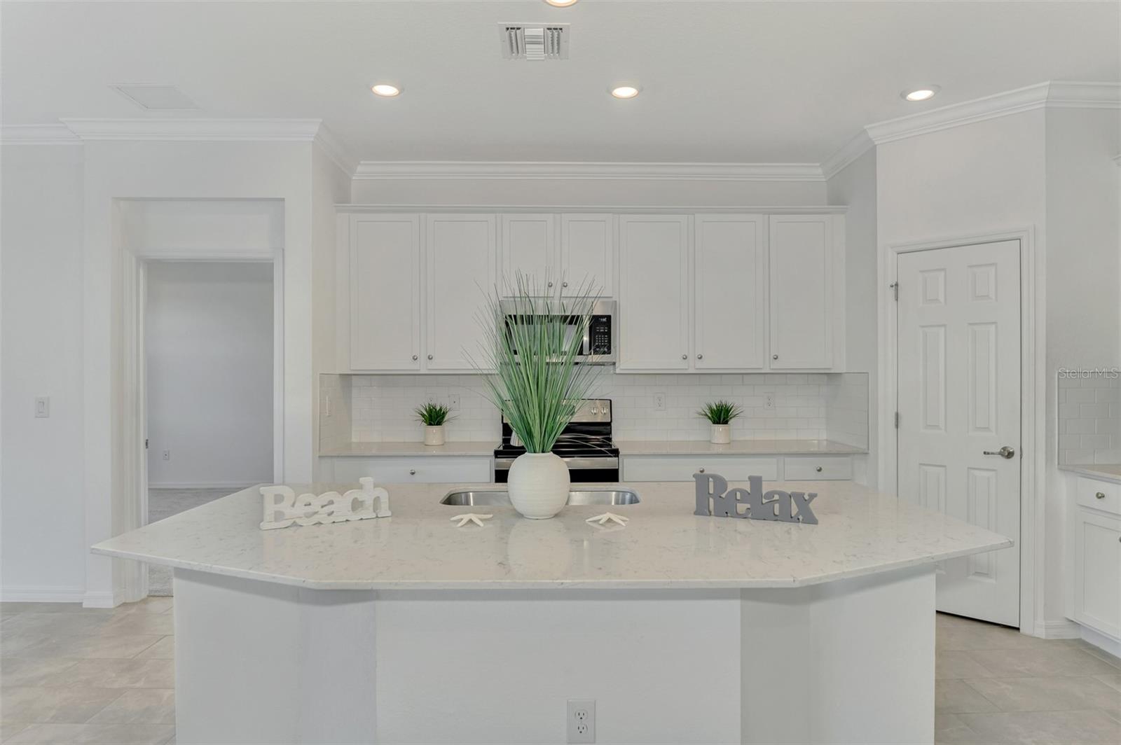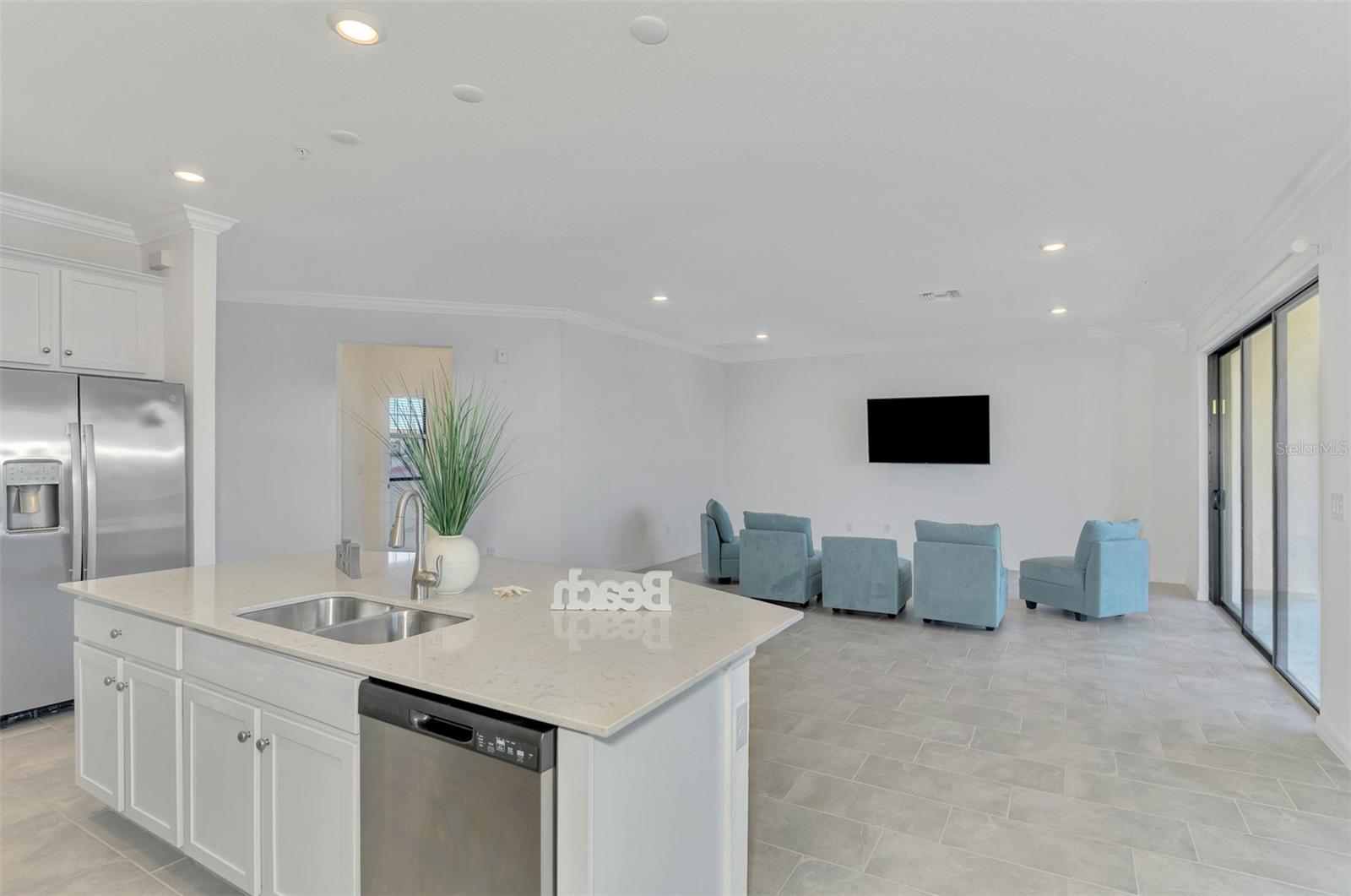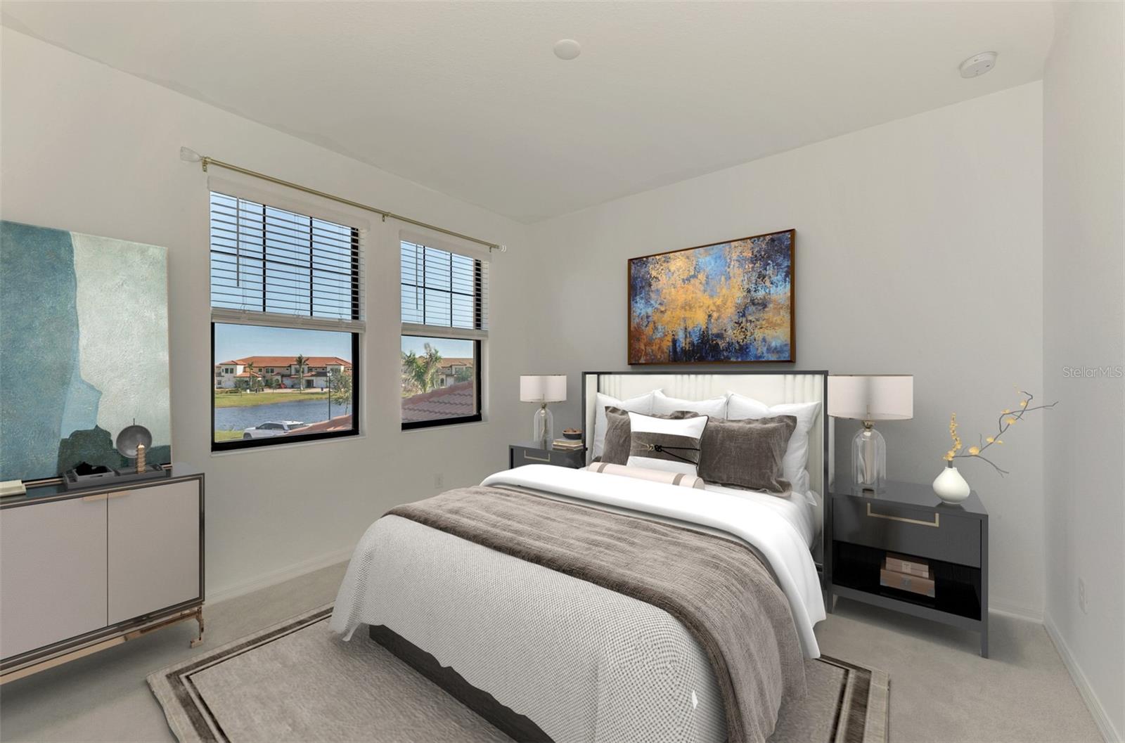 One or more photo(s) has been virtually staged. Incredible Waterfront and Tropical Views from almost every room in the Gated-Resort Community of Sarasota National Golf and Country Club. Sarasota National is an Audubon International Certified Signature Sanctuary surrounded by lakes and wetlands with beautiful wildlife. The Staggerbush Peninsula is known for hosting weekly social activities to meet your neighbors! This maintenance free home has an extraordinary great room with high ceilings and triple sliders leading to the screened lanai with tranquil views where you can enjoy watching gorgeous sunsets. Chefs’ kitchen with 42-inch wood cabinets, quartz counters, Large Breakfast Island, GE stainless steel appliances, subway tile backsplash, large pantry, Spacious dining room with peaceful views of the lake. The king-sized primary suite boasts a large walk-in closet, a beautiful glass walk-in shower, dual sink vanity with quartz counters and private water closet. Separate guest area accommodates 2 bedrooms and a bath that allows privacy. The home has high Wind Impact windows and doors, freshly painted with neutral colors, window treatments, large tile on the diagonal throughout with new carpet in the bedrooms, inside laundry has ample storage, 1 car garage with sealed brick paver driveway for additional parking. Fantastic open floor plan, perfect for entertaining! Amazing Amenity Campus has state-of-the-art clubhouse, 2 full-service restaurants, coffee lounge with TV’s-internet-library and pool side “Tiki Bar” to watch your favorite sports. “Dragonflies” on site Spa for facials and massage, well-appointed fitness center, 2 separate rooms for instructed classes, Resort style swimming pool, lap pool, water aerobics, tennis, pickle ball, bocce ball, playground, 2 dog parks and managed events for entertainment! Sarasota National is located close to the Atlanta Braves Spring training facility, Wellen Park for shopping and restaurants, historical downtown Venice and beautiful beaches. Call today for your private appointment to view this exceptional home!