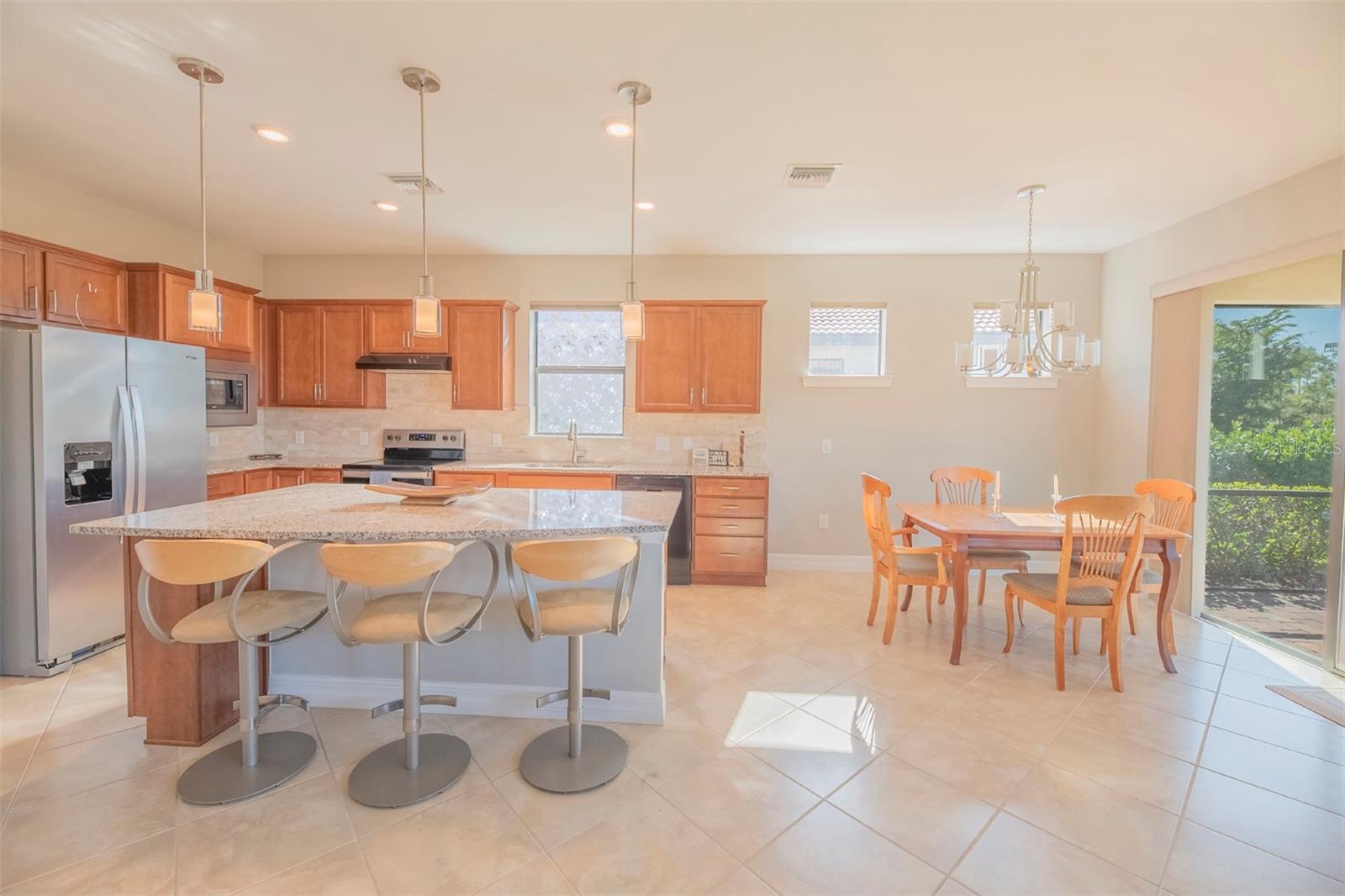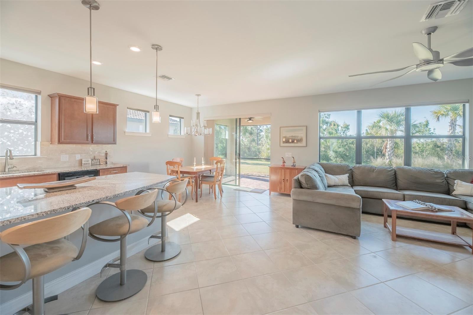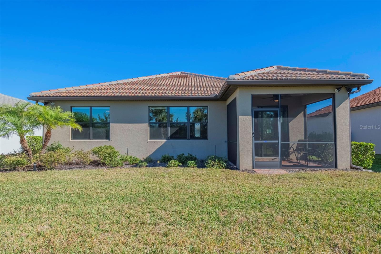 Book your showing today at this exceptional 3-bedroom, 2-bathroom Abbeyville home with thoughtful upgrades, a screened lanai and an expansive backyard. Meticulously maintained, only 5 years old, and rarely lived in (only 6-8 weeks a year) this home offers the perfect blend of style, comfort, and functionality. Its flexible, open-concept layout features three full bedrooms and two bathrooms, a rarity for Abbeyville models, with an easy flow from the living spaces to the kitchen and dining areas. The chef’s kitchen boasts a large granite island with extra storage. The upgraded interior includes tall doors, tile through all of the main living spaces, luxury vinyl in the bedrooms, an extra-large primary suite with an en suite bathroom that boasts dual vanities and an upgraded oversized shower. The large bathroom leads to a walk in closet. Window treatments are included throughout the home-- you'll be impressed by the blackout up-down shades in the bedrooms for restful mornings with a feature that allows for a special panoramic view when desired. Outdoors, the home shines with a beautiful stone fascia, a screened lanai, and an oversized backyard adorned with foxtail palms and a re-landscaped property line. The widened driveway leads to an impressive garage featuring an insulated door and ceiling, a built-in sink. Islandwalk offers a vibrant, resort-style lifestyle with golf carts dotting the streets, mature greenery, and plenty of planned activities. Residents enjoy lakes, bridges, and natural surroundings, as well as year-round events organized by a full-time activities director. The HOA provides maintenance-free living, managing three pools, pickleball and tennis courts, a fitness center, and a community room, along with exterior maintenance like trimming, mulching, and mowing. High-speed internet through Xfinity, a 24-hour staffed security gate, and a fully staffed onsite HOA office are also included. Conveniently located near the community exit, this home offers quick access to US-41, Tamiami Trail, and I-75. Wellen Park’s restaurants, concerts, and activities are just five minutes away, with Gulf beaches, historic Venice Island, and local airports within 25 minutes. Residents also enjoy a private back gate for easy access to Wellen Park and CoolToday Park, the Atlanta Braves’ spring training stadium. This home is a must-see, blending luxurious upgrades with practical features to enhance everyday living. Schedule your showing today and experience this beautifully crafted property for yourself!