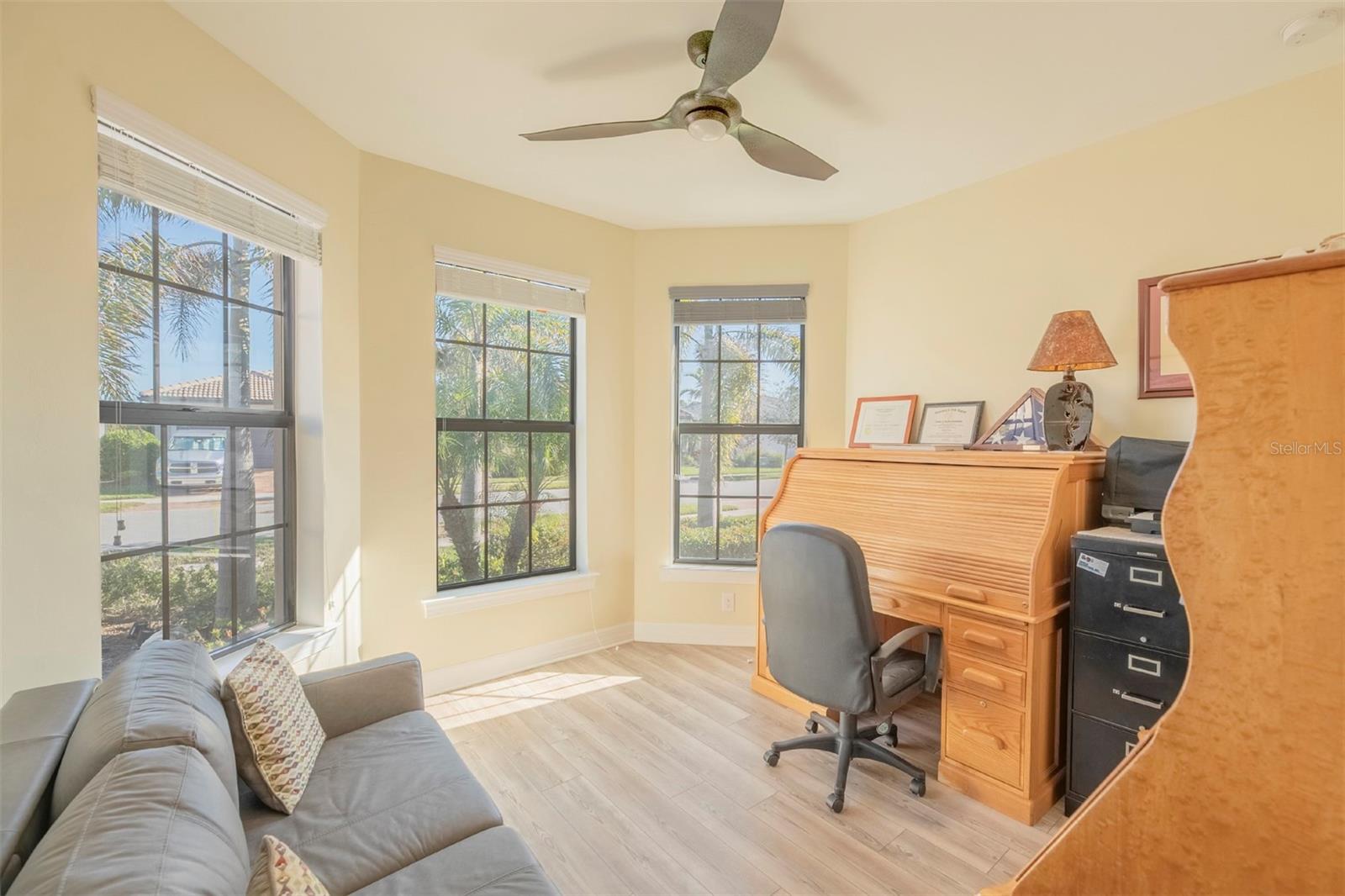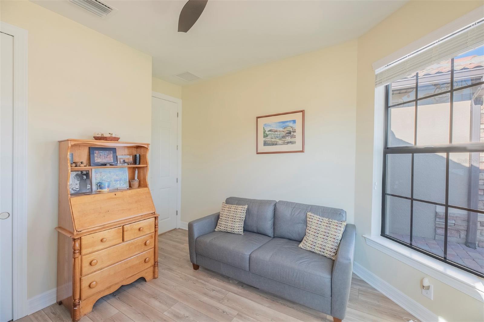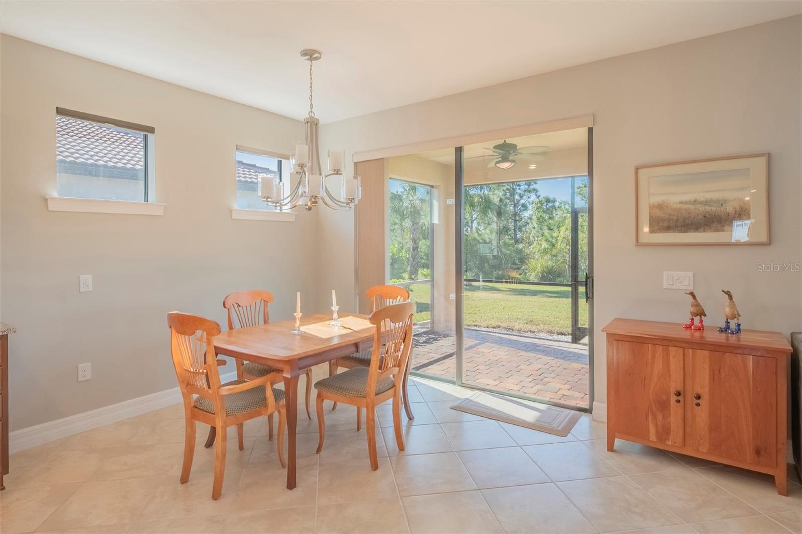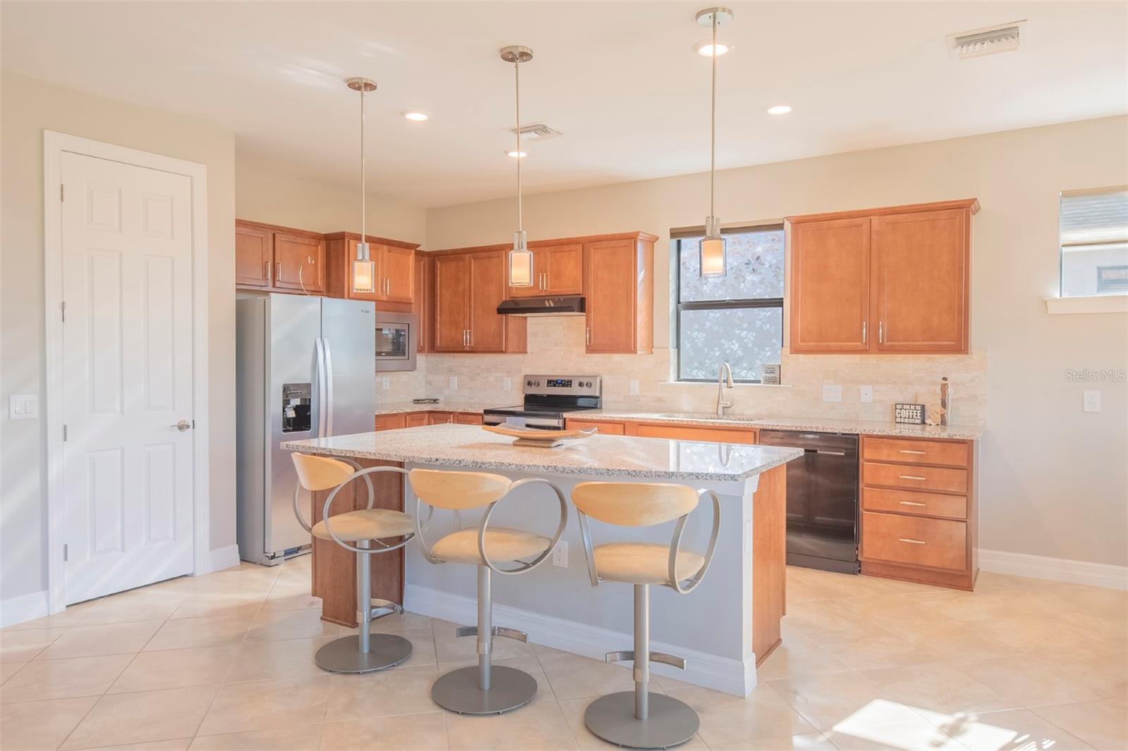 Book your showing today at this exceptional 3-bedroom, 2-bathroom Abbeyville home with thoughtful upgrades, a screened lanai and an expansive backyard. Meticulously maintained, only 5 years old, and rarely lived in (only 6-8 weeks a year) this home offers the perfect blend of style, comfort, and functionality. Its flexible, open-concept layout features three full bedrooms and two bathrooms, a rarity for Abbeyville models, with an easy flow from the living spaces to the kitchen and dining areas. The chef’s kitchen boasts a large granite island with extra storage. The upgraded interior includes tall doors, tile through all of the main living spaces, luxury vinyl in the bedrooms, an extra-large primary suite with an en suite bathroom that boasts dual vanities and an upgraded oversized shower. The large bathroom leads to a walk in closet. Window treatments are included throughout the home-- you'll be impressed by the blackout up-down shades in the bedrooms for restful mornings with a feature that allows for a special panoramic view when desired. Outdoors, the home shines with a beautiful stone fascia, a screened lanai, and an oversized backyard adorned with foxtail palms and a re-landscaped property line. The widened driveway leads to an impressive garage featuring an insulated door and ceiling, a built-in sink. Islandwalk offers a vibrant, resort-style lifestyle with golf carts dotting the streets, mature greenery, and plenty of planned activities. Residents enjoy lakes, bridges, and natural surroundings, as well as year-round events organized by a full-time activities director. The HOA provides maintenance-free living, managing three pools, pickleball and tennis courts, a fitness center, and a community room, along with exterior maintenance like trimming, mulching, and mowing. High-speed internet through Xfinity, a 24-hour staffed security gate, and a fully staffed onsite HOA office are also included. Conveniently located near the community exit, this home offers quick access to US-41, Tamiami Trail, and I-75. Wellen Park’s restaurants, concerts, and activities are just five minutes away, with Gulf beaches, historic Venice Island, and local airports within 25 minutes. Residents also enjoy a private back gate for easy access to Wellen Park and CoolToday Park, the Atlanta Braves’ spring training stadium. This home is a must-see, blending luxurious upgrades with practical features to enhance everyday living. Schedule your showing today and experience this beautifully crafted property for yourself!