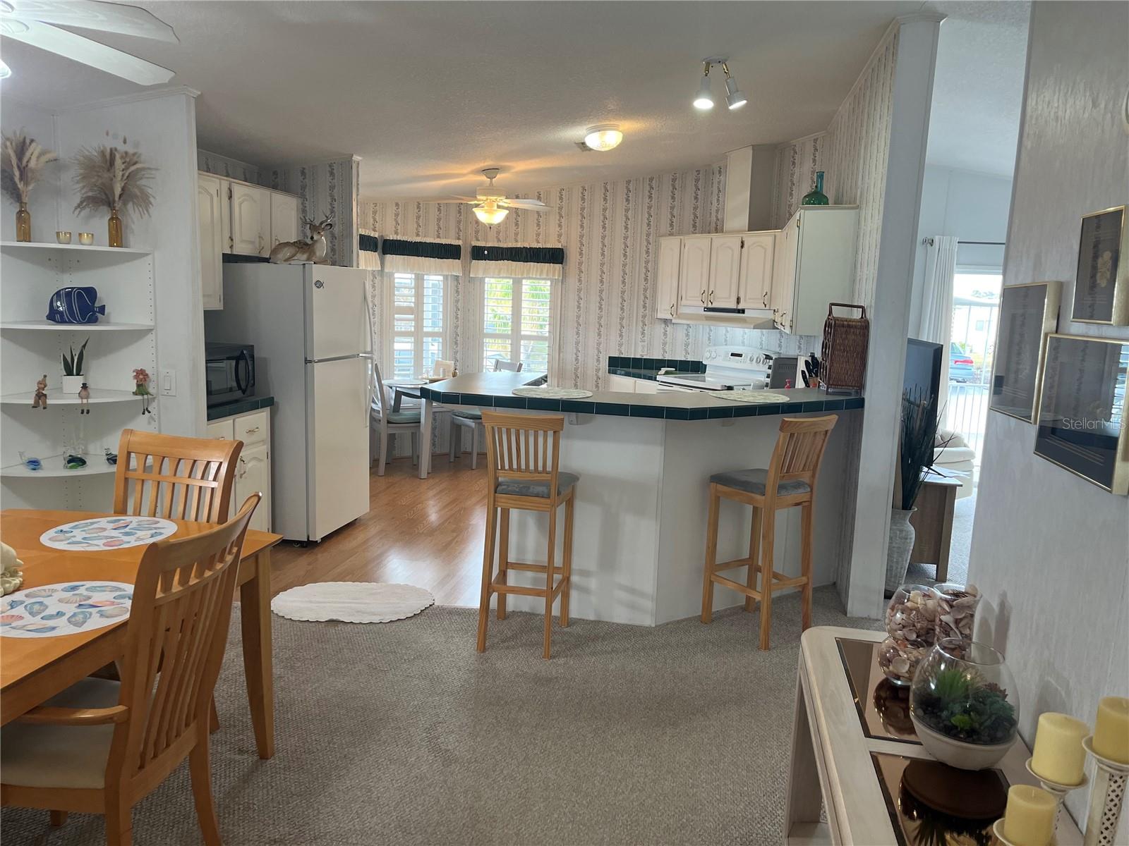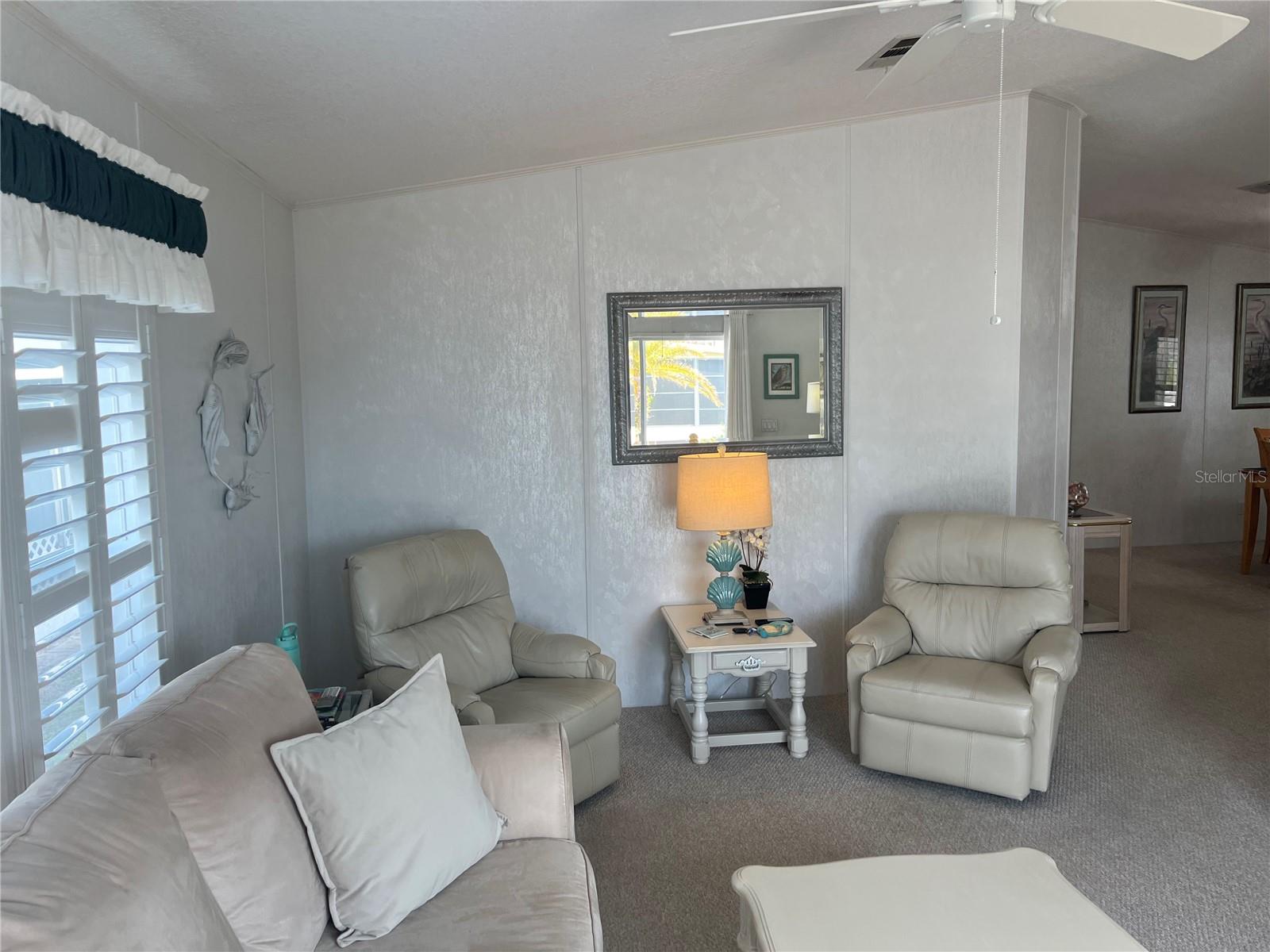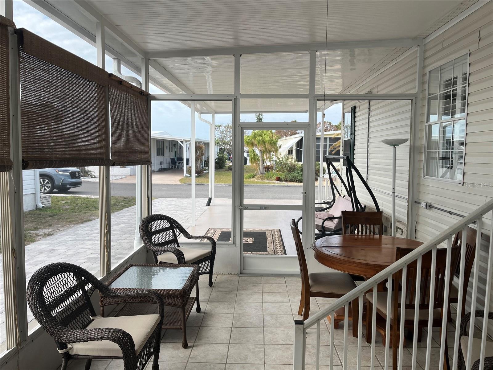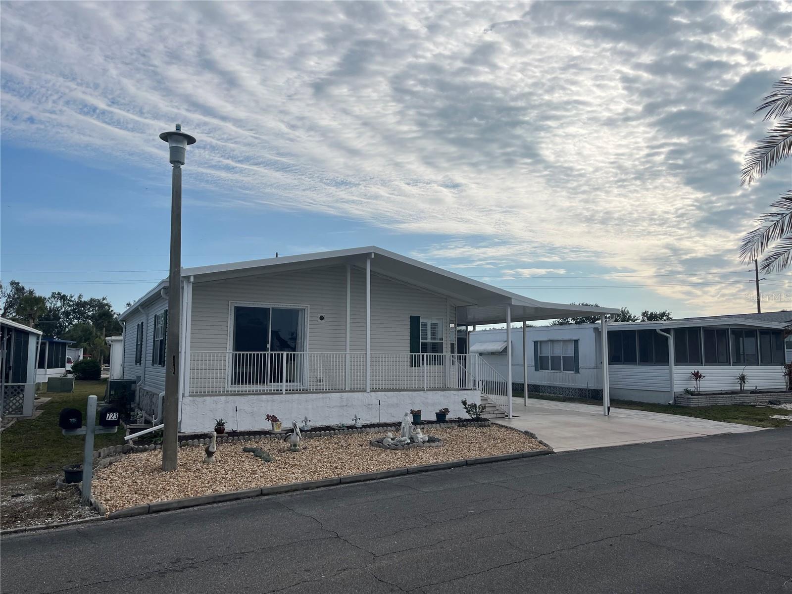 Newer home with vinyl siding, beautiful front porch and side screen room with tile flooring, An extra side drive for additional parking, A rear patio and AC in 2022, the interior has vaulted ceilings, Inside laundry, eating space in the kitchen as well as a breakfast bar, Split bedrooms a 28 wide home and fully furnished Venice Isle is the premier resident owned over 55 Mobile home Park in Venice. There are close to 1000 homes with the most active residents. There is always something going on for you to do. We have many Park gatherings and first rate shows on site. The Park has every amenity you can imagine. Come take a walk through both of our 2 clubhouses and make yourself at home. The Park has 2 tennis courts, a fitness center, 2 heated pools, 2 hot tubs, saunas, putting greens, shuffleboard, Bocce ball, miniature golf, art rooms, pool room, TV lounges, card rooms, library, horseshoes, ceramic kilns, 2 huge ballrooms, Sunday services and much more!