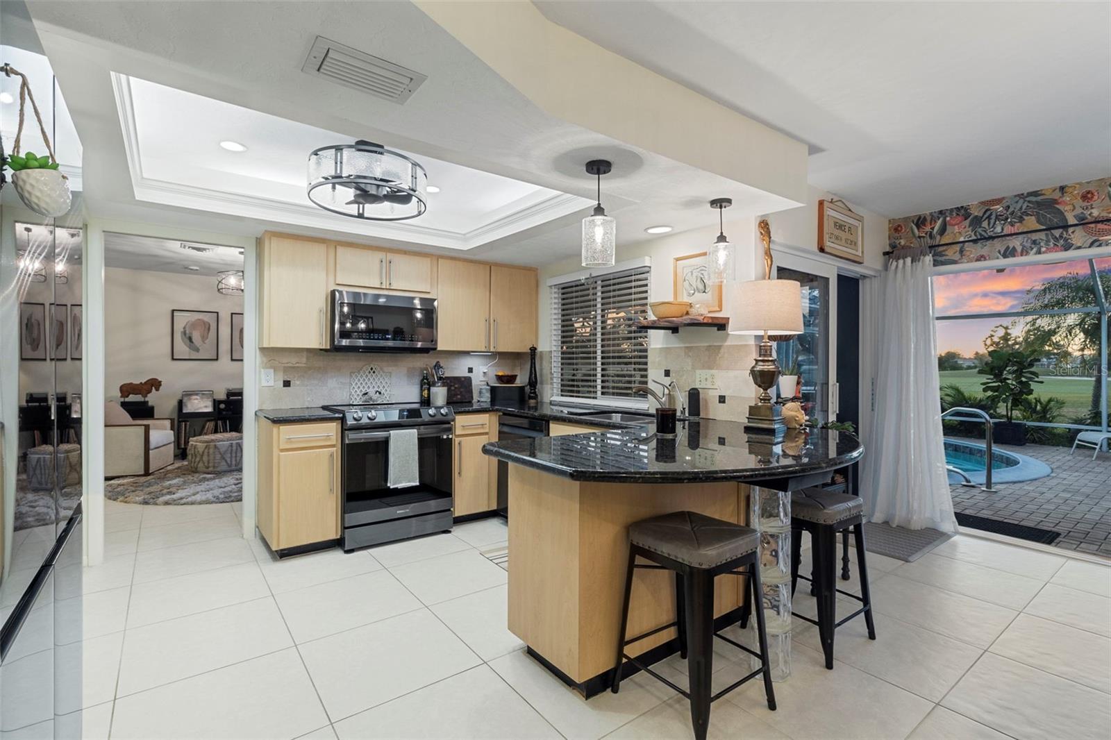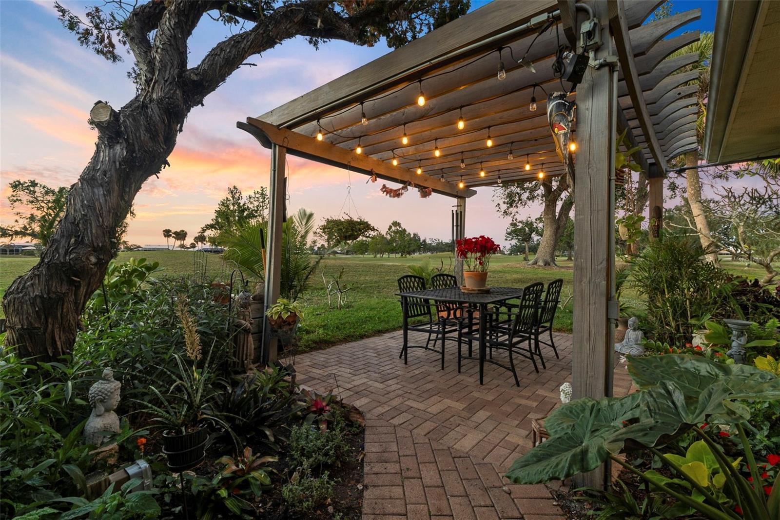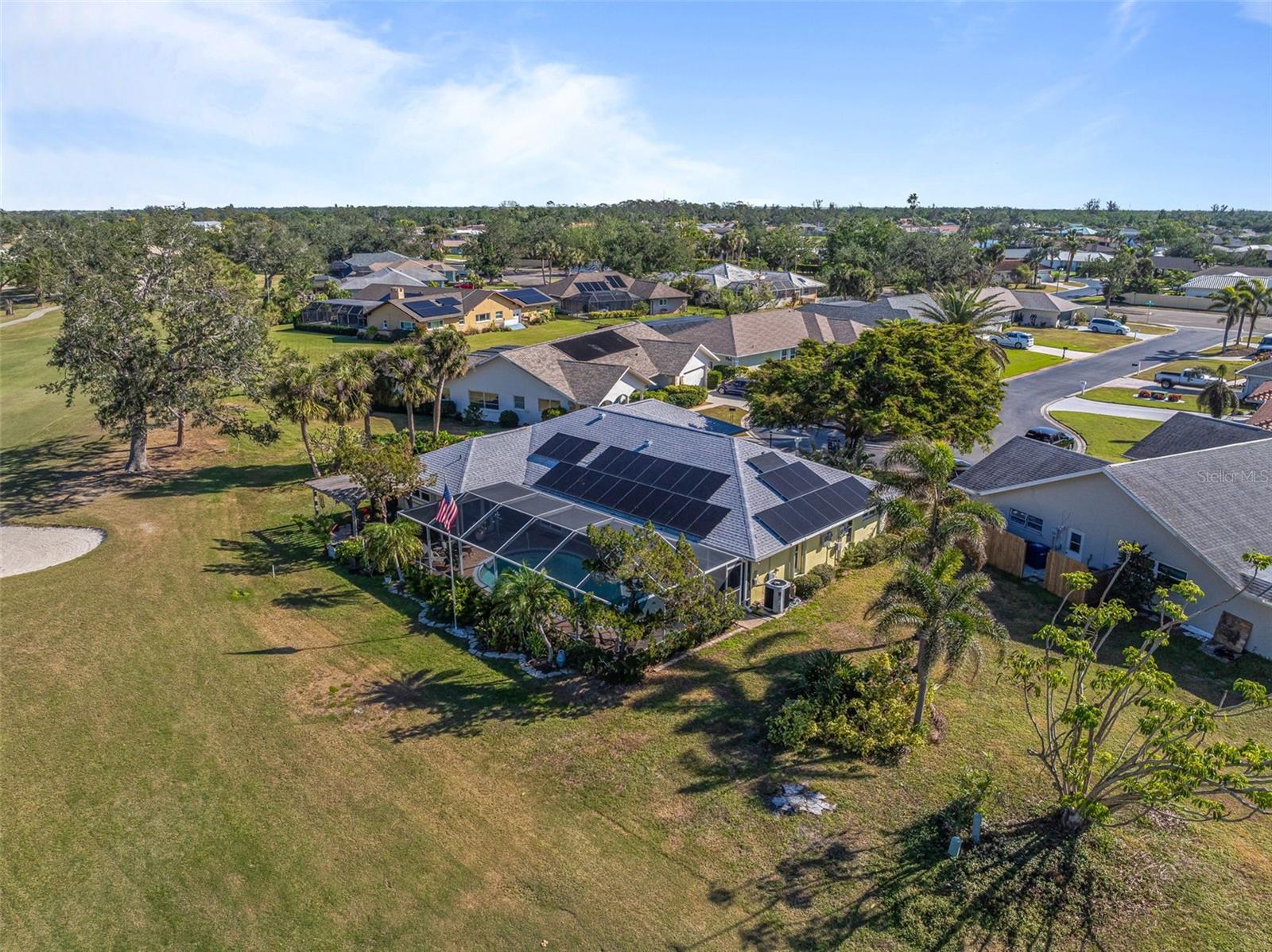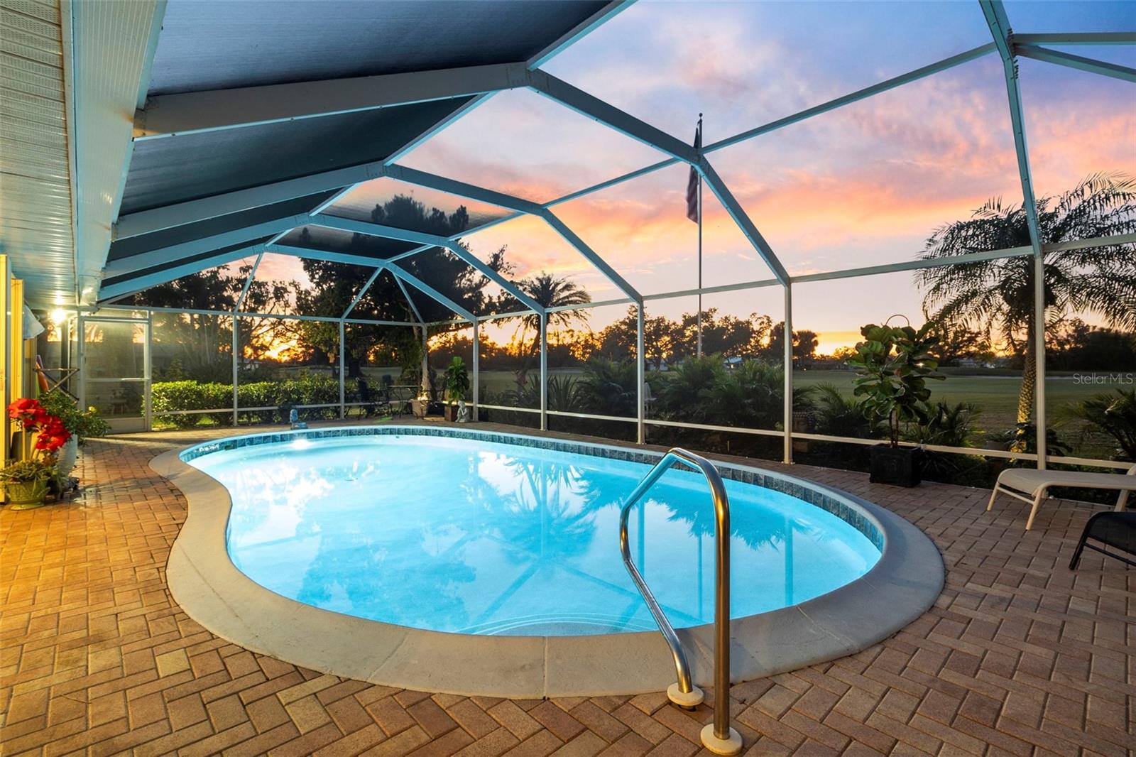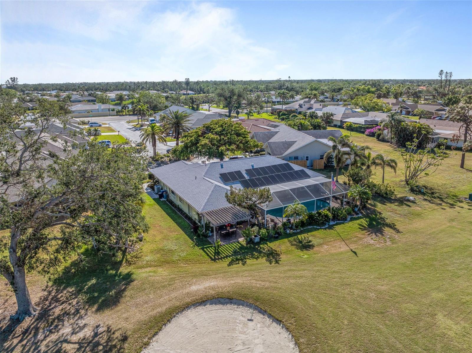 Nestled in the heart of Venice, Florida, this exquisite residence beckons those with a penchant for refined living. A harmonious blend of sophistication and comfort awaits within this three-bedroom, three-bathroom haven, where every detail has been meticulously crafted to elevate your lifestyle. This home exudes charm and character that is often missed in new construction today. Welcome to 1000 Joyce Ct, a stunning pool home situated on a serene, quiet street with only nine homes and a pristine golf course. With a west-facing rear, this property offers breathtaking sunset views, a charming pergola, and multiple updated glass sliders that frame captivating vistas of the oversized 8 foot deep heated saltwater pool and golf course. Furnishings are optional, offering flexibility to suit your needs. Modern updates include a 2022 roof, A/C system, and a 41-panel solar system for exceptional energy efficiency. The oversized pool, featuring a newer Built Right heater and pump, invites year-round relaxation. Inside, 24" tile floors flow seamlessly throughout, complemented by updated Samsung kitchen appliances and a 2022 hot water heater. Hurricane shutters and an impact-rated garage door provide peace of mind. Designed for both elegance and functionality, the spacious layout features a large living area, a formal dining room, and a cozy nook in the master bedroom. The pool bath offers added convenience for outdoor gatherings. This home sits on an expansive cul-de-sac lot, providing privacy, low HOA fees, and the benefit of being outside any flood zone. Ideally located just 10 minutes from Wellen Park, 15 minutes from the beach, and 15 minutes from historical downtown Venice, this home offers a lifestyle of luxury, comfort, and unparalleled convenience. Don’t miss the chance to make it yours!