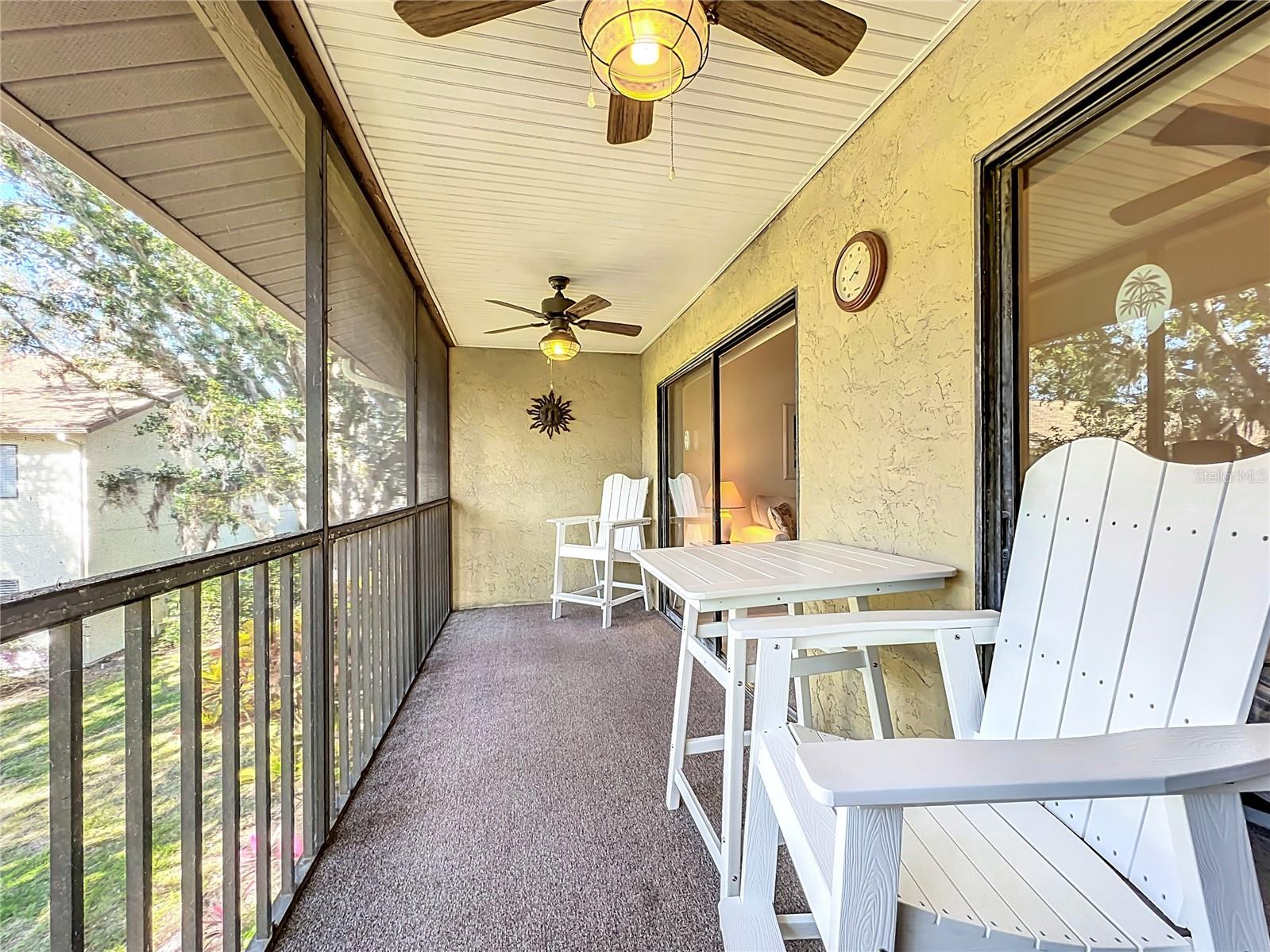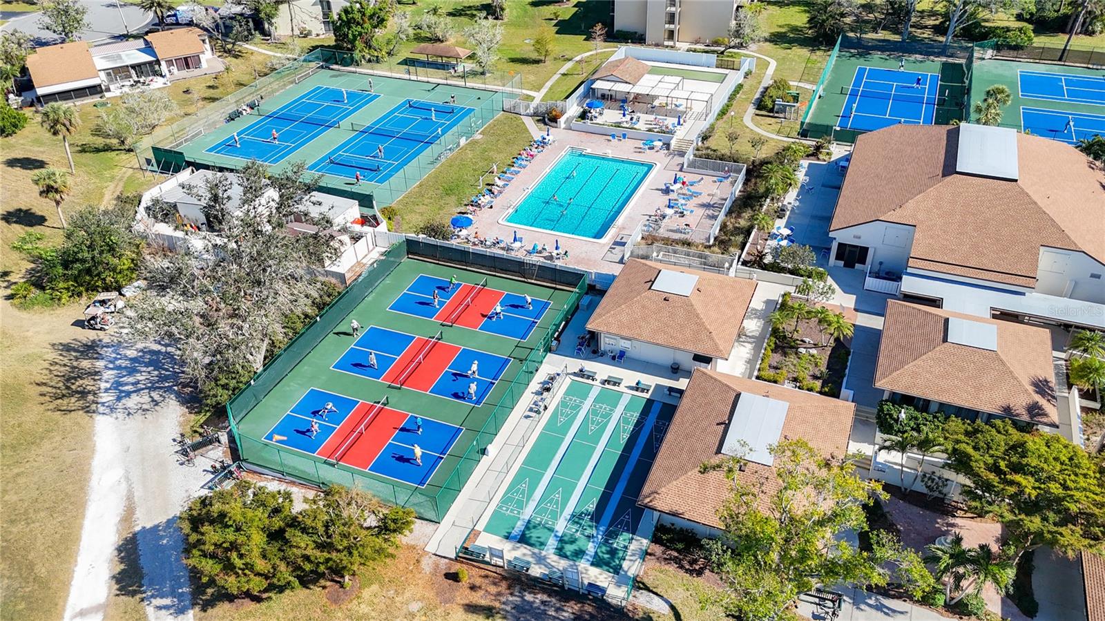 PHASE 5 BIRD BAY VILLAGE This second floor well maintained 2 bedroom 2 bath with its HIGH VAULTED CEILING creates a bright and inviting space. Unlike many units, this guest bedroom has no accordion curtain divider or french doors! You will be captivated by the incredible colors in the western sky at sunset from the 2 SCREENED LANAI'S Looking through the tree tops you have views of 2 peaceful ponds which makes this unit stand out from the rest. The main lanai spans the entire length of the living room and the guest room both with sliding doors that expands your living space. Plus your Primary bedroom has sliding doors to your own private lanai. NEW ROOF 2024. Bird Bay Village is a resort-style community with pools, tennis and pickle ball courts, fitness center, library, clubhouse and shuffleboard. There are plenty of planned activities for you to join in. Bird Bay Village has beautiful tree lined streets where you can enjoy biking and walking throughout the community. You can also explore the LEGACY TRAIL & The VENETIAN WATERWAY PARK which gives you miles of paved trails with access right at our entrance. BIRD BAY PHASE 5 HAS THE LOWEST HOA FEES in the community. The popular Island of Venice is only a few minutes away where you can enjoy quaint shops, great restaurants, entertainment, a pubic library, The Venice Performing Arts Center, our beautiful Venice public beach and a Farmers Market every Saturday to name a few. See, you can have it all.