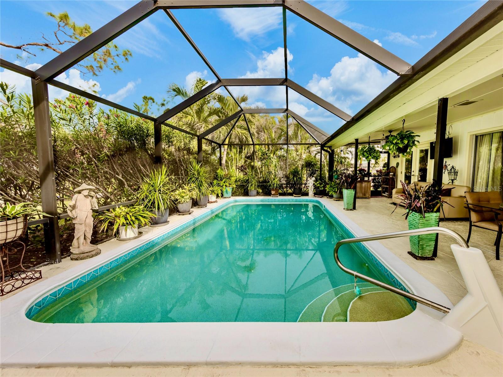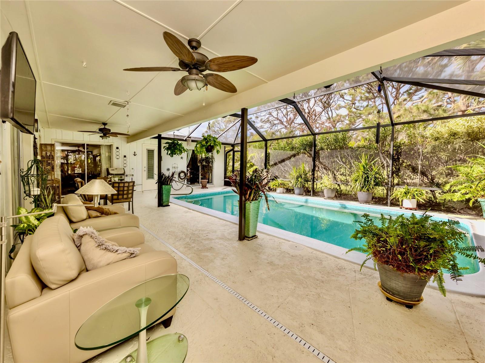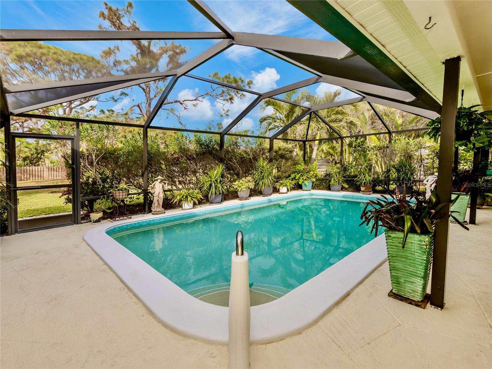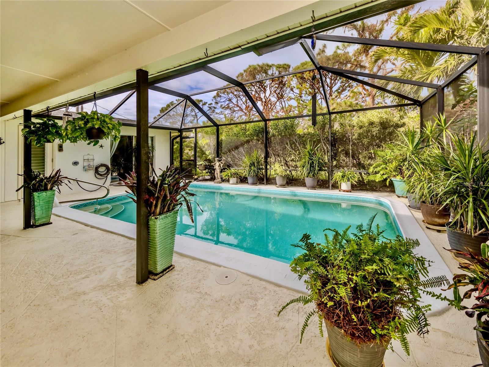 BEAUTIFUL Venice Island POOL Home with 3 CAR GARAGE! This remarkable 4 bedroom, 2 bathroom, 3 car garage home is a true gem, offering an ideal blend of refined design, modern upgrades, and lush outdoor living. From arrival, the home’s curb appeal leaves a lasting impression. The meticulously maintained landscaping, pavered driveway, louvered window shutters, and tasteful wall-mounted light fixtures create a picturesque setting. Surrounding plant beds, filled with vibrant flowers and greenery, add to the home’s garden-like charm. Step inside to a spacious living room accented with an arched passageway, plantation shutters, a mid-century modern ceiling fan, and recessed lighting that enhances the natural brightness of the space. Continuing to the heart of the home, the kitchen has been completely renovated with the finest improvements. White shaker-style cabinets, Cambria quartz countertops, and stainless steel appliances, including a Thermador 6-burner gas stove with hood, a GE refrigerator, dishwasher, and Silhouette dual-temperature wine cooler, ensure all your needs are met. For further benefit, the kitchen includes Shelf Genie shelving in the cabinets and converted pantry closet, making organization effortless. The kitchen extends seamlessly into the dining room, where more cabinetry, countertop workspace, and a second wine fridge create a model spot for a coffee or drink bar. The home’s preferable split floor plan provides privacy and convenience. The primary bedroom is a tranquil retreat with hurricane-proof French doors presenting views and direct access to the pool. The en suite bathroom is thoughtfully designed with dual sinks, marble countertops, mirrored medicine cabinets, walk-in shower with built-in bench, and two linen closets for extra storage. The remaining three bedrooms, located at the back of the home, feature built-in closets and abundant natural light. The updated second bathroom includes marble countertops, walk-in shower, linen closet, and outdoor pool access. Step outside to experience the epitome of Florida living. The large pool area is surrounded by tropical landscaping, creating a private oasis. The newly resurfaced pool deck and lanai provide sufficient space for relaxation and entertainment. Features include window bar seating, a sizable covered lanai for multiple seating areas or decorative plants, an outdoor shower, and updated pool cage. Dense hedges and 20-foot Areca trees provide natural privacy around the backyard and pool area. The backyard is a gardener’s dream, with flourishing plant beds featuring native flowering plants, grasses, and trees. Additional home highlights include 12x10 Tuff Shed with windows and shelving, recently added interior bonus room (in addition to the third garage bay), terrazzo flooring all throughout, and a host of recent updates including a NEW ROOF (Sept. 2024), 2022 HVAC, 2022 Kohler 20 kW generator with 500-gallon LP tank, 2021 well and pump, NEW pool pump and filter (2024), and updated PVC plumbing for both water and sewer lines. Home is located less than 1 mile from Venice Beach and Historic Downtown Venice. Home is in close proximity to shops, restaurants, Venice Theatre, Venice Community Center, Venice Public Library, Venice Hospital, Golf Courses, parks, Legacy Trail, Venice Art Center, Venice Performing Arts Center, and many other appealing destinations. Don't miss the chance to experience this desirable Florida lifestyle!