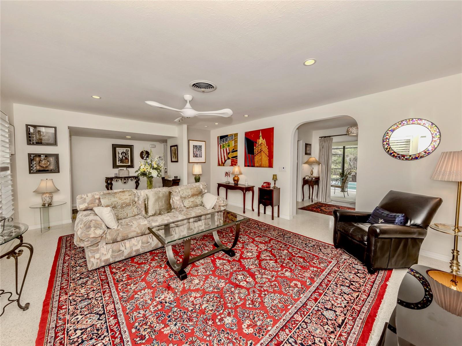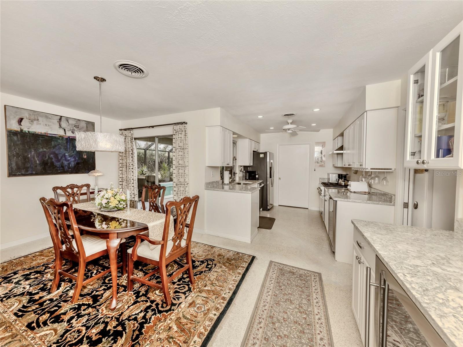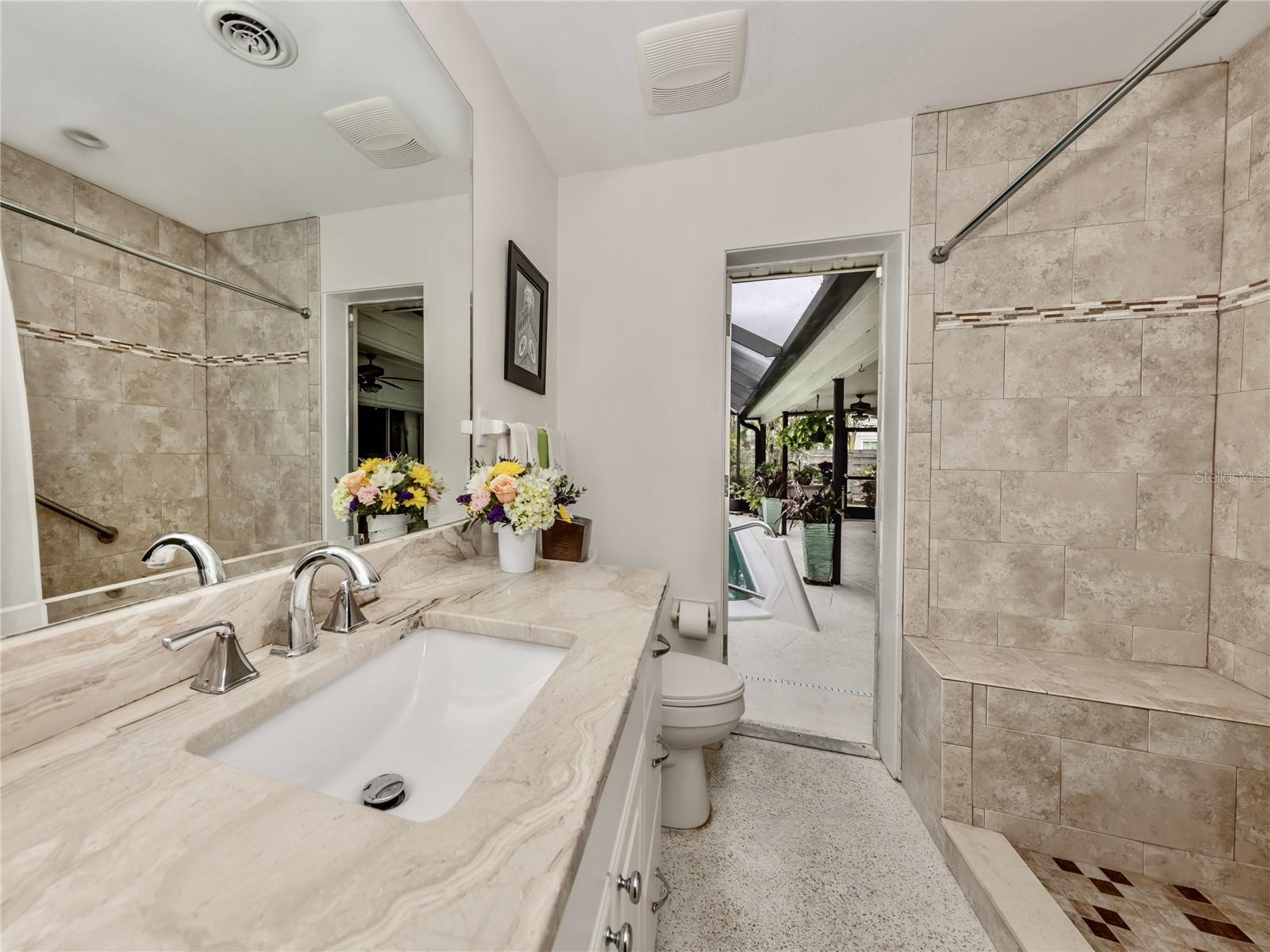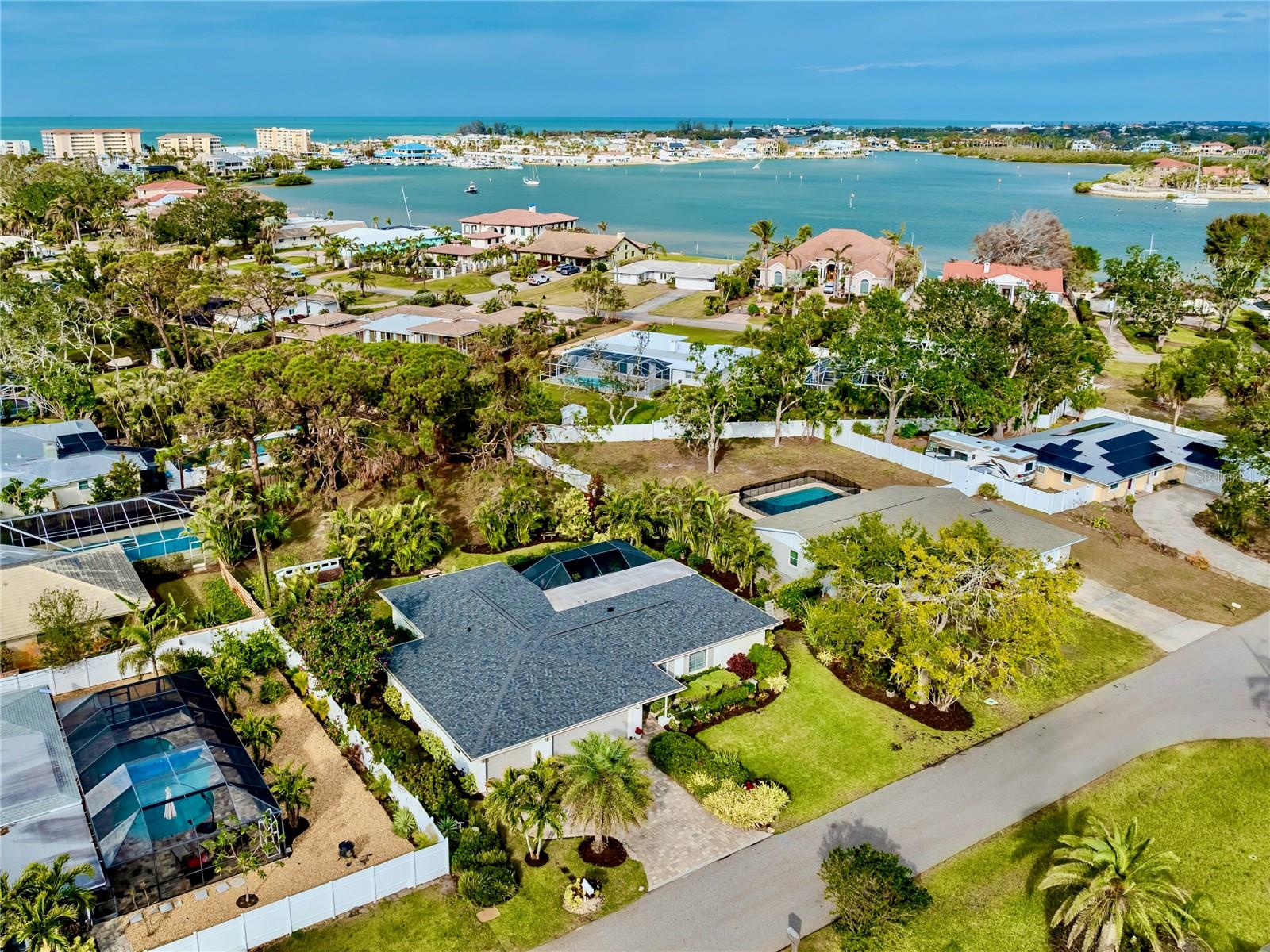 BEAUTIFUL Venice Island POOL Home with 3 CAR GARAGE! This remarkable 4 bedroom, 2 bathroom, 3 car garage home is a true gem, offering an ideal blend of refined design, modern upgrades, and lush outdoor living. From arrival, the home’s curb appeal leaves a lasting impression. The meticulously maintained landscaping, pavered driveway, louvered window shutters, and tasteful wall-mounted light fixtures create a picturesque setting. Surrounding plant beds, filled with vibrant flowers and greenery, add to the home’s garden-like charm. Step inside to a spacious living room accented with an arched passageway, plantation shutters, a mid-century modern ceiling fan, and recessed lighting that enhances the natural brightness of the space. Continuing to the heart of the home, the kitchen has been completely renovated with the finest improvements. White shaker-style cabinets, Cambria quartz countertops, and stainless steel appliances, including a Thermador 6-burner gas stove with hood, a GE refrigerator, dishwasher, and Silhouette dual-temperature wine cooler, ensure all your needs are met. For further benefit, the kitchen includes Shelf Genie shelving in the cabinets and converted pantry closet, making organization effortless. The kitchen extends seamlessly into the dining room, where more cabinetry, countertop workspace, and a second wine fridge create a model spot for a coffee or drink bar. The home’s preferable split floor plan provides privacy and convenience. The primary bedroom is a tranquil retreat with hurricane-proof French doors presenting views and direct access to the pool. The en suite bathroom is thoughtfully designed with dual sinks, marble countertops, mirrored medicine cabinets, walk-in shower with built-in bench, and two linen closets for extra storage. The remaining three bedrooms, located at the back of the home, feature built-in closets and abundant natural light. The updated second bathroom includes marble countertops, walk-in shower, linen closet, and outdoor pool access. Step outside to experience the epitome of Florida living. The large pool area is surrounded by tropical landscaping, creating a private oasis. The newly resurfaced pool deck and lanai provide sufficient space for relaxation and entertainment. Features include window bar seating, a sizable covered lanai for multiple seating areas or decorative plants, an outdoor shower, and updated pool cage. Dense hedges and 20-foot Areca trees provide natural privacy around the backyard and pool area. The backyard is a gardener’s dream, with flourishing plant beds featuring native flowering plants, grasses, and trees. Additional home highlights include 12x10 Tuff Shed with windows and shelving, recently added interior bonus room (in addition to the third garage bay), terrazzo flooring all throughout, and a host of recent updates including a NEW ROOF (Sept. 2024), 2022 HVAC, 2022 Kohler 20 kW generator with 500-gallon LP tank, 2021 well and pump, NEW pool pump and filter (2024), and updated PVC plumbing for both water and sewer lines. Home is located less than 1 mile from Venice Beach and Historic Downtown Venice. Home is in close proximity to shops, restaurants, Venice Theatre, Venice Community Center, Venice Public Library, Venice Hospital, Golf Courses, parks, Legacy Trail, Venice Art Center, Venice Performing Arts Center, and many other appealing destinations. Don't miss the chance to experience this desirable Florida lifestyle!