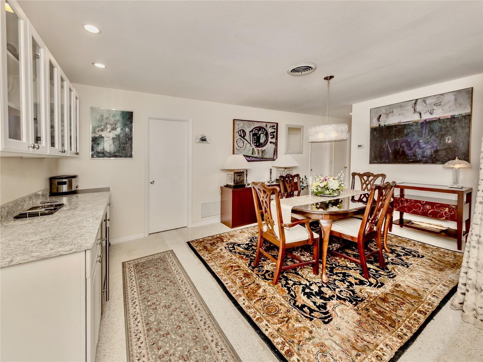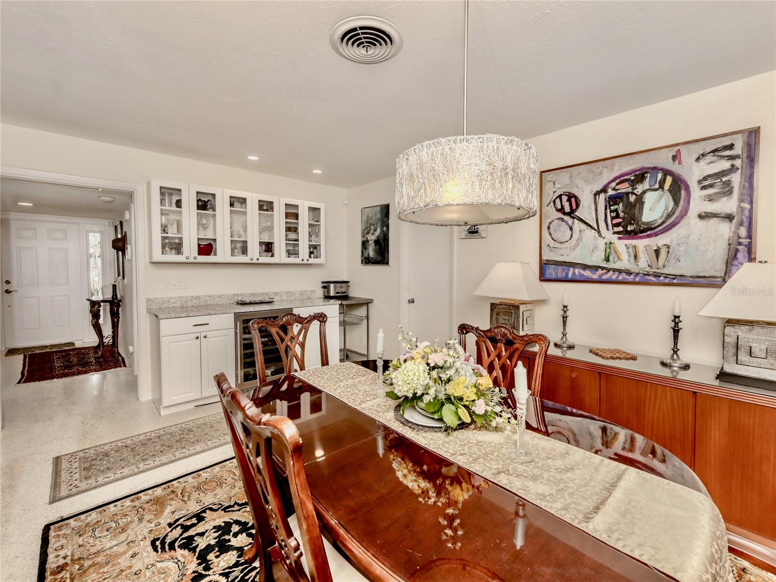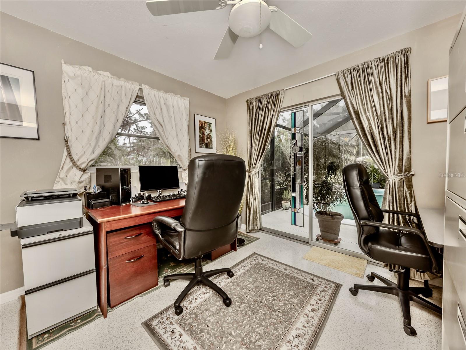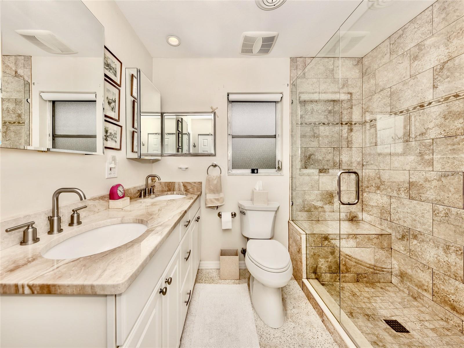 BEAUTIFUL Venice Island POOL Home with 3 CAR GARAGE! This remarkable 4 bedroom, 2 bathroom, 3 car garage home is a true gem, offering an ideal blend of refined design, modern upgrades, and lush outdoor living. From arrival, the home’s curb appeal leaves a lasting impression. The meticulously maintained landscaping, pavered driveway, louvered window shutters, and tasteful wall-mounted light fixtures create a picturesque setting. Surrounding plant beds, filled with vibrant flowers and greenery, add to the home’s garden-like charm. Step inside to a spacious living room accented with an arched passageway, plantation shutters, a mid-century modern ceiling fan, and recessed lighting that enhances the natural brightness of the space. Continuing to the heart of the home, the kitchen has been completely renovated with the finest improvements. White shaker-style cabinets, Cambria quartz countertops, and stainless steel appliances, including a Thermador 6-burner gas stove with hood, a GE refrigerator, dishwasher, and Silhouette dual-temperature wine cooler, ensure all your needs are met. For further benefit, the kitchen includes Shelf Genie shelving in the cabinets and converted pantry closet, making organization effortless. The kitchen extends seamlessly into the dining room, where more cabinetry, countertop workspace, and a second wine fridge create a model spot for a coffee or drink bar. The home’s preferable split floor plan provides privacy and convenience. The primary bedroom is a tranquil retreat with hurricane-proof French doors presenting views and direct access to the pool. The en suite bathroom is thoughtfully designed with dual sinks, marble countertops, mirrored medicine cabinets, walk-in shower with built-in bench, and two linen closets for extra storage. The remaining three bedrooms, located at the back of the home, feature built-in closets and abundant natural light. The updated second bathroom includes marble countertops, walk-in shower, linen closet, and outdoor pool access. Step outside to experience the epitome of Florida living. The large pool area is surrounded by tropical landscaping, creating a private oasis. The newly resurfaced pool deck and lanai provide sufficient space for relaxation and entertainment. Features include window bar seating, a sizable covered lanai for multiple seating areas or decorative plants, an outdoor shower, and updated pool cage. Dense hedges and 20-foot Areca trees provide natural privacy around the backyard and pool area. The backyard is a gardener’s dream, with flourishing plant beds featuring native flowering plants, grasses, and trees. Additional home highlights include 12x10 Tuff Shed with windows and shelving, recently added interior bonus room (in addition to the third garage bay), terrazzo flooring all throughout, and a host of recent updates including a NEW ROOF (Sept. 2024), 2022 HVAC, 2022 Kohler 20 kW generator with 500-gallon LP tank, 2021 well and pump, NEW pool pump and filter (2024), and updated PVC plumbing for both water and sewer lines. Home is located less than 1 mile from Venice Beach and Historic Downtown Venice. Home is in close proximity to shops, restaurants, Venice Theatre, Venice Community Center, Venice Public Library, Venice Hospital, Golf Courses, parks, Legacy Trail, Venice Art Center, Venice Performing Arts Center, and many other appealing destinations. Don't miss the chance to experience this desirable Florida lifestyle!