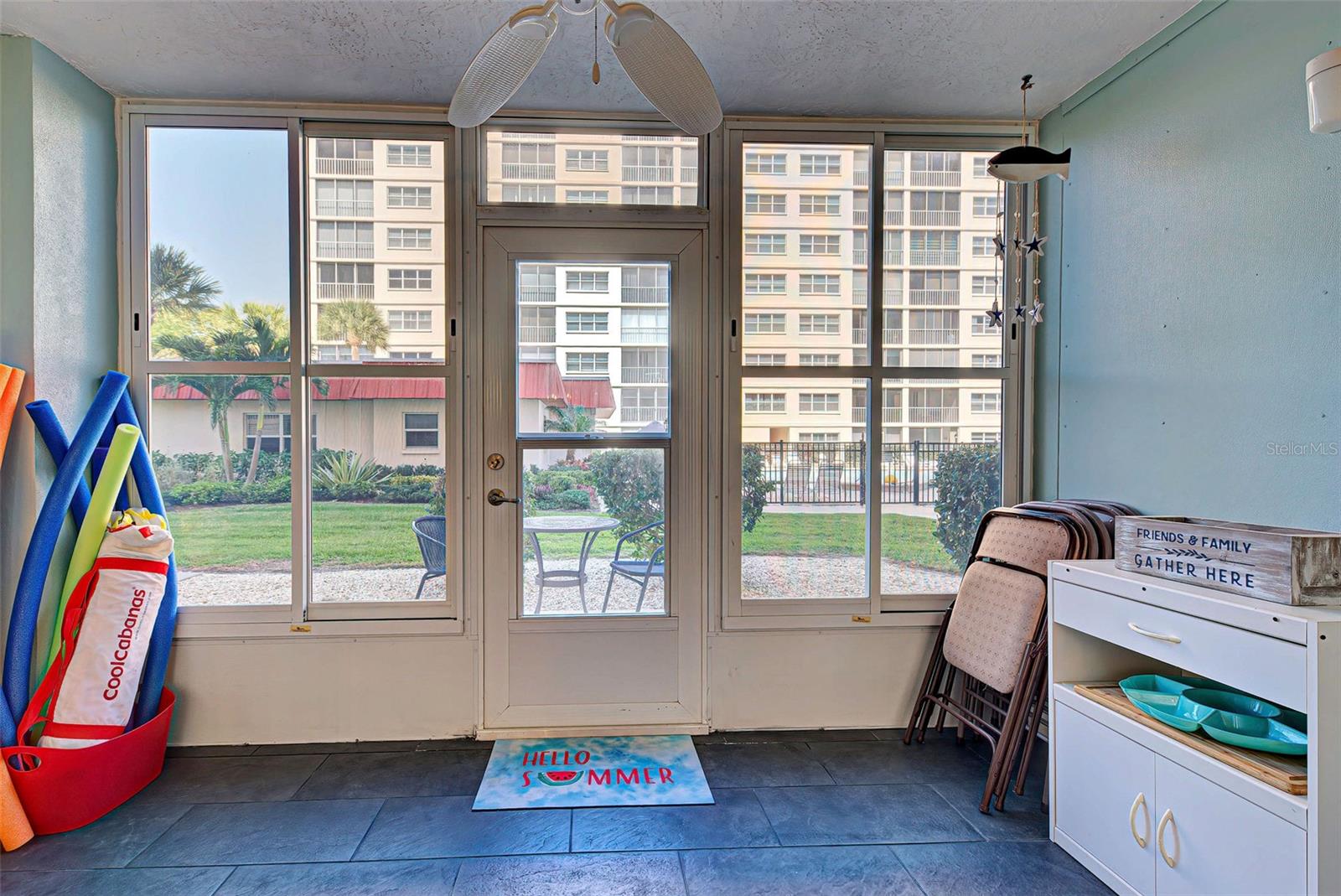Come and enjoy condo living at its best on the Island of a Venice here at the Venice Costa Brava! This well-kept unit is unique with a double lanai...One inside and one outside patio to enjoy outdoor living daily... reading your book or newspapers in the day or relaxing outside on warm breezy evenings! Being on the 1st floor it's a few steps to the pool, grills and the clubhouse where you can enjoy seasonal activities provided and gatherings with other residents. Unit has recently installed a NEW air-conditioning unit in 2024. Updated kitchen, Some new flooring & appliances. NEWER Hurricane Impact lanai windows! Window treatments/blinds are included. An easy walk to shops, The Venice Theatre, Library, Community Center, The Art Center, many great restaurants and shopping all very close to this complex. The Venice Beach is about 1.2 miles away, where you can enjoy swimming, beautiful sunsets and Yoga on the beach daily! Costa Brava features shuffleboard, a beautiful, heated pool with many lounges, chairs for sunning, (and shade umbrellas, too!) laundry facilities and 2 storage lockers! 1 designated underground parking spot with ample guest parking on the above parking deck. Cable TV is included in your HOA. Venice Costa Brava is a very friendly place to be!! Come grab your piece of Paradise!