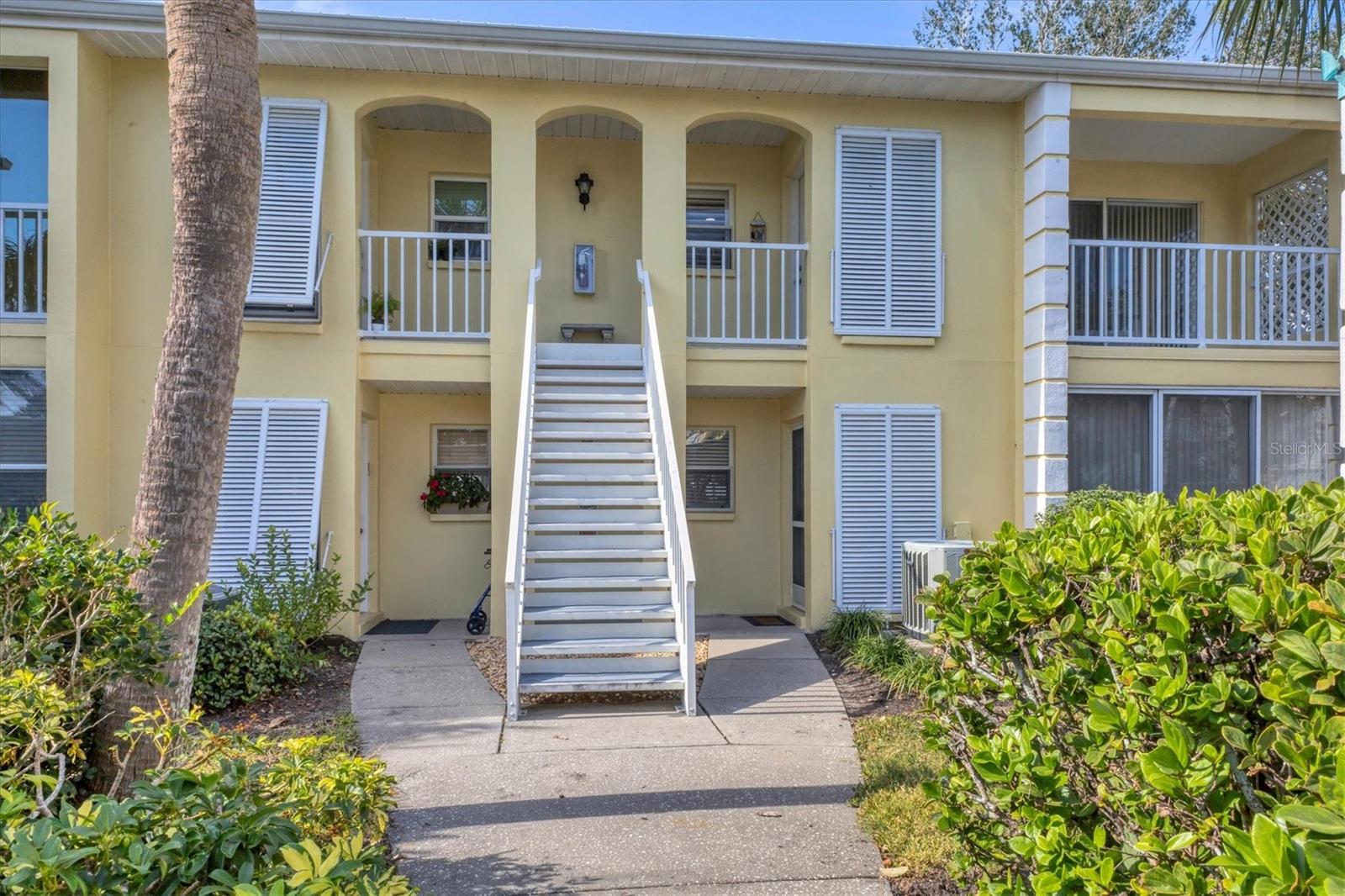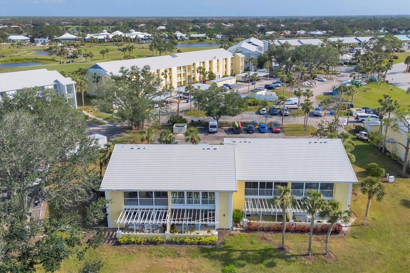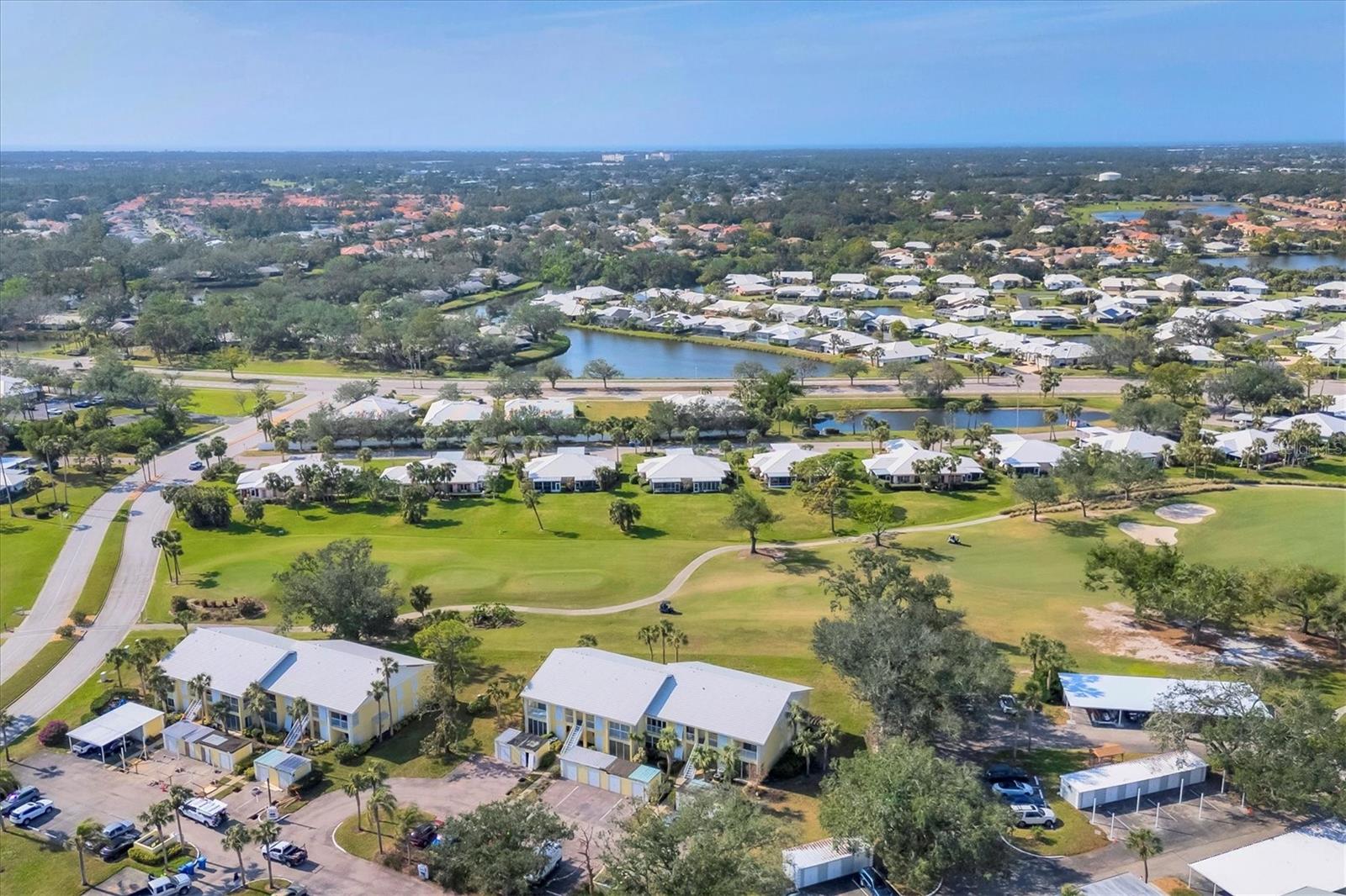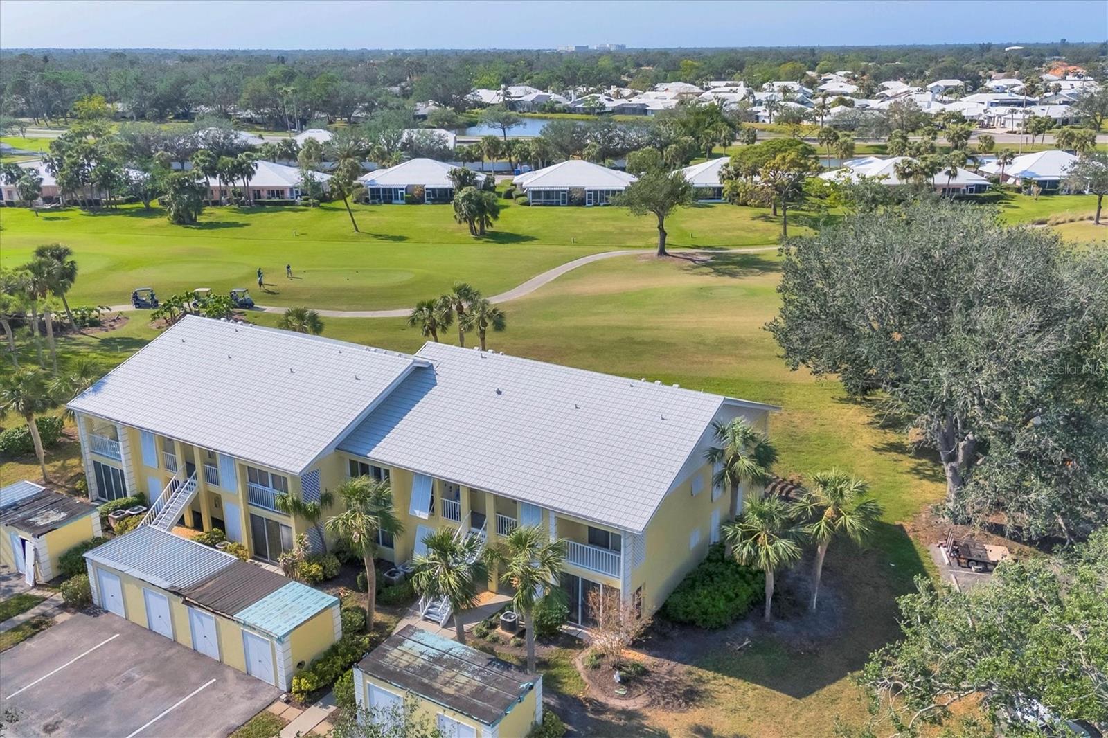 Enjoy breathtaking Florida sunsets overlooking the 8th tee and fairway from this charming 2nd-floor end-unit condo. The residence features soaring cathedral ceilings and stylish vinyl plank flooring throughout the living space and bedrooms. The primary bedroom boasts an en-suite bathroom and a spacious walk-in closet, while the guest bedroom offers its own private patio—perfect for unwinding in peace. Recent updates include a new hot water heater and A/C system (2023), a new roof (2024), and ongoing upgrades to carports and storage roofs. This condo is being sold furnished, making it move-in ready for its next owner. Residents can take advantage of the neighborhood pool and clubhouse, ideal for social gatherings, exercise, or relaxation. Best of all, there are no CDD fees. Conveniently located near Wellen Park, downtown Venice, and some of Florida’s most spectacular beaches. Optional private country club memberships are available, offering various membership types to suit your lifestyle. Don’t miss this opportunity to own a slice of Florida paradise!