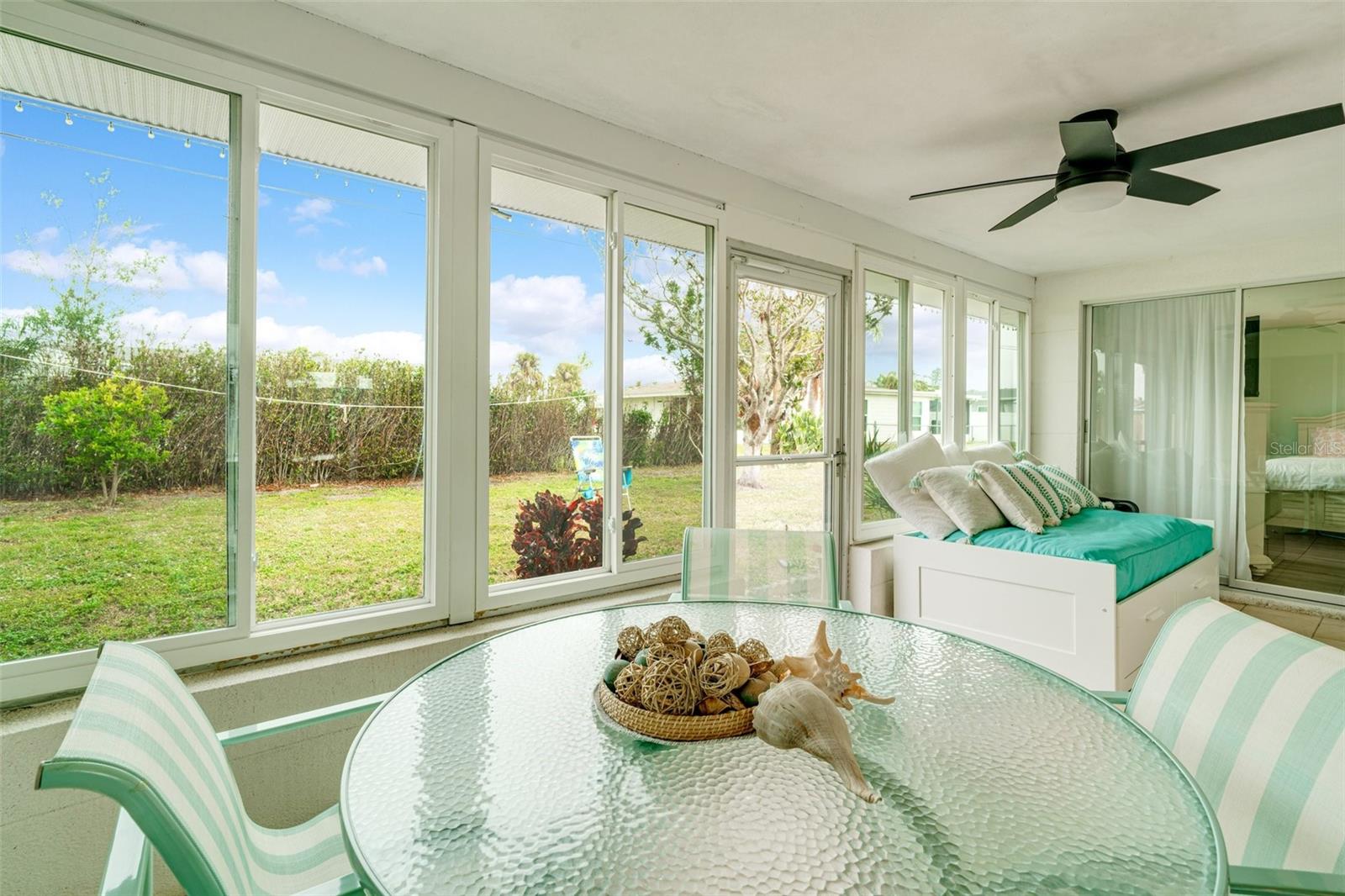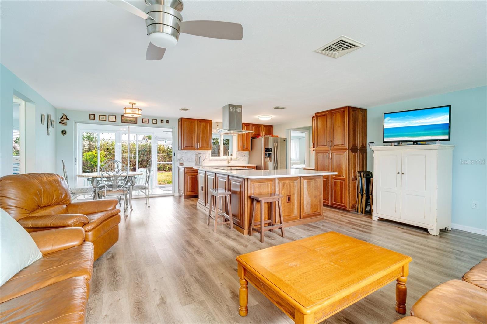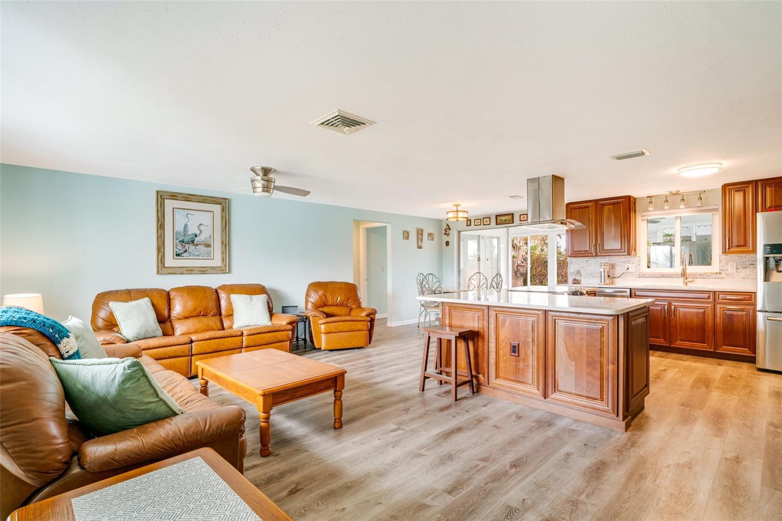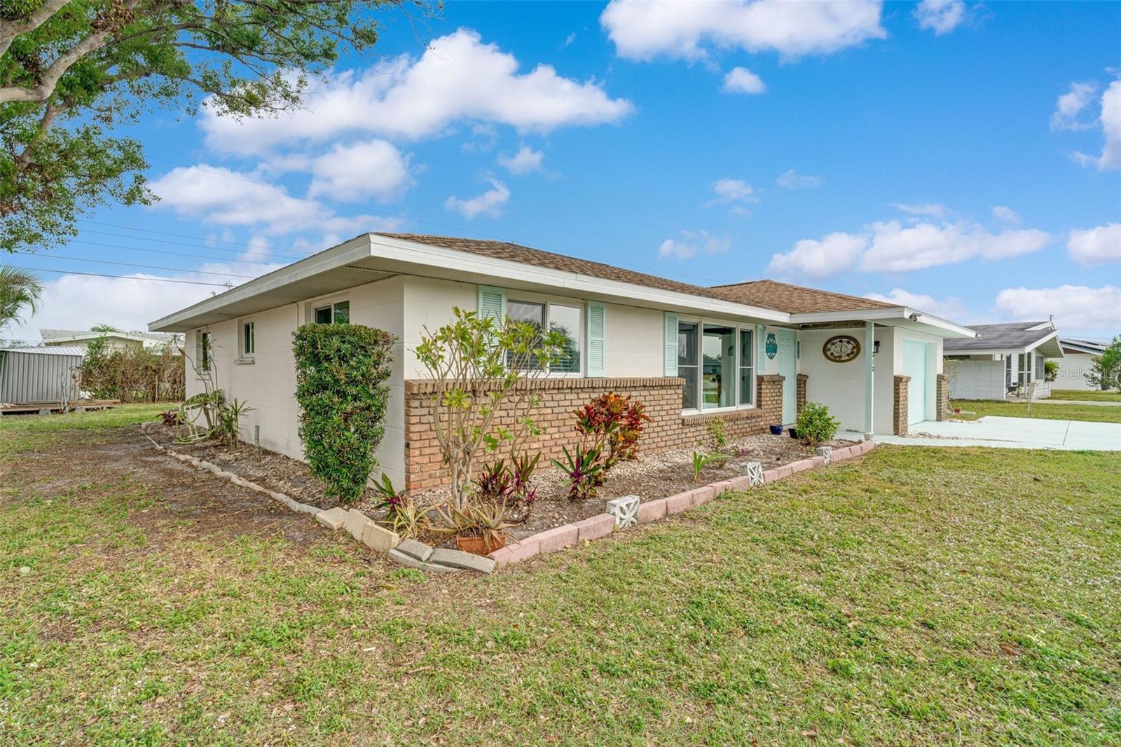 Live HOA and deed restriction free in this Venice Gardens charmer with city water and sewer. This adorable home features a split floor plan with a primary bedroom and bath on one end and two bedrooms with a bath between on the other. The updated kitchen, with island cooktop and hood vent, are at the center of the home providing a clear view to the living and dining rooms and easy access to the gorgeous sunlight filled Florida room. The main living areas and bedrooms are adorned with "wood look" vinyl plank flooring while the bathrooms and Florida room floors are ceramic tile. Impact windows keep you prepared for inclement weather and a one car garage provides protection for your vehicle and your on site laundry. Enjoy extra storage space for your things with a shed in the backyard. A new Roof & Impact windows were completed in 2019. This home is less than 4 miles to Venice Beach and the wonderful shops and restaurants on Venice Avenue. An optional membership to the Venice Gardens Civic Association can be purchased which features an olympic sized swimming pool and different community events throughout the year. Entryway soffit and missing ridge cap shingles will be replaced prior to closing. Schedule your showing today to tour this beautiful home. All measurements are to be verified by the buyer and/or the buyer's representative.