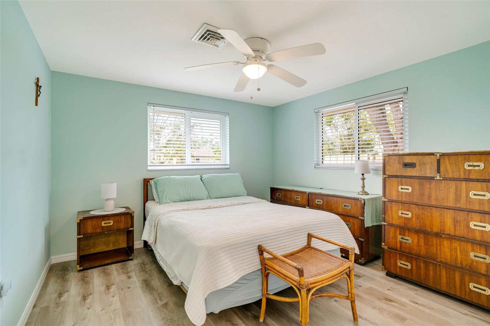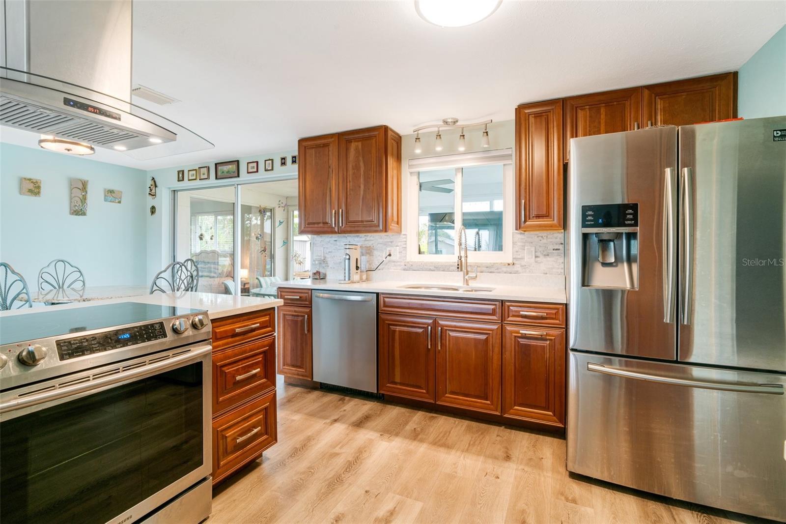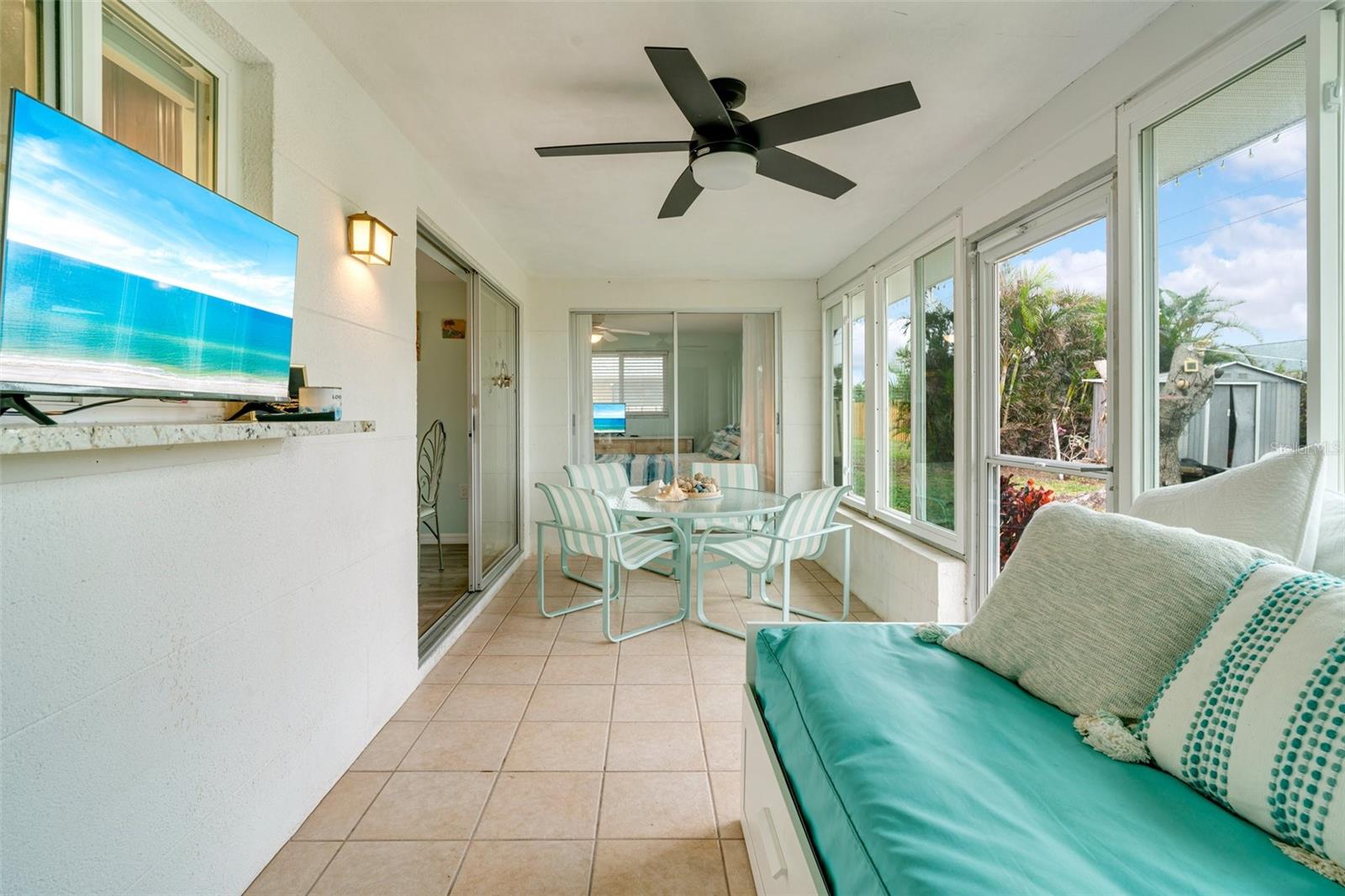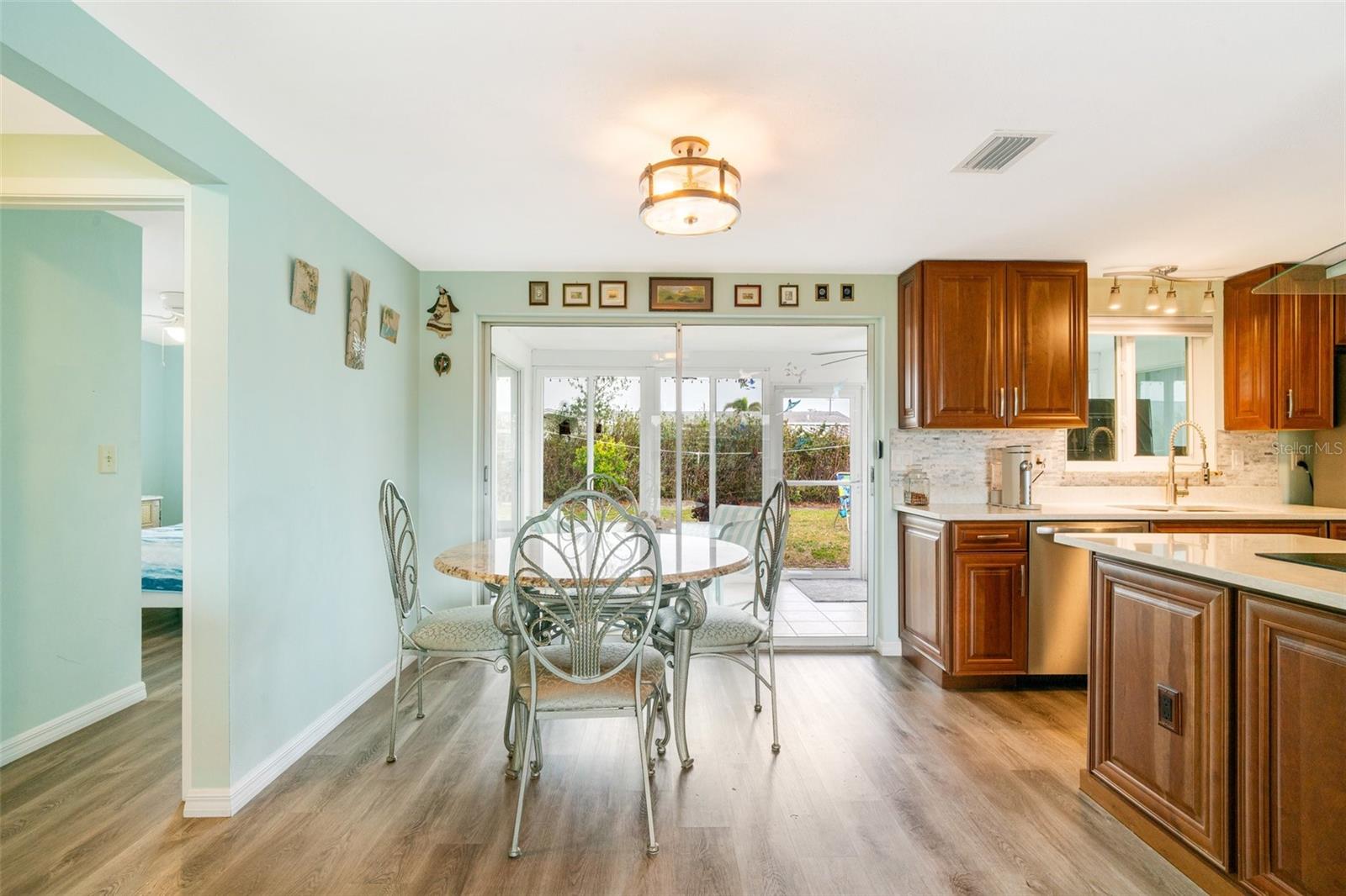 Live HOA and deed restriction free in this Venice Gardens charmer with city water and sewer. This adorable home features a split floor plan with a primary bedroom and bath on one end and two bedrooms with a bath between on the other. The updated kitchen, with island cooktop and hood vent, are at the center of the home providing a clear view to the living and dining rooms and easy access to the gorgeous sunlight filled Florida room. The main living areas and bedrooms are adorned with "wood look" vinyl plank flooring while the bathrooms and Florida room floors are ceramic tile. Impact windows keep you prepared for inclement weather and a one car garage provides protection for your vehicle and your on site laundry. Enjoy extra storage space for your things with a shed in the backyard. A new Roof & Impact windows were completed in 2019. This home is less than 4 miles to Venice Beach and the wonderful shops and restaurants on Venice Avenue. An optional membership to the Venice Gardens Civic Association can be purchased which features an olympic sized swimming pool and different community events throughout the year. Entryway soffit and missing ridge cap shingles will be replaced prior to closing. Schedule your showing today to tour this beautiful home. All measurements are to be verified by the buyer and/or the buyer's representative.