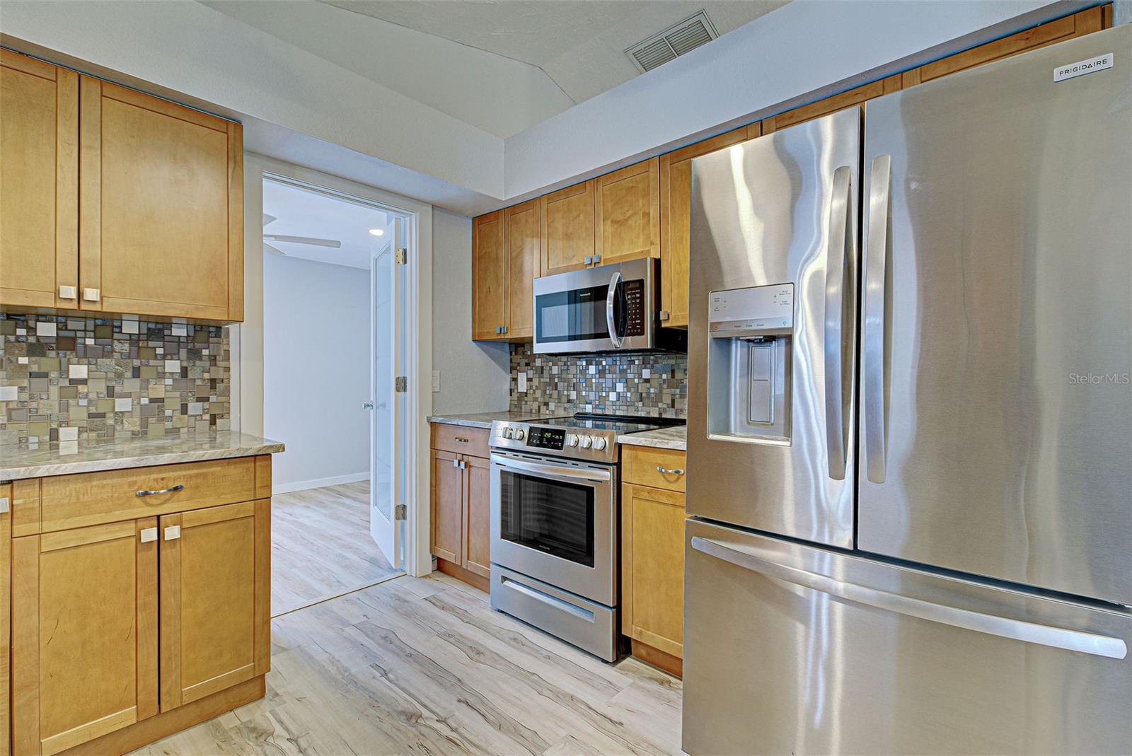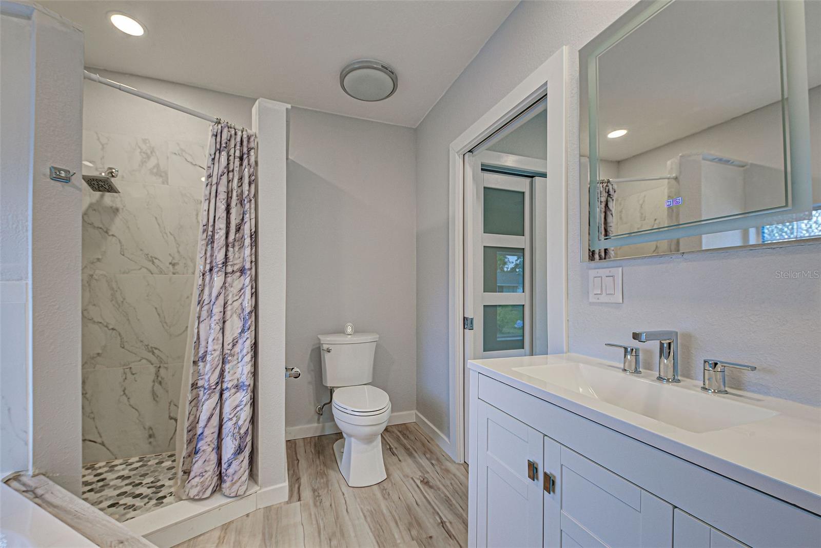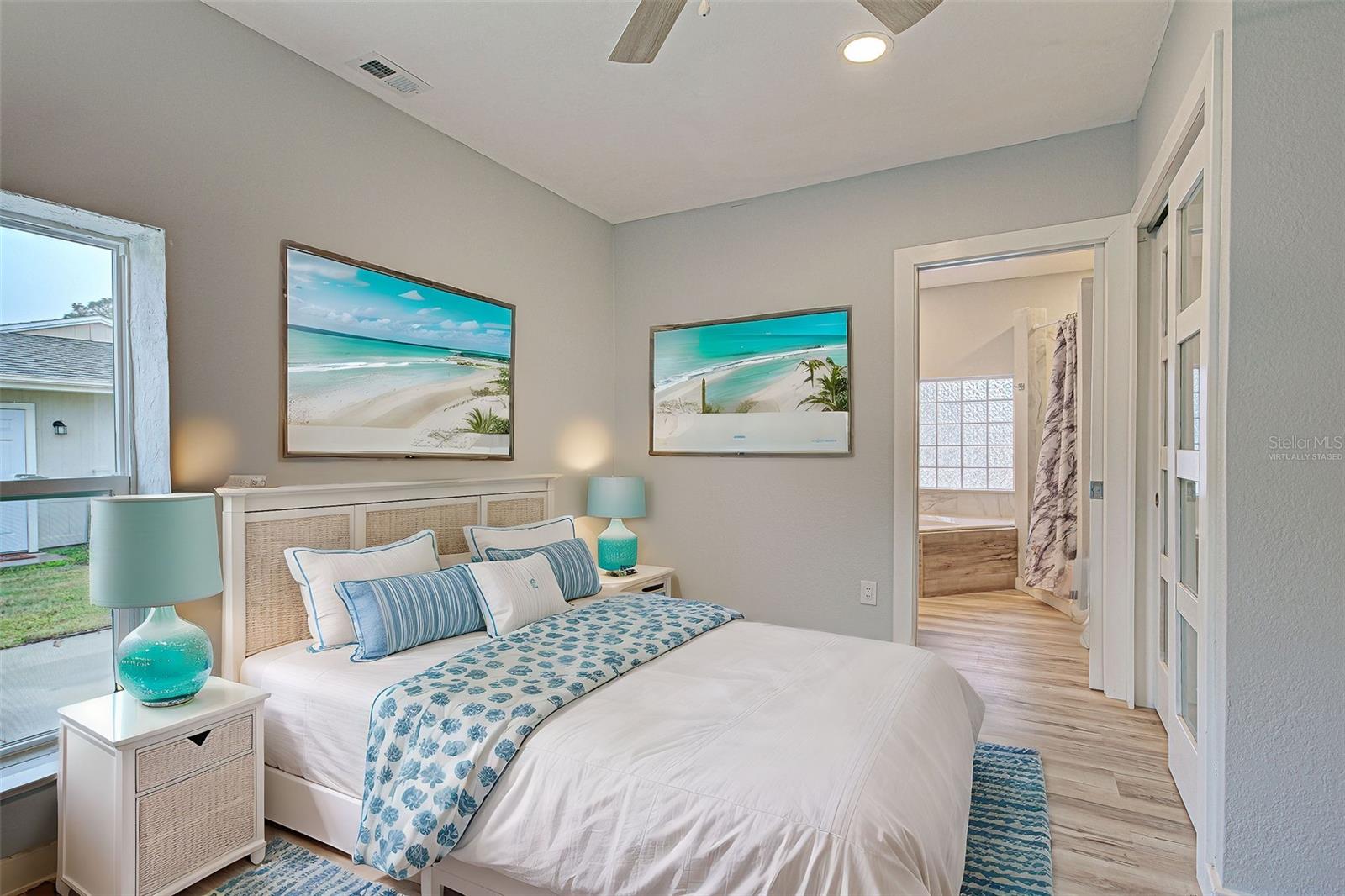 Welcome to this beautifully updated home featuring 3 bedrooms and 2 full baths. Step inside and admire the bright layout with vaulted ceilings and luxury vinyl plank flooring throughout, offering both style and durability. The split floor plan ensures privacy, with the luxurious primary suite offering French doors that lead to a serene retreat. The master bath is a spa-like oasis, complete with a jacuzzi tub, touch-activated fog-free mirrors, dual vanities, and plenty of space to unwind. The guest bathroom also has a Jacuzzi tub and a spacious layout. For peace of mind the big items have been taken care of and include an updated kitchen, the Roof was installed in 2021, Water Heater and AC installed in 2022 and an Impact-resistant front window for added safety during storms. Enjoy the Extra-large parking pad ideal for your RV or boat, with an outlet for RV hook-up. Enjoy the Florida room filled with natural light and extra space to relax. The backyard has a shed for storage and there is space to add a pool, making it ideal for creating your outdoor oasis. Don’t miss this opportunity to own a beautifully updated home in a fantastic location just 5 miles to Venice Beach and close to shopping, golf and many restaurants. Schedule your showing today and make 3187 Galiot Rd your own!