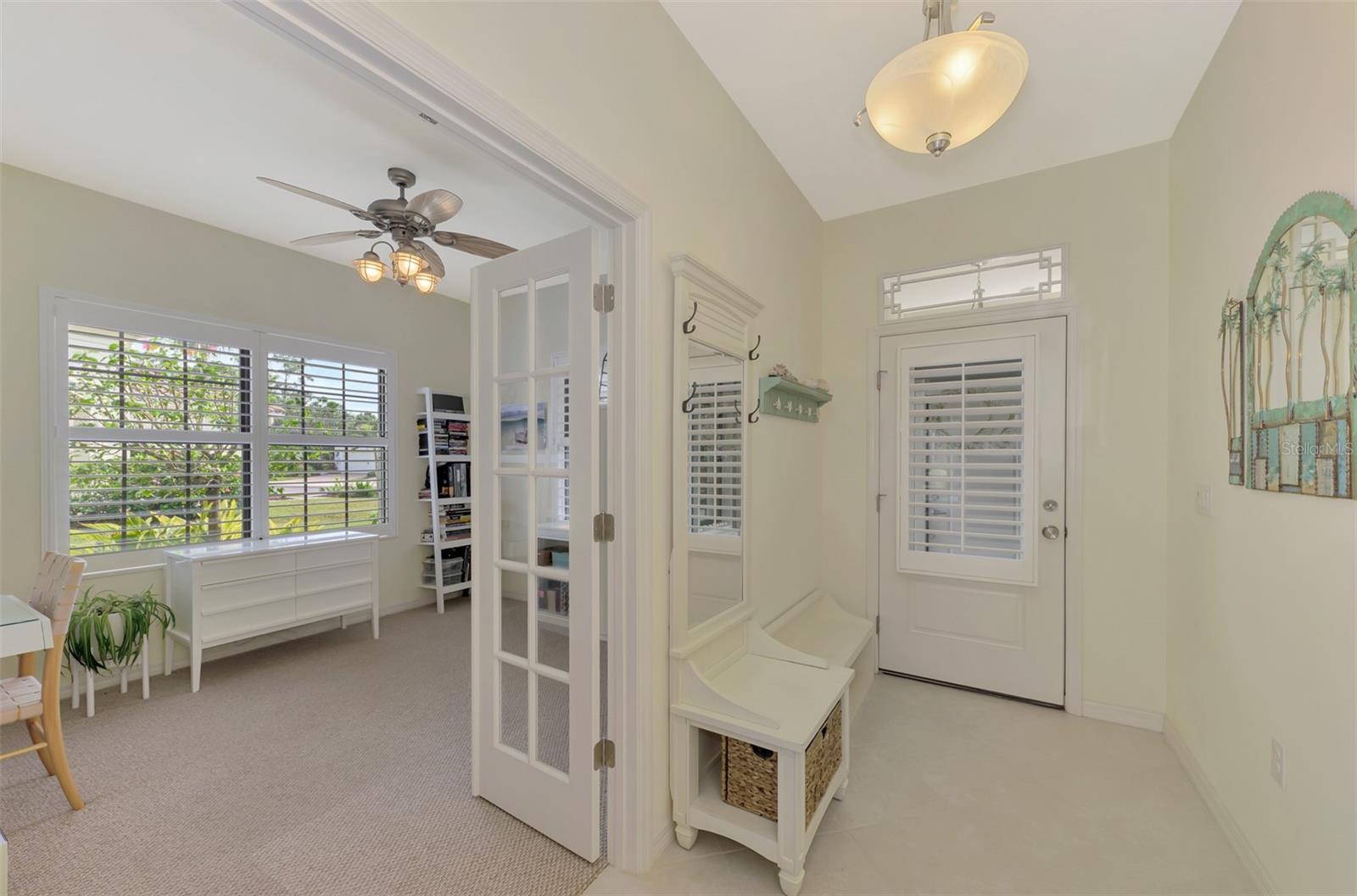 One or more photo(s) has been virtually staged. Unforgettable Move-In Ready Villa with Countless Upgrades!! Nestled in the sought-after Grand Palm Community, this meticulously upgraded 2 BDRM, 2 BA home with Study/Den that can also be used for additional guests adds comfort and functionality in a serene resort-style setting! Inside, you’ll find modern upgrades including a new shower and vanity countertops in the guest bathroom, improved shower design in primary bathroom, custom privacy accordion shades for both guest and primary bathroom suites, Rev-A-Shelf cabinet organizers in the kitchen and primary bathroom, custom kitchen pantry, upgraded kitchen appliances, vented microwave range hood, enlarged kitchen island with new countertop, plantation shutters, new A/C in 2018, new water heater in 2024, hurricane shutters for entire villa, custom privacy accordion lanai shade, and so much more! Enjoy your quiet peaceful evenings on the extended lanai with added paver patio while enjoying the tranquil backyard with a preserve setting on a larger lot! This section of Grand Palm has their own community pool, hot tub and outdoor BBQ grill available only to residents living within. Grand Palm is an amenity-rich community with an abundance of activities to keep you busy with 26+ miles of walking/biking paths, tennis, pickleball, a fitness center, three additional community pools, splash pad, dog parks and a full-time activity coordinator. Just a short drive to beautiful Gulf Beaches, Historic Downtown Venice, Vibrant Wellen Park, the Atlanta Braves Stadium and easy access to I-75. Living the life you have earned can be more than just a dream, so schedule your private showing today!
