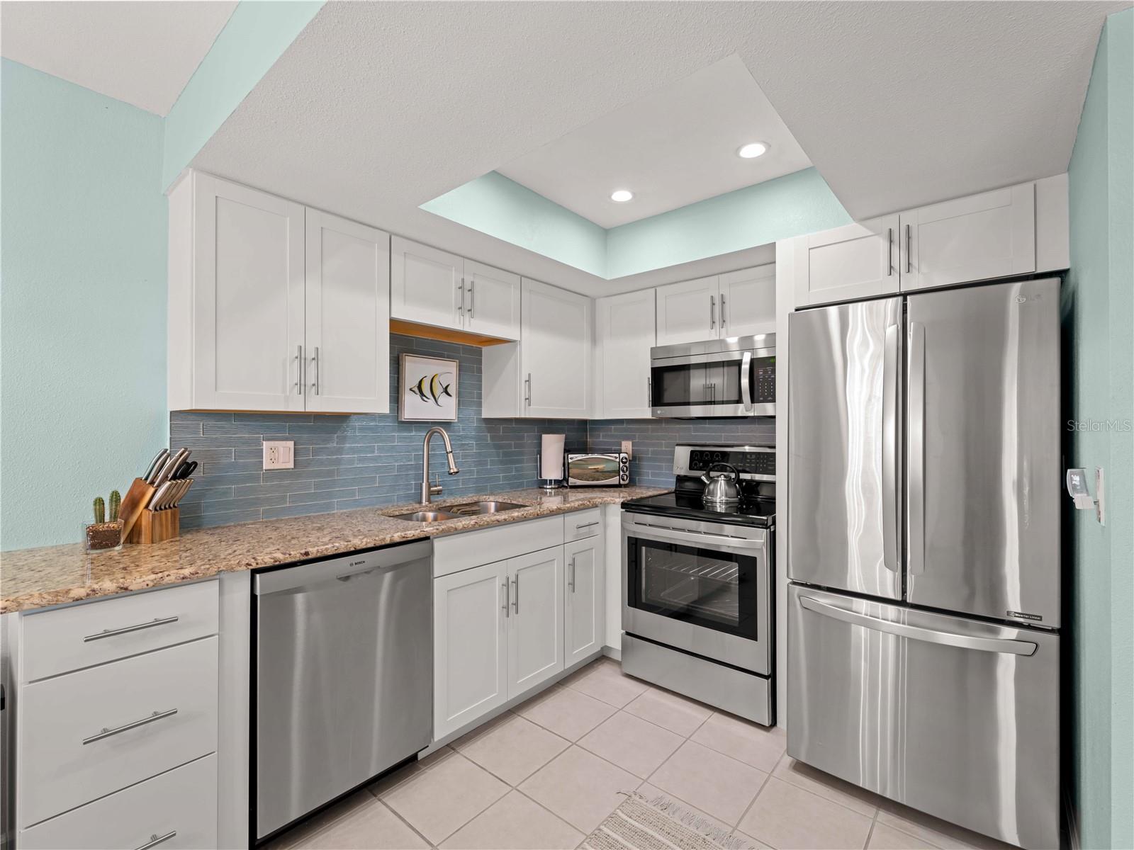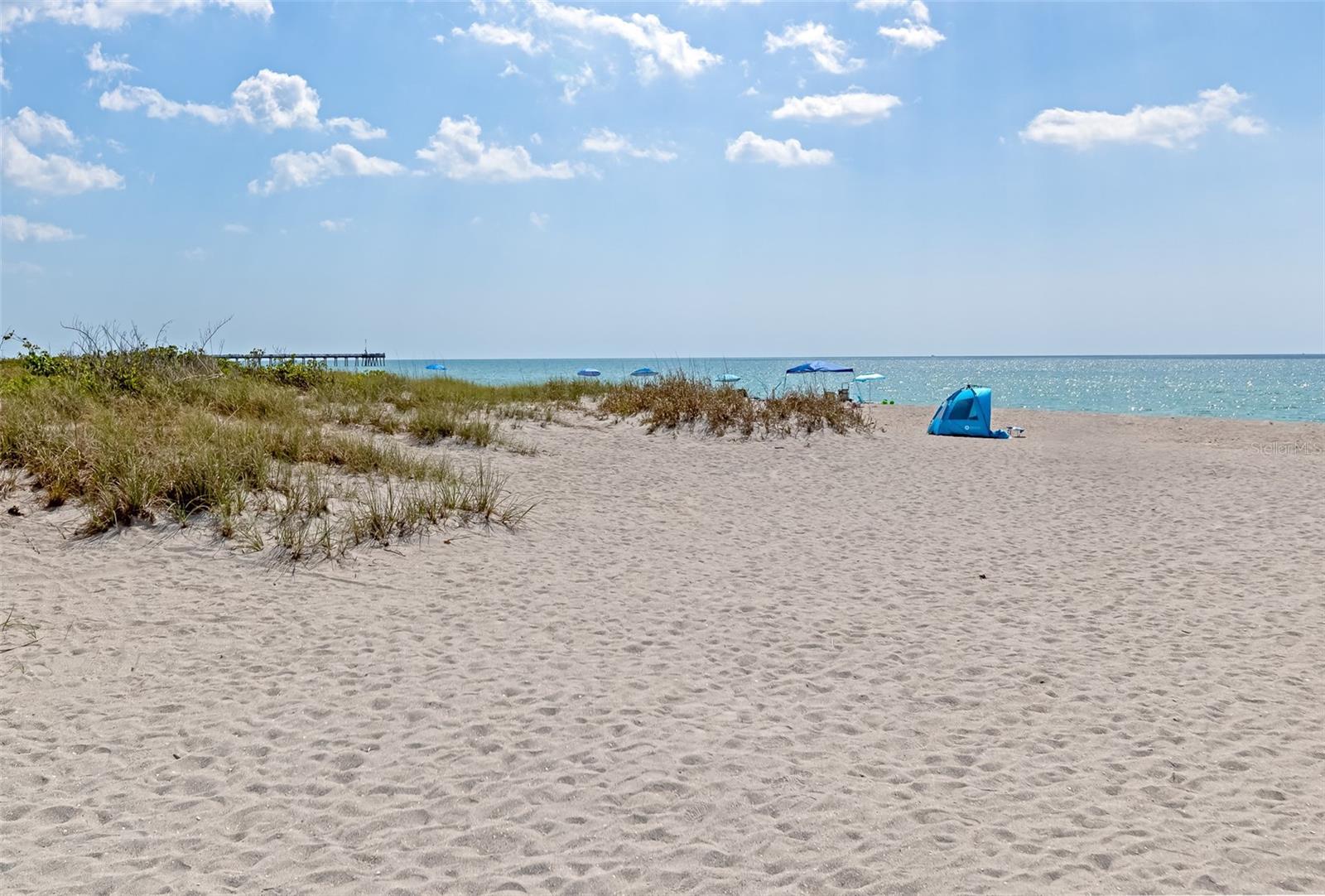 Walk to the BEACH! This Sea Breeze condo is located on the Island of Venice, less than 1 mile to the beach and less than 2 miles to downtown and is one of the largest 1Bd/1Ba condos currently available in Venice. The well-designed kitchen combines style and function. The light shaker cabinets contrast dramatically with the glass back splash in a color reminiscent of sea glass. The stunning granite counters anchor the design and provides ample prep area. The LG large capacity refrigerator provides the space you need and it's Smart Cooling system has earned 5 stars for its ability to maintain consistent temperature throughout the refrigerator. The LG range provides true convention baking which delivers more even cooking and crispy textures, the oven has both EasyClean and Self-Clean modes. 5 burners provide a variety of cooking options. The LG microwave has 10 power levels, one touch settings for auto-defrost, auto-reheat, melt/soften, popcorn, and hold/warm. Bosch dishwashers are the quietest in the US, in fact they are so quiet, there is an InfoLight that shines on the floor to let you know the dishwasher is running. The PureDry feature gets even plastic containers dry! A large bedroom offers a walk-in closet and laundry closet. You will appreciate how life is just easier when a full-size washer and dryer are in your own unit. The LG large capacity washer has a stainless-steel drum and is tilted to improve efficiency. The high temperature steam cycle can be used to remove tough stains. The LG dryer is stacked on top of the washer and offers Sensor Dry which helps to detect moisture during the dry cycle. The stylish bathroom was remodeled with a large glass enclosed shower, stunning vanity and mirrors. This home is uniquely situated near the beach, yet in evacuation zone D, in flood zone X, with impact windows and a new 2023 roof allowing you to enjoy island life with less stress either as your primary or secondary residence. Service Club Park, less than 1 mile away, has beach access, volleyball, and picnic shelters. Brohard Paw Park is 1.6 miles away and is the only dog beach in Sarasota County which is great because Sea Breeze allows up to 2 pets! Sharky's night life and the Venice Fishing Pier are 1.4 miles away. Downtown Venice is 1.6 miles away where you can shop the farmer’s market every Saturday, play tennis or basketball at Hecksher Park, enjoy live theatre at the 3rd largest community theatre in the US, a concert at the Gazebo in Centennial Park every Friday night, a concert from Venice’s professional symphony at the Venice Performing Arts Center, attend a variety of Festivals throughout the year, take an art class at the Venice Art Center, or satisfy your cravings at numerous restaurants, or ice cream, pastry, and chocolate shops. Boat Rental and Fishing Charters are only 2.5 miles away.