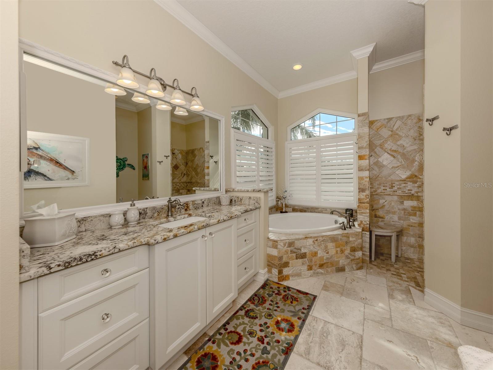 Step into luxury with this extraordinary 3 bedroom, 3 bath Bellagio pool home featuring over $200,000 in recent renovations and upgrades transforming it into a immaculate, move-in-ready oasis. You’re welcomed by stunning travertine floors throughout, complemented with pristine paint and elegant crown molding. Plantation shutters and PGT impact-rated windows and sliders add both charm and energy efficiency to the home. The kitchen is its own masterpiece with solid surface countertops, designer backsplash, over and under cabinet lighting, a gas range and matching stainless steel appliances, finished out with practical pull-out cabinet drawers. Dual master suites offer resort-style luxury with walk-in showers, and a classic garden tub in both bathrooms. The third bedroom offers a Murphy bed for guests and makes for an excellent office, den, or studio. The two-car garage is finished with overhead storage racks and sealed floors, and both the driveway and pool pavers were sealed in 2025. An indoor laundry room with a laundry tub and shelving rounds out the practical amenities. Entertainment is elevated with a dual-sided, built-in entertainment center and dry bar cabinet. A new barrel-tiled roof installed in 2023 includes 10-year transferable warranty for lasting protection. The 2025 hurricane-rated lanai, pool cage and garage door provide calm during the storm. The comfort continues with a new AC system in 2024 and a new water heater in 2020. Your outdoor living area includes over 200 s.f. of covered space, plus a newly surfaced PebbleTech saltwater pool and spa complete with updated tile, coping, skimmer, heater, and electronics. The home is set on a premium lot with extra back and side yard space, all enveloped by privacy landscaping. Bellagio is Venice Island's only gated single-family home community, offering exclusive access to a clubhouse, tennis and pickleball courts, and numerous clubs and social activities. With freshly repaved roads and ongoing upgrades to security gates, fencing, gym, and sports courts, Bellagio remains one of the best kept secrets of Venice Island. You’re out of the flood zone and minutes away from Downtown Main Street, Gulf Beaches, marinas, shopping and renowned dining and right on the Legacy Trail, with world-class Port Charlotte to Sarasota cycling. This home defines resort-style luxury living at its finest.