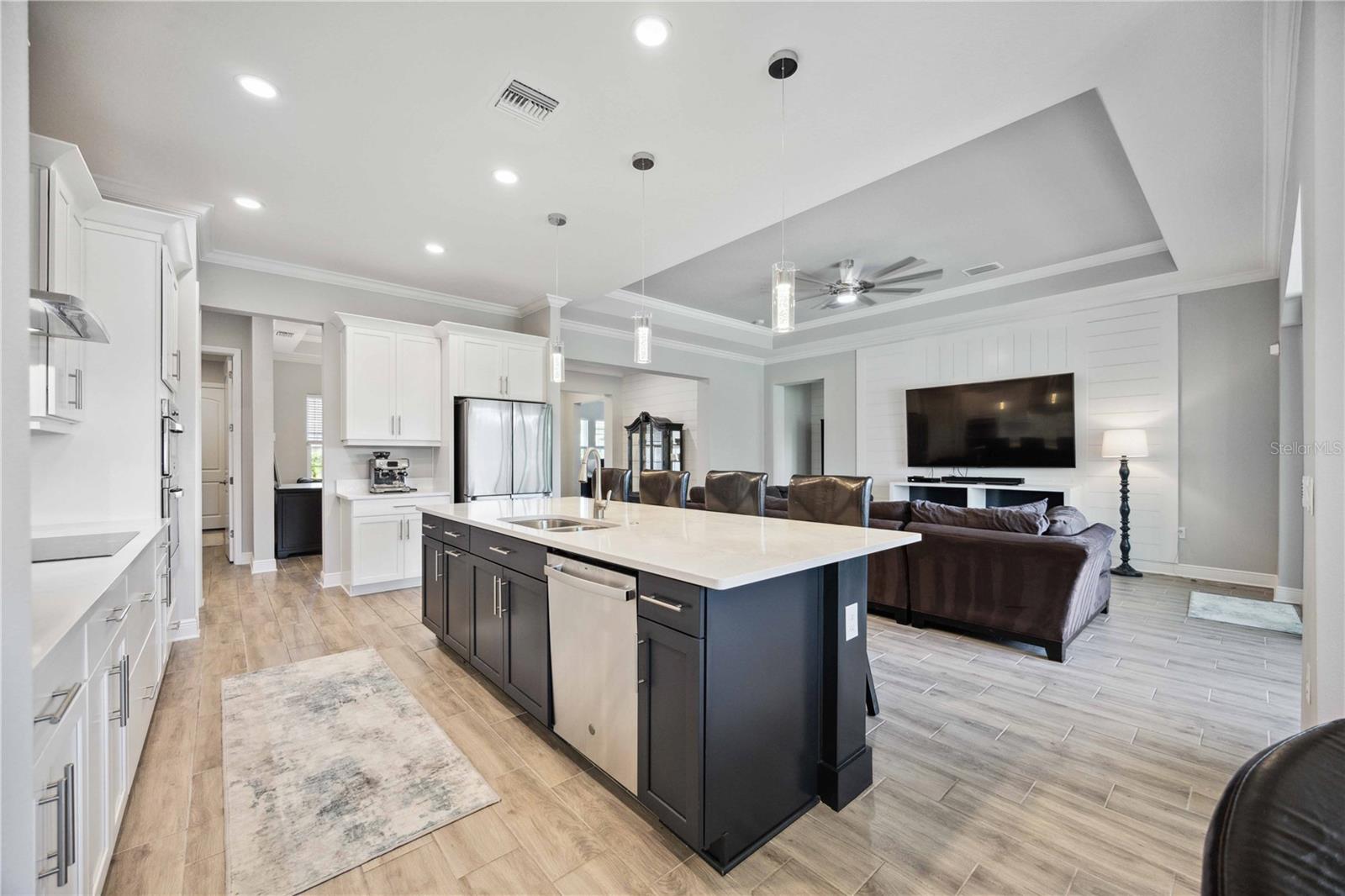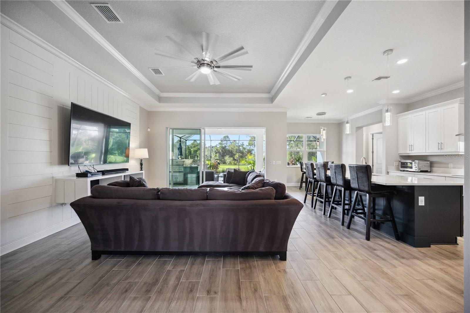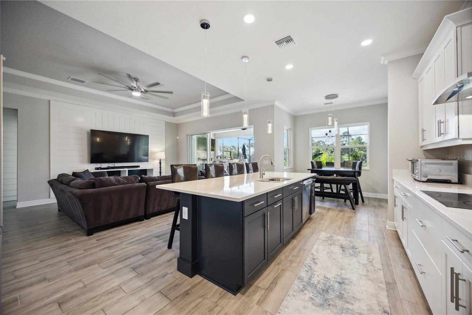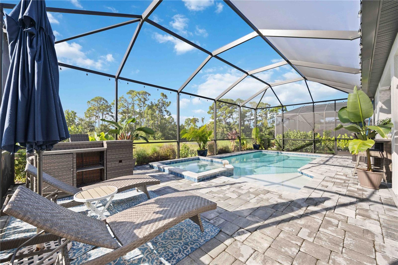 This is the one you’ve been waiting for! A MUST-SEE home with 4 spacious bedrooms, 3 bathrooms, a dedicated office space, a 3-car garage, a sparkling heated pool and spa under a screened lanai, breathtaking pond frontage, a well-equipped outdoor kitchen, a pool bath accessible from the lanai, and more! Fresh and complete, this home exudes the best of Florida living. Light and bright finishes with strategic pops of color, professionally installed ship lap and crown molding, upgraded lighting, shaker cabinets, quartz countertops, tile accent backsplash, and custom paint, this home is a designer’s dream. You’ll be in awe of the pond view, as you enjoy a cocktail (or mocktail) on the lanai while wrapped in the glow of the sunset and sounds of nature from the adjacent preserve. Community amenities include a clubhouse, pool pickleball courts, and gated access. Your new paradise is located in the small, gated community of Oasis, which is strategically set just at the edge of Wellen Park, and all that Southwest Florida's most highly sought-after community has to enjoy, while providing quick access to I-75 and US 41. Miles of trails for walking, running, or biking traverse the landscape. Shelling and shark tooth hunting at multiple beaches are just a short drive away. Within minutes, you can be in downtown Wellen Park for restaurants, shopping, outdoor concerts, a local farmers market, festivals, kayaking, fishing, Publix for groceries, Costco (yes, really), Cool Today Park (Atlanta Braves Spring Training Facility) and Tiki Bar, and more. Endless summer awaits at this idyllic setting, an oasis within Oasis. Welcome Home.
