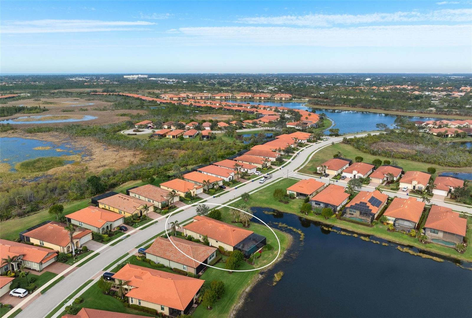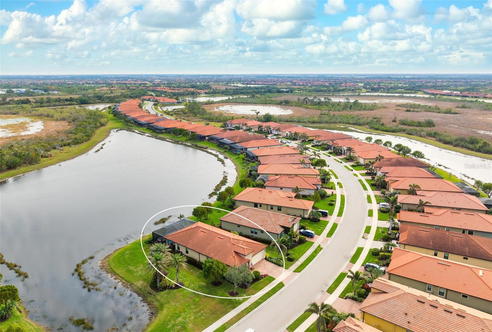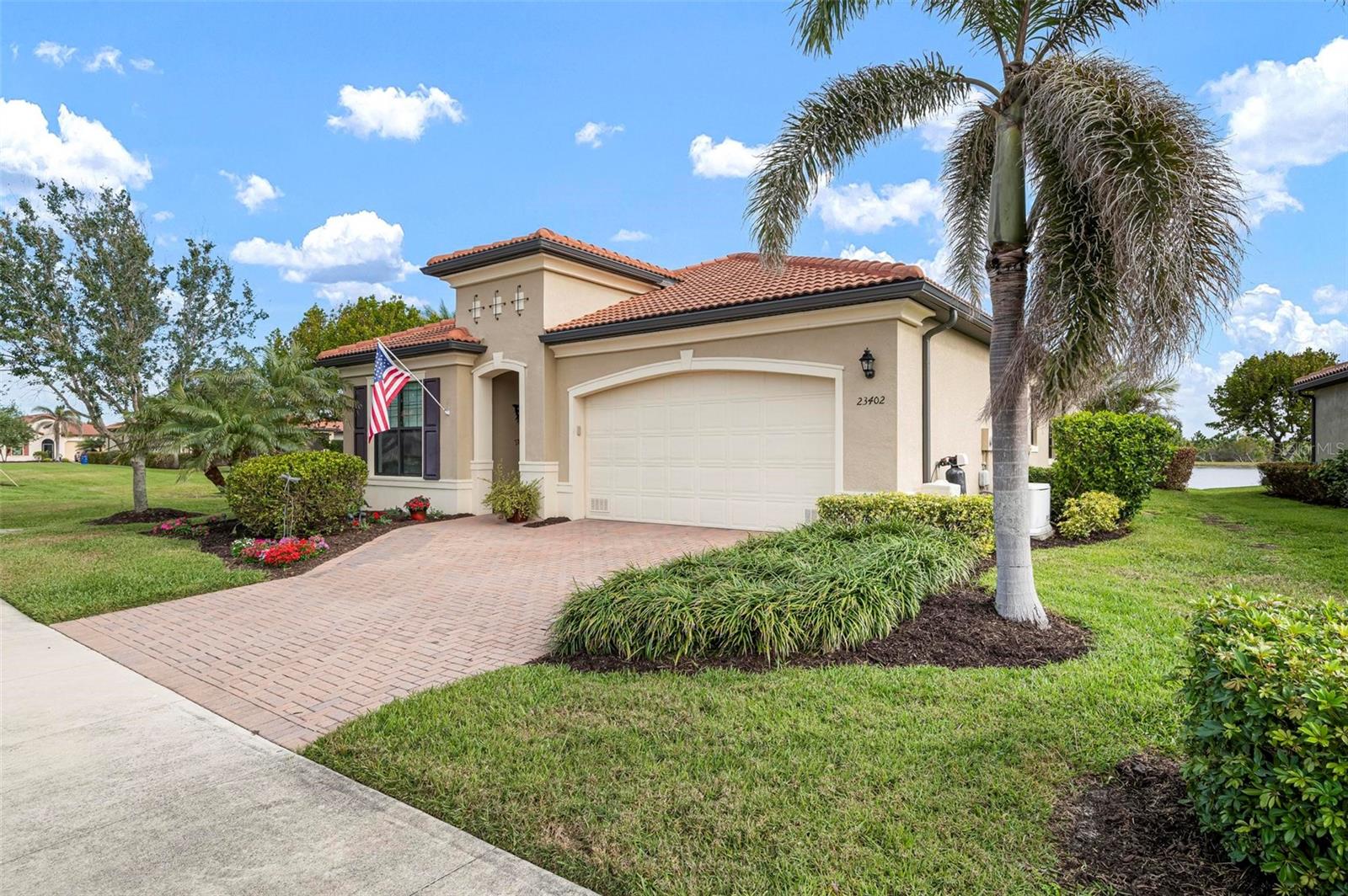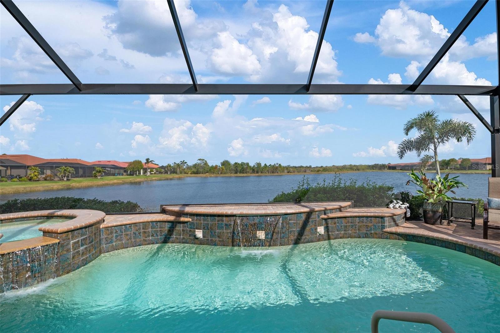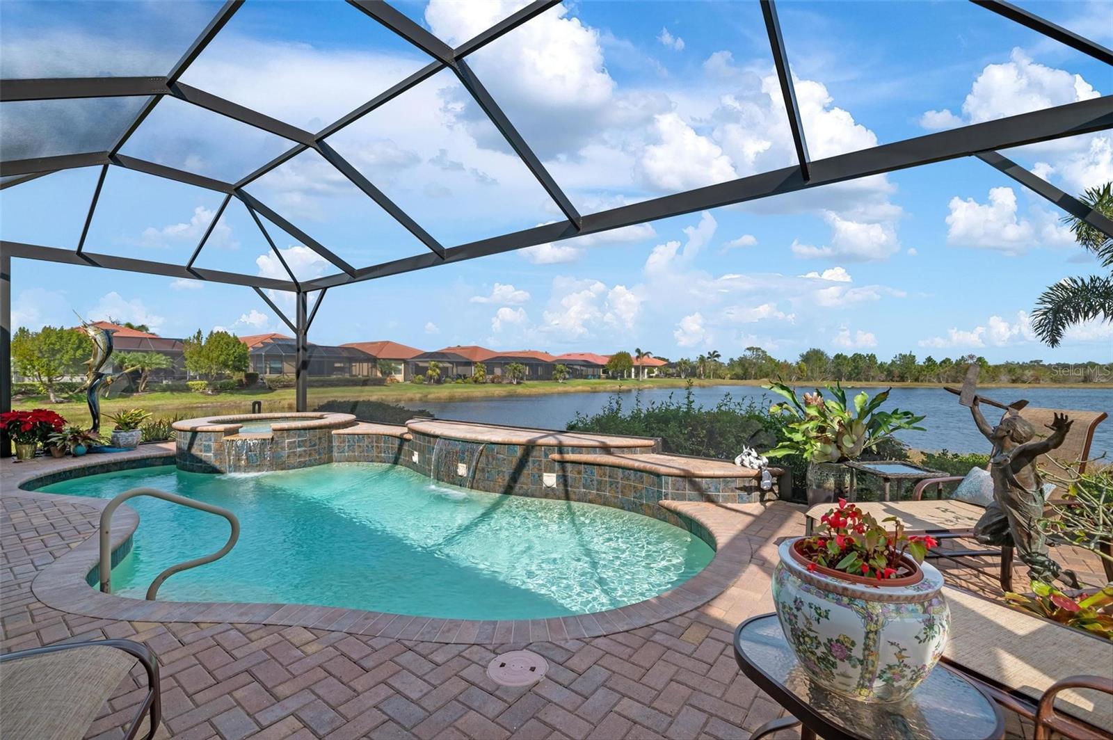 Wrap around water views of the natural Florida landscape are yours to enjoy from sunrise to sunset. Welcome to the Key Largo by WCI Homes, a true symbol of quality and craftsmanship, located in the exclusive Lake Village of Sarasota National. This stunning private tip lot offers breathtaking water and preserve views, providing the perfect backdrop for your everyday living. Step outside to your heated saltwater pool and spa, with a clearview screen enclosure for unobstructed views. Inside, you'll find luxurious 8-foot interior doors, tall baseboards, and beautiful travertine-look porcelain tile throughout the living areas and baths. The gourmet island kitchen features staggered solid wood linen cabinets with crown molding, under-cabinet lighting, granite countertops, and sleek stainless-steel appliances. Each of the three spacious bedrooms boasts its own private full bath, providing ultimate comfort and privacy. Additional upgrades include extensive landscape lighting, a whole-home water conditioning system, impact-resistant windows and doors, and a whole-home generator for peace of mind. This certified Audubon community offers miles of picturesque sidewalks winding through the natural Florida surroundings. Enjoy superb amenities such as a resort-style pool with a tiki bar overlooking the golf course, a fitness center, pickleball and tennis courts, a coffee lounge, and an on-site restaurant. For dog lovers, there's even a park just for your furry friends! As a Lake Village homeowner, you'll also have access to the golf course during the off-season. Excellent location right between Downtown Wellen Park with its shops, restaurants and Braves Stadium and Historic Downtown Venice with its quaint shops, tree-lined streets and beautiful beaches. Experience the very best in luxury living with this exceptional home—schedule your private showing today!