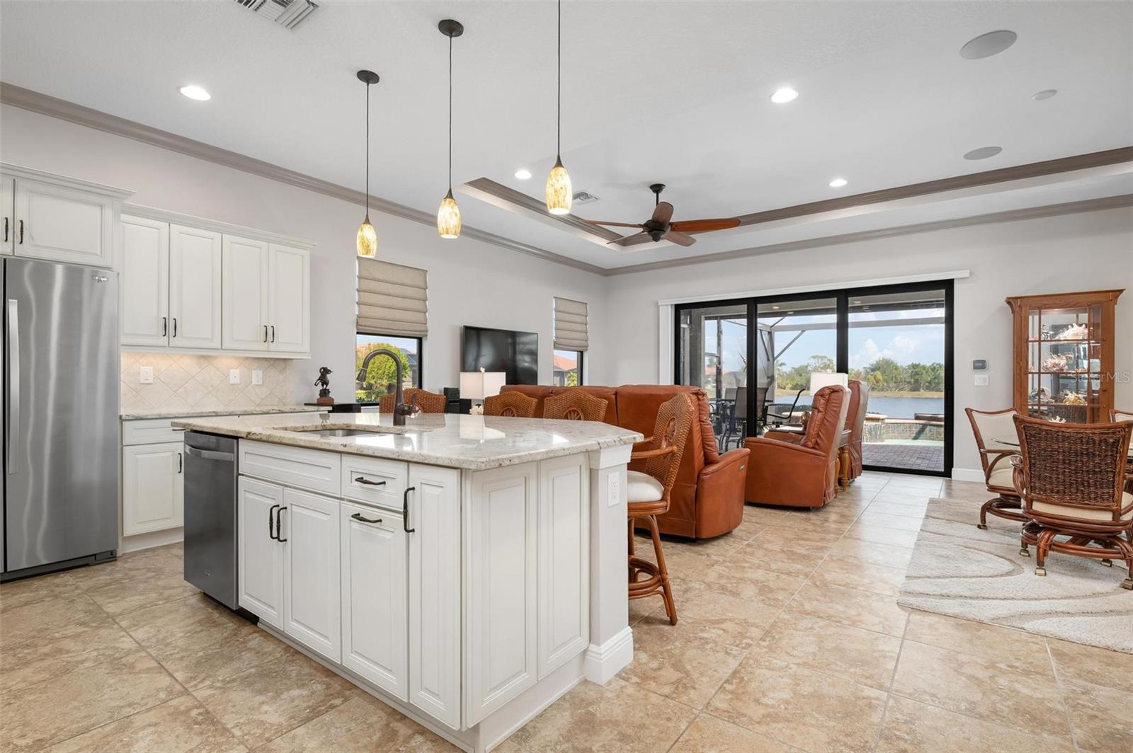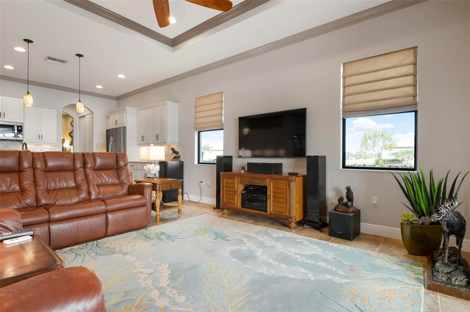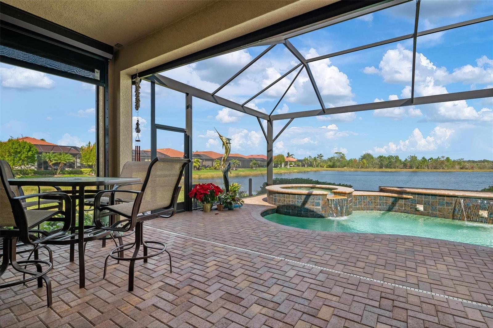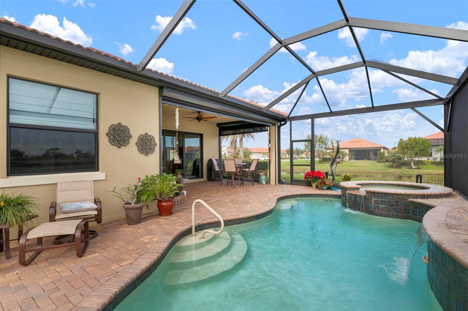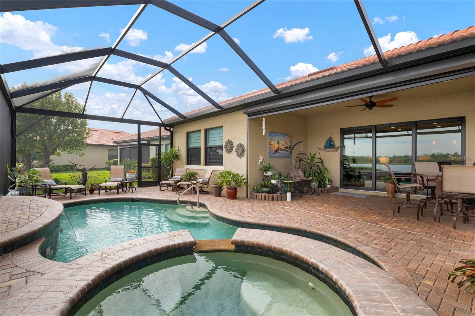 Wrap around water views of the natural Florida landscape are yours to enjoy from sunrise to sunset. Welcome to the Key Largo by WCI Homes, a true symbol of quality and craftsmanship, located in the exclusive Lake Village of Sarasota National. This stunning private tip lot offers breathtaking water and preserve views, providing the perfect backdrop for your everyday living. Step outside to your heated saltwater pool and spa, with a clearview screen enclosure for unobstructed views. Inside, you'll find luxurious 8-foot interior doors, tall baseboards, and beautiful travertine-look porcelain tile throughout the living areas and baths. The gourmet island kitchen features staggered solid wood linen cabinets with crown molding, under-cabinet lighting, granite countertops, and sleek stainless-steel appliances. Each of the three spacious bedrooms boasts its own private full bath, providing ultimate comfort and privacy. Additional upgrades include extensive landscape lighting, a whole-home water conditioning system, impact-resistant windows and doors, and a whole-home generator for peace of mind. This certified Audubon community offers miles of picturesque sidewalks winding through the natural Florida surroundings. Enjoy superb amenities such as a resort-style pool with a tiki bar overlooking the golf course, a fitness center, pickleball and tennis courts, a coffee lounge, and an on-site restaurant. For dog lovers, there's even a park just for your furry friends! As a Lake Village homeowner, you'll also have access to the golf course during the off-season. Excellent location right between Downtown Wellen Park with its shops, restaurants and Braves Stadium and Historic Downtown Venice with its quaint shops, tree-lined streets and beautiful beaches. Experience the very best in luxury living with this exceptional home—schedule your private showing today!