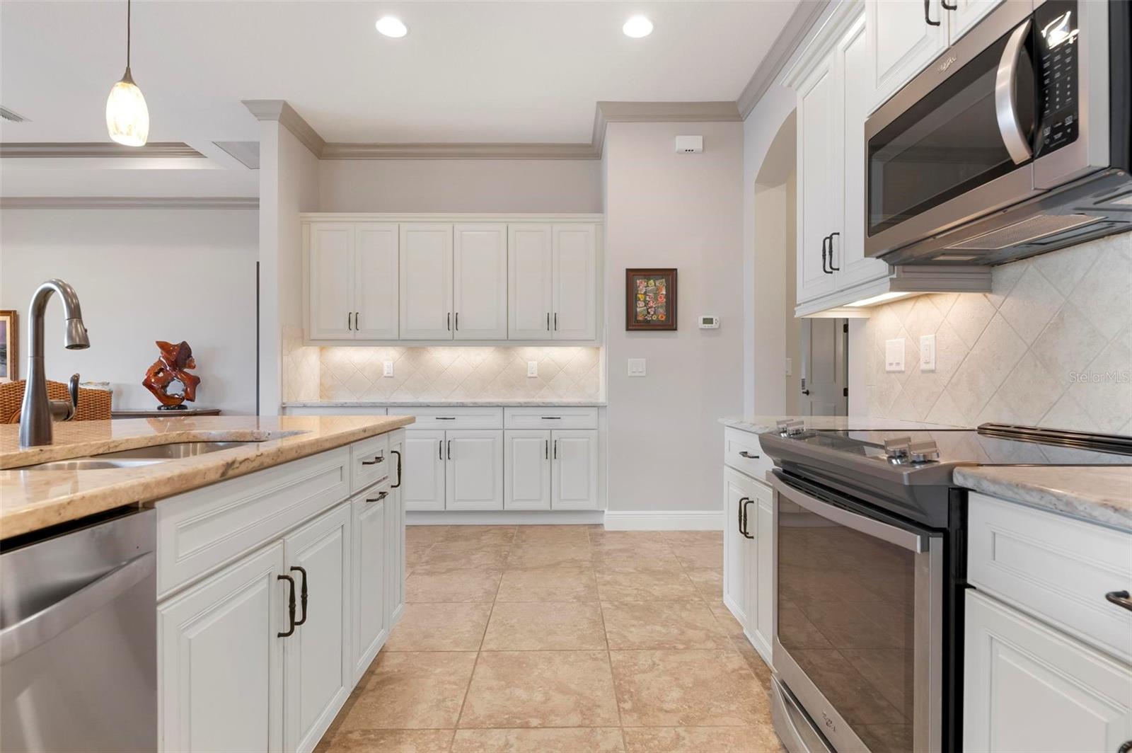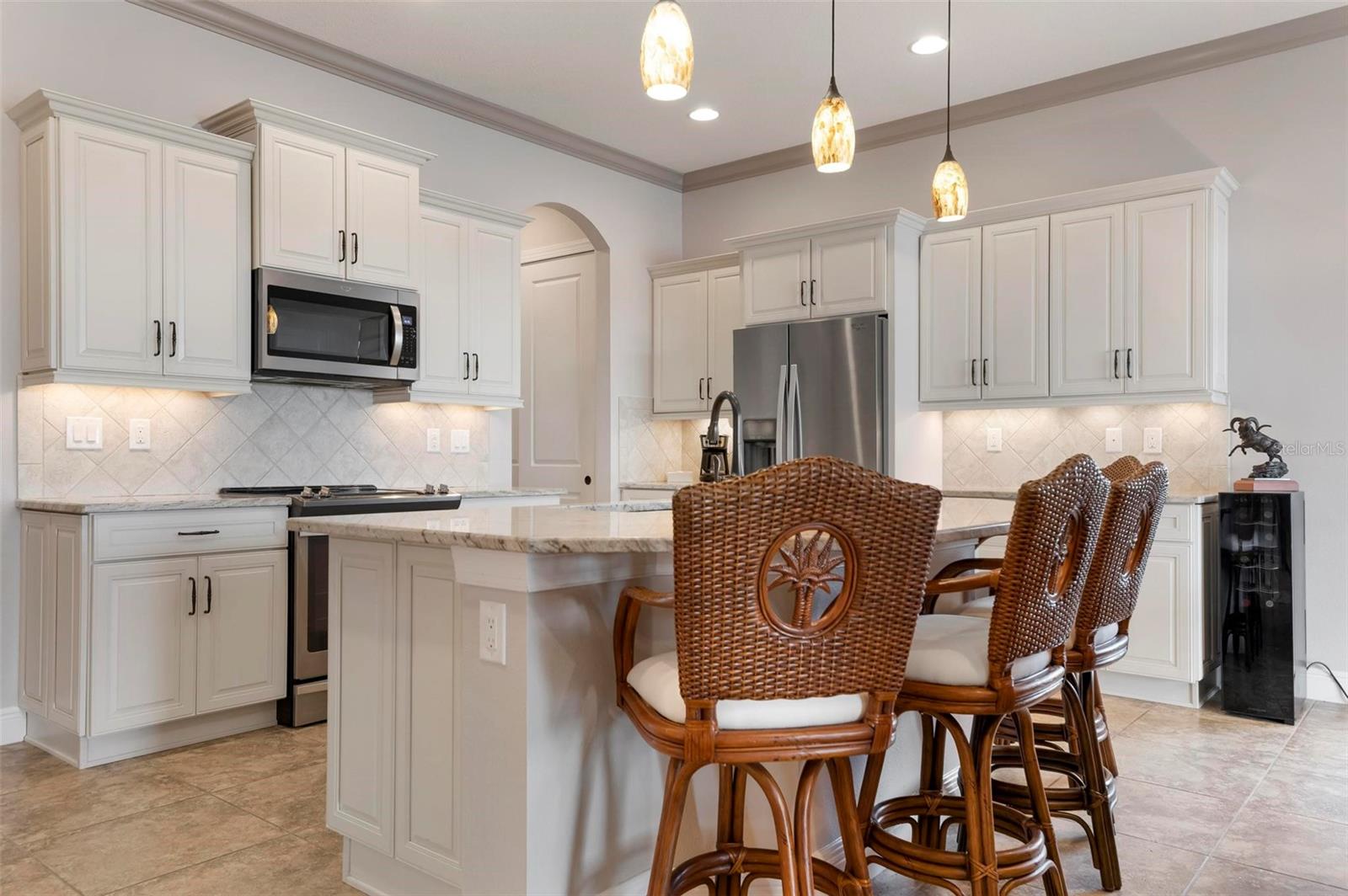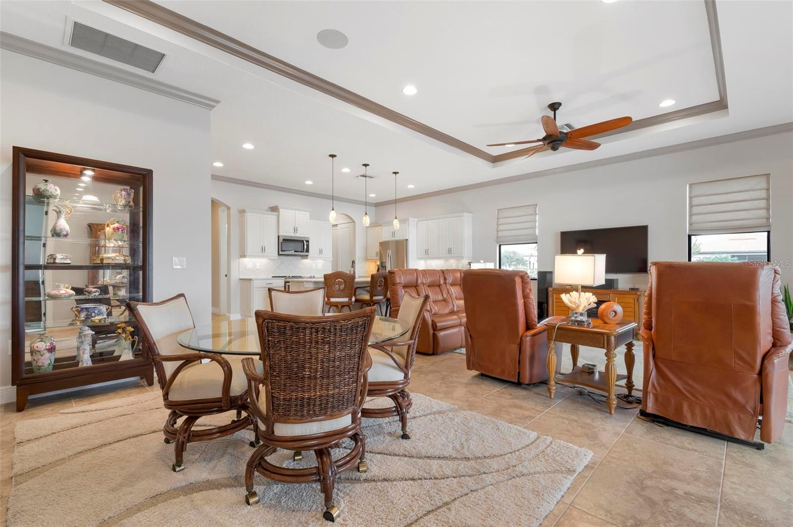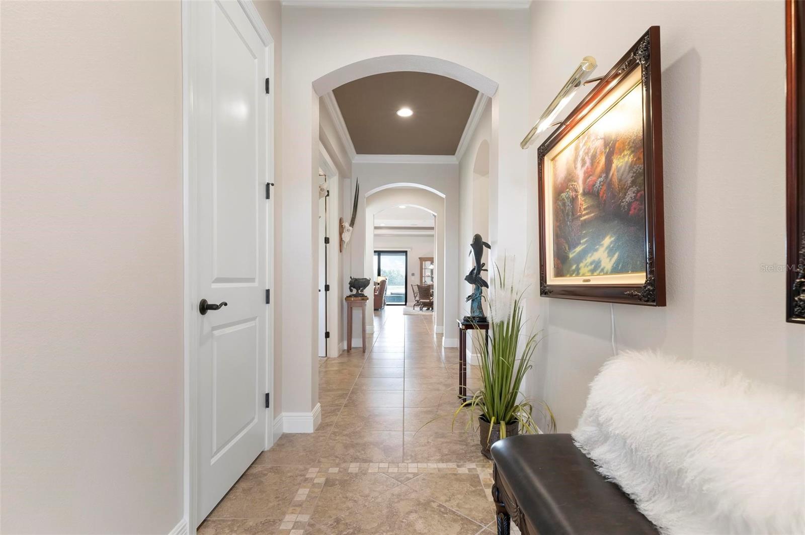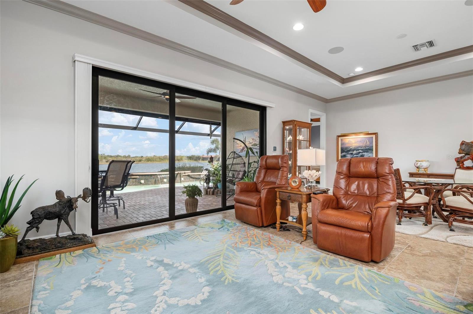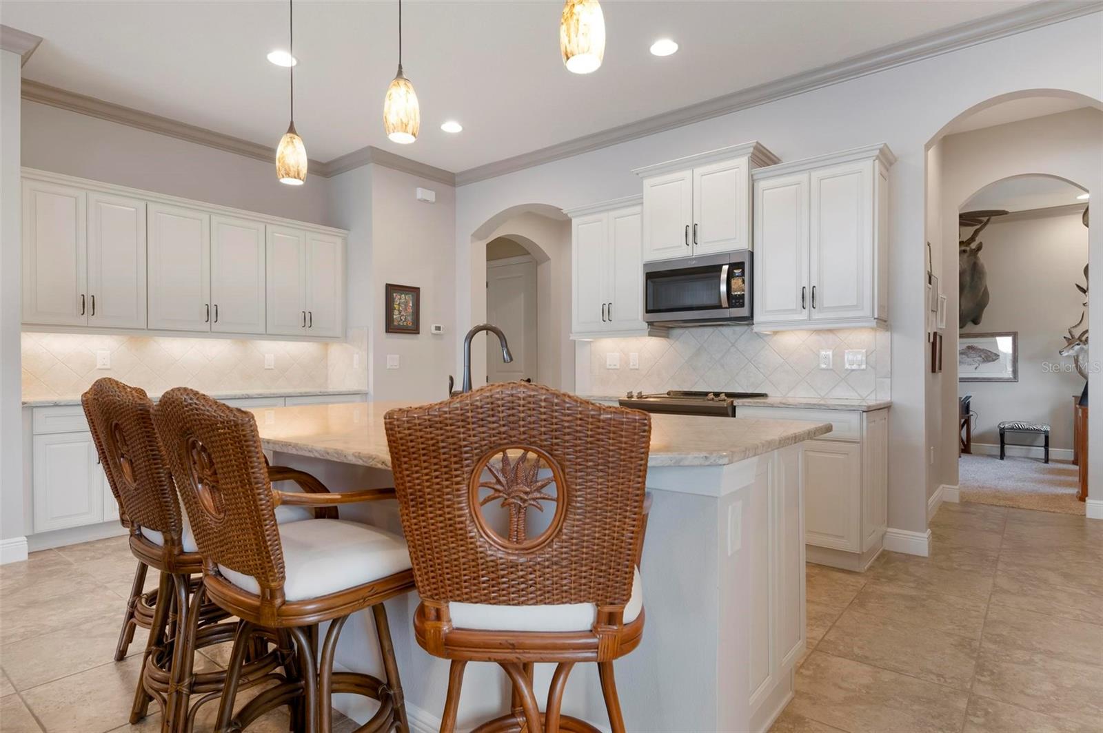 Wrap around water views of the natural Florida landscape are yours to enjoy from sunrise to sunset. Welcome to the Key Largo by WCI Homes, a true symbol of quality and craftsmanship, located in the exclusive Lake Village of Sarasota National. This stunning private tip lot offers breathtaking water and preserve views, providing the perfect backdrop for your everyday living. Step outside to your heated saltwater pool and spa, with a clearview screen enclosure for unobstructed views. Inside, you'll find luxurious 8-foot interior doors, tall baseboards, and beautiful travertine-look porcelain tile throughout the living areas and baths. The gourmet island kitchen features staggered solid wood linen cabinets with crown molding, under-cabinet lighting, granite countertops, and sleek stainless-steel appliances. Each of the three spacious bedrooms boasts its own private full bath, providing ultimate comfort and privacy. Additional upgrades include extensive landscape lighting, a whole-home water conditioning system, impact-resistant windows and doors, and a whole-home generator for peace of mind. This certified Audubon community offers miles of picturesque sidewalks winding through the natural Florida surroundings. Enjoy superb amenities such as a resort-style pool with a tiki bar overlooking the golf course, a fitness center, pickleball and tennis courts, a coffee lounge, and an on-site restaurant. For dog lovers, there's even a park just for your furry friends! As a Lake Village homeowner, you'll also have access to the golf course during the off-season. Excellent location right between Downtown Wellen Park with its shops, restaurants and Braves Stadium and Historic Downtown Venice with its quaint shops, tree-lined streets and beautiful beaches. Experience the very best in luxury living with this exceptional home—schedule your private showing today!