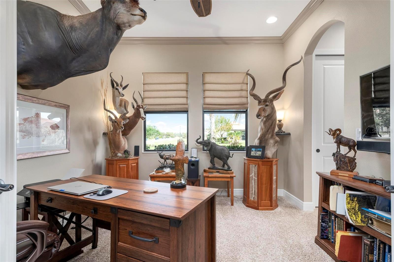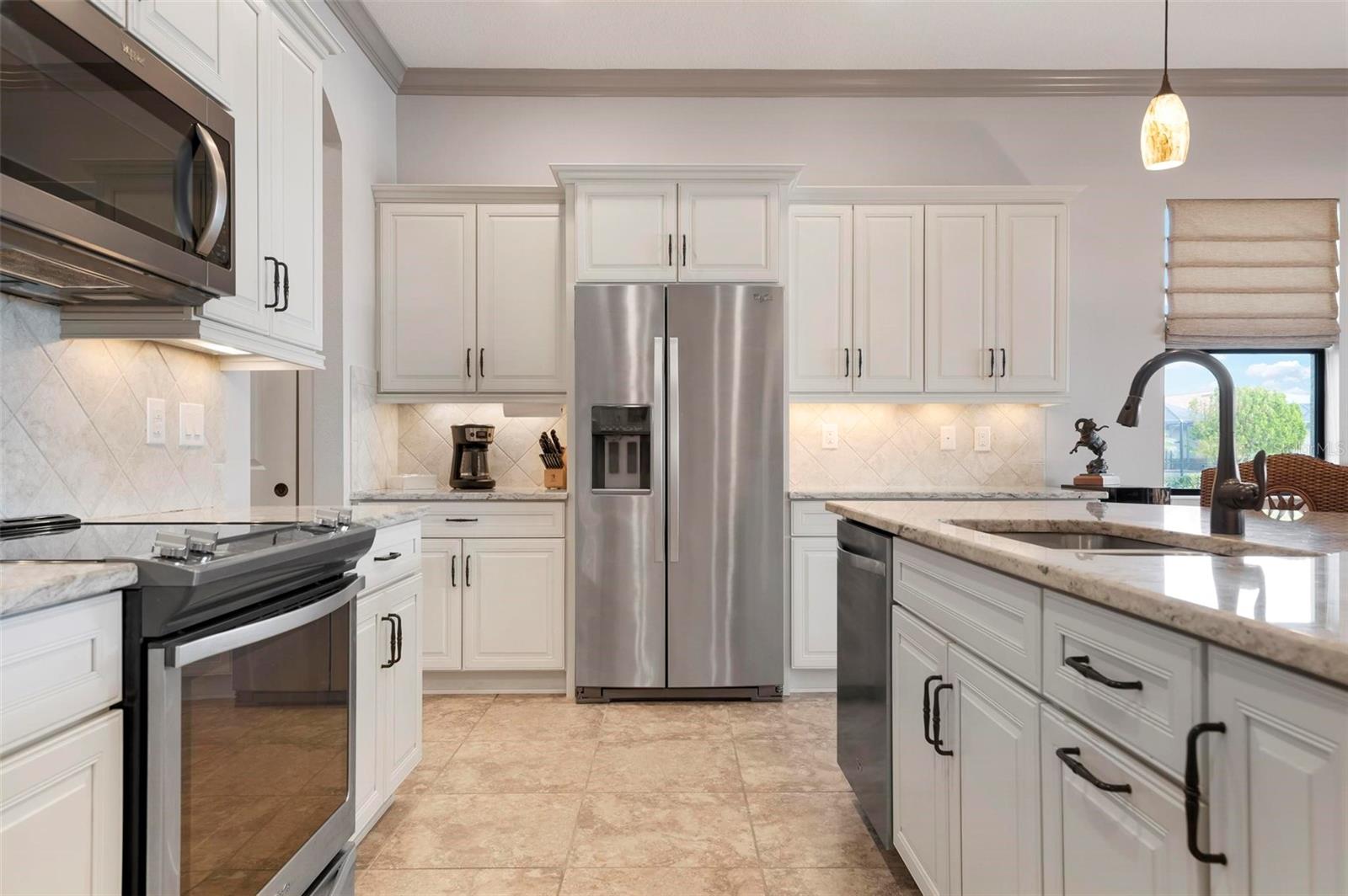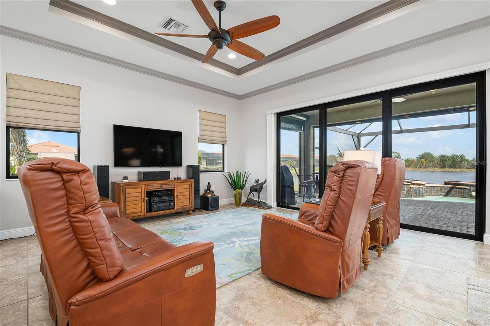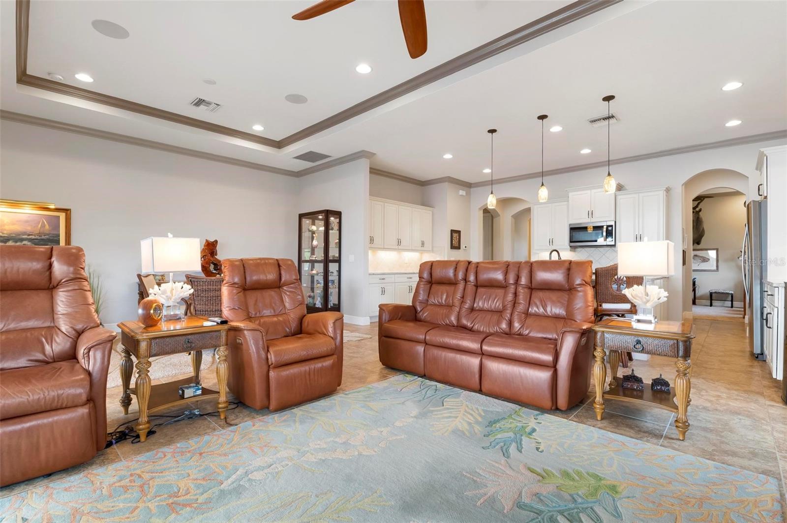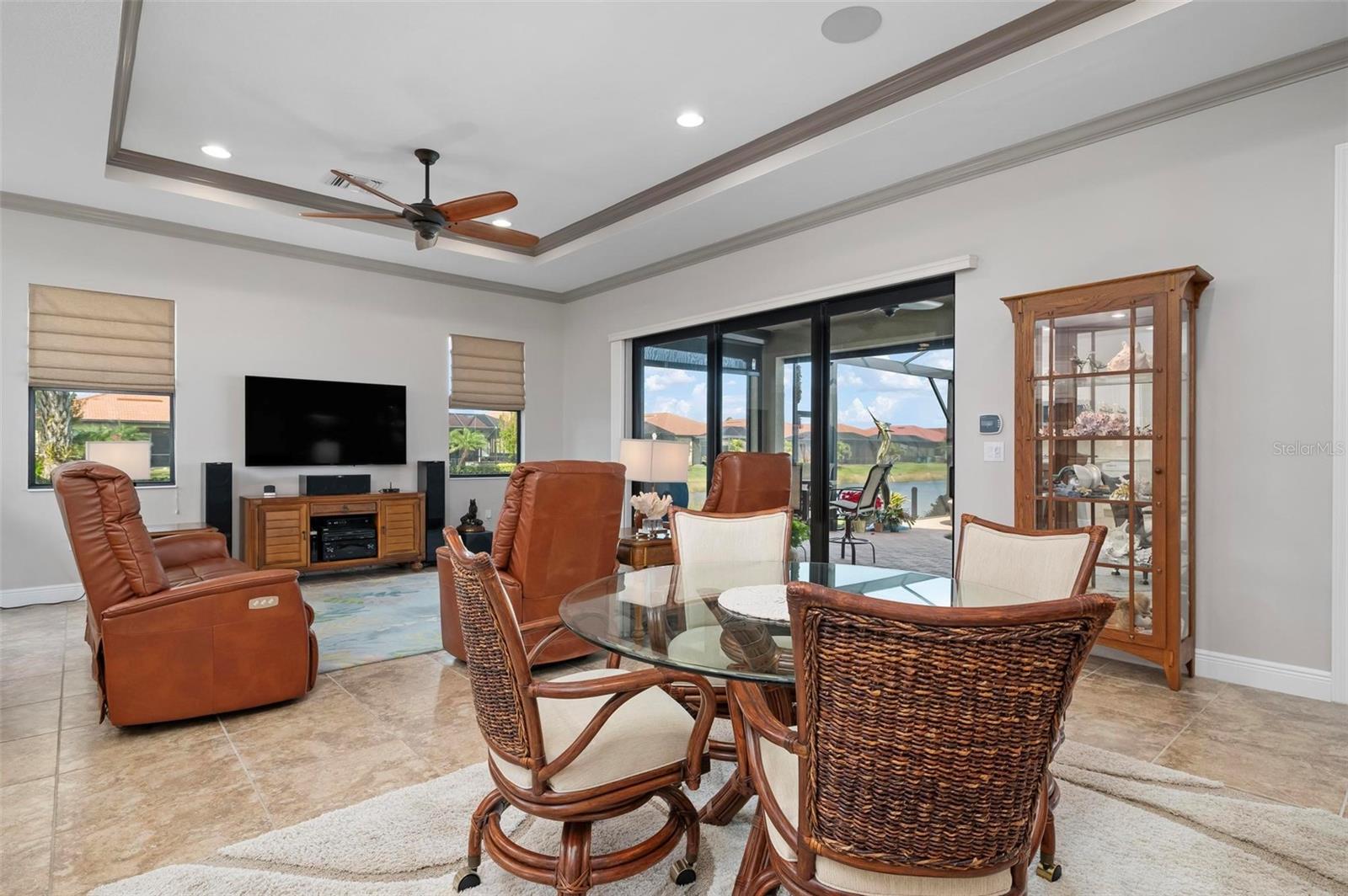 Wrap around water views of the natural Florida landscape are yours to enjoy from sunrise to sunset. Welcome to the Key Largo by WCI Homes, a true symbol of quality and craftsmanship, located in the exclusive Lake Village of Sarasota National. This stunning private tip lot offers breathtaking water and preserve views, providing the perfect backdrop for your everyday living. Step outside to your heated saltwater pool and spa, with a clearview screen enclosure for unobstructed views. Inside, you'll find luxurious 8-foot interior doors, tall baseboards, and beautiful travertine-look porcelain tile throughout the living areas and baths. The gourmet island kitchen features staggered solid wood linen cabinets with crown molding, under-cabinet lighting, granite countertops, and sleek stainless-steel appliances. Each of the three spacious bedrooms boasts its own private full bath, providing ultimate comfort and privacy. Additional upgrades include extensive landscape lighting, a whole-home water conditioning system, impact-resistant windows and doors, and a whole-home generator for peace of mind. This certified Audubon community offers miles of picturesque sidewalks winding through the natural Florida surroundings. Enjoy superb amenities such as a resort-style pool with a tiki bar overlooking the golf course, a fitness center, pickleball and tennis courts, a coffee lounge, and an on-site restaurant. For dog lovers, there's even a park just for your furry friends! As a Lake Village homeowner, you'll also have access to the golf course during the off-season. Excellent location right between Downtown Wellen Park with its shops, restaurants and Braves Stadium and Historic Downtown Venice with its quaint shops, tree-lined streets and beautiful beaches. Experience the very best in luxury living with this exceptional home—schedule your private showing today!