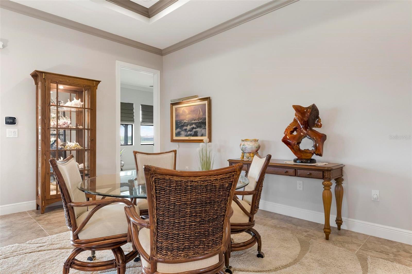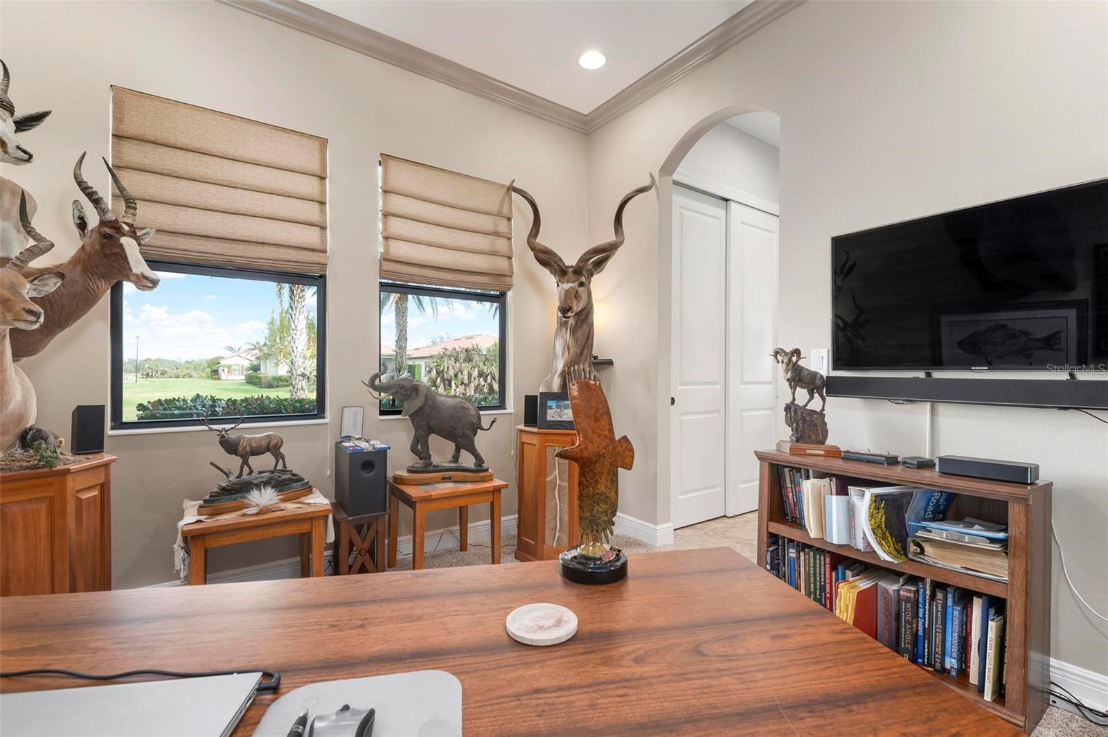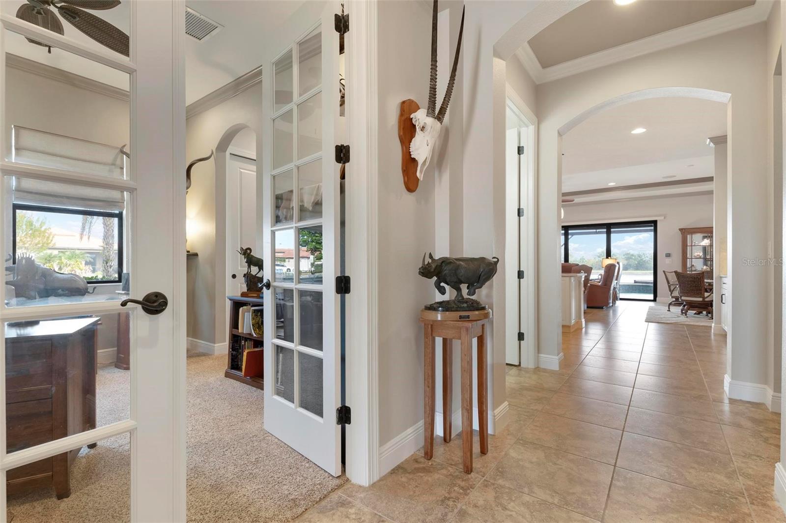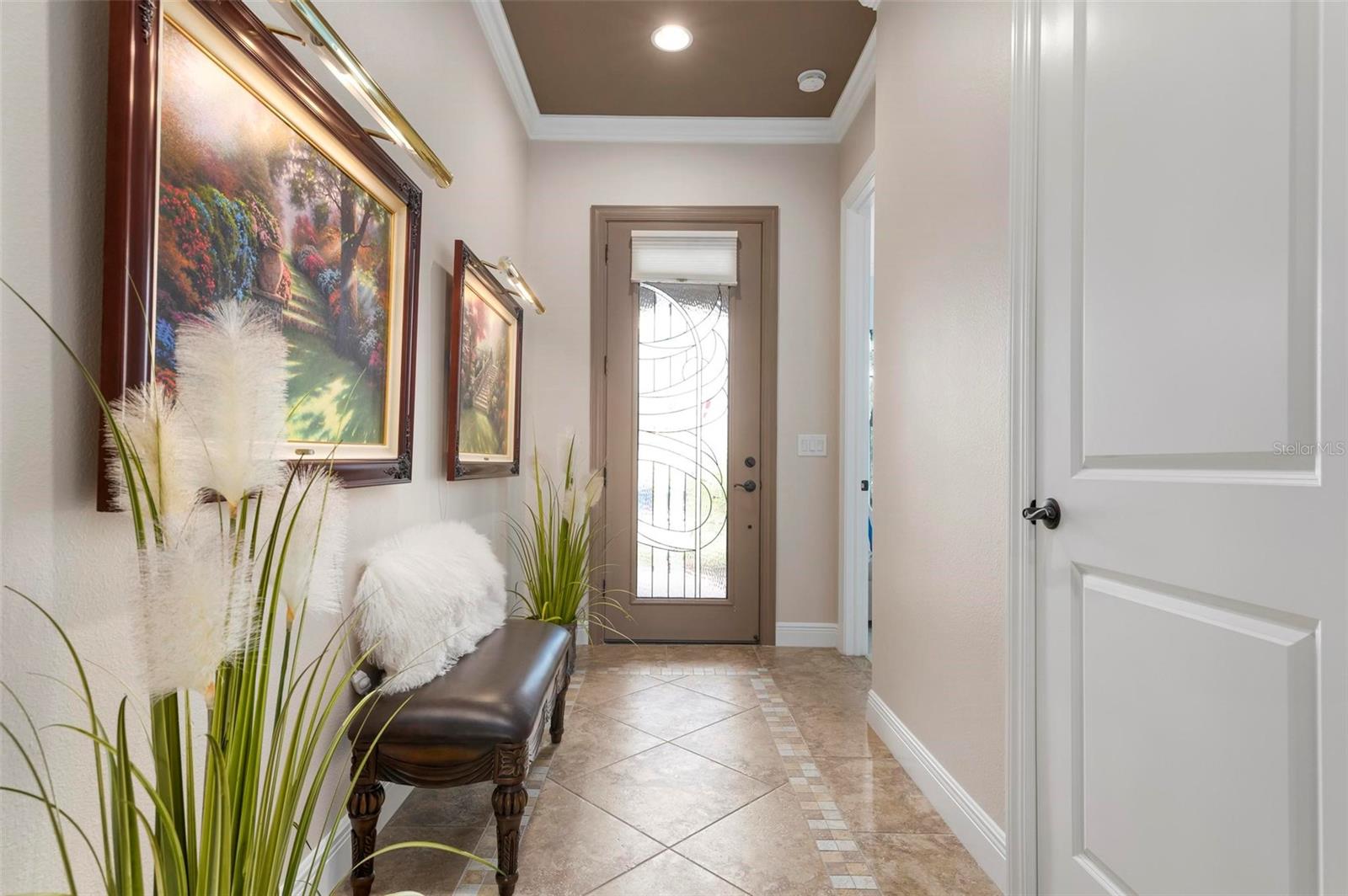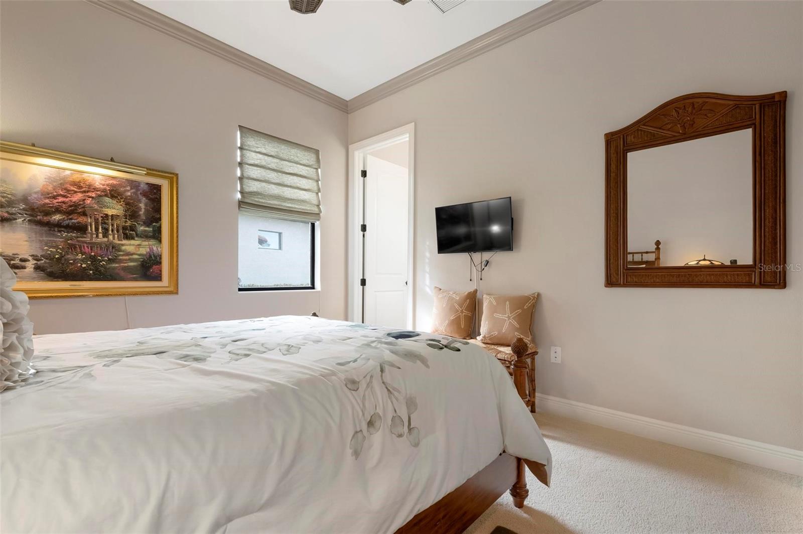 Wrap around water views of the natural Florida landscape are yours to enjoy from sunrise to sunset. Welcome to the Key Largo by WCI Homes, a true symbol of quality and craftsmanship, located in the exclusive Lake Village of Sarasota National. This stunning private tip lot offers breathtaking water and preserve views, providing the perfect backdrop for your everyday living. Step outside to your heated saltwater pool and spa, with a clearview screen enclosure for unobstructed views. Inside, you'll find luxurious 8-foot interior doors, tall baseboards, and beautiful travertine-look porcelain tile throughout the living areas and baths. The gourmet island kitchen features staggered solid wood linen cabinets with crown molding, under-cabinet lighting, granite countertops, and sleek stainless-steel appliances. Each of the three spacious bedrooms boasts its own private full bath, providing ultimate comfort and privacy. Additional upgrades include extensive landscape lighting, a whole-home water conditioning system, impact-resistant windows and doors, and a whole-home generator for peace of mind. This certified Audubon community offers miles of picturesque sidewalks winding through the natural Florida surroundings. Enjoy superb amenities such as a resort-style pool with a tiki bar overlooking the golf course, a fitness center, pickleball and tennis courts, a coffee lounge, and an on-site restaurant. For dog lovers, there's even a park just for your furry friends! As a Lake Village homeowner, you'll also have access to the golf course during the off-season. Excellent location right between Downtown Wellen Park with its shops, restaurants and Braves Stadium and Historic Downtown Venice with its quaint shops, tree-lined streets and beautiful beaches. Experience the very best in luxury living with this exceptional home—schedule your private showing today!