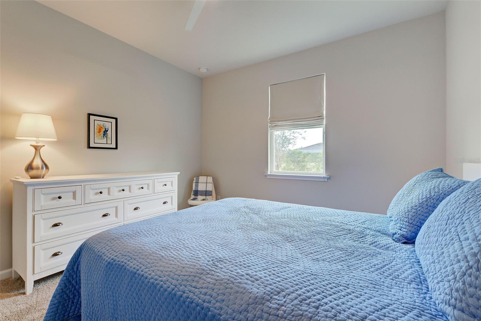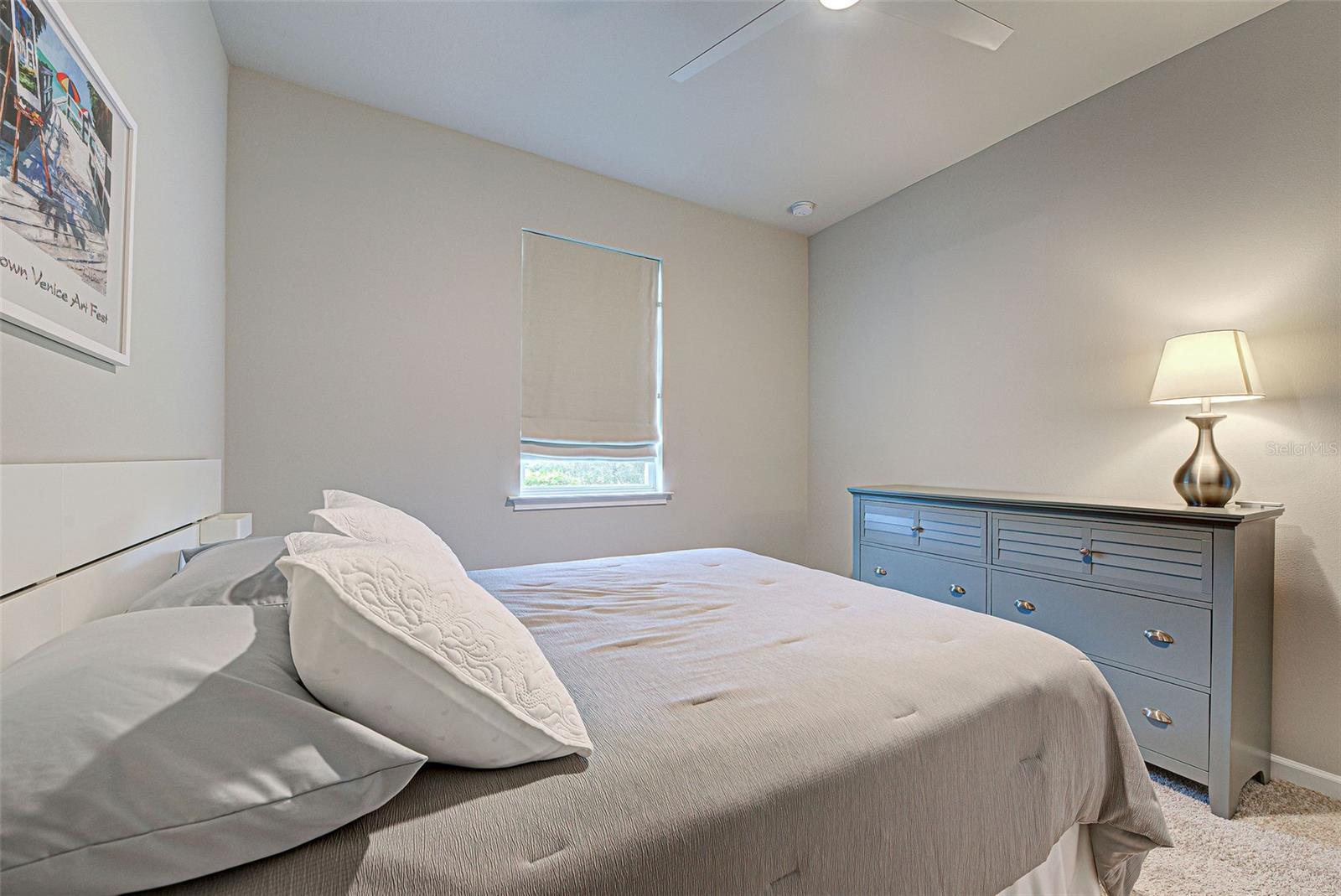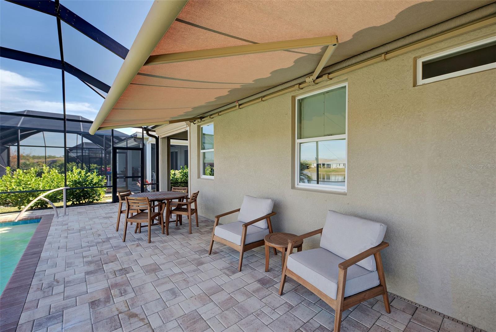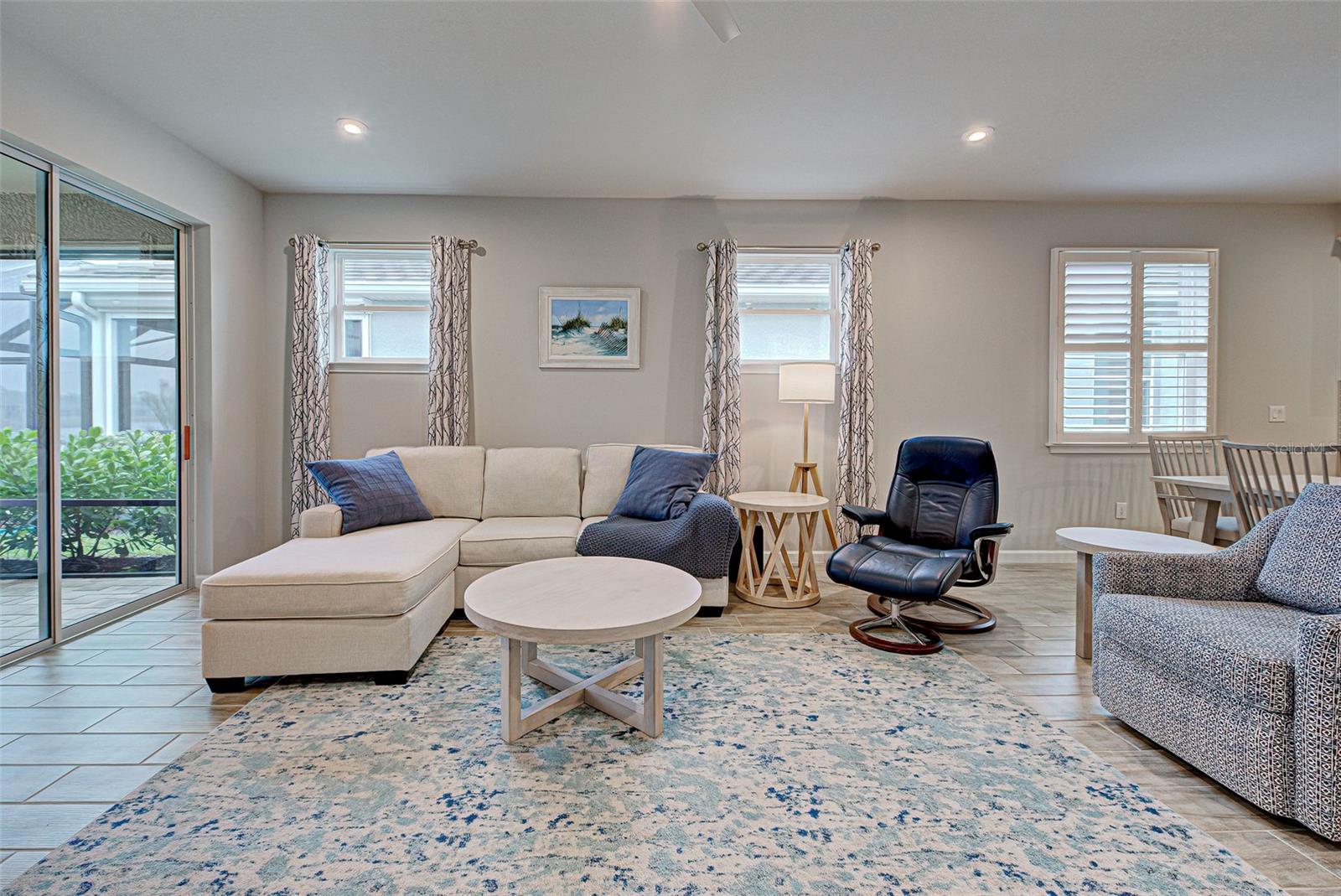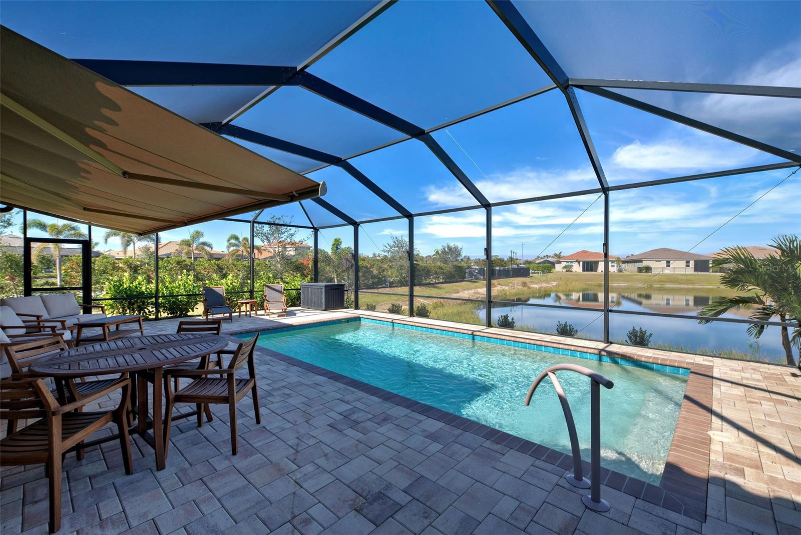 Must see: Turnkey Furnished: The owners have spared no expense in furnishing and decorating this home and you will fall in love with it! Located on a corner lot, you will be impressed with this pristine-3-bedroom home plus a flex room, 2.5 Bathrooms, elegant lighting and custom blinds. It is turn-key ready...a rare opportunity to have a newer home (less that 4 years old), fully furnished (including an outdoor grill), with a good size heated pool, awesome furniture...enough for a party! and lake view. It has an open floor plan including a study or retreat room and 8 ft. doors add to the open feeling. The chef's kitchen has stainless steel appliances, custom cabinets, bar stools, walk-in pantry, granite counter and overhead lighting. There is a formal dining area with sitting for 6. The living room provides a great view of the pool and lake and provides comfortable seating for your guests. The owner's suite is very private with tray ceiling, crown molding, king size bed, and has an 8x9 owner's closet that you will love. There are 2 guest bedrooms with a "retreat" room in between. The main living area has tile flooring, and the bedrooms have carpet. The laundry room has a large stainless steel utility sink with sprayer. Enjoy your time in the pool (heated and chilled), with a privacy screen, outdoor lighting and retractable awning over the pool-patio area. In add, you will enjoy cooking outdoors with your gas grill and entertaining friends and family. The 2-car garage is the cleanest garage I've seen, and the epoxy flooring is like new. In addition, you have: R30 ceiling insulation, in wall pest control, hurricane shutters and smoke detectors. The fun part of living here, is all of opportunities for having FUN: Meet with your friends or enjoy your free time at the resort-style amenity center with: Pool and Fitness Center, Walking and Biking trails, Tennis courts, Pickle Ball Court. In addition, Blue Heron Park is nearby. Or visit Wellen Park nearby: Park's shops, restaurants and Ball Park. Take advantage of your closeness to Venice Beach, which is approximately 20-25 min. drive.