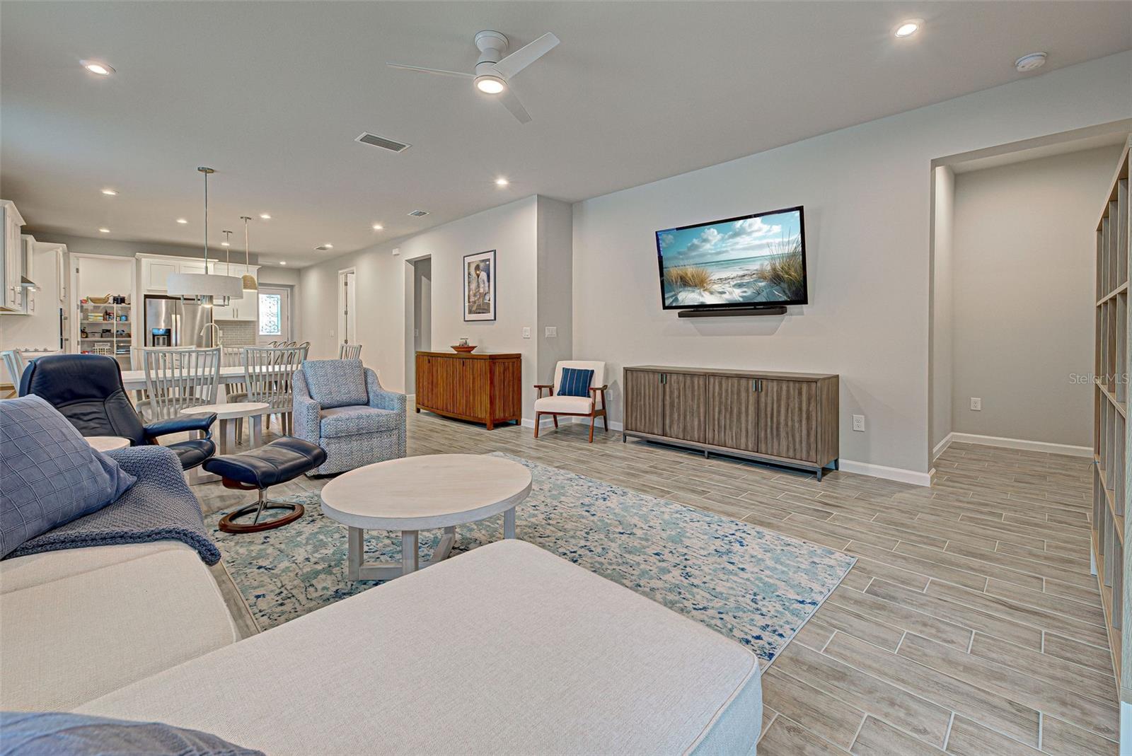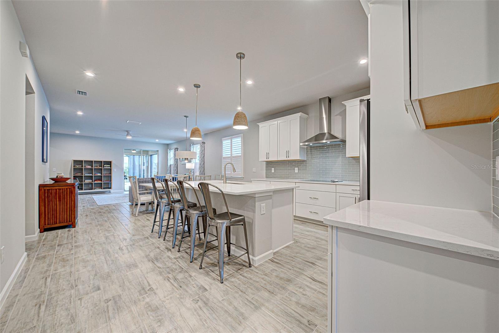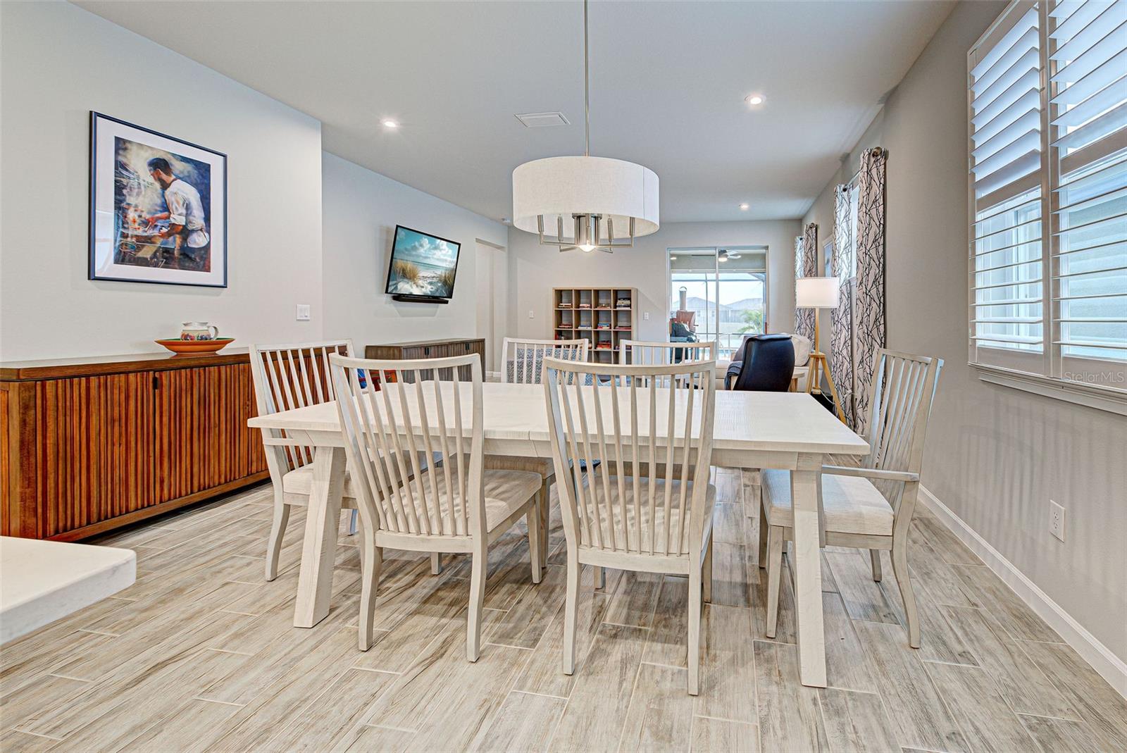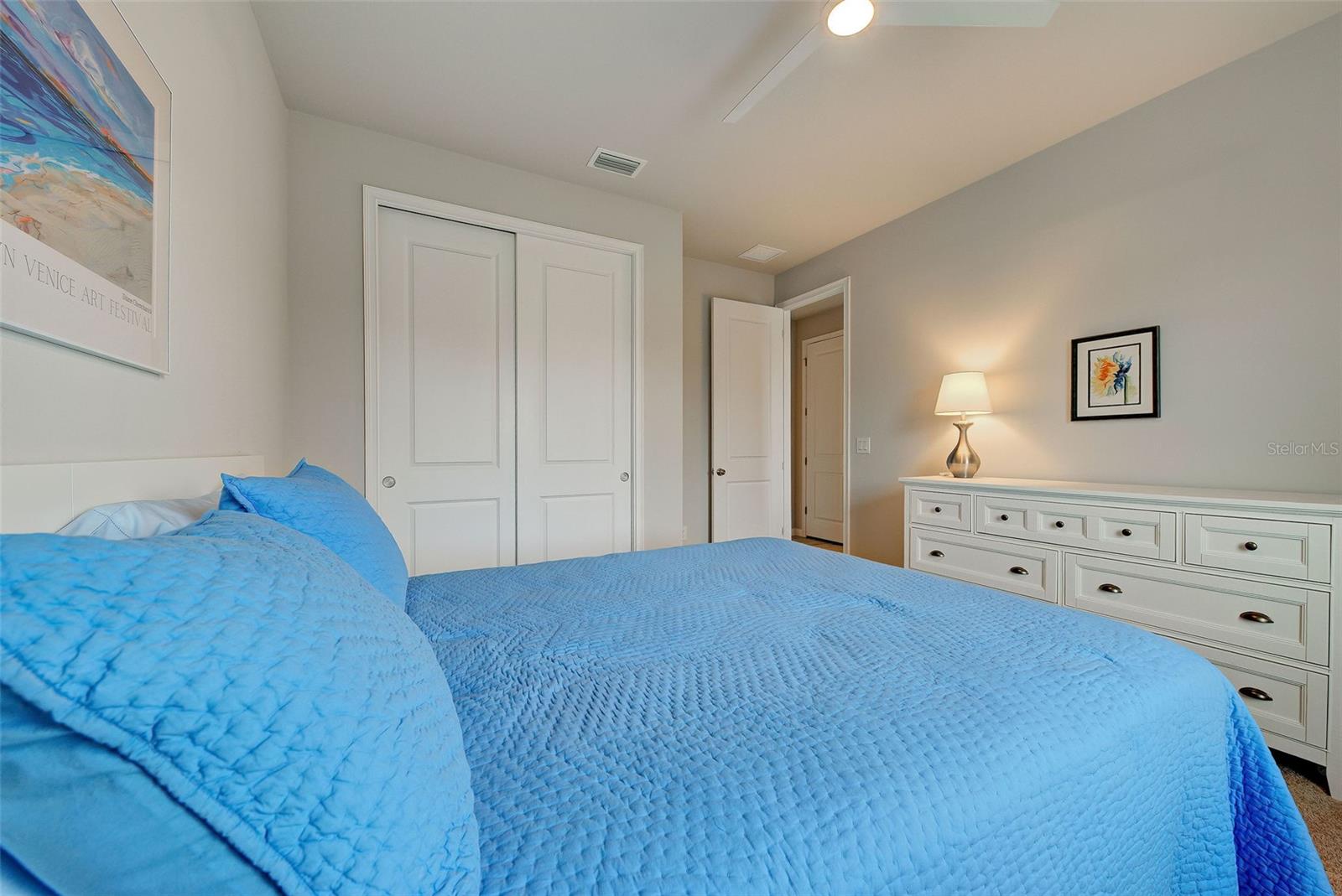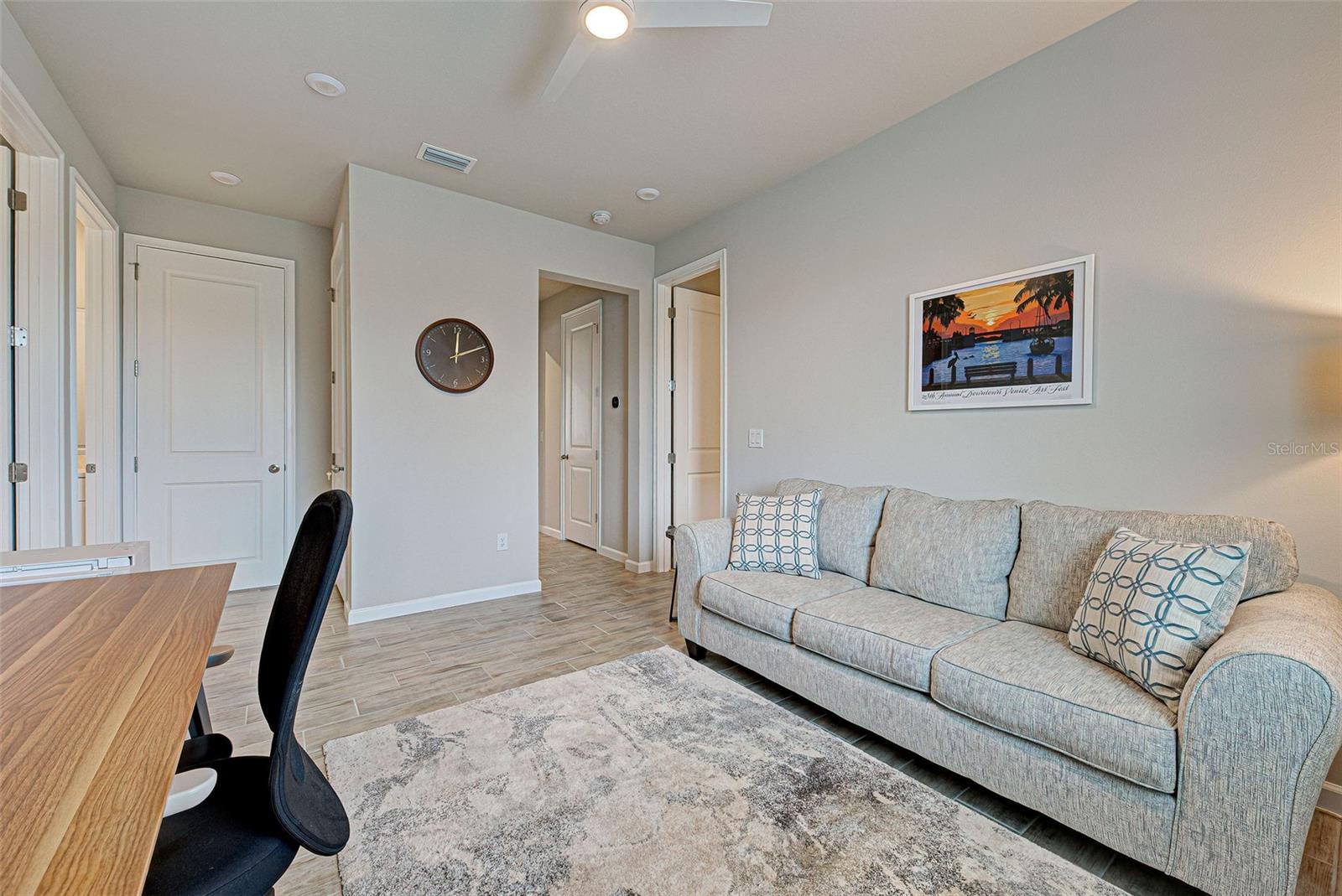 Must see: Turnkey Furnished: The owners have spared no expense in furnishing and decorating this home and you will fall in love with it! Located on a corner lot, you will be impressed with this pristine-3-bedroom home plus a flex room, 2.5 Bathrooms, elegant lighting and custom blinds. It is turn-key ready...a rare opportunity to have a newer home (less that 4 years old), fully furnished (including an outdoor grill), with a good size heated pool, awesome furniture...enough for a party! and lake view. It has an open floor plan including a study or retreat room and 8 ft. doors add to the open feeling. The chef's kitchen has stainless steel appliances, custom cabinets, bar stools, walk-in pantry, granite counter and overhead lighting. There is a formal dining area with sitting for 6. The living room provides a great view of the pool and lake and provides comfortable seating for your guests. The owner's suite is very private with tray ceiling, crown molding, king size bed, and has an 8x9 owner's closet that you will love. There are 2 guest bedrooms with a "retreat" room in between. The main living area has tile flooring, and the bedrooms have carpet. The laundry room has a large stainless steel utility sink with sprayer. Enjoy your time in the pool (heated and chilled), with a privacy screen, outdoor lighting and retractable awning over the pool-patio area. In add, you will enjoy cooking outdoors with your gas grill and entertaining friends and family. The 2-car garage is the cleanest garage I've seen, and the epoxy flooring is like new. In addition, you have: R30 ceiling insulation, in wall pest control, hurricane shutters and smoke detectors. The fun part of living here, is all of opportunities for having FUN: Meet with your friends or enjoy your free time at the resort-style amenity center with: Pool and Fitness Center, Walking and Biking trails, Tennis courts, Pickle Ball Court. In addition, Blue Heron Park is nearby. Or visit Wellen Park nearby: Park's shops, restaurants and Ball Park. Take advantage of your closeness to Venice Beach, which is approximately 20-25 min. drive.