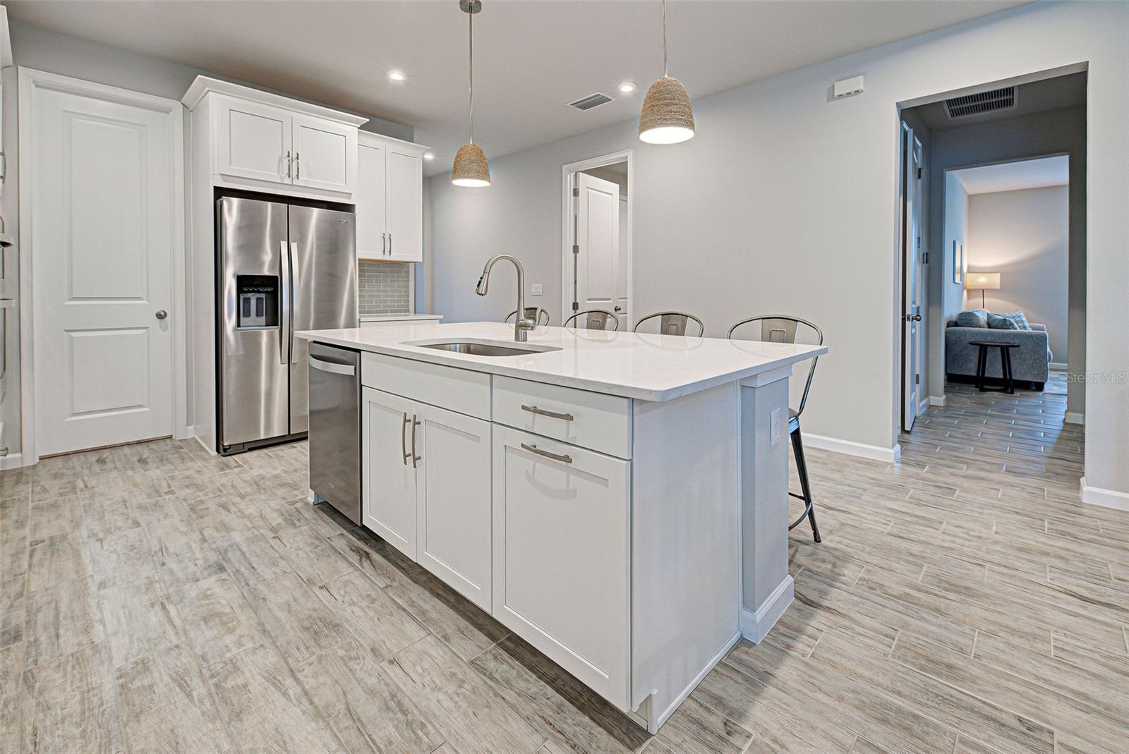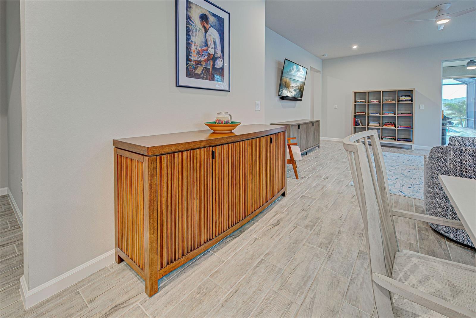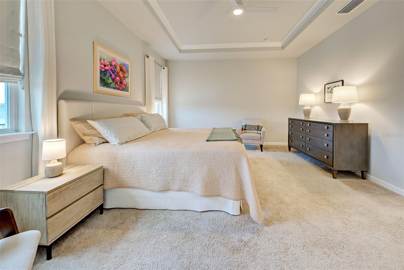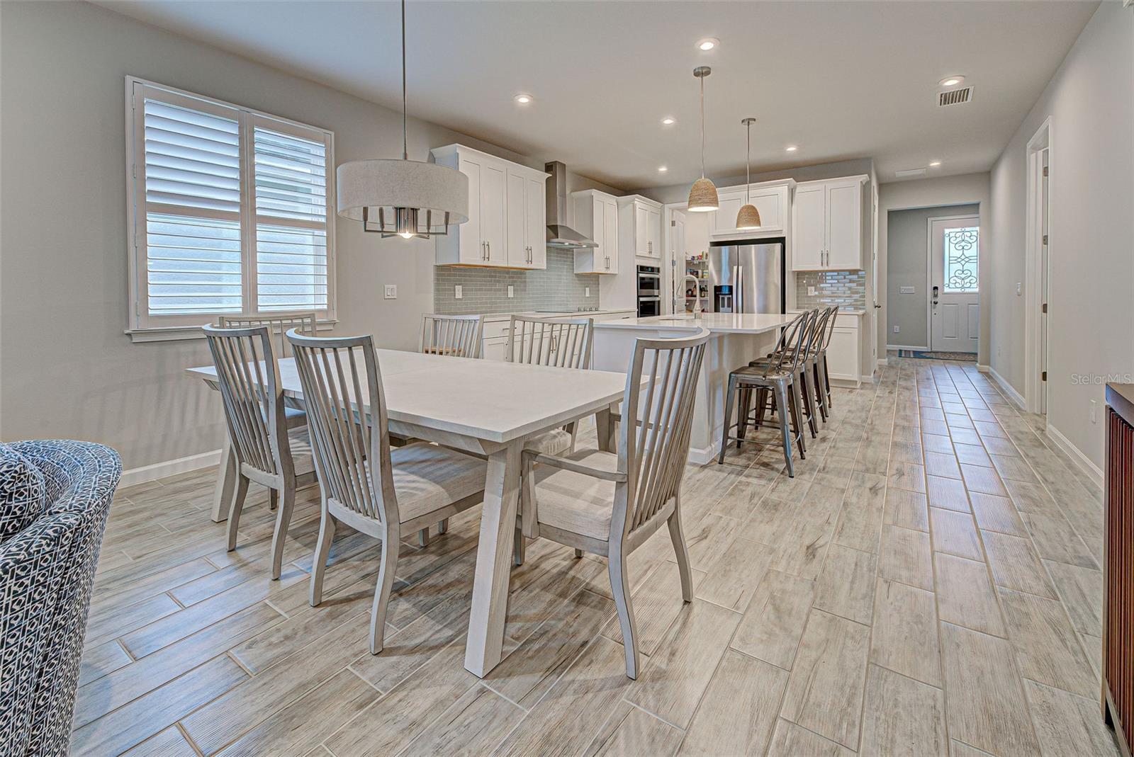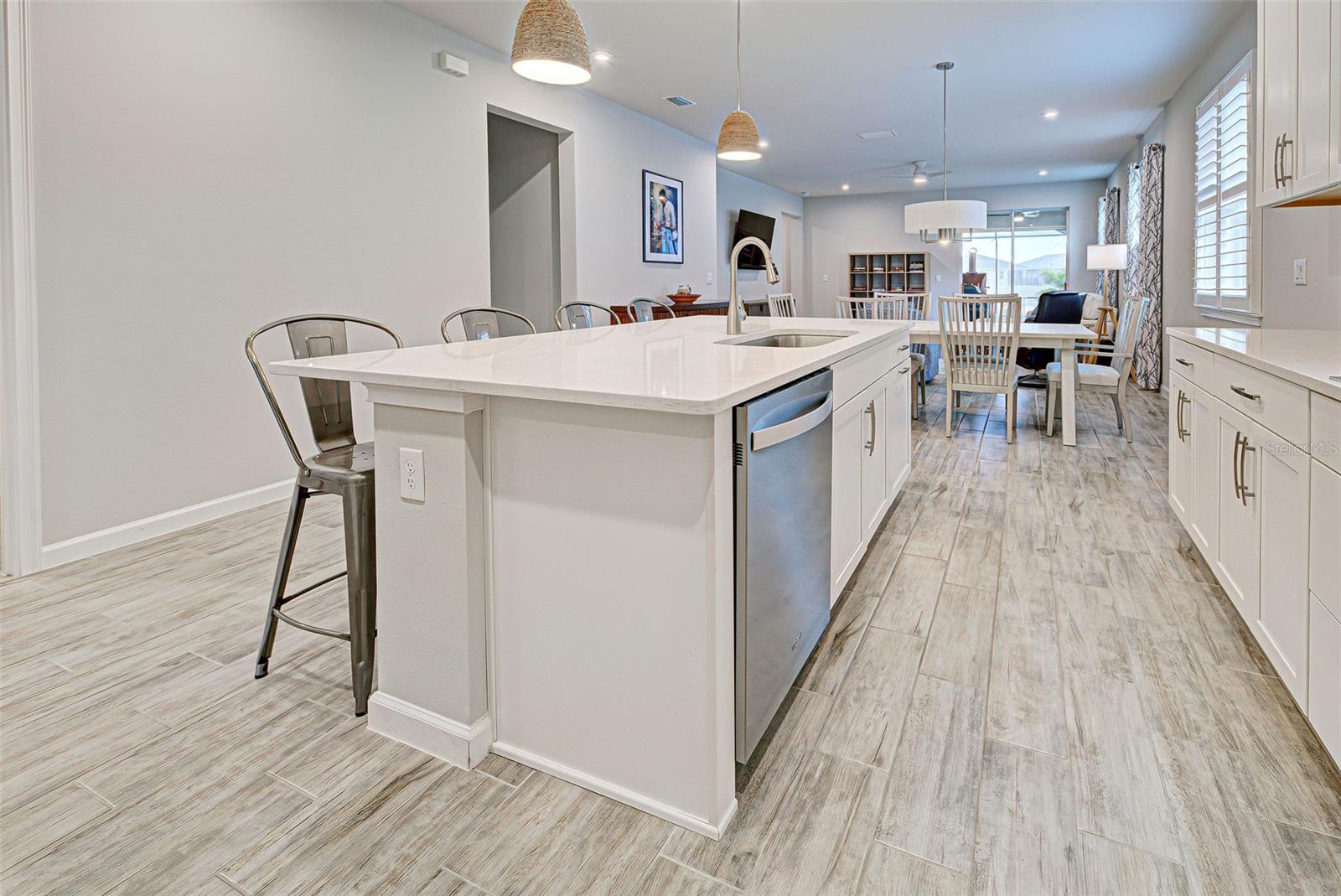 Must see: Turnkey Furnished: The owners have spared no expense in furnishing and decorating this home and you will fall in love with it! Located on a corner lot, you will be impressed with this pristine-3-bedroom home plus a flex room, 2.5 Bathrooms, elegant lighting and custom blinds. It is turn-key ready...a rare opportunity to have a newer home (less that 4 years old), fully furnished (including an outdoor grill), with a good size heated pool, awesome furniture...enough for a party! and lake view. It has an open floor plan including a study or retreat room and 8 ft. doors add to the open feeling. The chef's kitchen has stainless steel appliances, custom cabinets, bar stools, walk-in pantry, granite counter and overhead lighting. There is a formal dining area with sitting for 6. The living room provides a great view of the pool and lake and provides comfortable seating for your guests. The owner's suite is very private with tray ceiling, crown molding, king size bed, and has an 8x9 owner's closet that you will love. There are 2 guest bedrooms with a "retreat" room in between. The main living area has tile flooring, and the bedrooms have carpet. The laundry room has a large stainless steel utility sink with sprayer. Enjoy your time in the pool (heated and chilled), with a privacy screen, outdoor lighting and retractable awning over the pool-patio area. In add, you will enjoy cooking outdoors with your gas grill and entertaining friends and family. The 2-car garage is the cleanest garage I've seen, and the epoxy flooring is like new. In addition, you have: R30 ceiling insulation, in wall pest control, hurricane shutters and smoke detectors. The fun part of living here, is all of opportunities for having FUN: Meet with your friends or enjoy your free time at the resort-style amenity center with: Pool and Fitness Center, Walking and Biking trails, Tennis courts, Pickle Ball Court. In addition, Blue Heron Park is nearby. Or visit Wellen Park nearby: Park's shops, restaurants and Ball Park. Take advantage of your closeness to Venice Beach, which is approximately 20-25 min. drive.