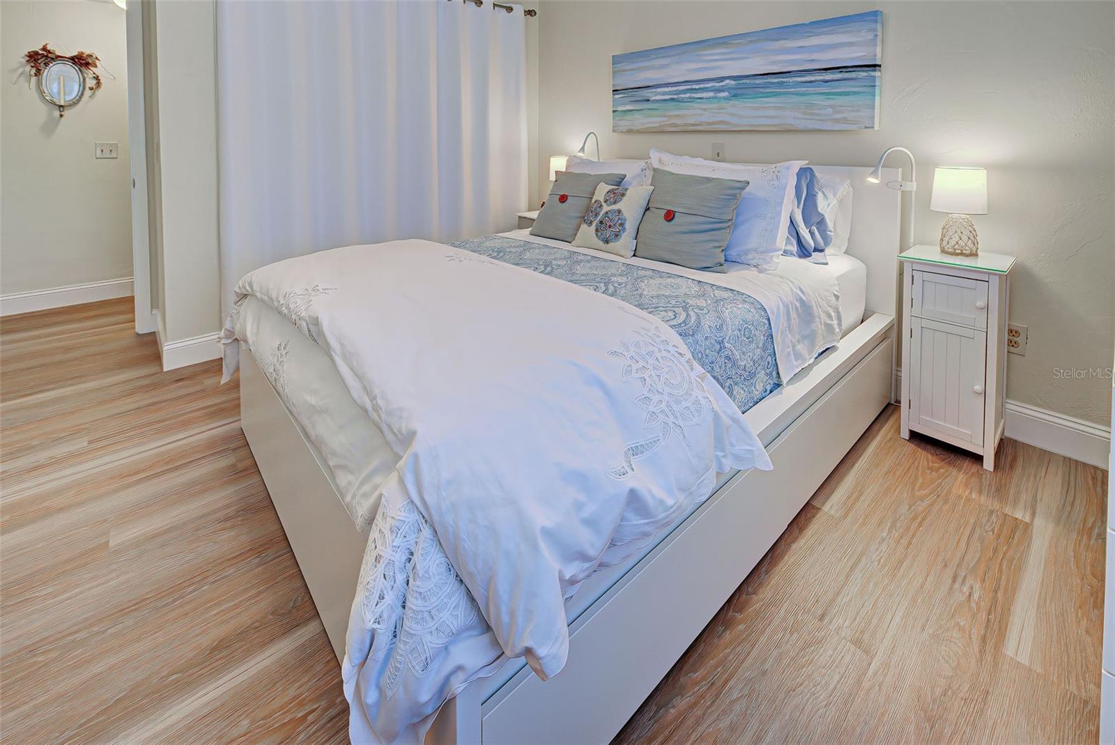 Welcome to Paradise. This COMPLETELY RENOVATED 2-bedroom, 2-bath condo located in highly desirable Bird Bay Village, is ready for your arrival. Super abundance of amenities and activities. If PICKLEBALL is your sport, this is the place to be! 3 full-time dedicated pickleball courts with additional play set up on the tennis courts. Resort style amenities include a Junior Olympic Swimming pool, clubhouse with full kitchen, fitness room and let's not forget the numerous social events in this vibrant community. Timeless and beautiful, the new innovative kitchen has a "cottage feel" featuring classy, white custom soft-close cabinetry with crown molding and under cabinet lighting. Lovely white quartz countertops compliment the cottage feel and the custom pantry completes the look with adjacent shelving and a coffee station. The primary bedroom has a built-in king-sized bed and chest of drawers providing extra storage. FURNISHINGS INCLUDED! With a 2021 AC & 2021 Water heater, there are no mechanical worries here and the unit has been re-piped! A wall of sliders in the Great Room gives you access to an enclosed patio with a serene wooded view. A second set of sliders leads to a quaint deck with a tranquil water view. The chic furnishings, vaulted ceilings and plentiful windows providing natural light give this condo a loft style look and feel. In addition to all the amenities in this community you have access to the renowned Legacy Trail that is located just outside the Bird Bay entrance. You can ride your bike along the Intercoastal Waterway to Sarasota, passing through a hidden gem, Oscar Scherer State Park, where bald eagles nest in the winter. With its warm sense of community, great for walking, biking and pet friendly, too, Bird Bay Village is only minutes (2 miles) from Historic Downtown Venice, where you can enjoy fine & casual dining, boutique shopping, theatre, weekly farmer's market and periodic craft & art shows. HOA fee includes: Basic Cable, Water, Sewer, Trash, Pest-Control, Amenities, Lawn-Care, and Exterior Insurance. This condo has all the elements for relaxing, comfortable and easy-care living. Very accessible to I-75, US 41 and 4 major airports. LIFESTYLE, LOCATION, LOW MAINTENANCE! The price speaks for itself! What are you waiting for? Come take a look!