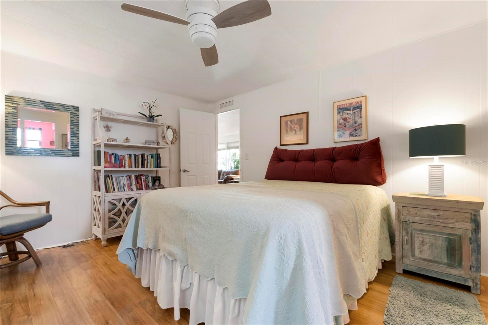 PRICE REDUCED! Shows like new & impeccably kept, nearly every surface and system in this home has been replaced or improved. Welcome to this beautifully renovated home in the highly sought-after Japanese Gardens, a premier 55+ resort-style community. With timeless updates and luxurious finishes, this residence is a true gem. Step inside to discover elegant laminate wood plank flooring throughout the living areas, creating a warm and inviting atmosphere. The spacious kitchen features soft ivory cabinetry with deep drawer banks for ample storage, stunning granite countertops, modern stainless-steel appliances, and a stylish backsplash—perfect for both cooking and entertaining. Energy-efficient double-pane tinted windows ensure a comfortable and eco-friendly environment, while the front enclosed lanai, complete with plantation shutters inside and Bahama shutters outside, is bathed in natural light, offering the ideal spot to relax and unwind. The laundry/utility room has been freshly painted with mildew-resistant paint for a clean, bright look. The enclosed Florida room, with sliding windows and stunning porcelain floor, expands your living space and opens up to catch the refreshing Gulf breezes when the windows are open. Step outside to the paver patio, surrounded by vented vinyl fencing, creating an ideal outdoor seating area for relaxation or entertaining. Enjoy the complete privacy of your own outdoor shower, perfect for rinsing off after a day at the beach or pool. This vibrant neighborhood features a social clubhouse, pool, spa, pickleball courts, and shuffleboard, offering ample opportunities to stay active and socialize with neighbors. Don't miss the chance to own this stunning home in Japanese Gardens—where resort-style living meets comfort and convenience.