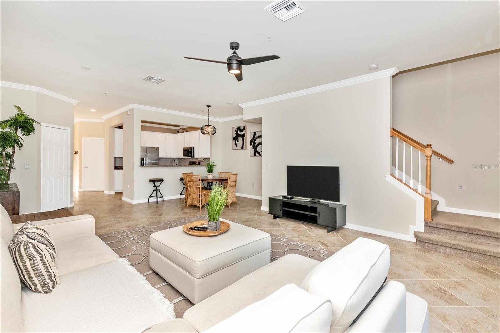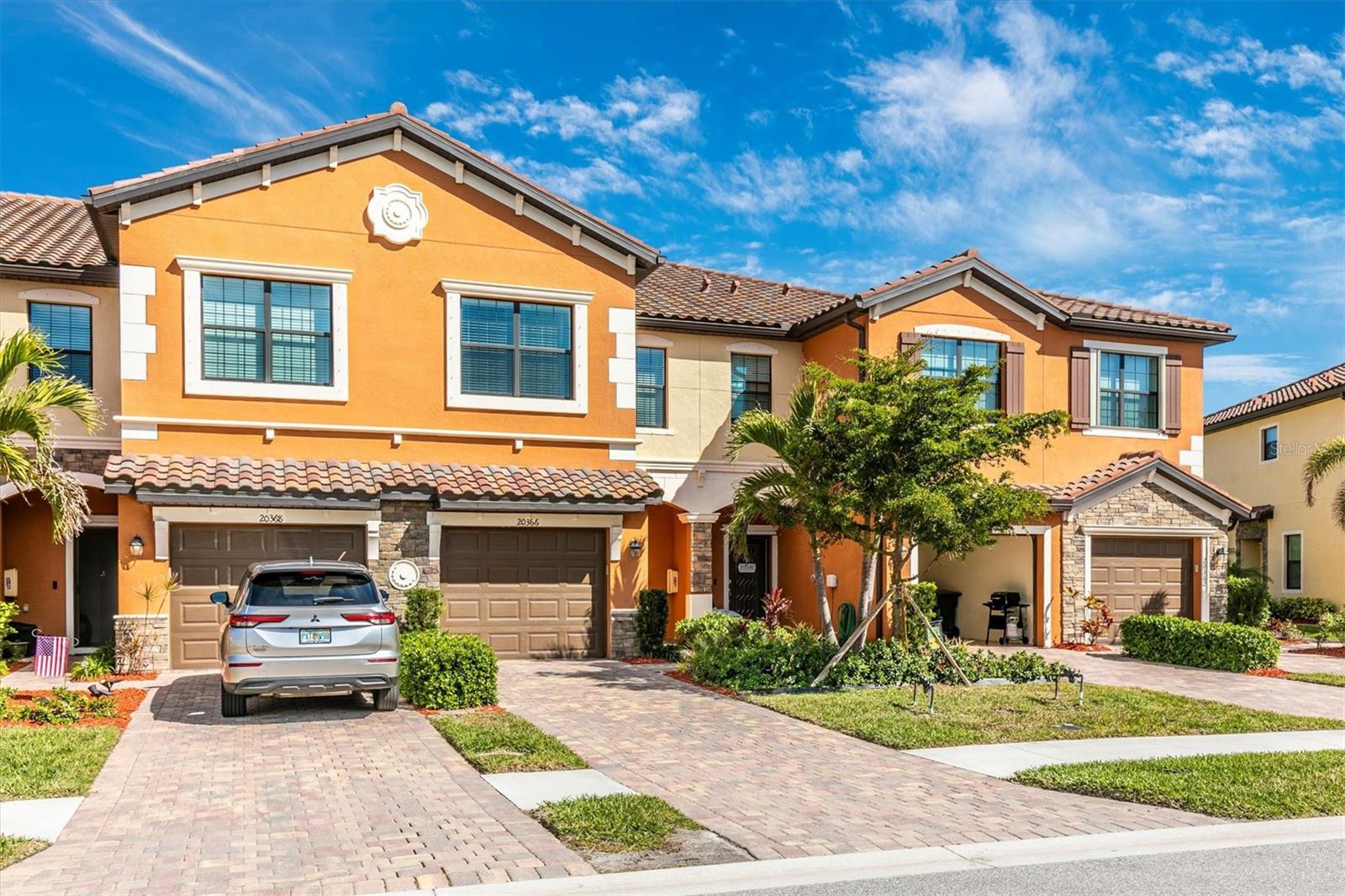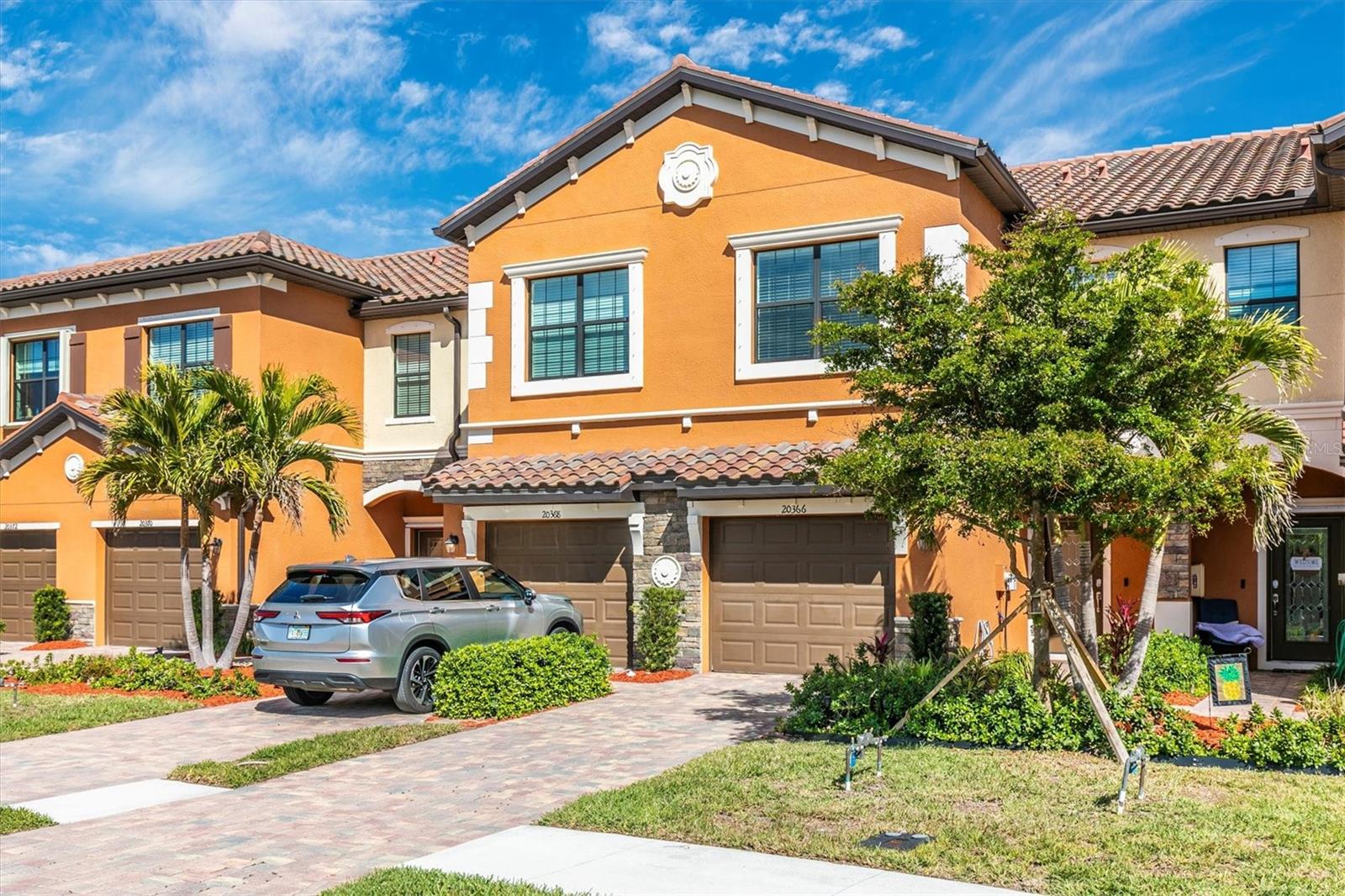 You won't want to miss this one! Now is your opportunity to live in the LOWEST PRICED TOWNHOME in the amenity-rich gated community of Gran Paradiso! Located just minutes from the brand-new town center of Wellen Park, downtown Venice, and Manasota Beach, this fabulous 3-bedroom, 2.5-bath, one-car garage townhome offers all of the modern conveniences of a single-family home without the hassle! The main living area is spacious in size and offers beautiful neutral diagonal porcelain tile flooring, crown molding, and a beautiful lake view. The cozy dining room is convenient to the kitchen and living room, making it the perfect space for hosting special occasions. The functional kitchen offers stainless appliances, lovely white wood cabinetry, granite countertops and comes equipped with a large pantry for extra storage. There is also a powder bath that is in a convenient location for your visiting guests and a coat closet for more storage. There is also MORE storage underneath the stairs and on your screen lanai that overlooks the lake. Upstairs, you will find 3 oversized bedrooms and the 2nd bathroom that is convenient to both guest bedrooms. One has a walk-in closet, offering more storage space. The primary suite is oversized with a large walk-in closet and includes its own ensuite bathroom with granite countertops and a walk-in shower. The laundry room is conveniently located upstairs, between the 3 bedrooms, making laundry day a breeze! This townhome lives better than a single-family home! Basic cable and internet included! Amenities of Gran Paradiso include a clubhouse, resort-style pool, tennis courts, pickleball, billiard and card room, sauna, steam room, gym, and aerobics center. Schedule your showing TODAY!