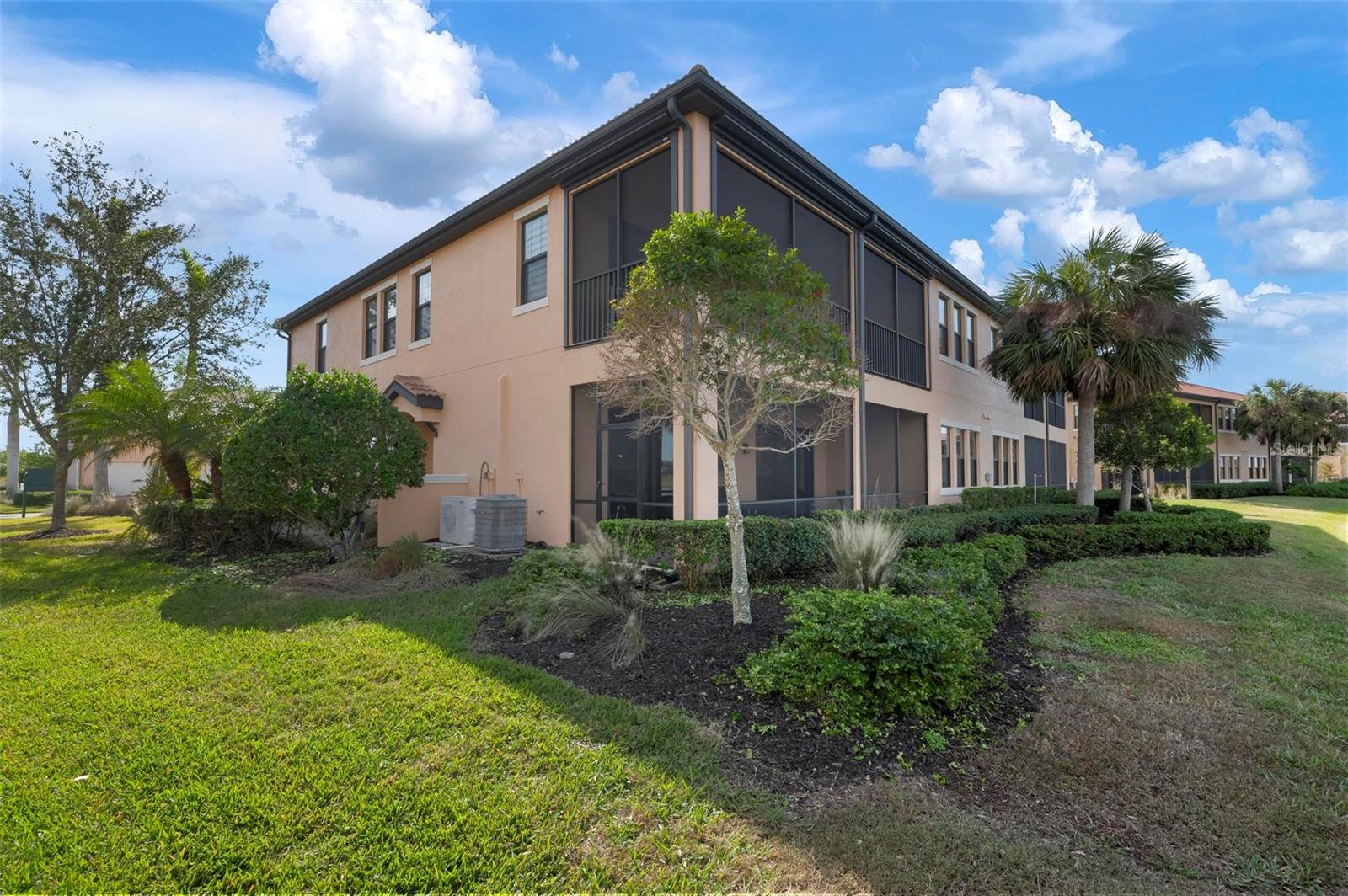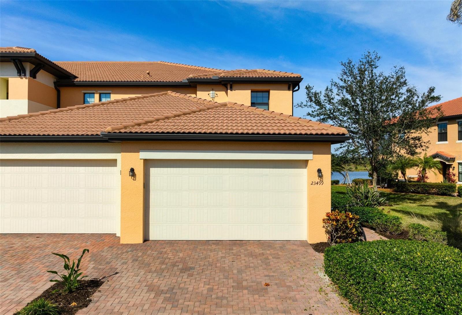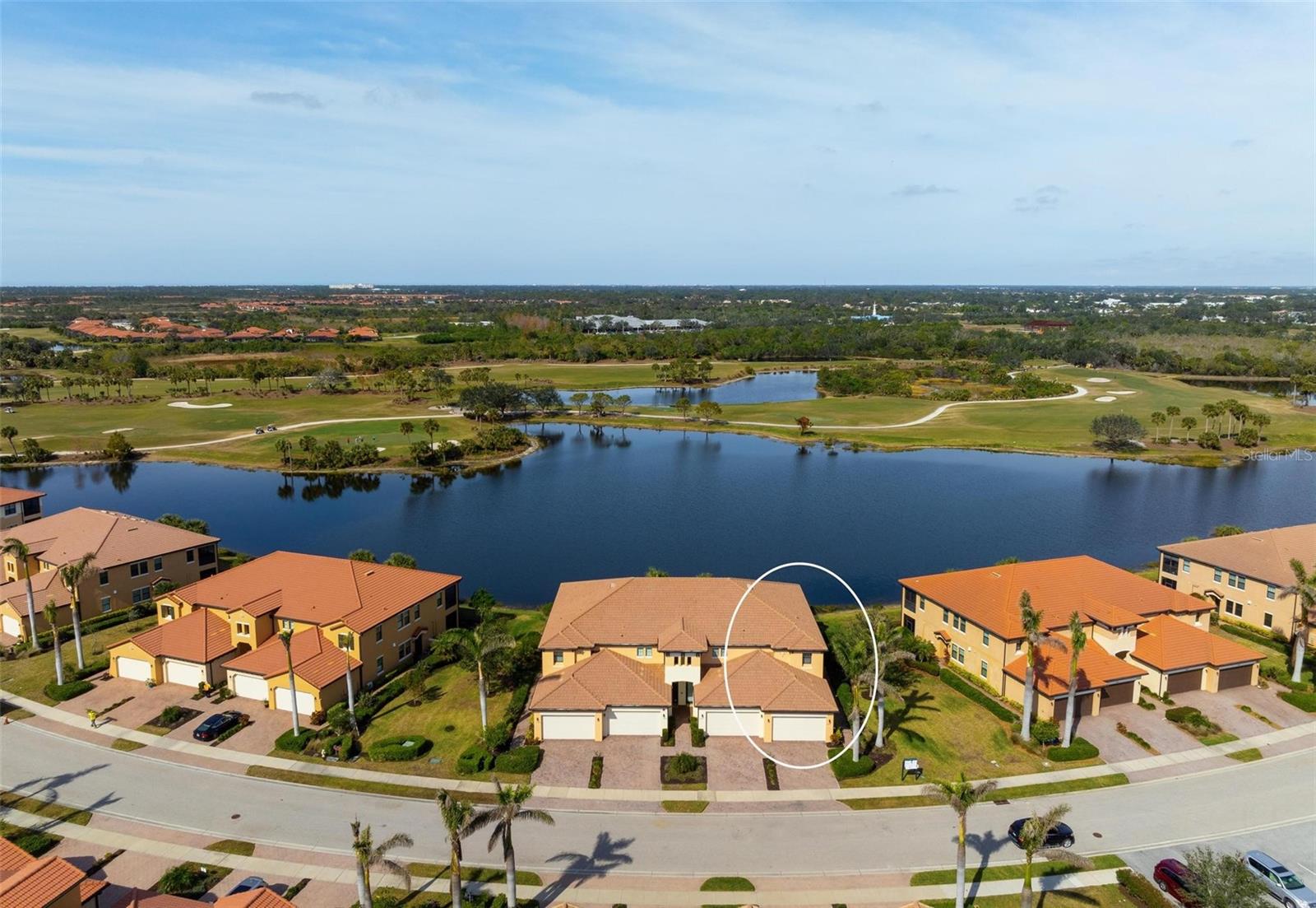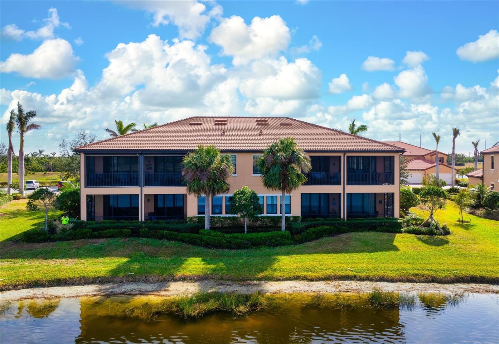 Welcome to maintenance free living! This stunning 2 bedroom plus den, 2 bathroom, first floor condo offers breathtaking water and golf course views, creating a serene and picturesque backdrop for everyday living. With 2 deeded golf memberships you'll enjoy unlimited access to premier fairways! This condo is designed with a bright and open floor plan and is flooded with natural light enhancing its spacious feel. This open floor plan features elegant finishes, and tasteful accents making it a perfect blend of comfort and sophistication. The split floor plan provides privacy for both owners and guests. The den can be utilized as a third bedroom. Enjoy your meals in the dinette area, at the breakfast bar or out on the screened lanai. It is here you will take in the colors of nightly sunsets! Along with the two car garage, there is a spacious laundry room as well as a large storage closet in addition to the kitchen pantry. Sarasota National offers an abundance of amenities including an onsite spa, fitness center with trainers, resort style pool, restaurant, coffee shop, tennis courts, pickleball and a dog park to name a few. Whether you end a busy day overlooking the water and sunset or are entertaining in the airy living space, this condo provides a luxurious retreat for golf enthusiasts and those who appreciate upscale living.